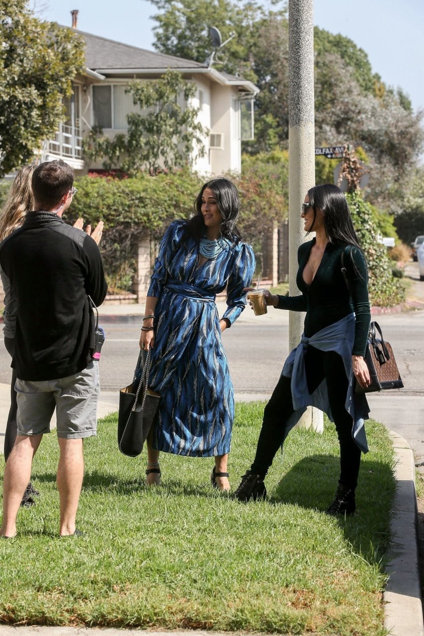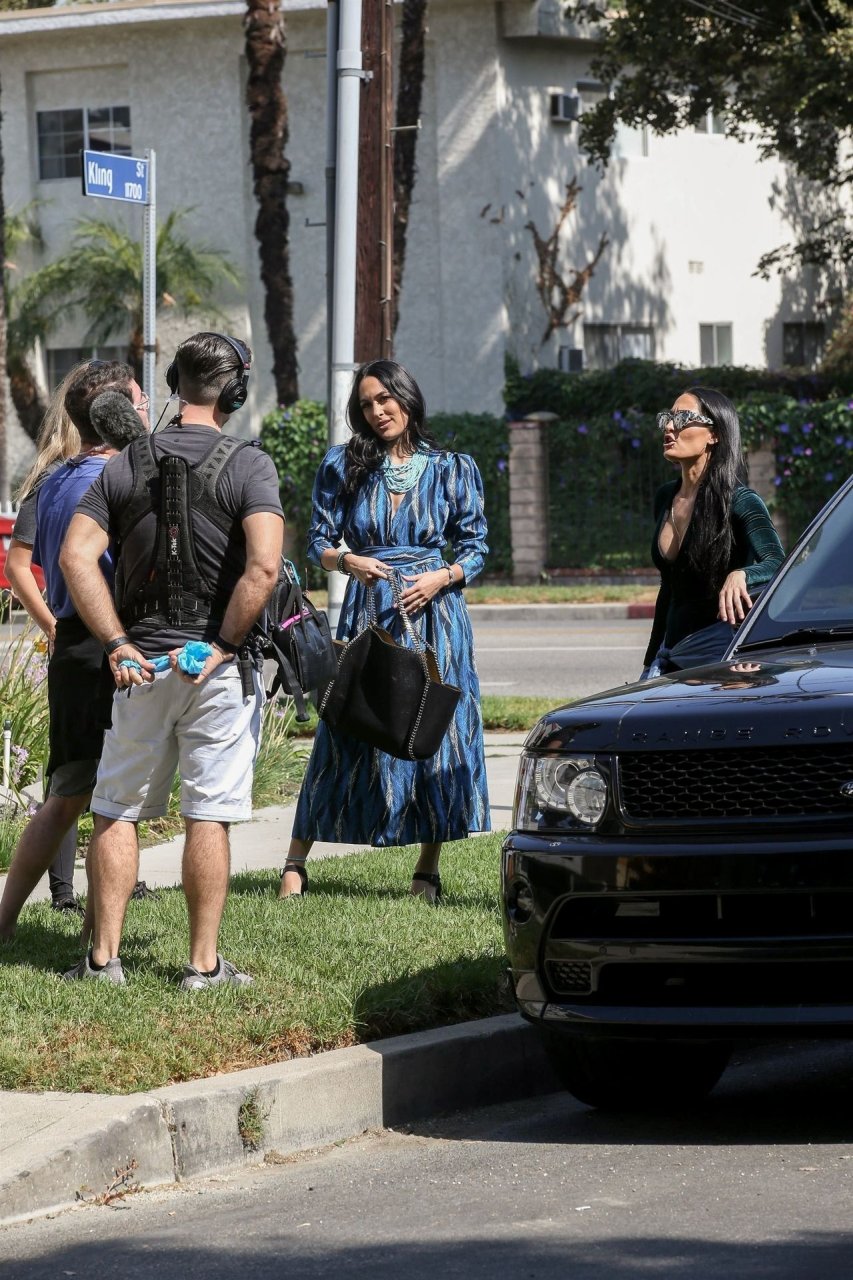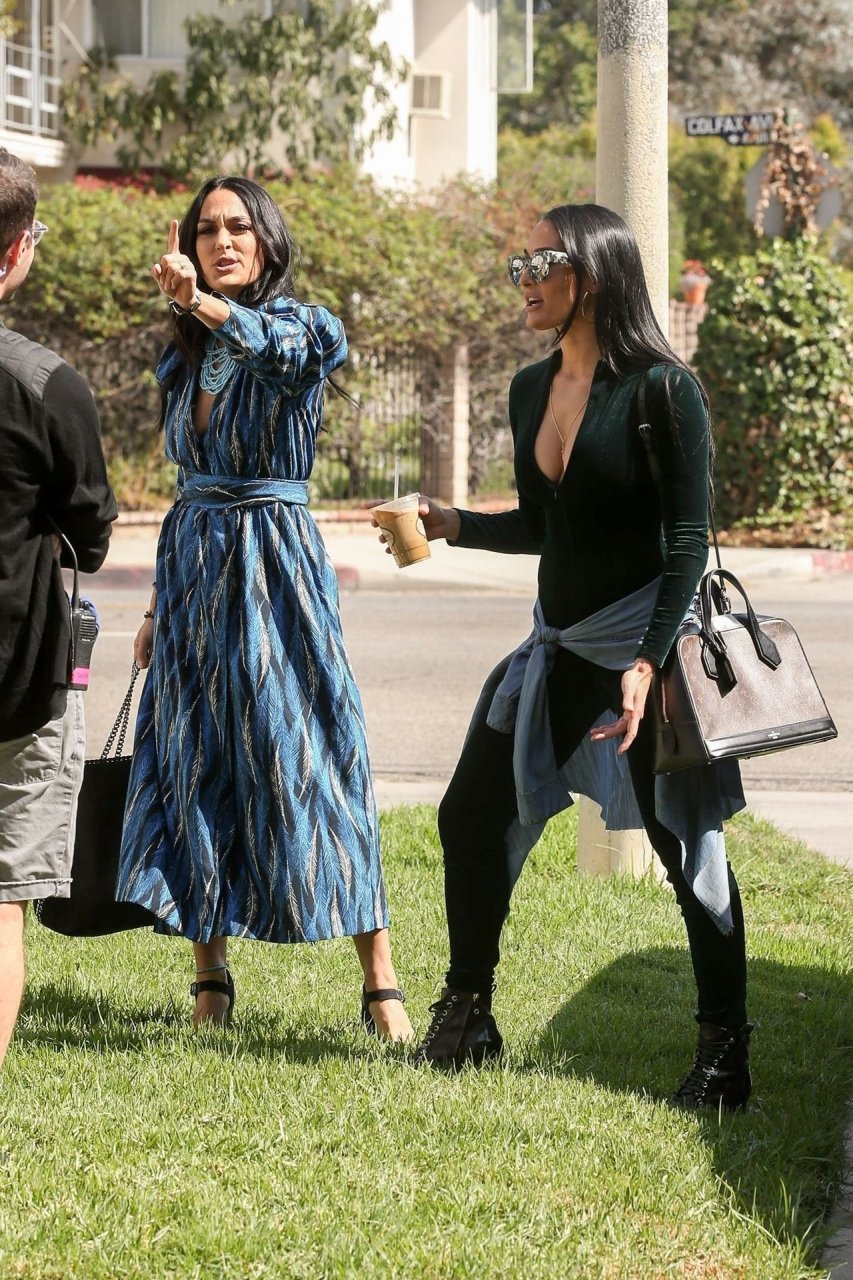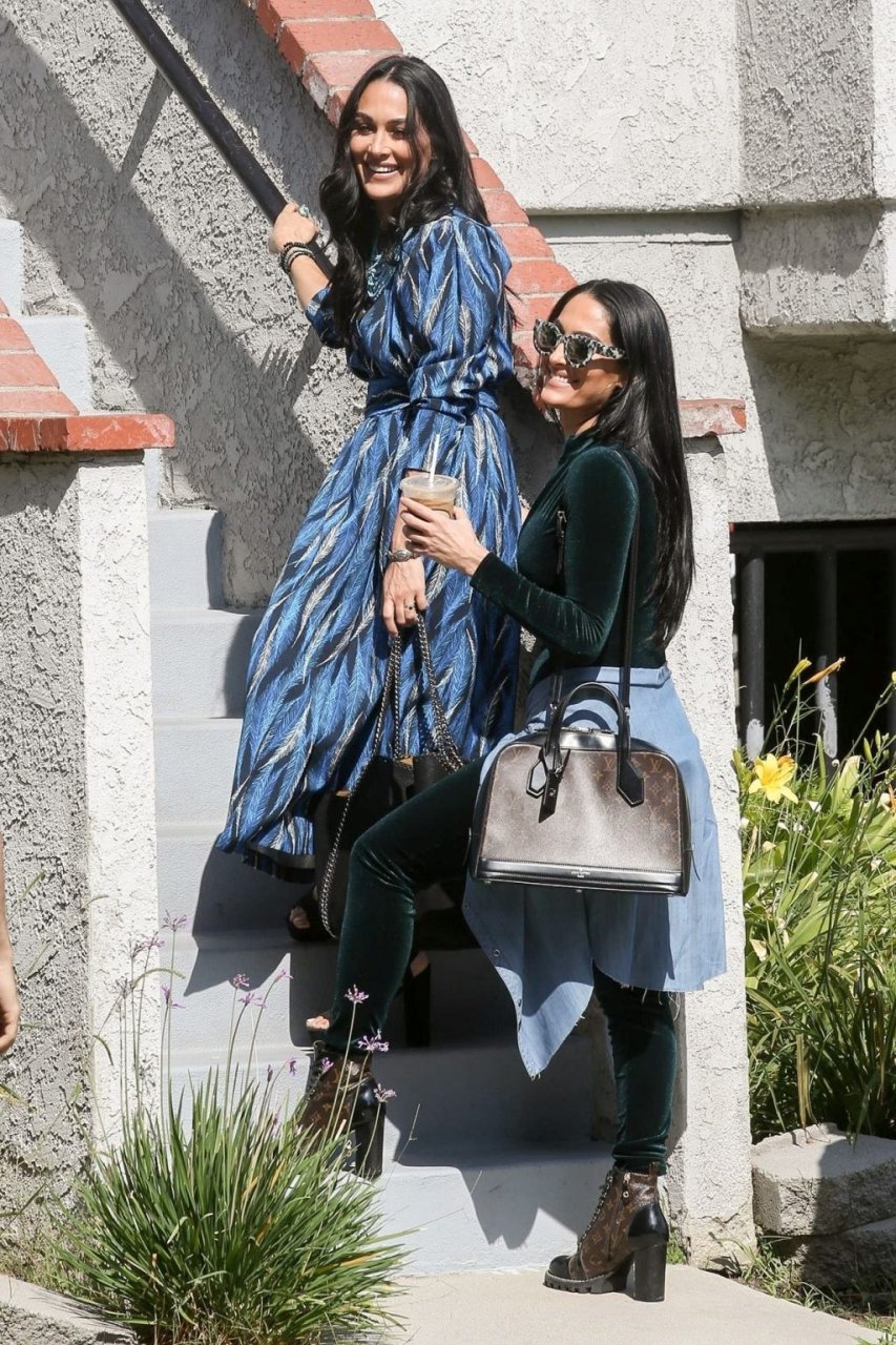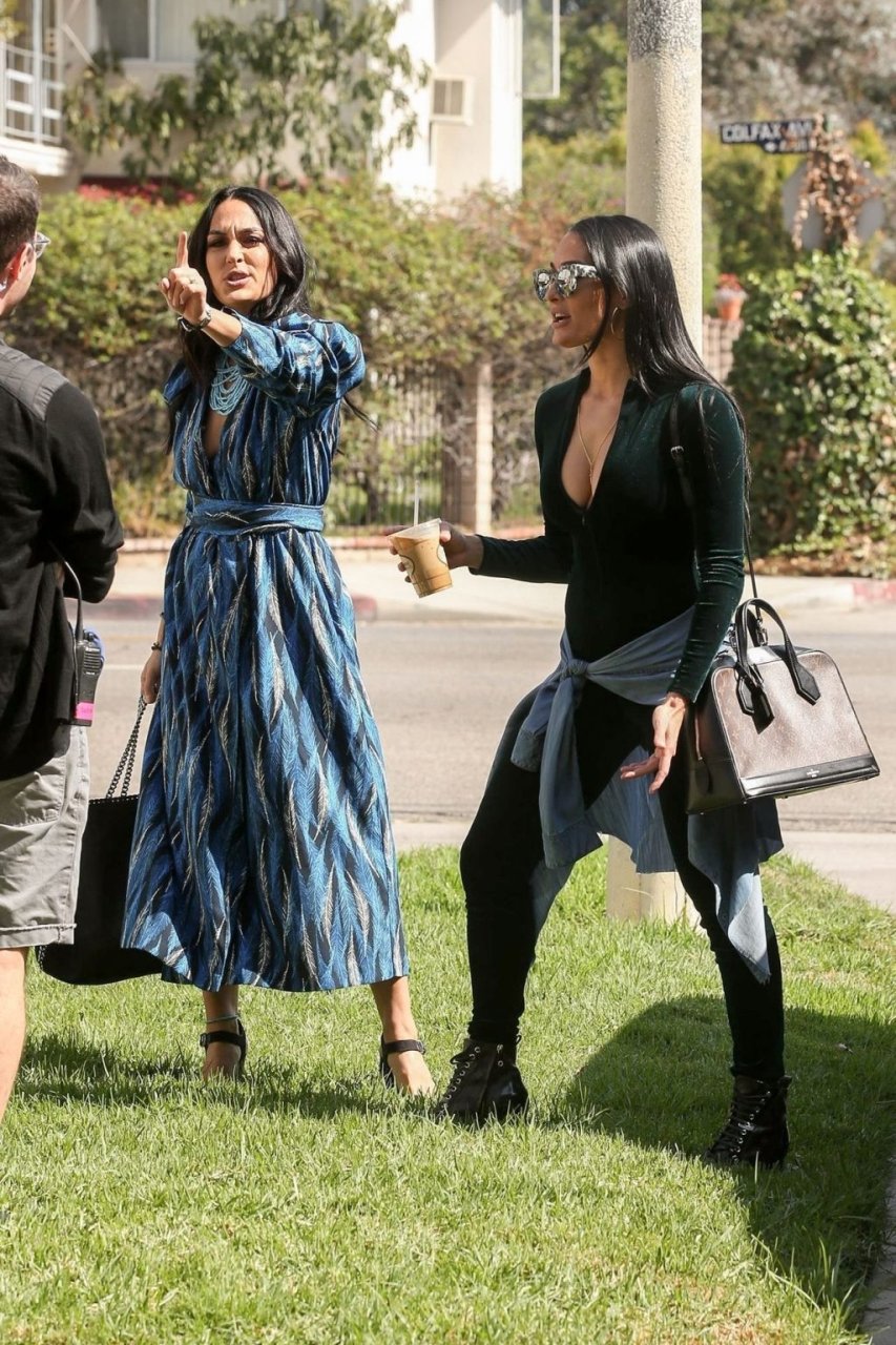 As irmãs lutadoras profissionais Nikki e Brie Bella chamam a atenção enquanto gravam cenas para seu reality show ‘Total Bellas’ em Los Angeles, 14/10/2019.