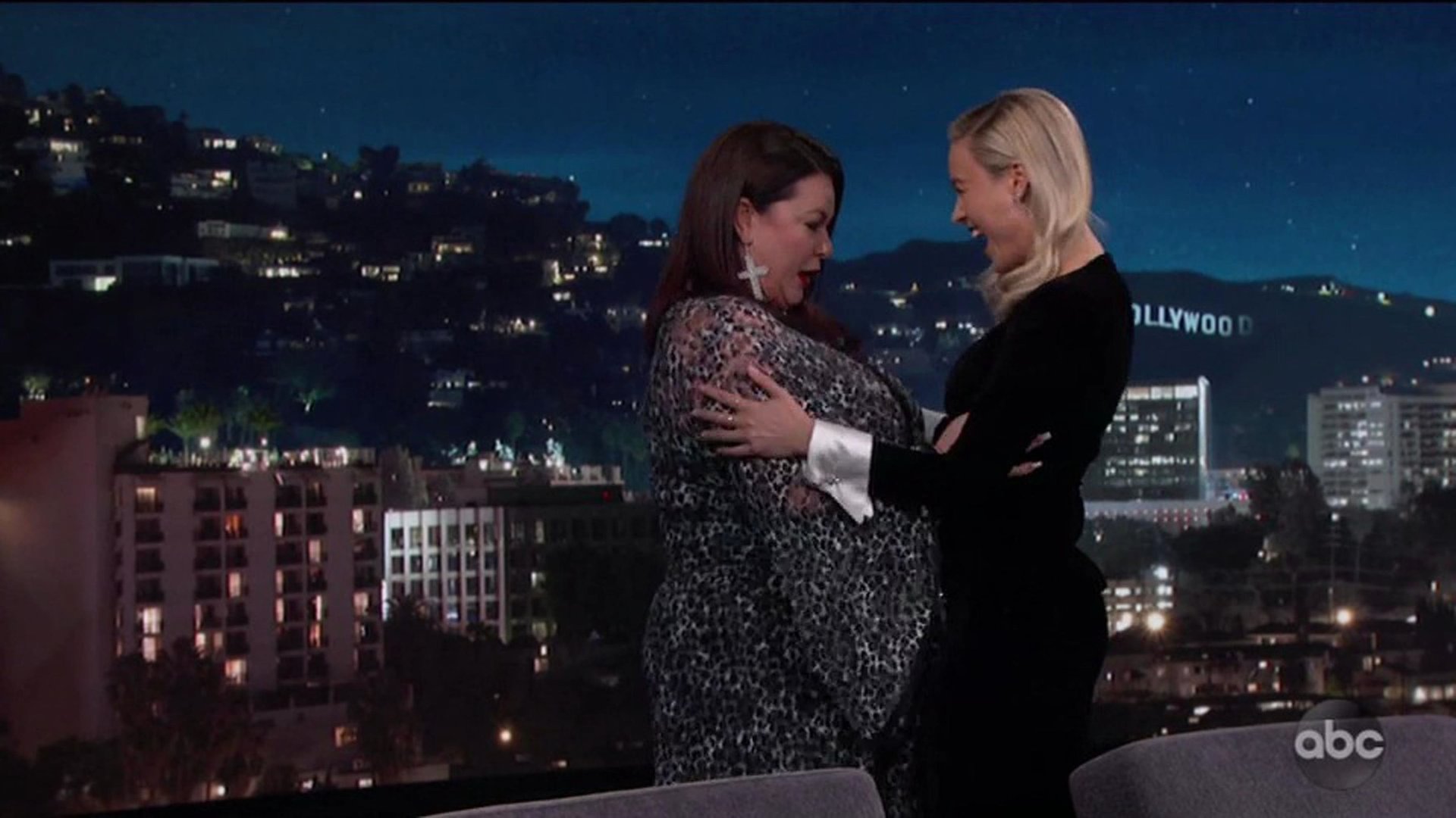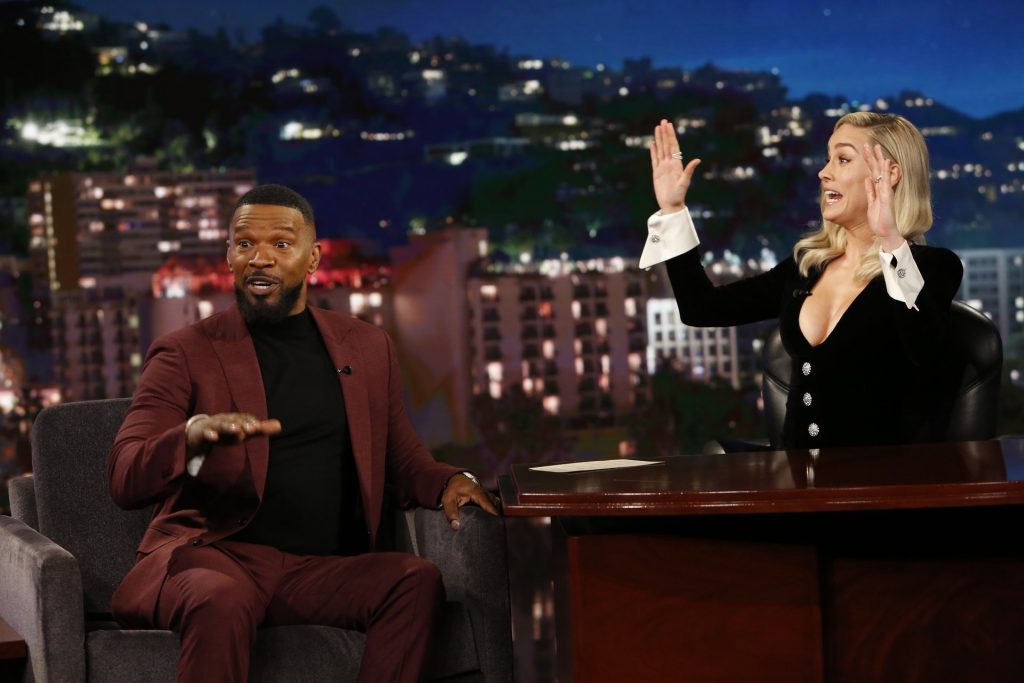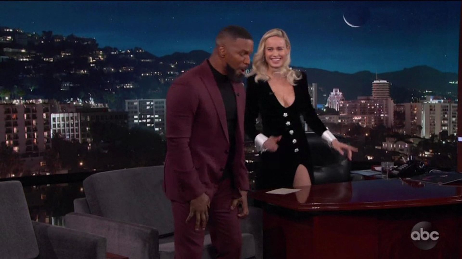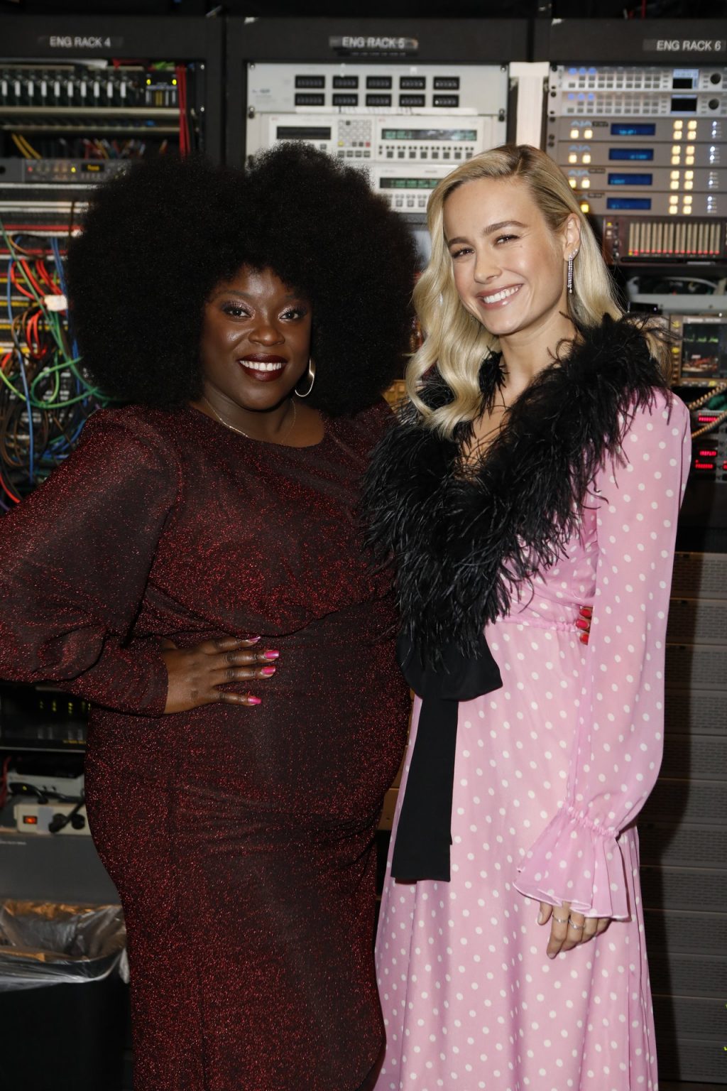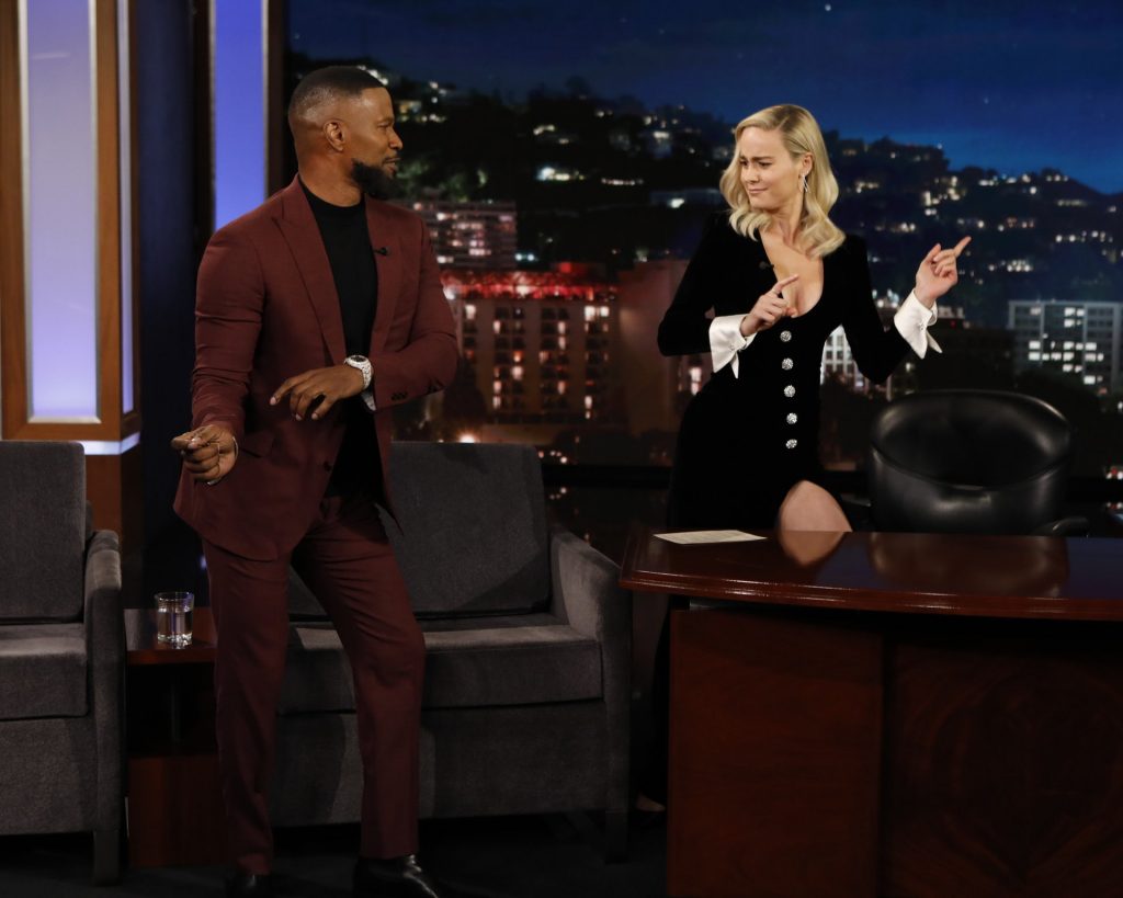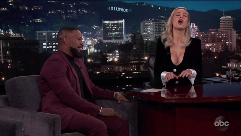 Molly confirmou que esse era seu superpoder, fazendo Brie apontar para seu vestido e brincar: “Eu facilitei muito para você! Aqui está!” Molly então disse a ela: “Você é um 30F, que é de triplo D a G, mas não é isso que você está comprando.” Uma Brie surpresa respondeu: “Eu não acredito nisso!” Molly então acrescentou: “Você está comprando algo como 34Ds,” ao que Brie respondeu: “Nossa!” Molly então perguntou: “É isso que você está comprando?” e a estrela confirmou: “Sim!” Depois que Molly reclamou que ‘ninguém na América sabe os tamanhos de sutiã’, Brie tirou uma foto de Taylor Swift no novo filme Cats e disse: “Tenho uma curva para você. Qual é o tamanho do sutiã dela?” Molly respondeu rindo: “Ela é um pouco menor, é um D.” Brie, que tinha feito piada sobre o novo filme Cats no monólogo de abertura do programa, perguntou: “Você está levando em conta a pelagem?” ao que Molly disse: “Oh sim.” Também no programa, Brie entrevistou seu co-estrela de Just Mercy, Jamie Foxx, que também comentou sobre sua aparência, dizendo: “Você está incrível, você é linda!”