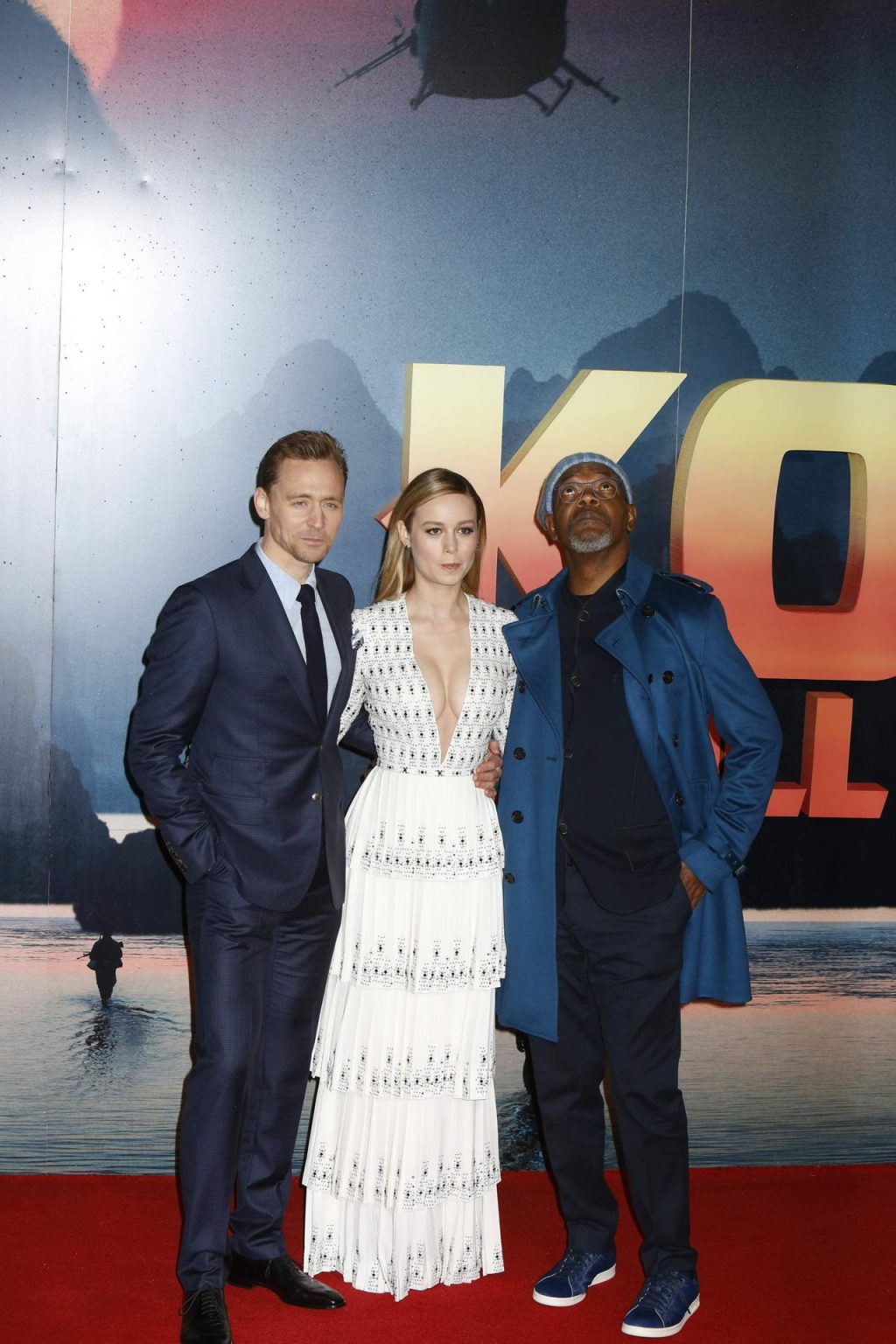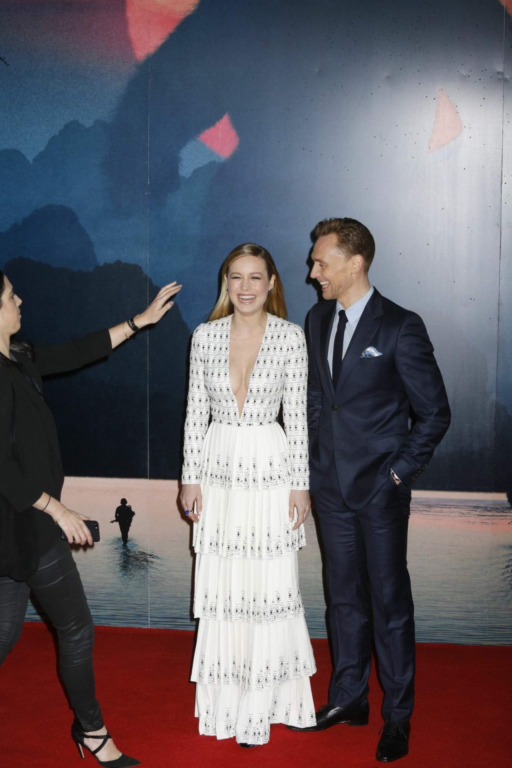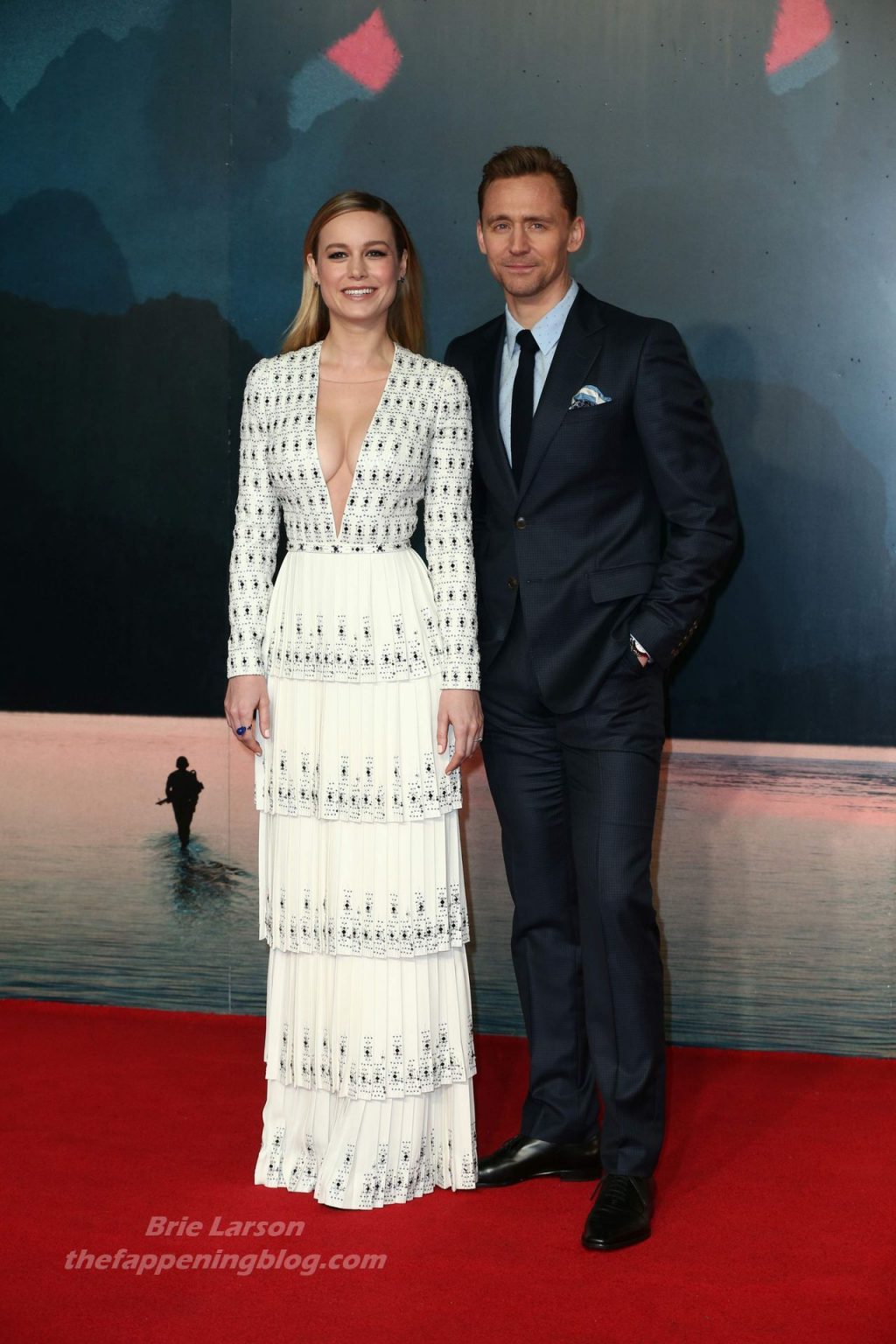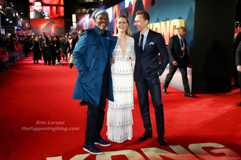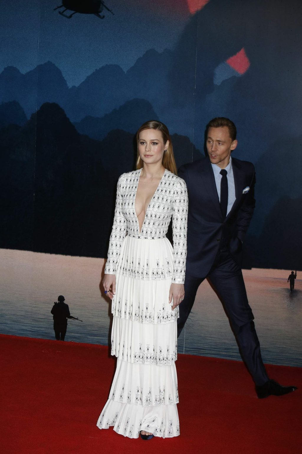 A estrela de The Fappening e atriz Brie Larson exibe seu decote no tapete vermelho da estreia europeia de “Kong: Ilha da Caveira” em Londres, 28/02/2017.