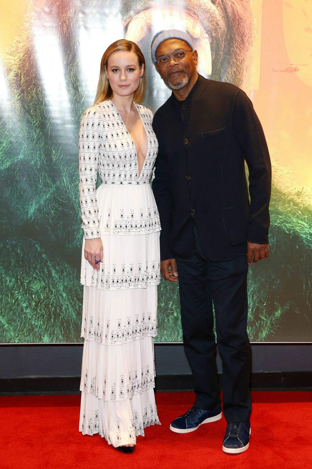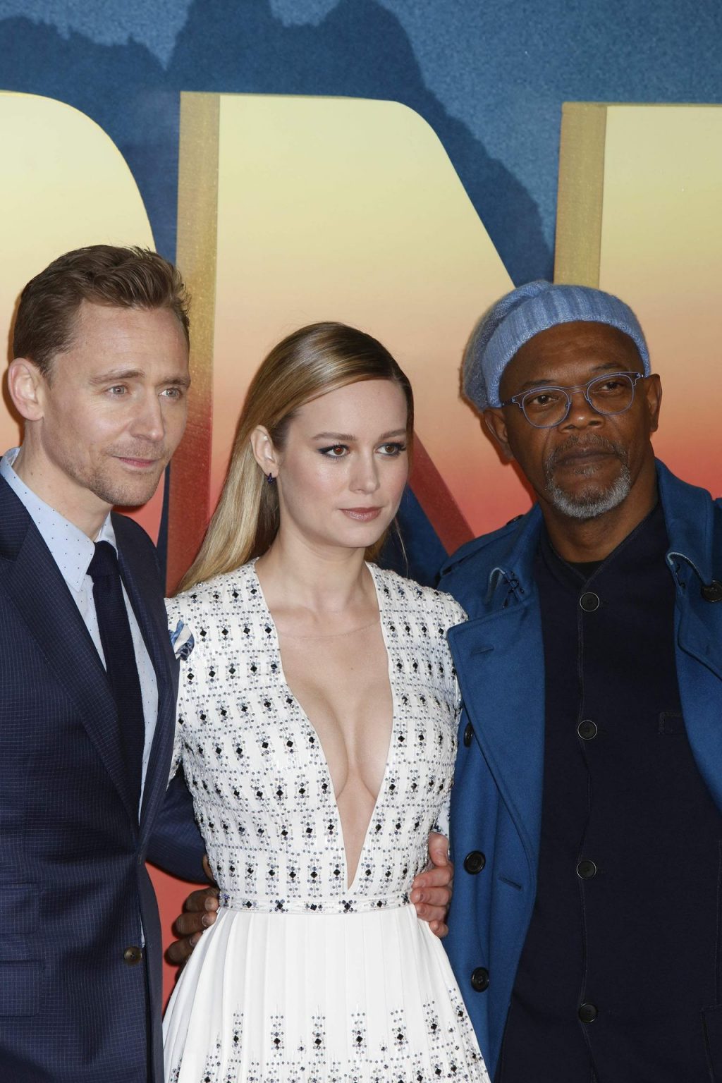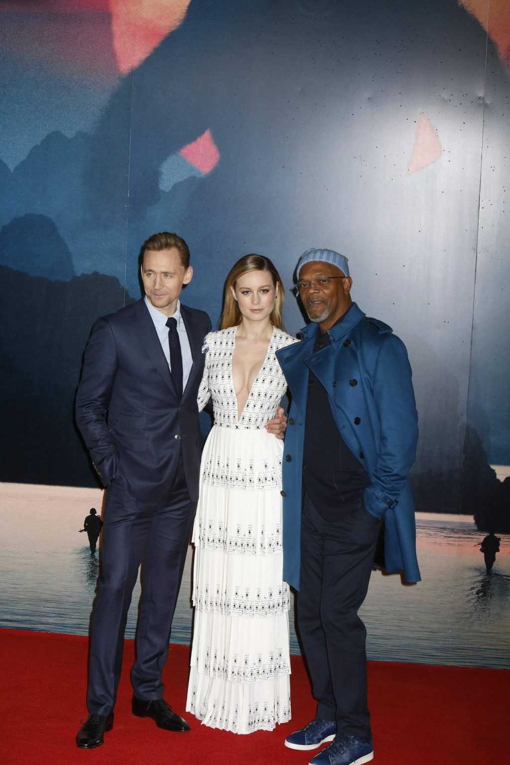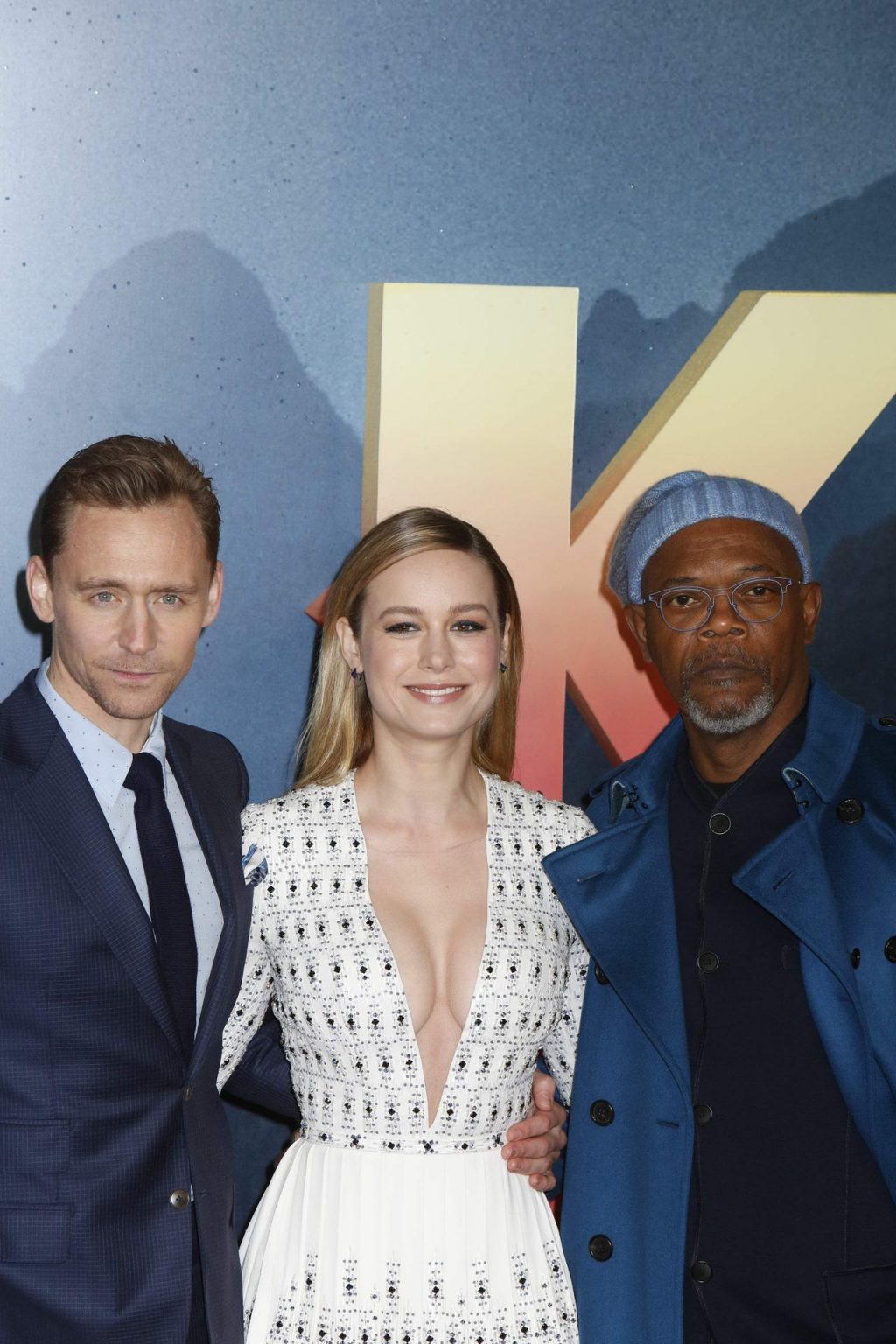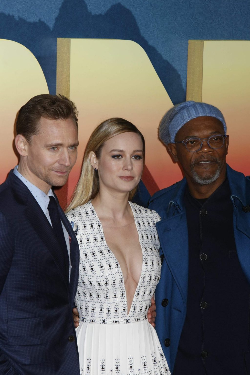 A estrela de The Fappening e atriz Brie Larson exibe seu decote no tapete vermelho da estreia europeia de “Kong: Ilha da Caveira” em Londres, 28/02/2017.