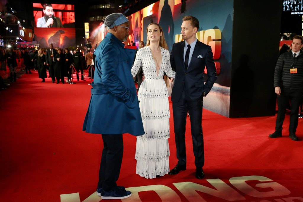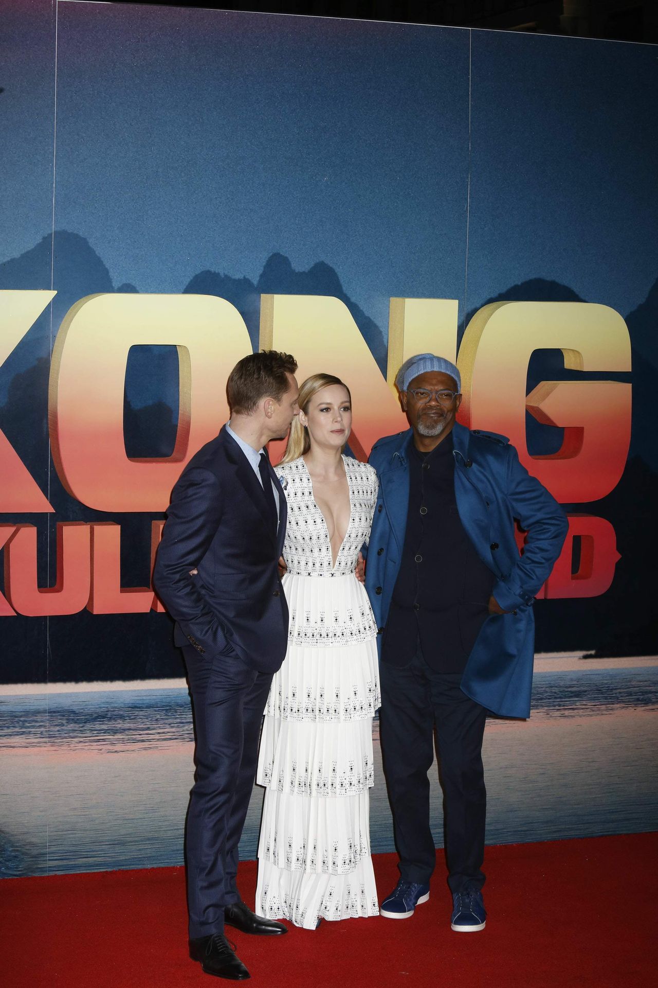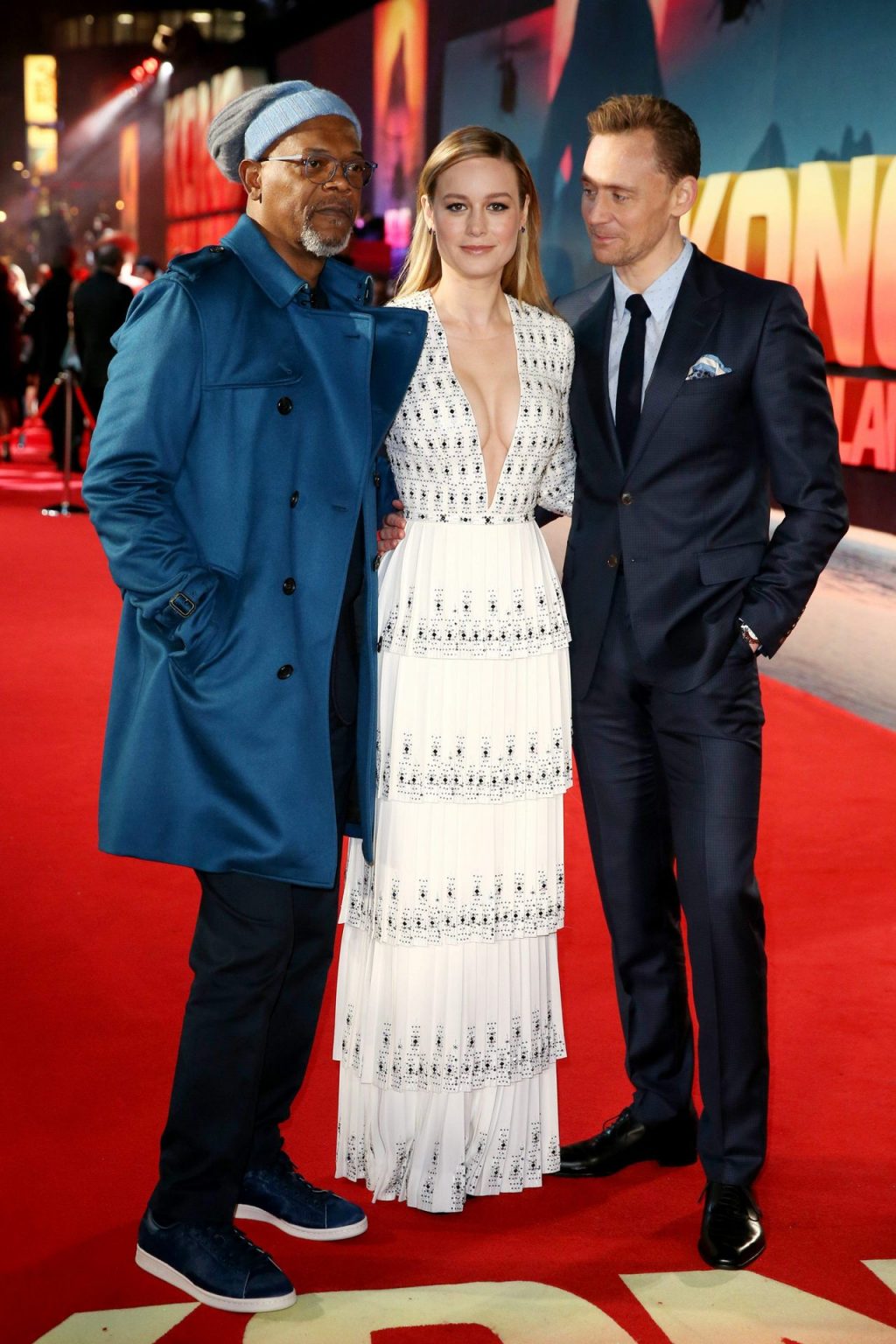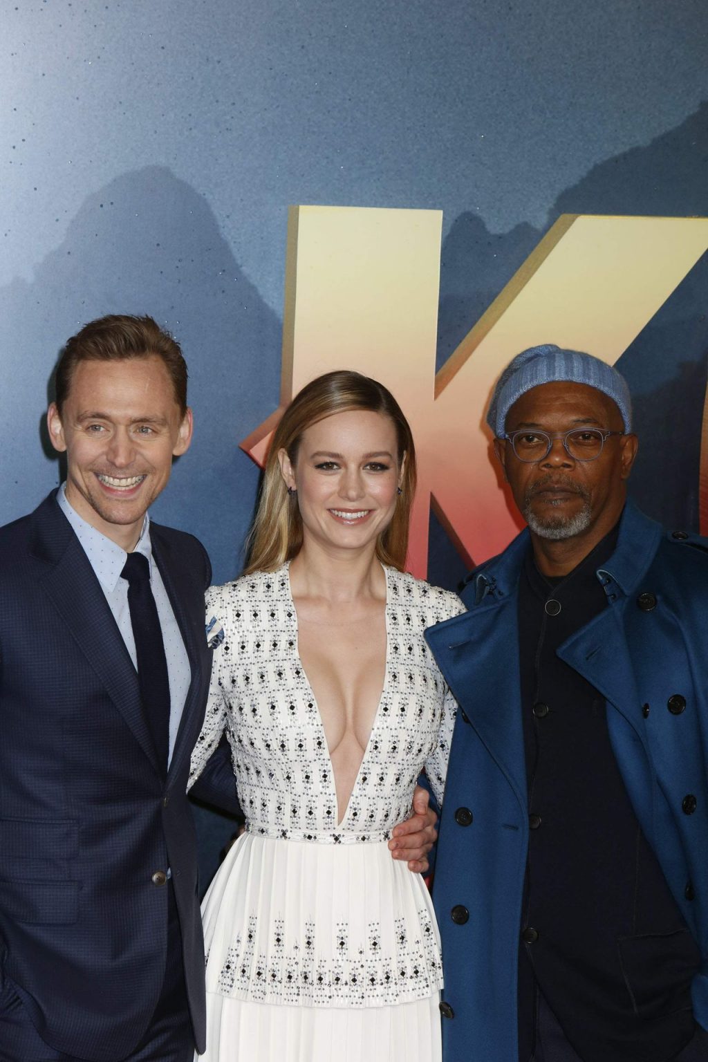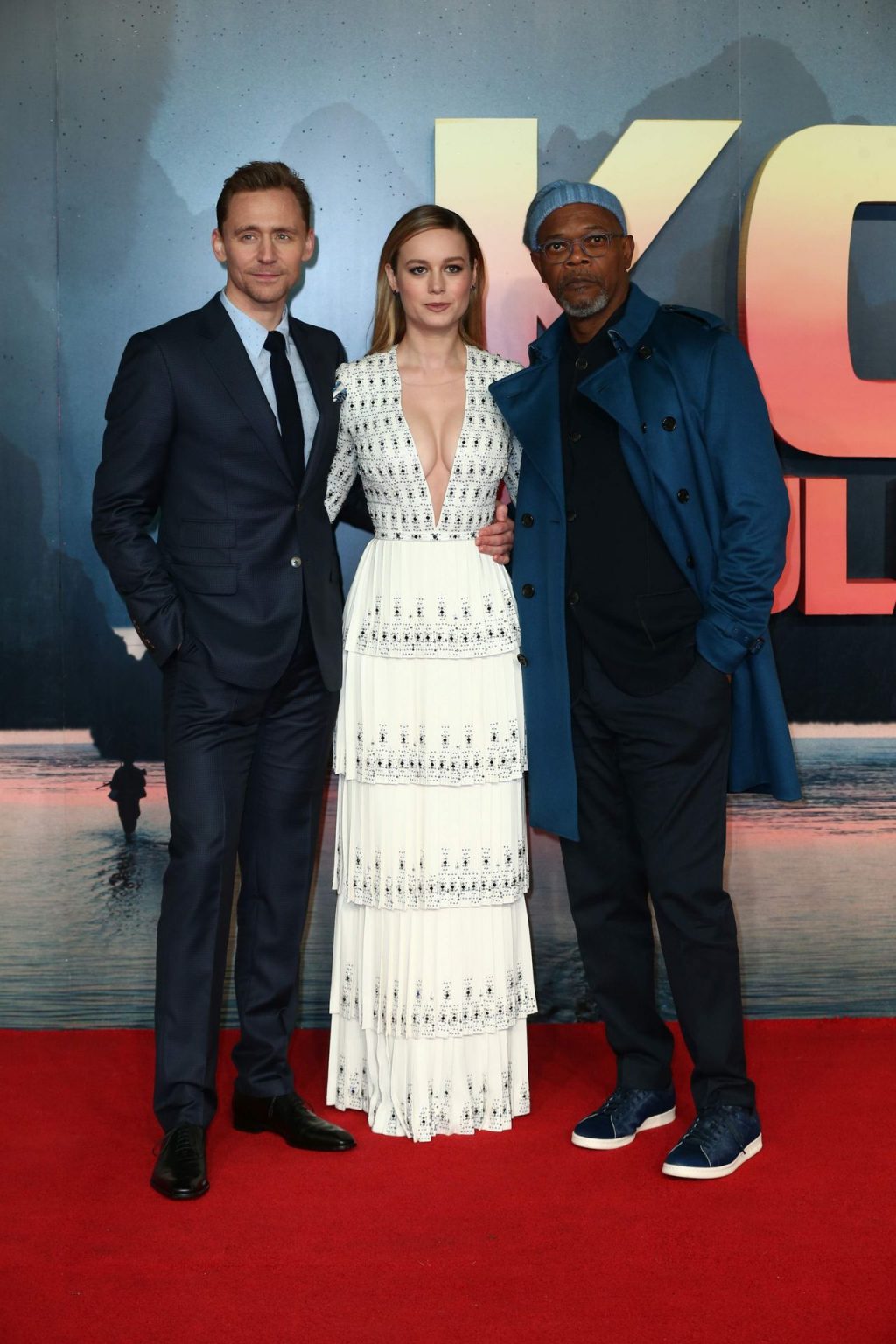 A estrela de The Fappening e atriz Brie Larson exibe seu decote no tapete vermelho da estreia europeia de “Kong: Ilha da Caveira” em Londres, 28/02/2017.