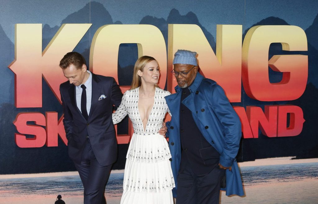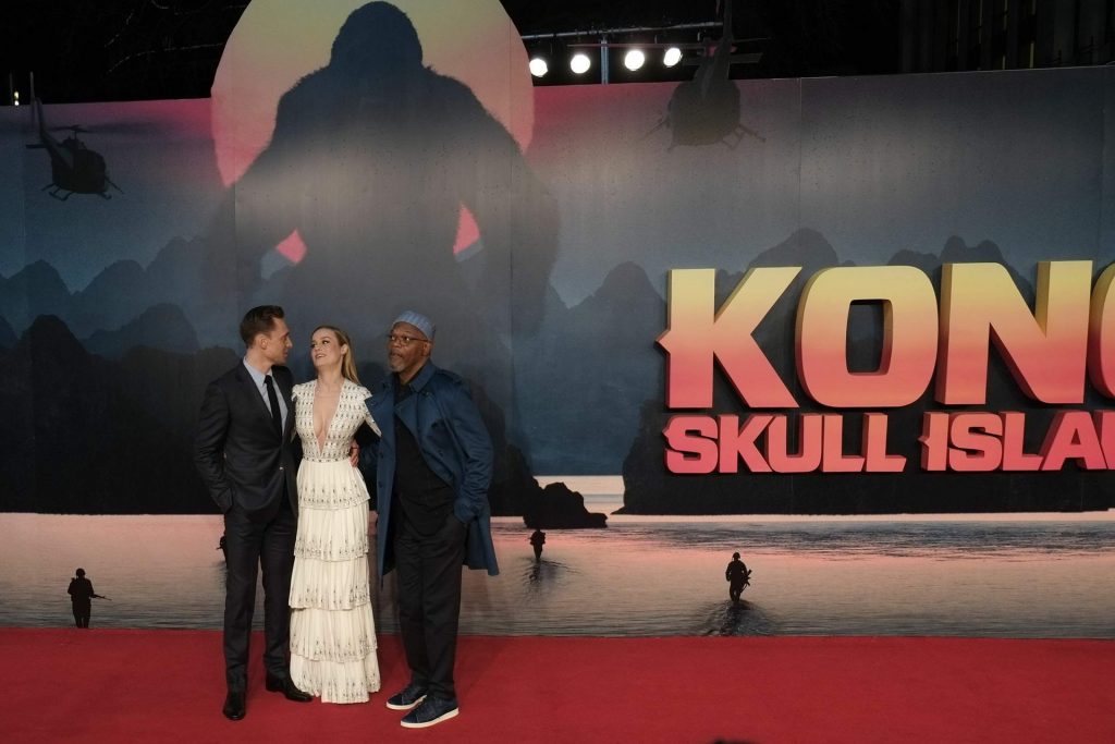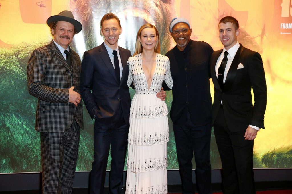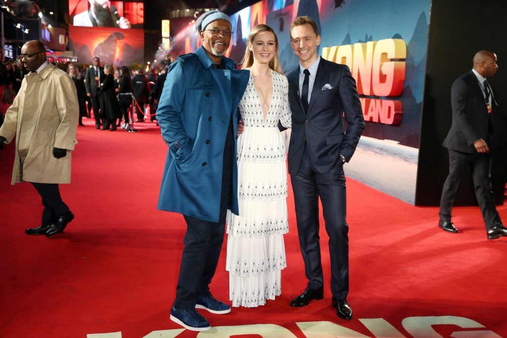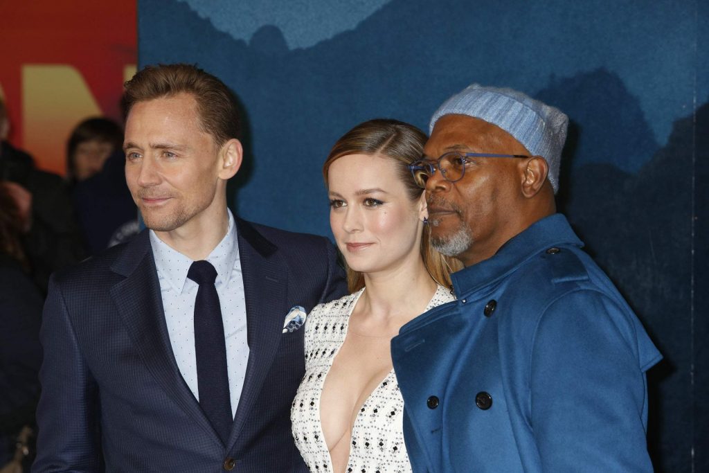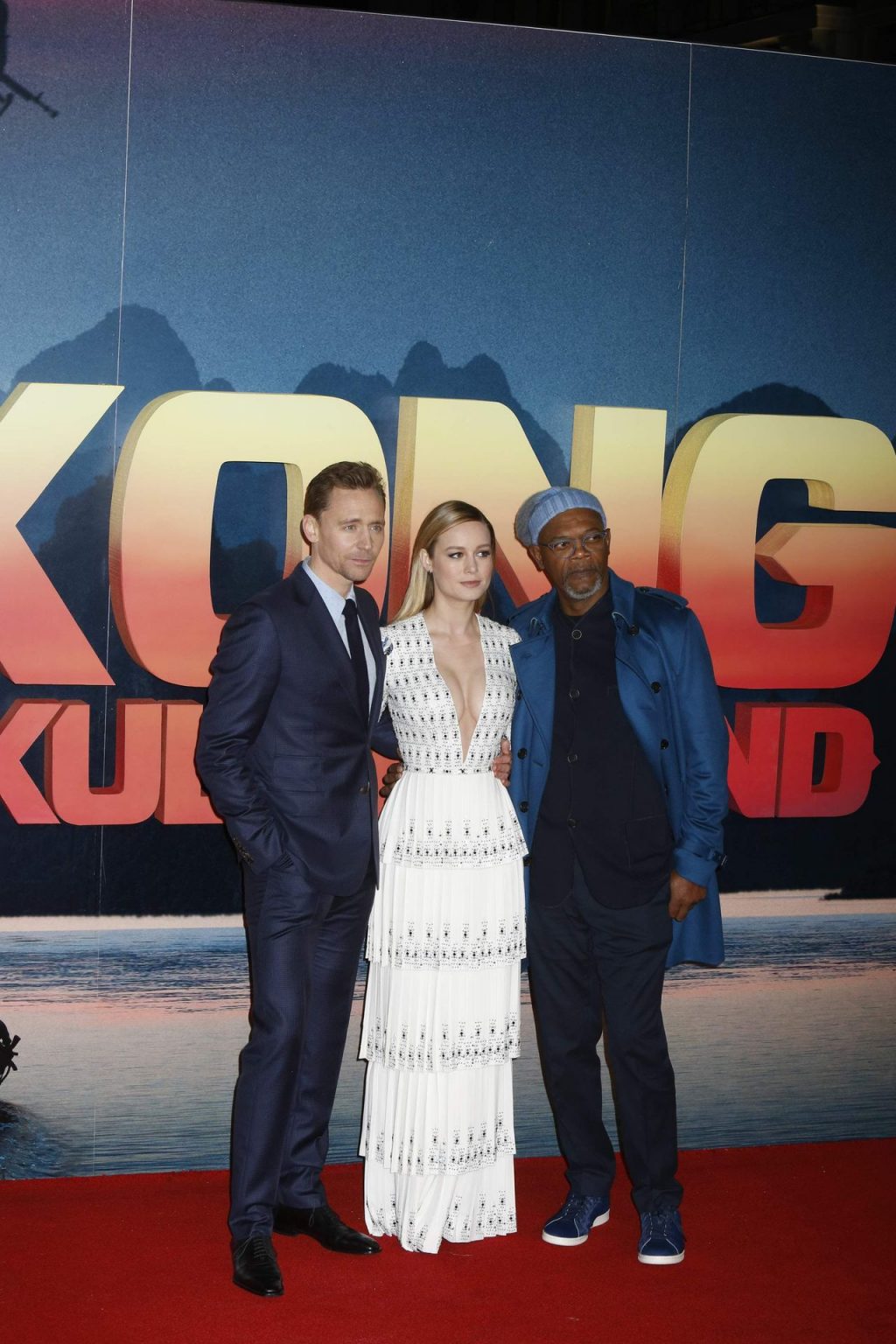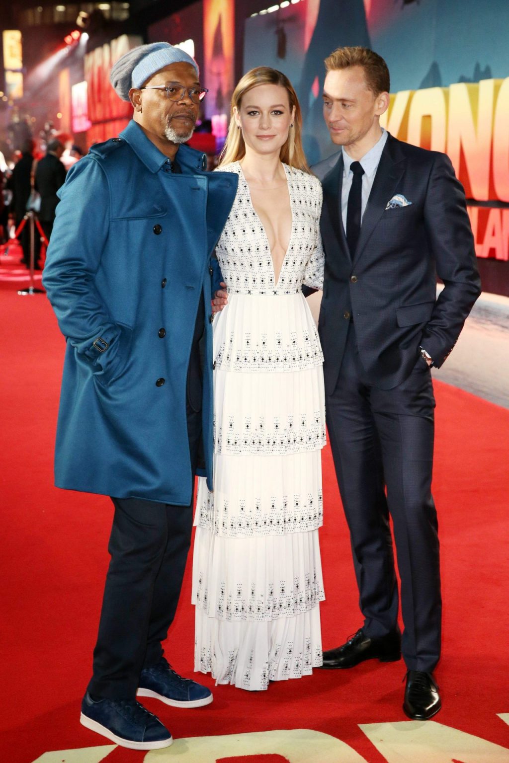 A estrela de The Fappening e atriz Brie Larson exibe seu decote no tapete vermelho da estreia europeia de “Kong: Ilha da Caveira” em Londres, 28/02/2017.