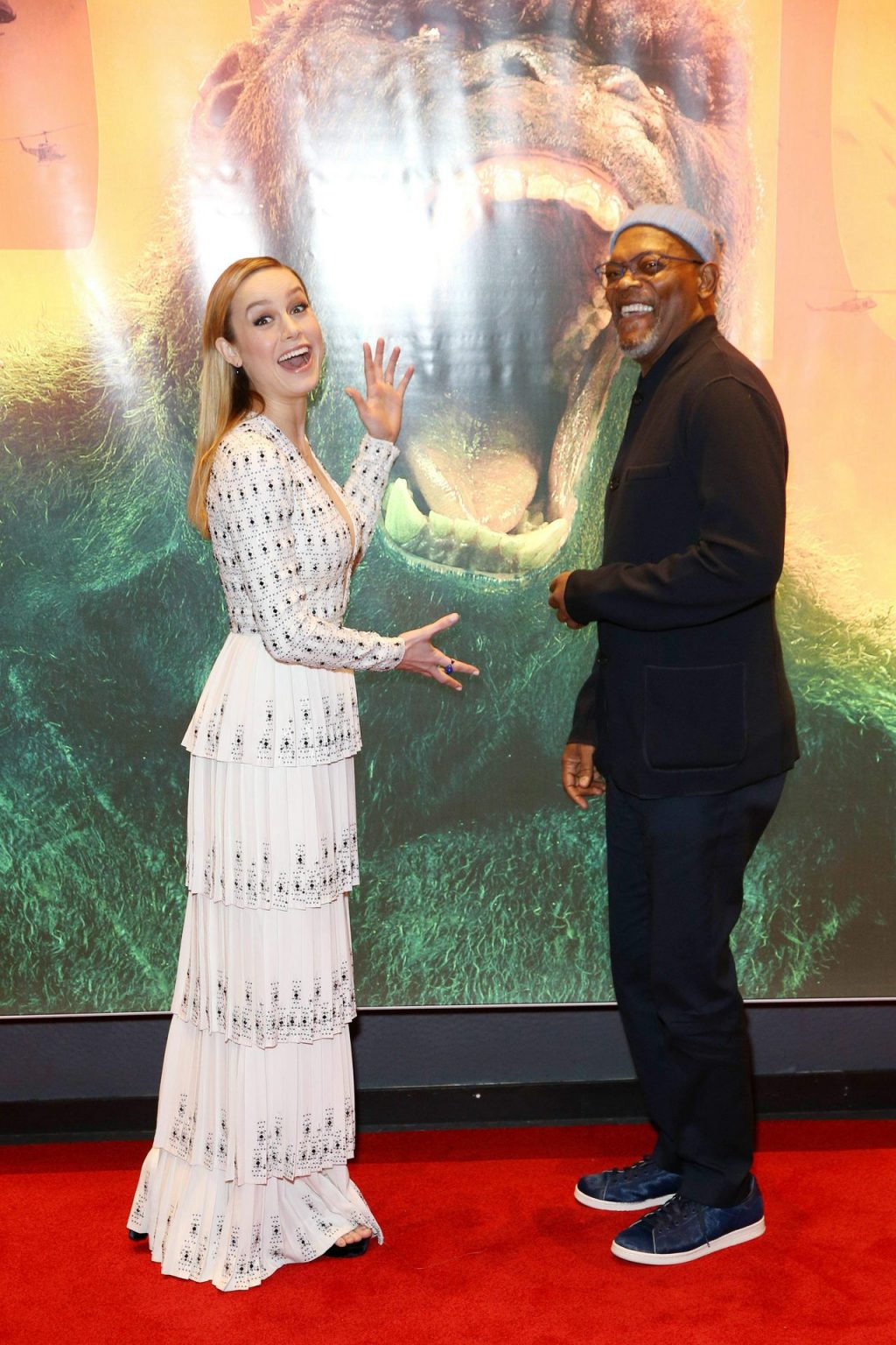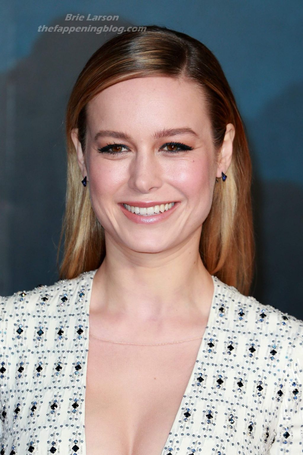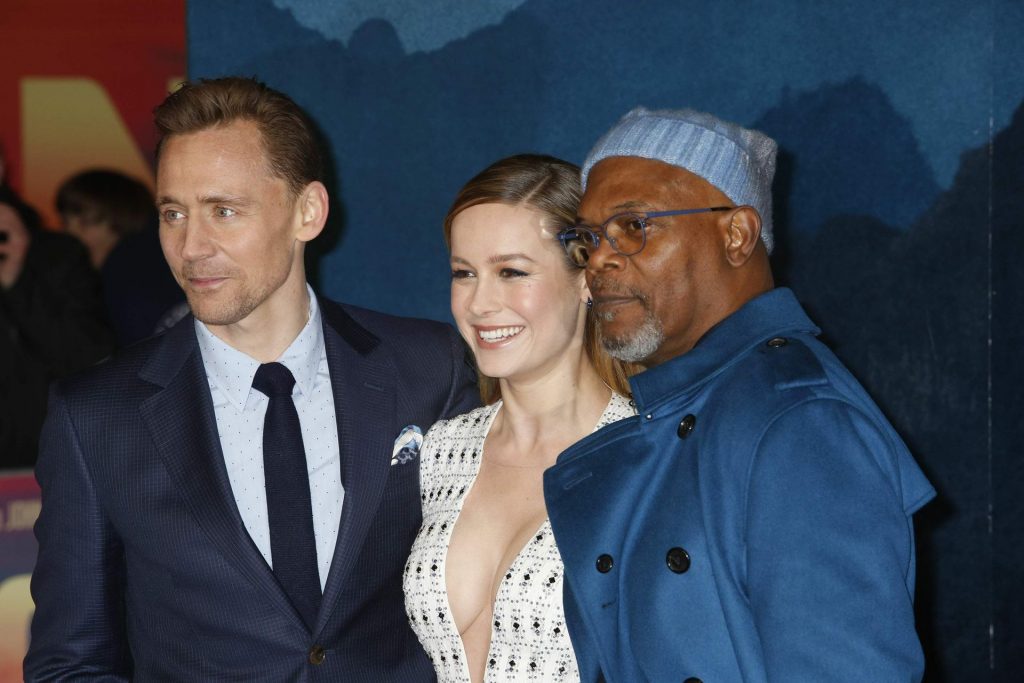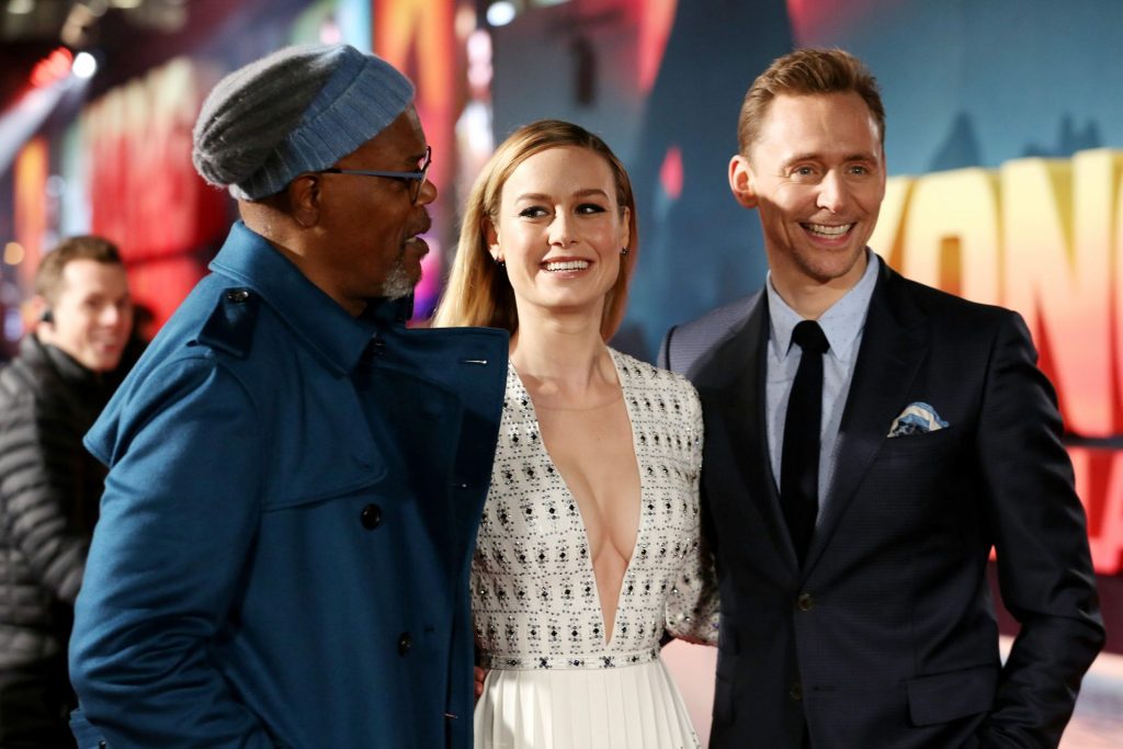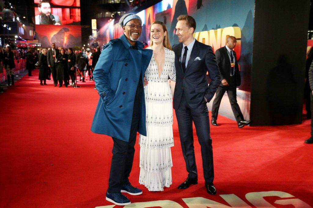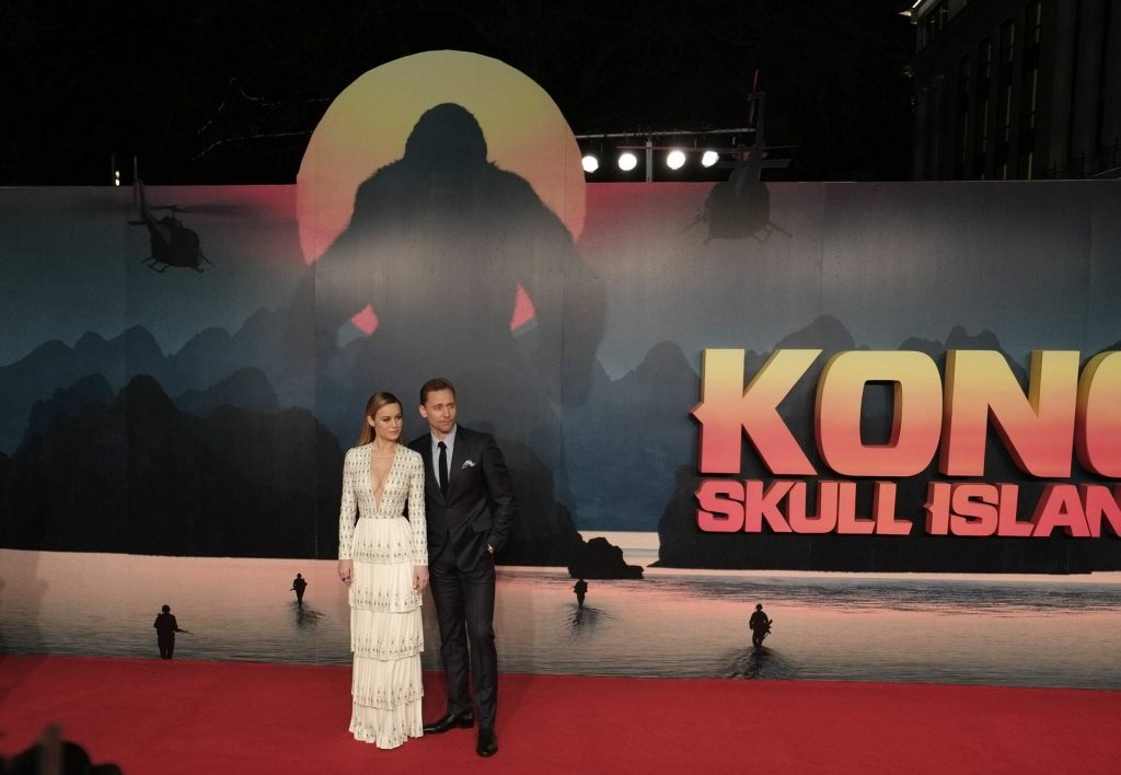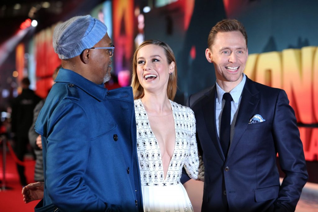 A estrela de The Fappening e atriz Brie Larson exibe seu decote no tapete vermelho da estreia europeia de “Kong: Ilha da Caveira” em Londres, 28/02/2017.