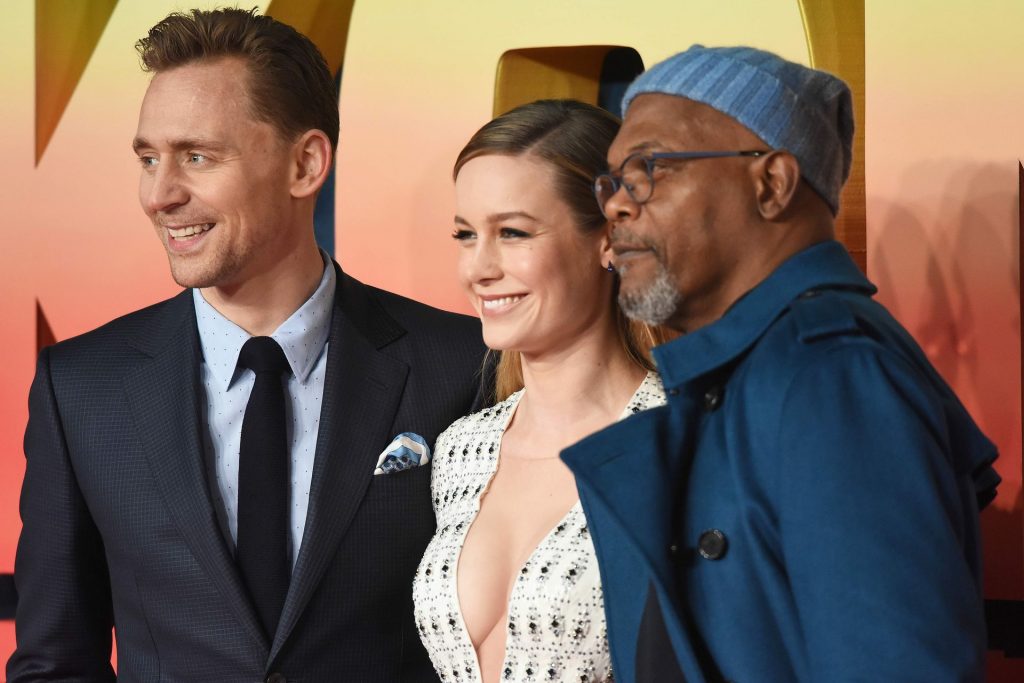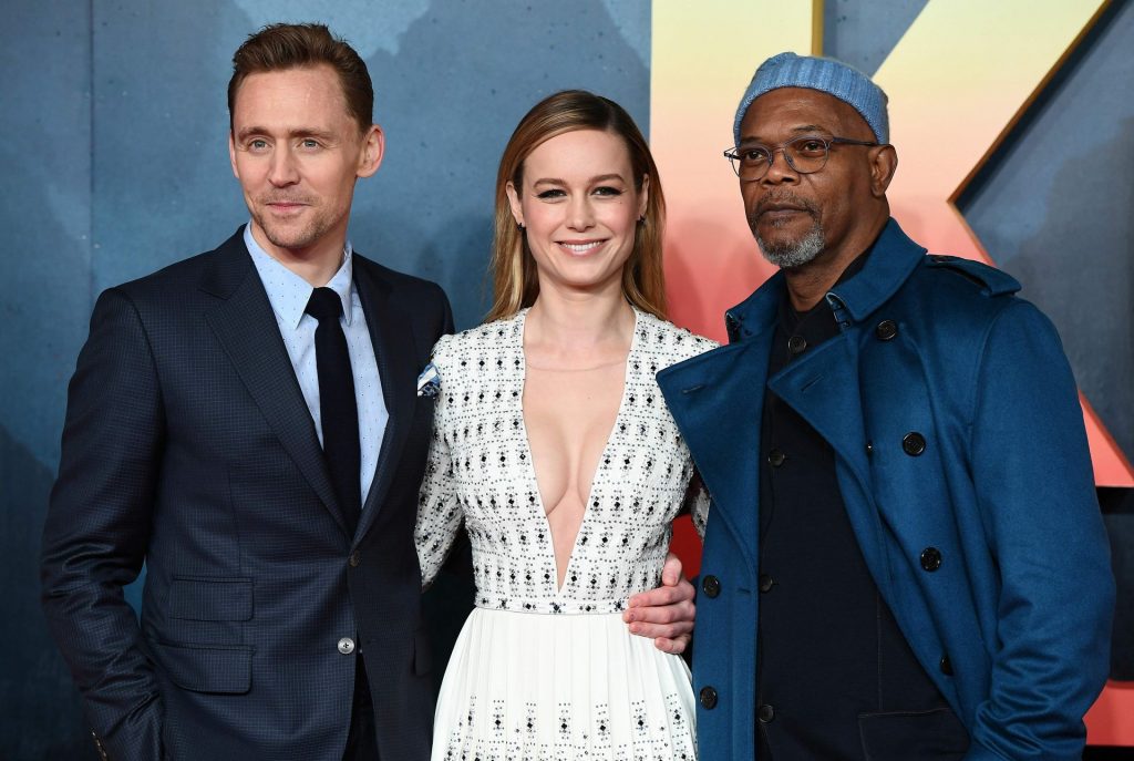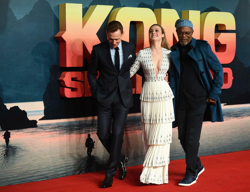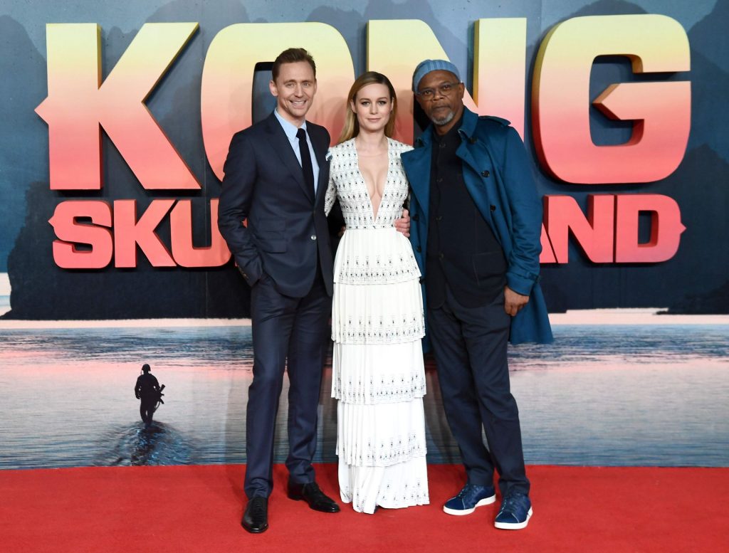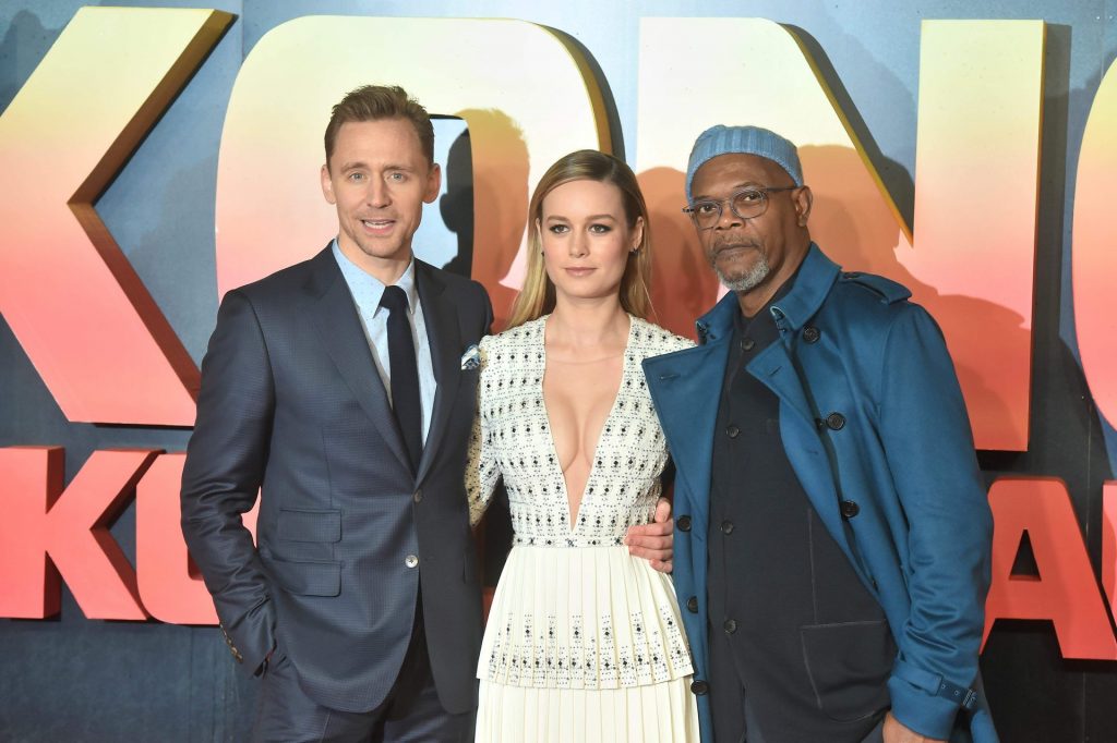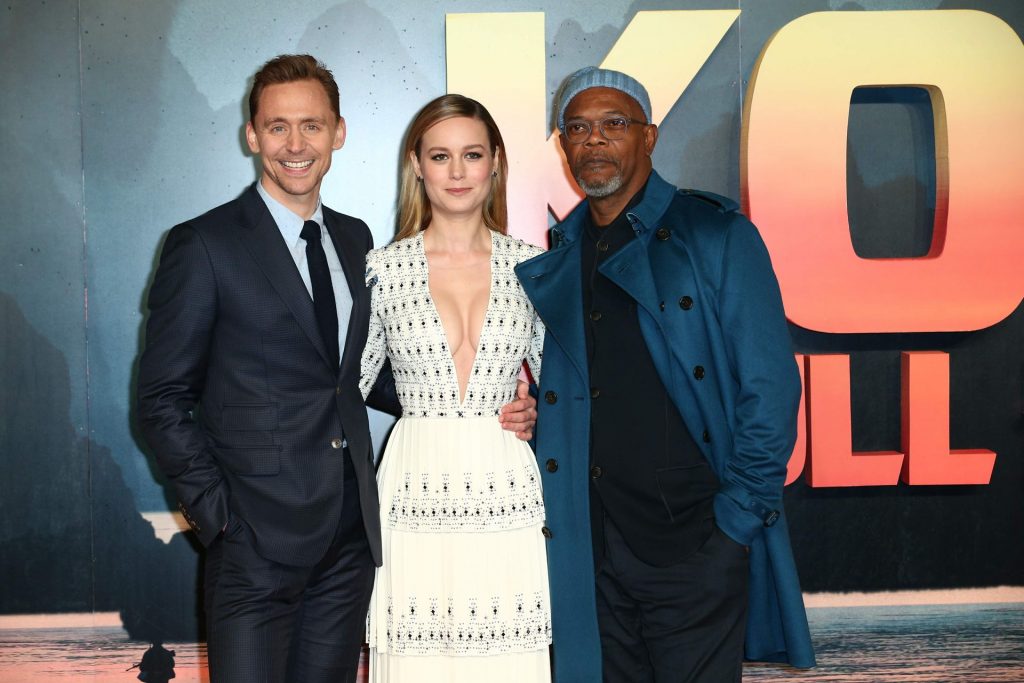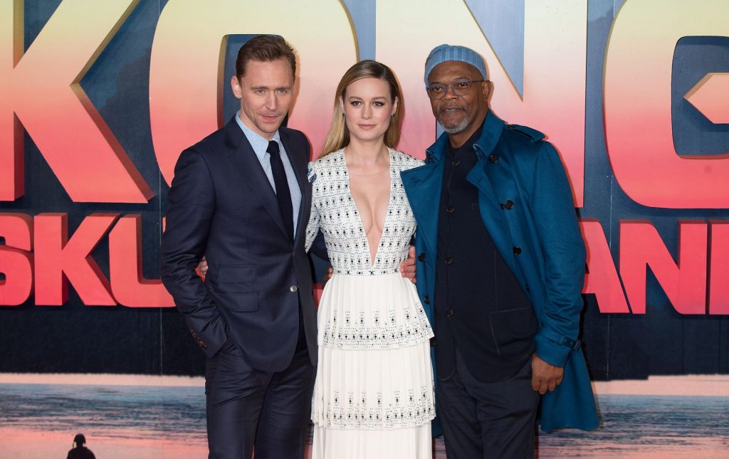 A estrela de The Fappening e atriz Brie Larson exibe seu decote no tapete vermelho da estreia europeia de “Kong: Ilha da Caveira” em Londres, 28/02/2017.