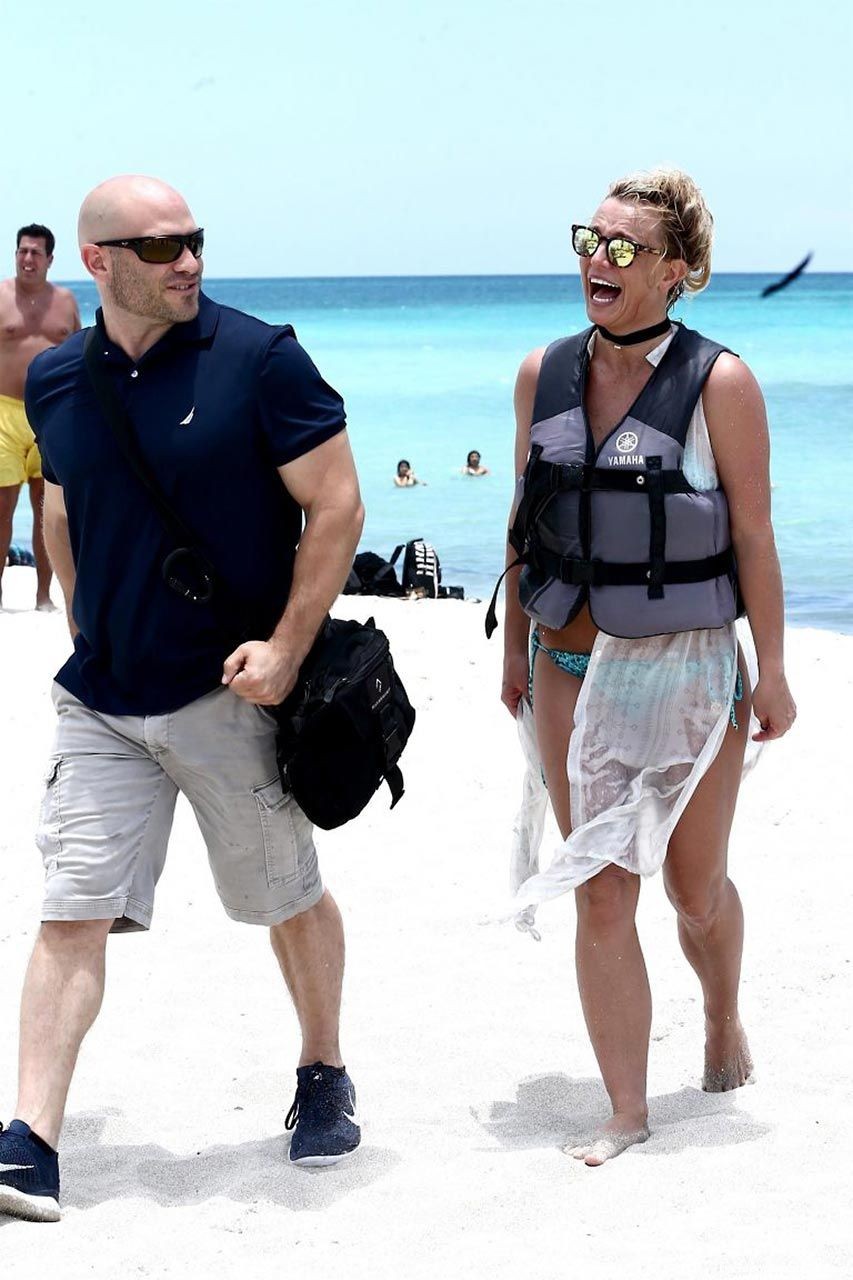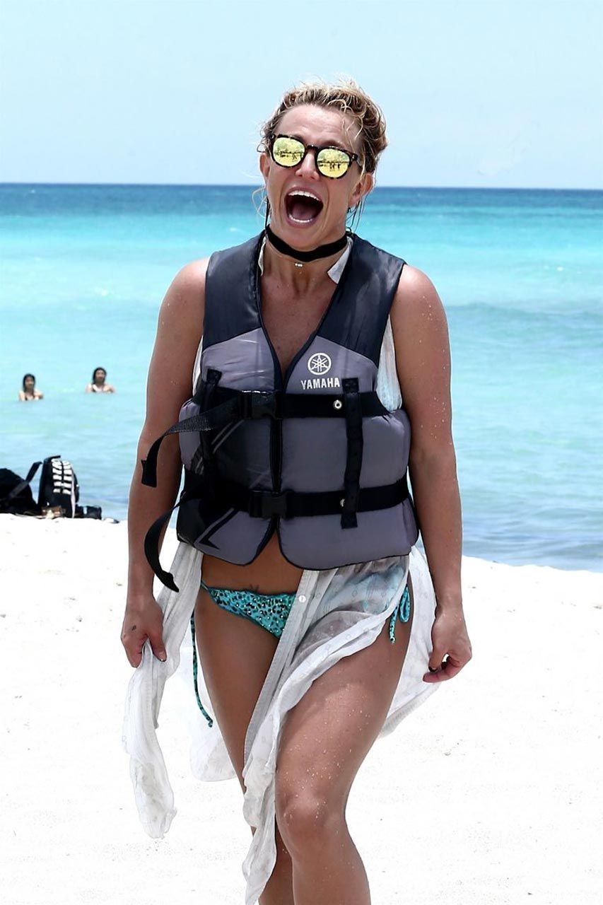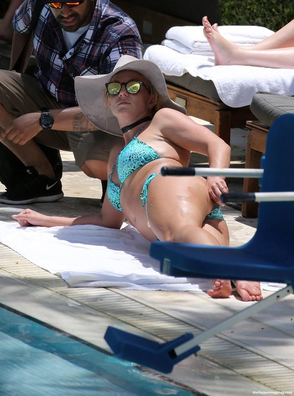 Britney Spears’s bikini photos are here, and she’s looking quite good comparing how we’re used to seeing her drunk & disgusting! The famous singer was sunbathing and enjoying the day at the poolside in Miami. So you can see her wet ass and nice figure here! Then Britney Spears went to ride a jet ski and had a slight bikini malfunction. Her panties are so unnecessary here, so she pulled them out of her ass, and the paparazzi almost saw her pussy! We aren’t happy that much, so all you will see are Spears in a bikini!