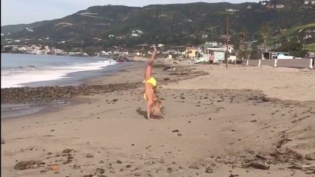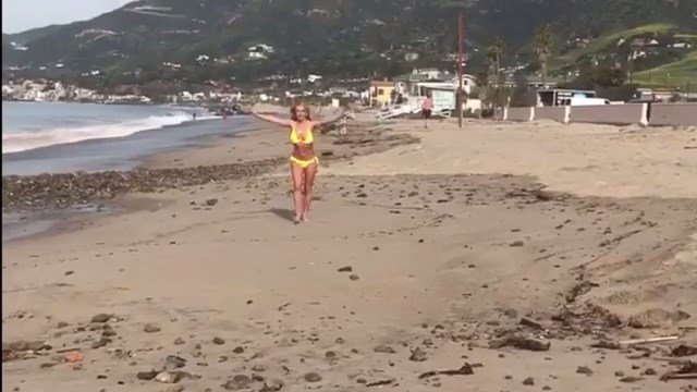 Britney Spears usa um biquíni amarelo na praia – Instagram, 10/03/2017. Britney Spears é uma cantora, compositora e atriz de McComb (Condado de Pike, Mississippi, EUA). Idade – 35 (2 de dezembro de 1981).