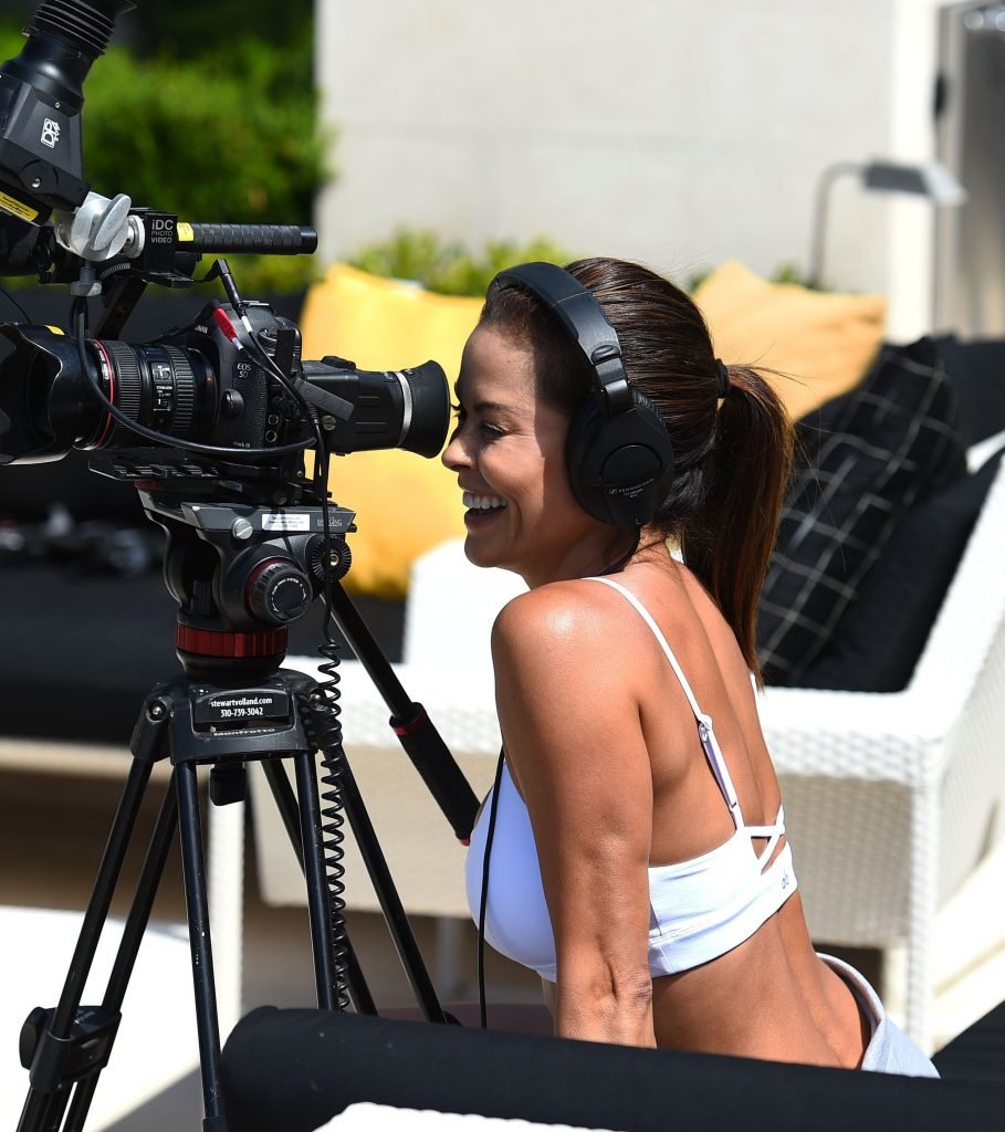 Brooke Burke-Charvet continua trabalhando na produção de seu novo aplicativo de estilo de vida fitness Brooke Burke Body em Newport Coast, 14/11/2017. A data de lançamento é 1º de dezembro. Brooke Charvet é uma atriz americana (Melissa and Joey), estrela de TV, modelo. Idade – 46 anos.