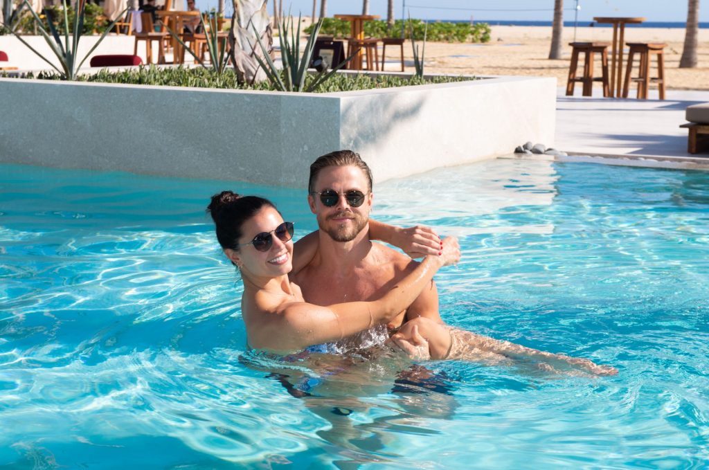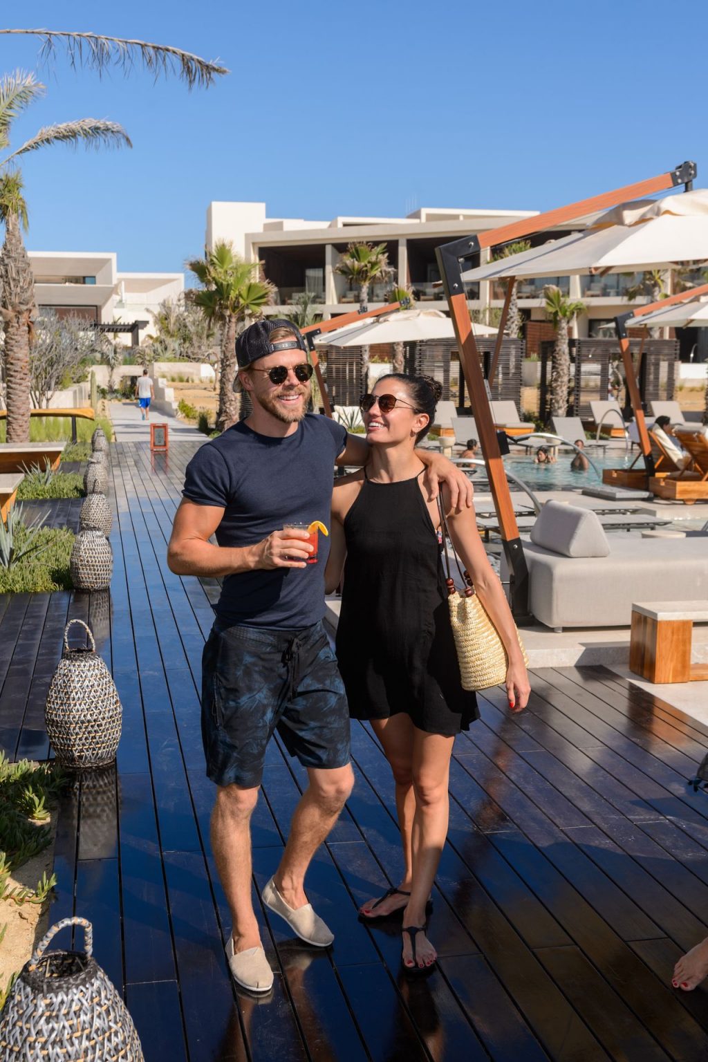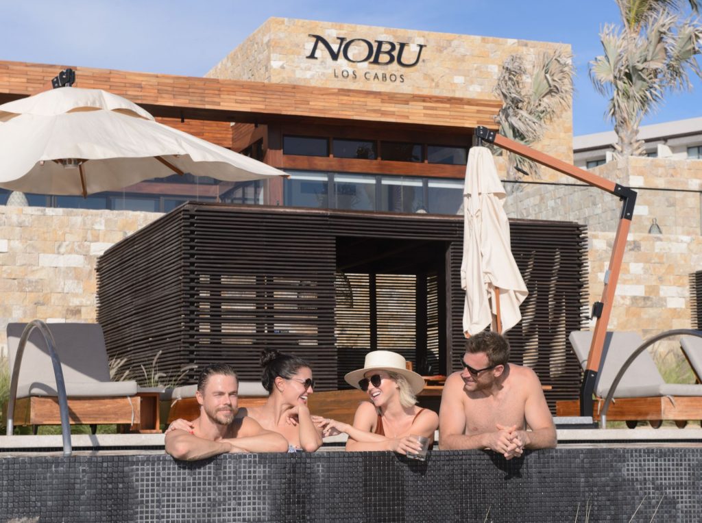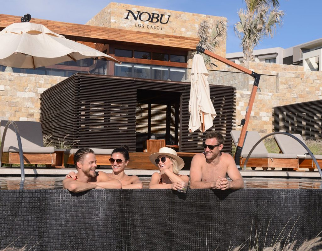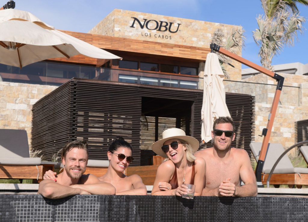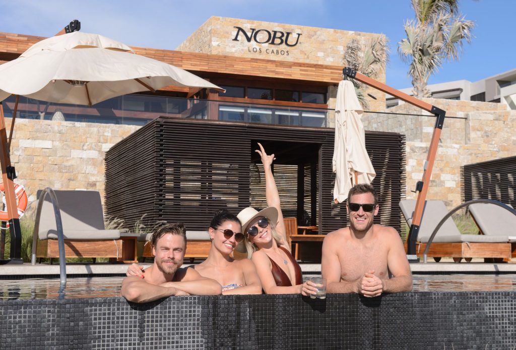 Os seis sexy foram vistos suando na academia do local para uma rápida sessão de treino antes de irem para suas cabanas privadas, onde desfrutaram de margaritas e camarão aguachile à beira da piscina. Depois de tomar sol e nadar o dia todo em uma das três piscinas do resort, todos se retiraram para o Esencia Spa para massagens de casal e sessões de hidroterapia. Quando o sol começou a se pôr, o grupo optou por coquetéis no pátio do restaurante Nobu para apreciar um deslumbrante pôr do sol em Cabo San Lucas em toda sua glória.