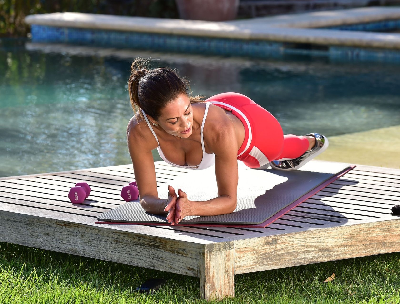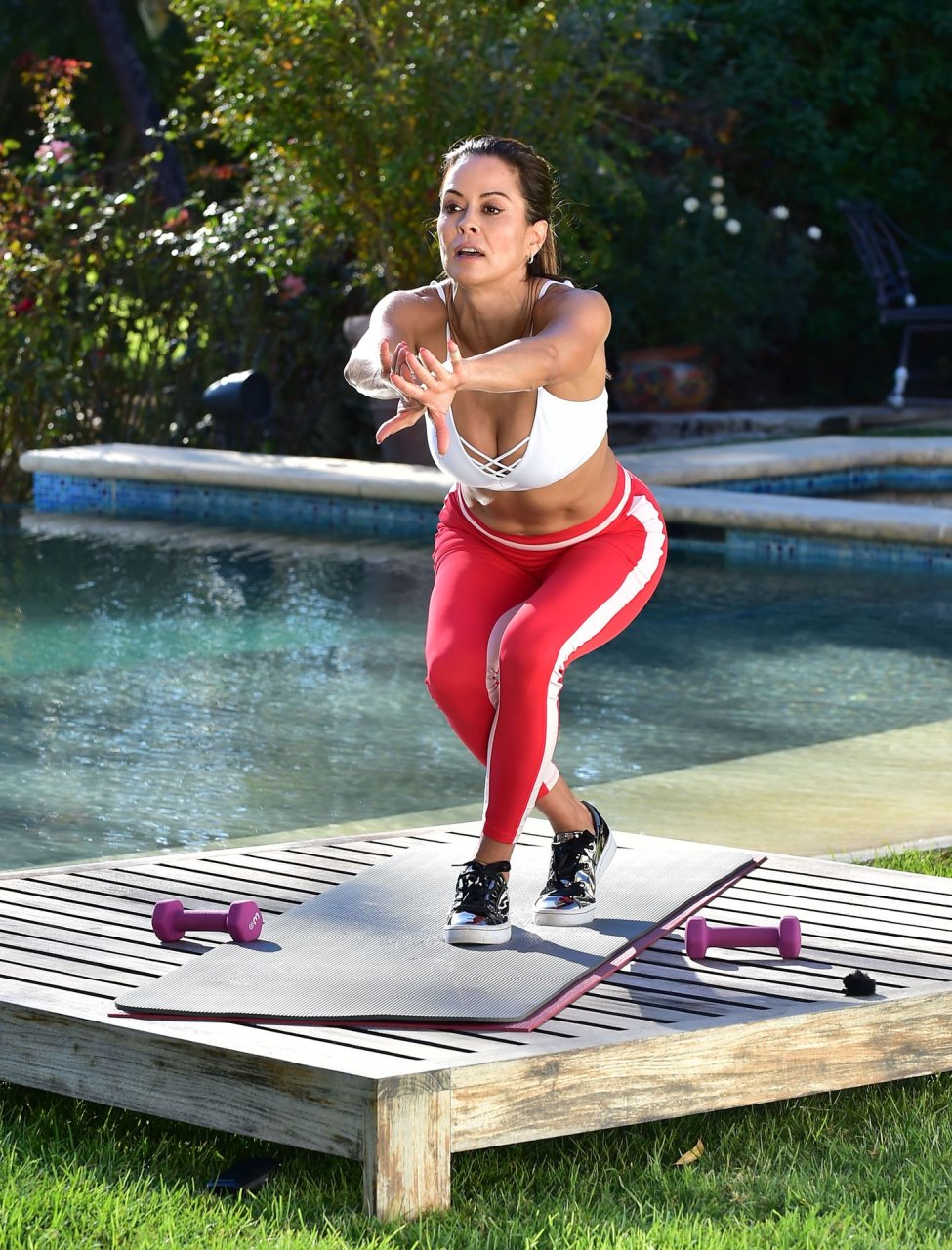 Linda mãe, atriz/modelo Brooke Burke-Charvet continua a promover seu aplicativo Brooke Burke Body posando em seu quintal em um ensaio fotográfico sexy, 12/02/2019.