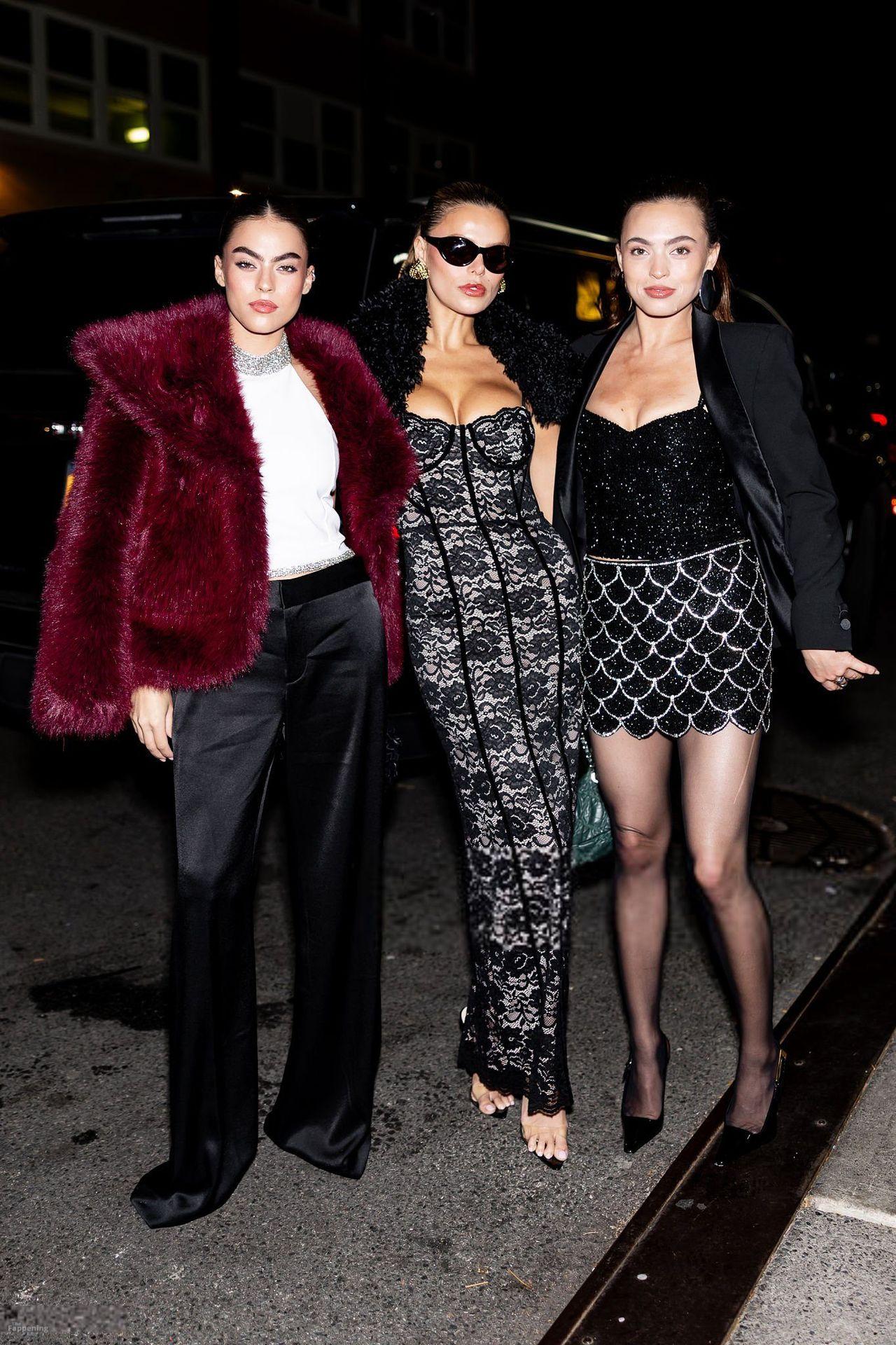 Brooks Nader exibe seus seios em um vestido corselete de renda transparente na festa Grateful Dead. Um público de peso lotou o Angel Orensanz em NYC para o lançamento da cápsula Alice + Olivia x Grateful Dead.