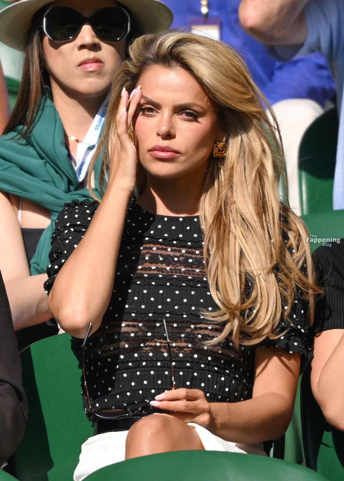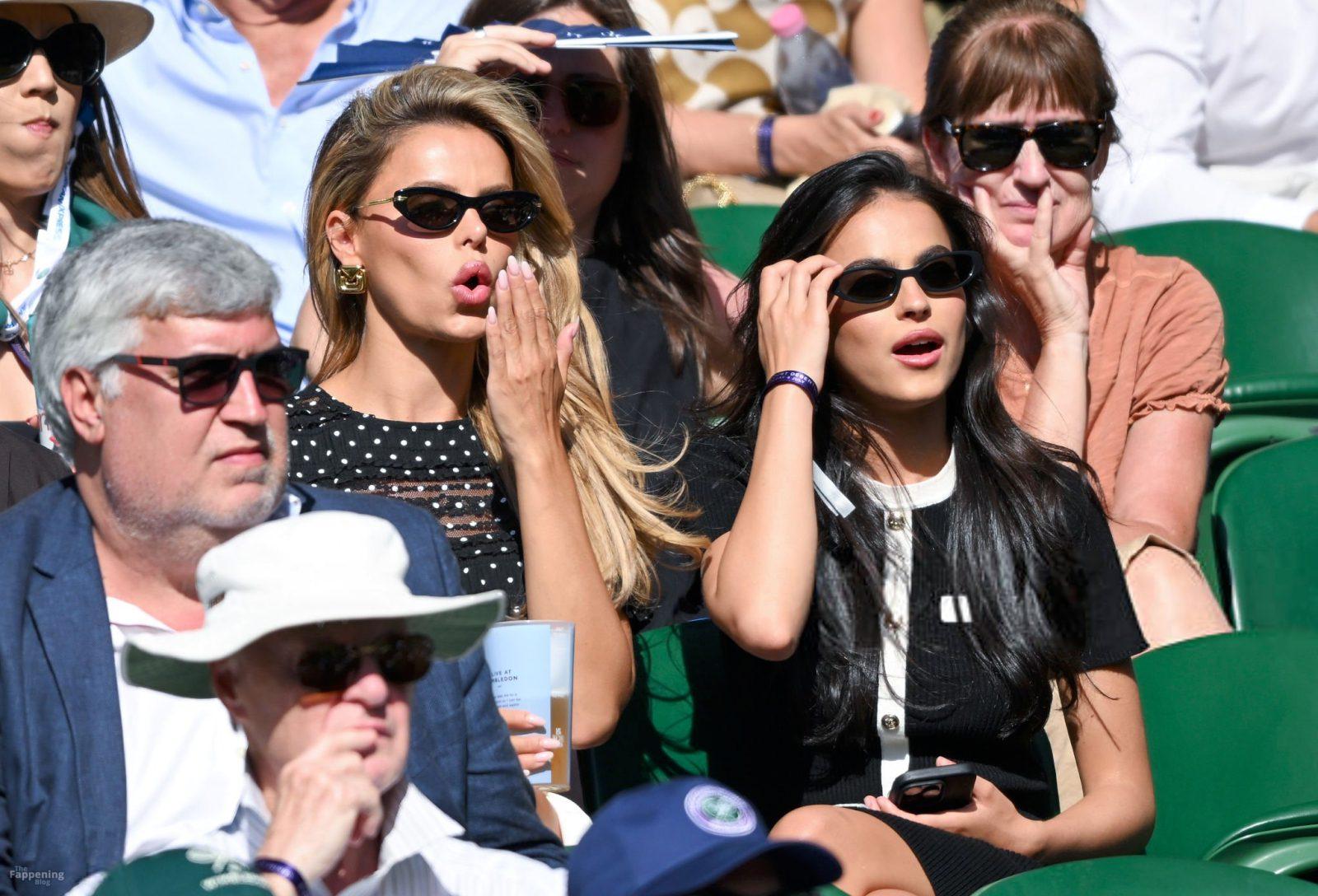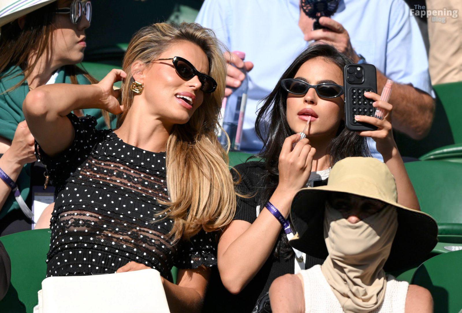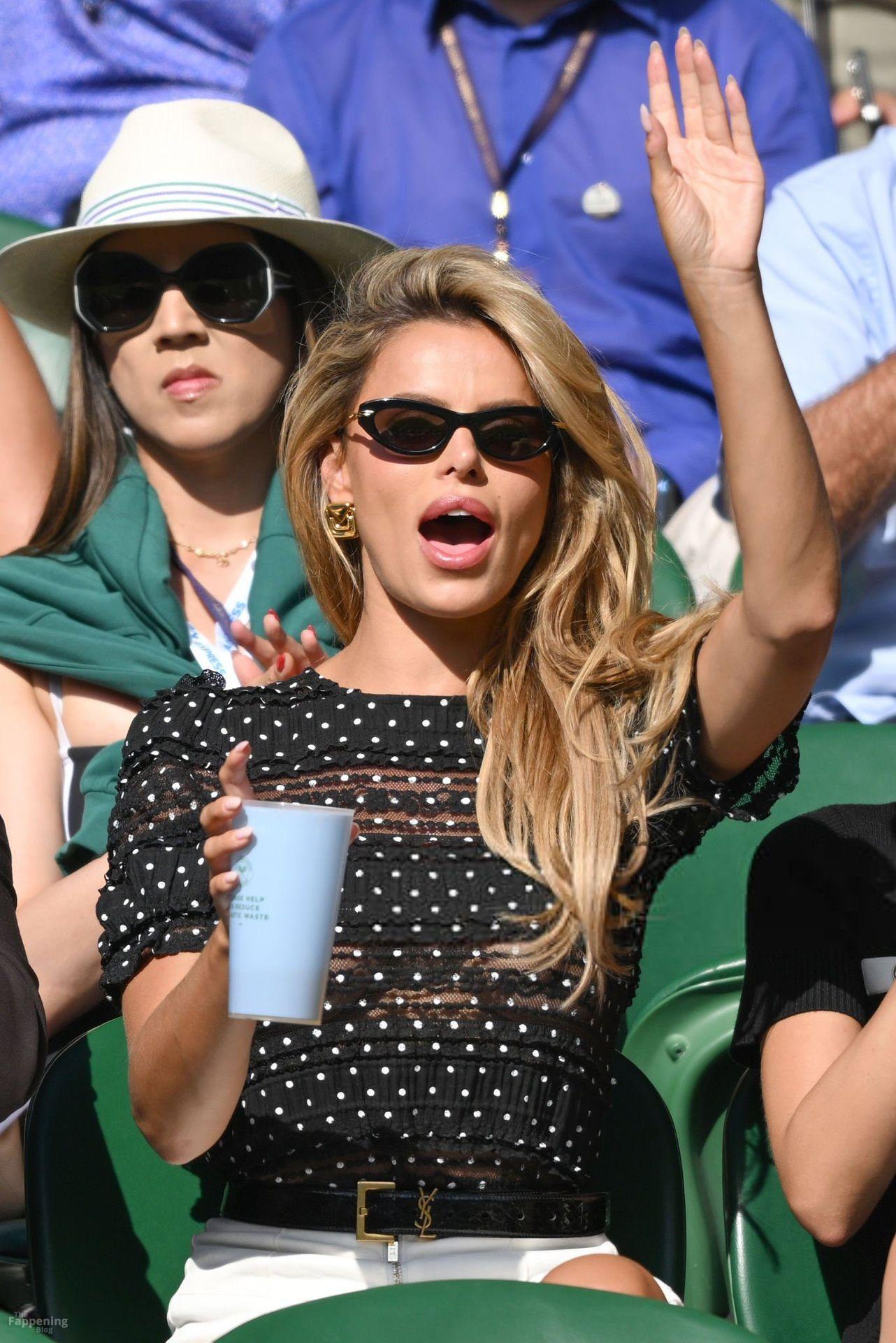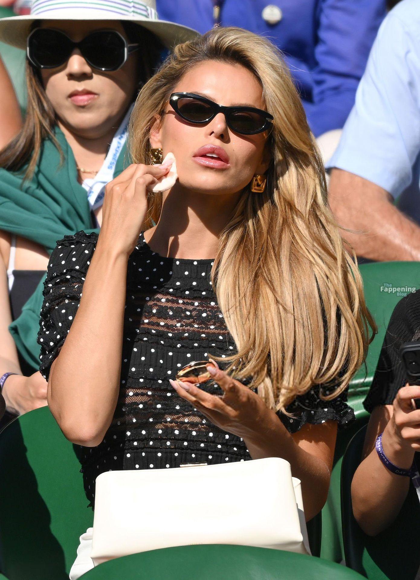 Model Brooks Nader fez o quinto dia de Wimbledon ser um verdadeiro espetáculo, usando uma blusa preta transparente com bolinhas, sem nada por baixo.