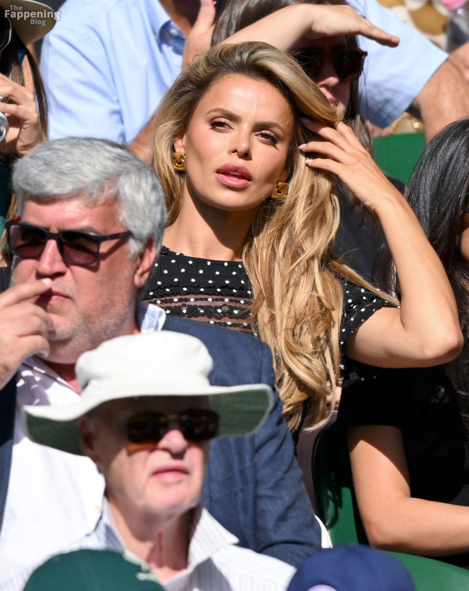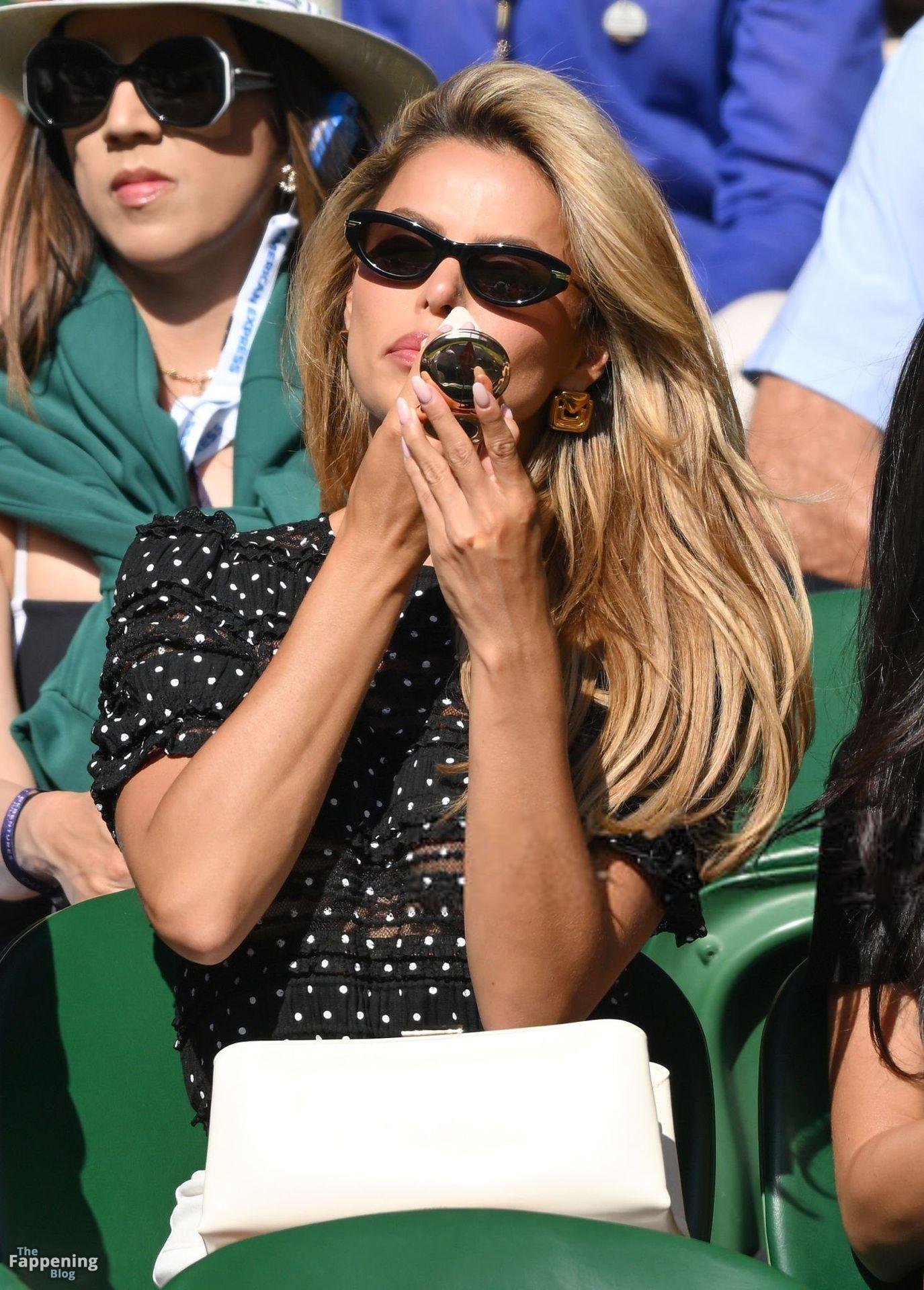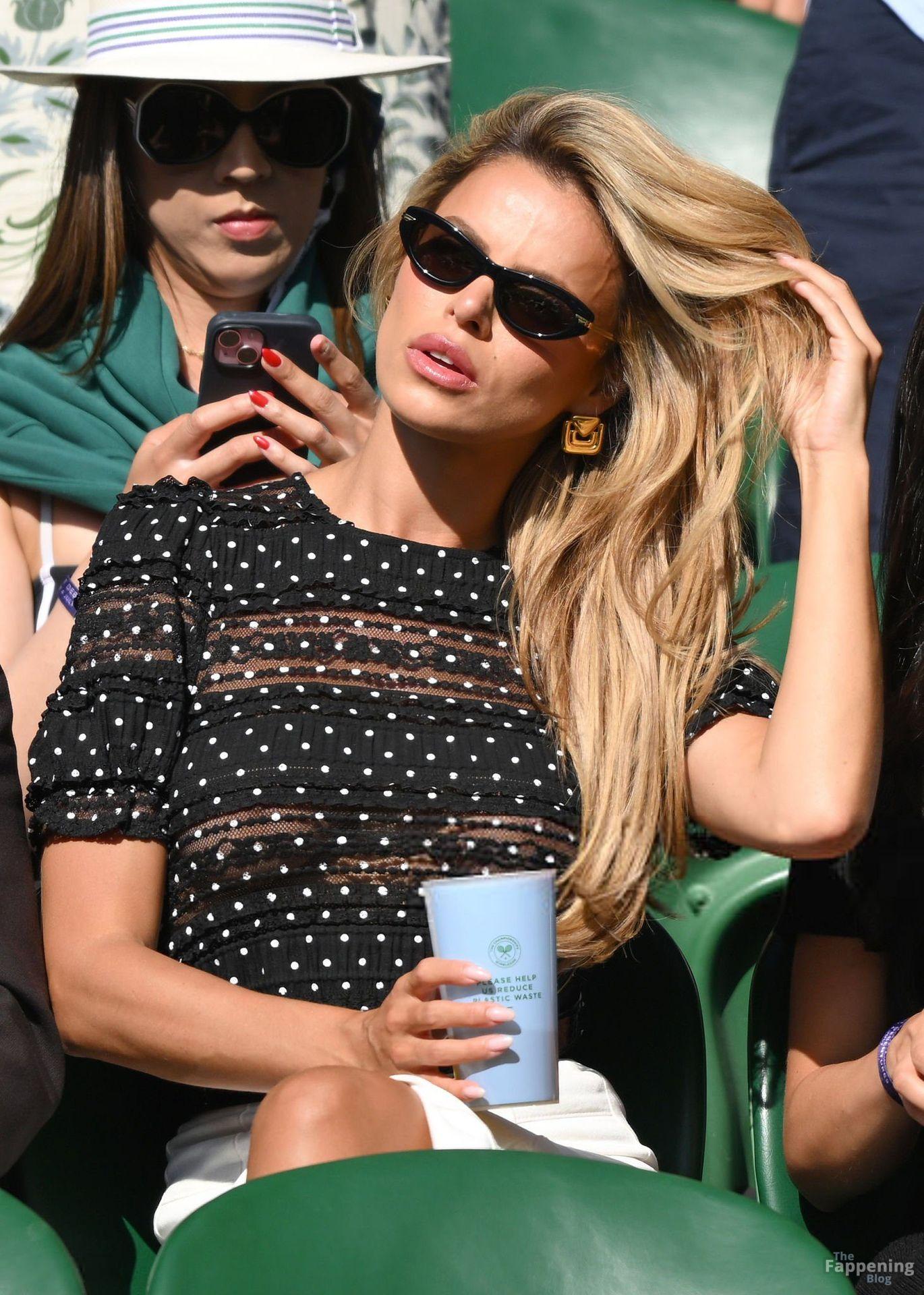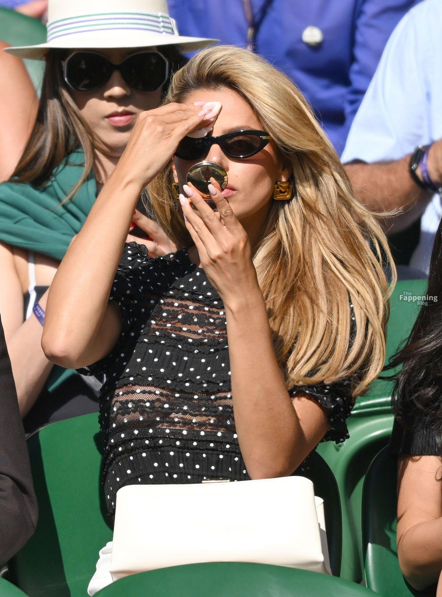 Model Brooks Nader fez o quinto dia de Wimbledon ser um verdadeiro espetáculo, usando uma blusa preta transparente com bolinhas, sem nada por baixo.