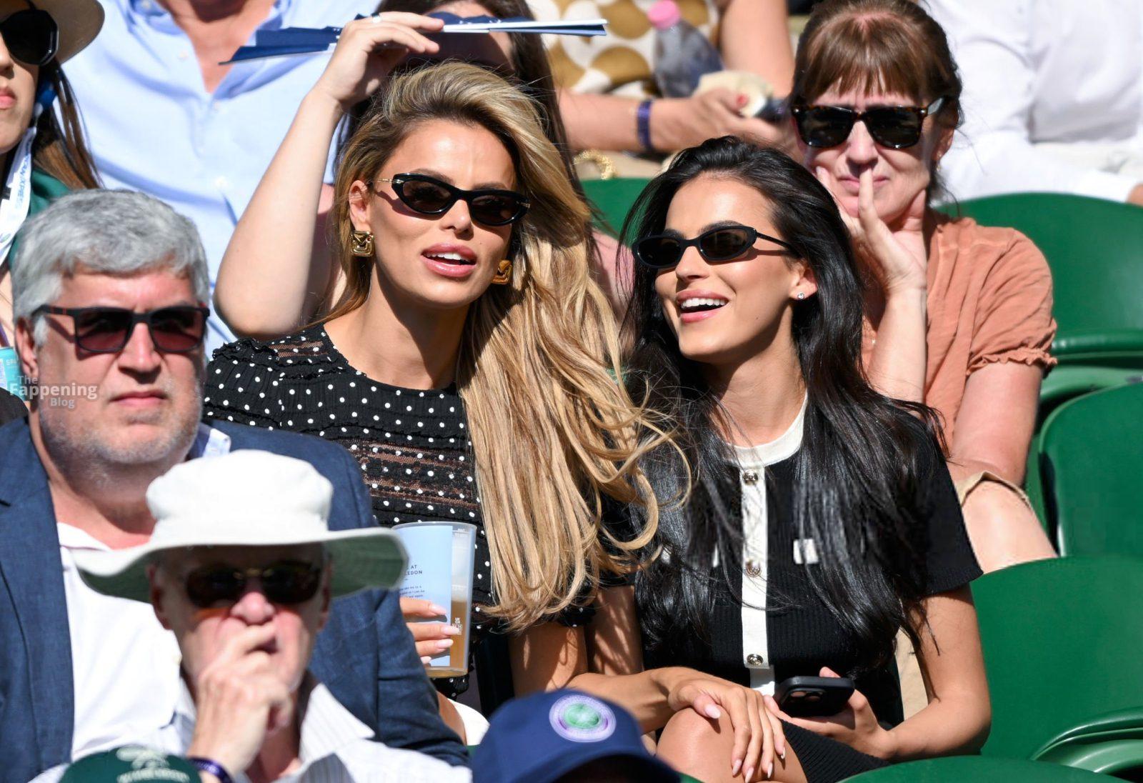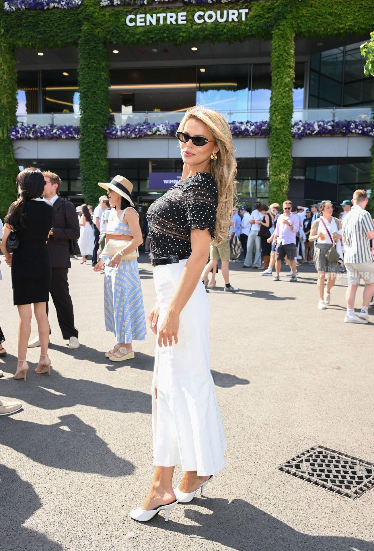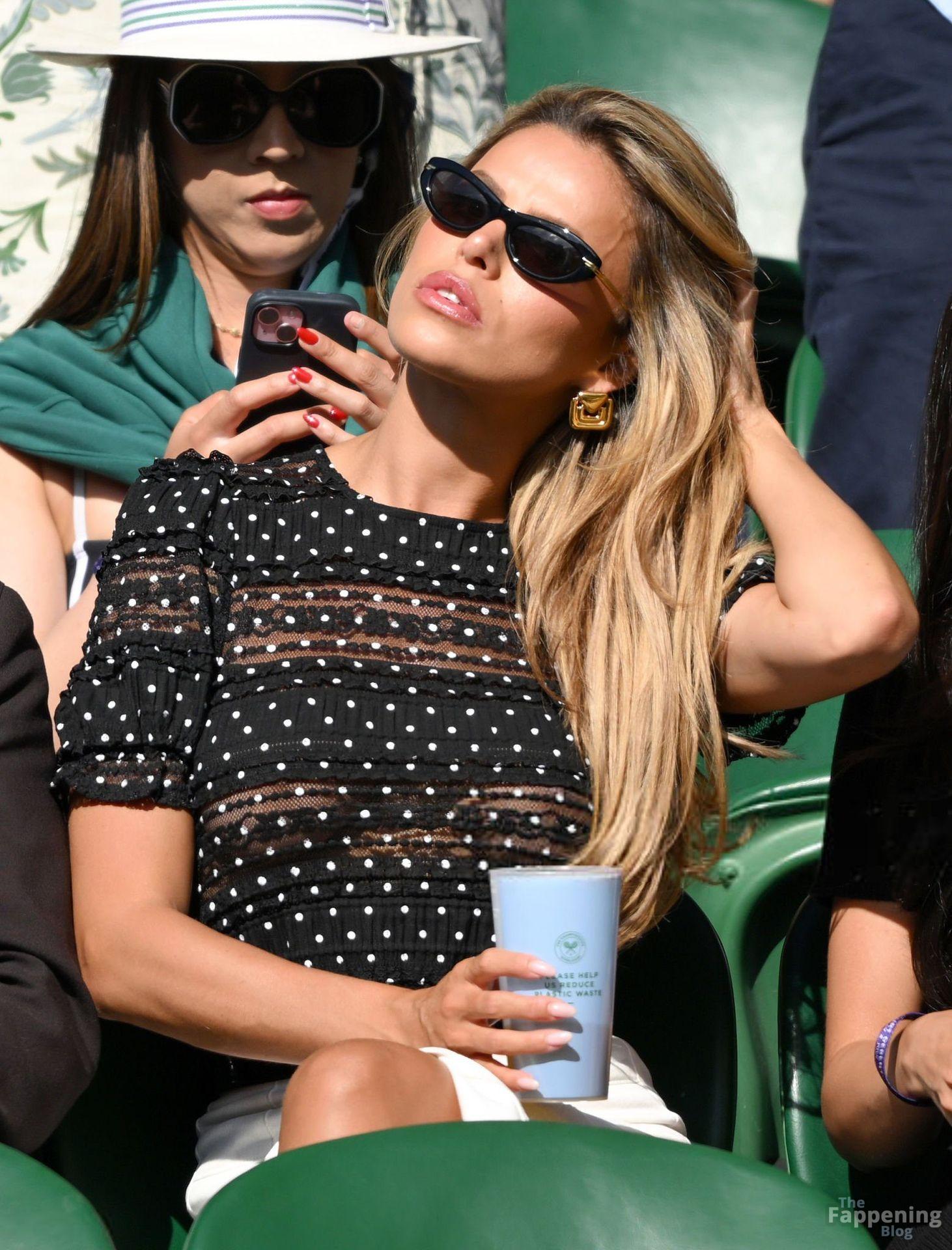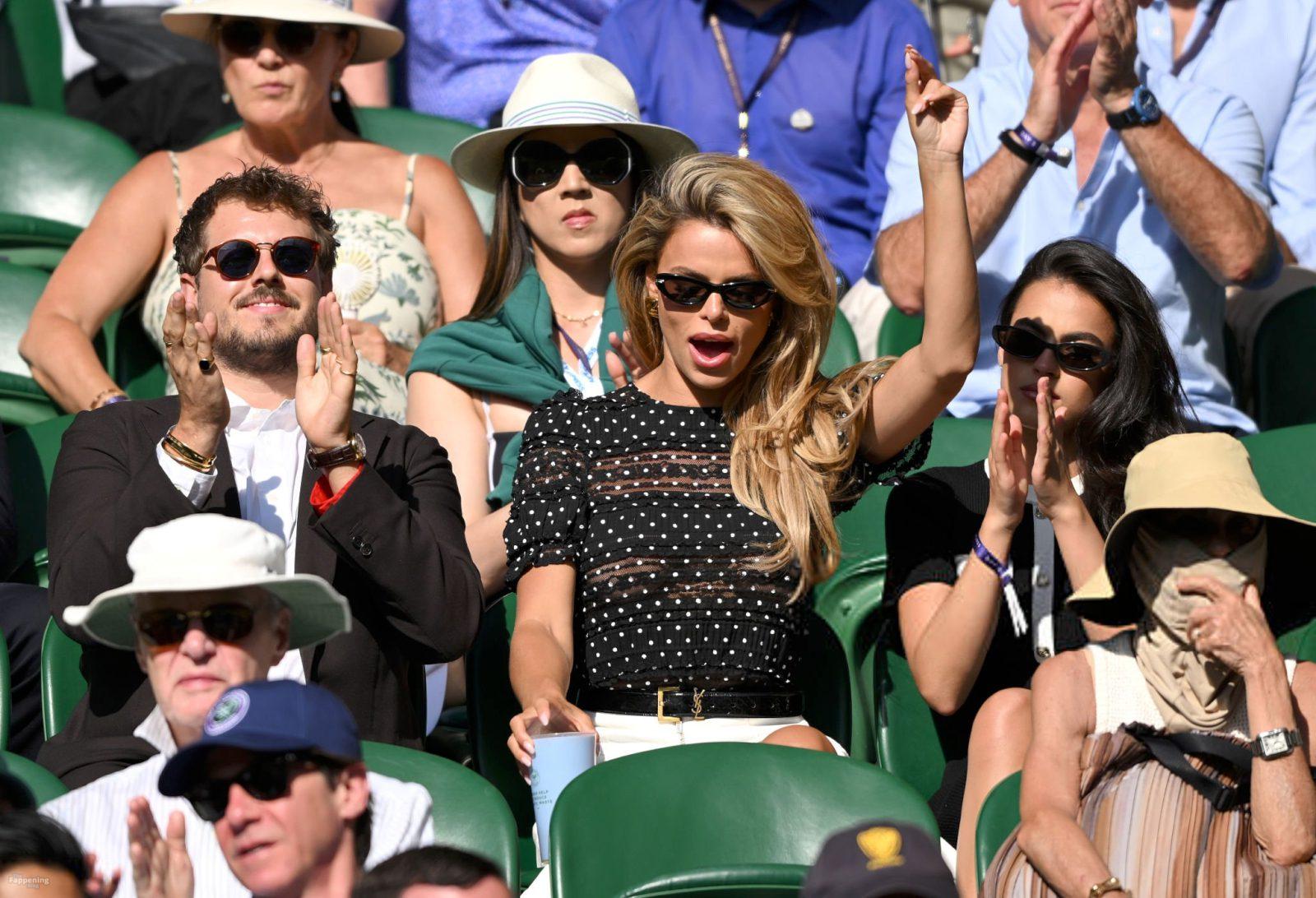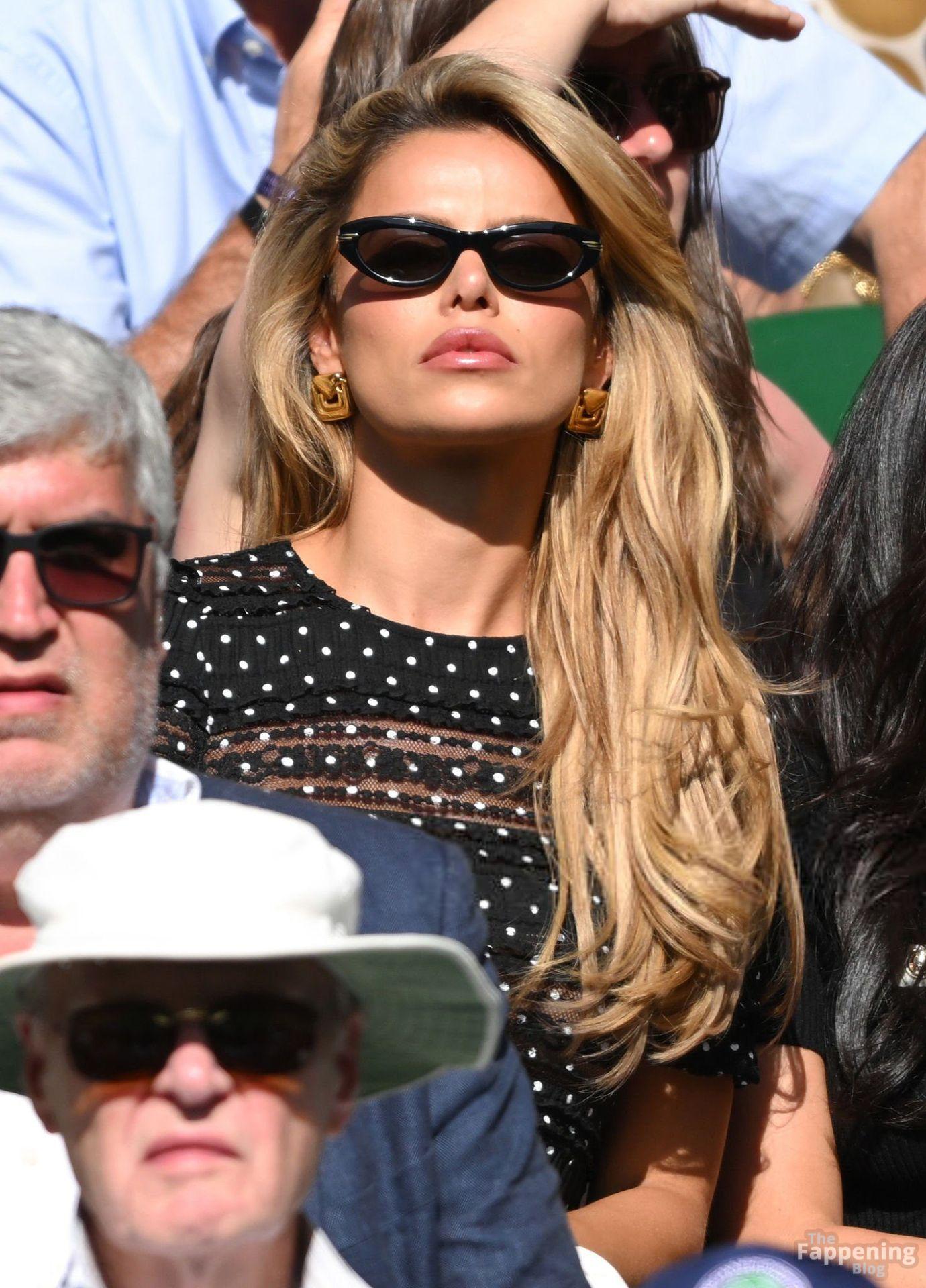 Model Brooks Nader fez o quinto dia de Wimbledon ser um verdadeiro espetáculo, usando uma blusa preta transparente com bolinhas, sem nada por baixo.