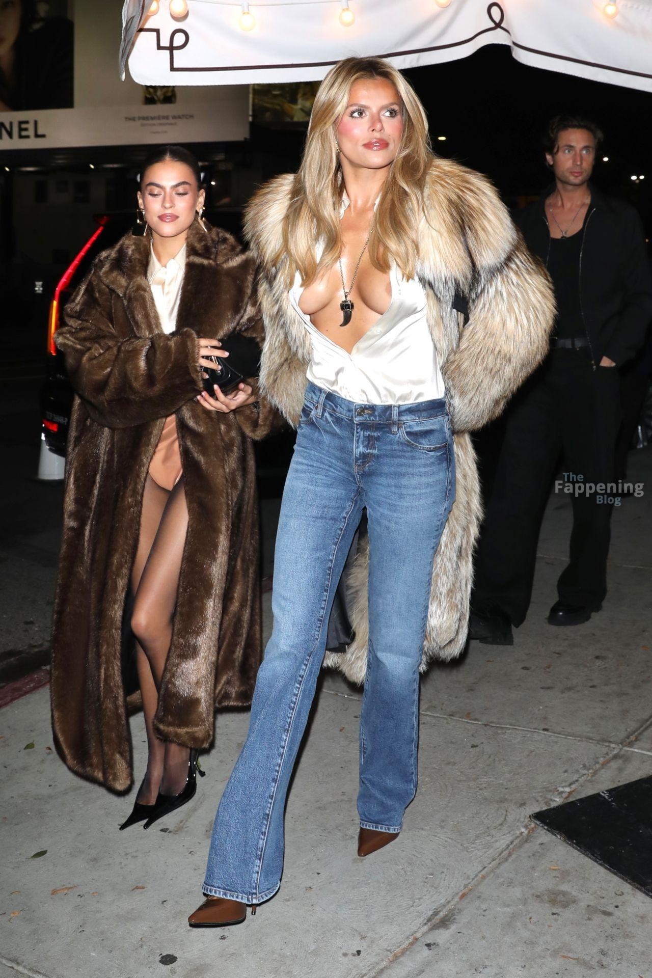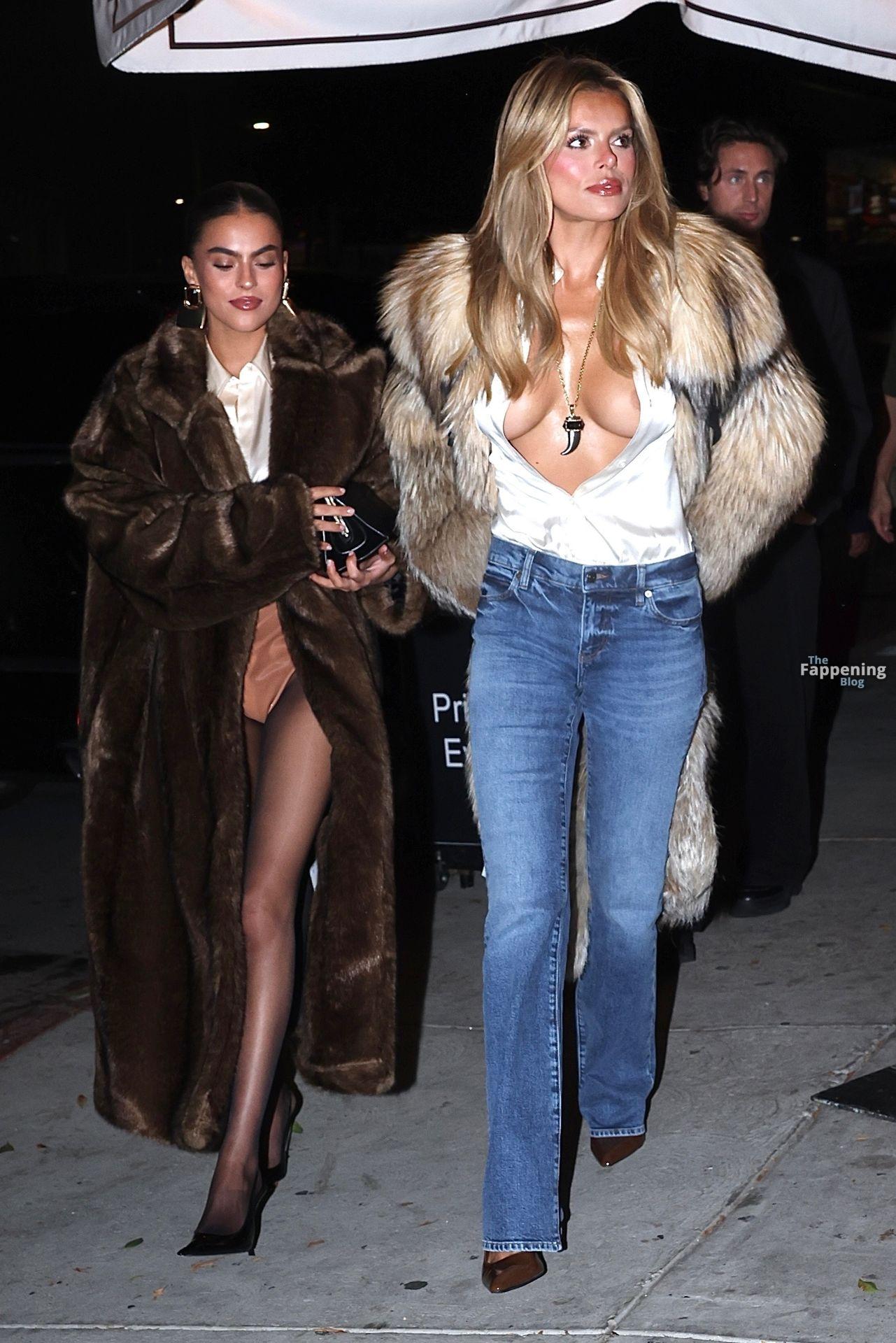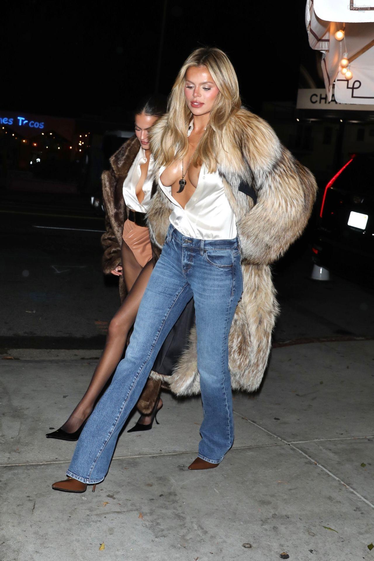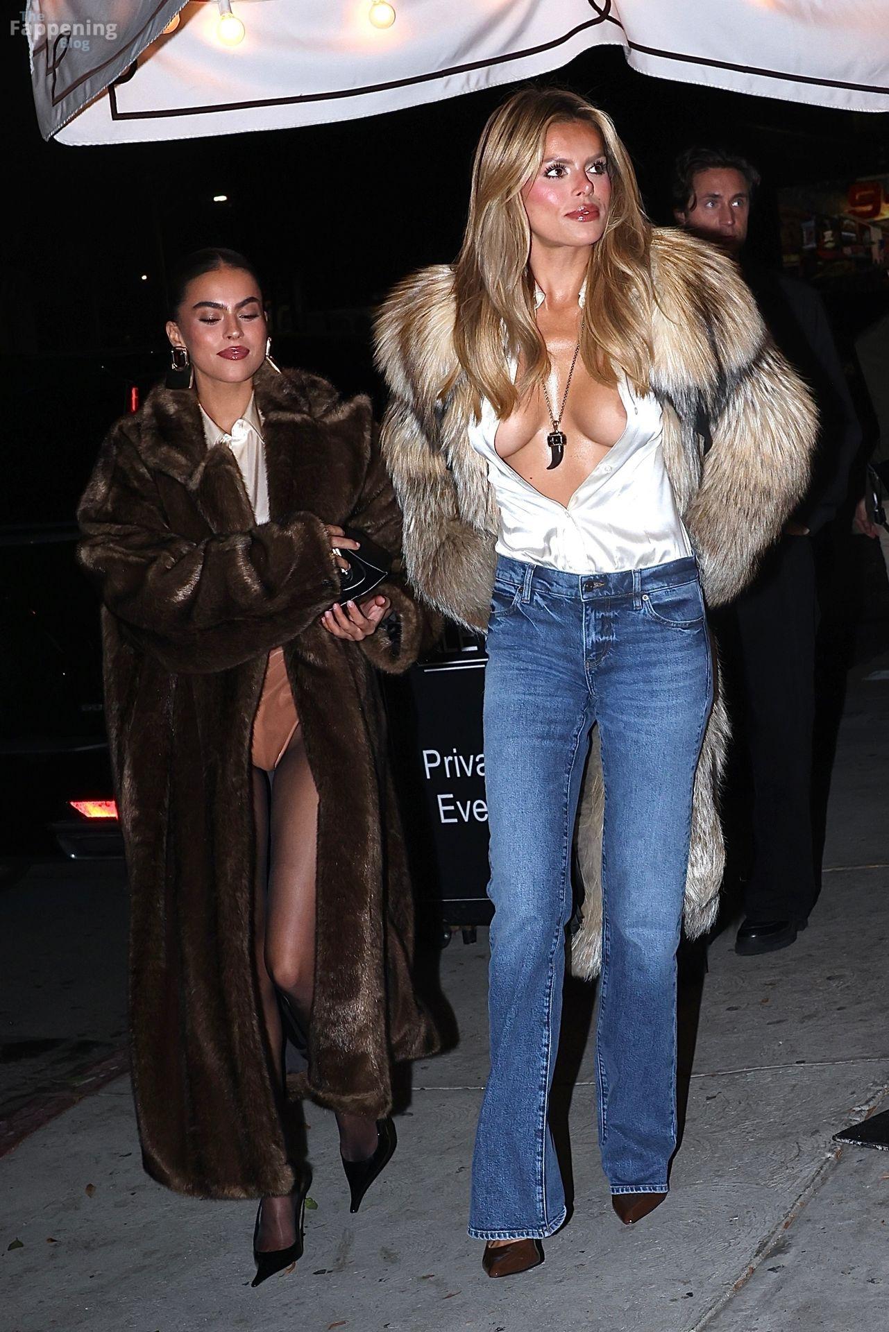 A modelo americana estava em Hollywood, usando um casaco de pele falsa, aquela blusa de cetim arriscada e jeans de cintura alta. Ela estava deslumbrante a noite toda, mas um movimento rápido quase transformou isso em uma falha completa no guarda-roupa.