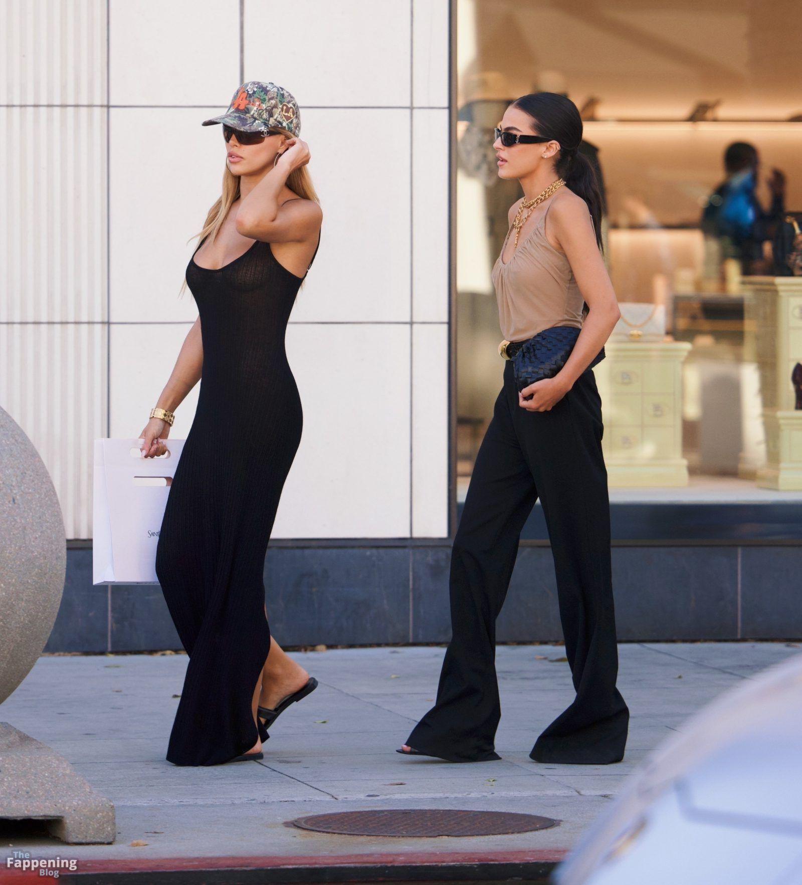 Modelo Brooks Nader anda sem sutiã, vestindo um vestido transparente em Beverly Hills.