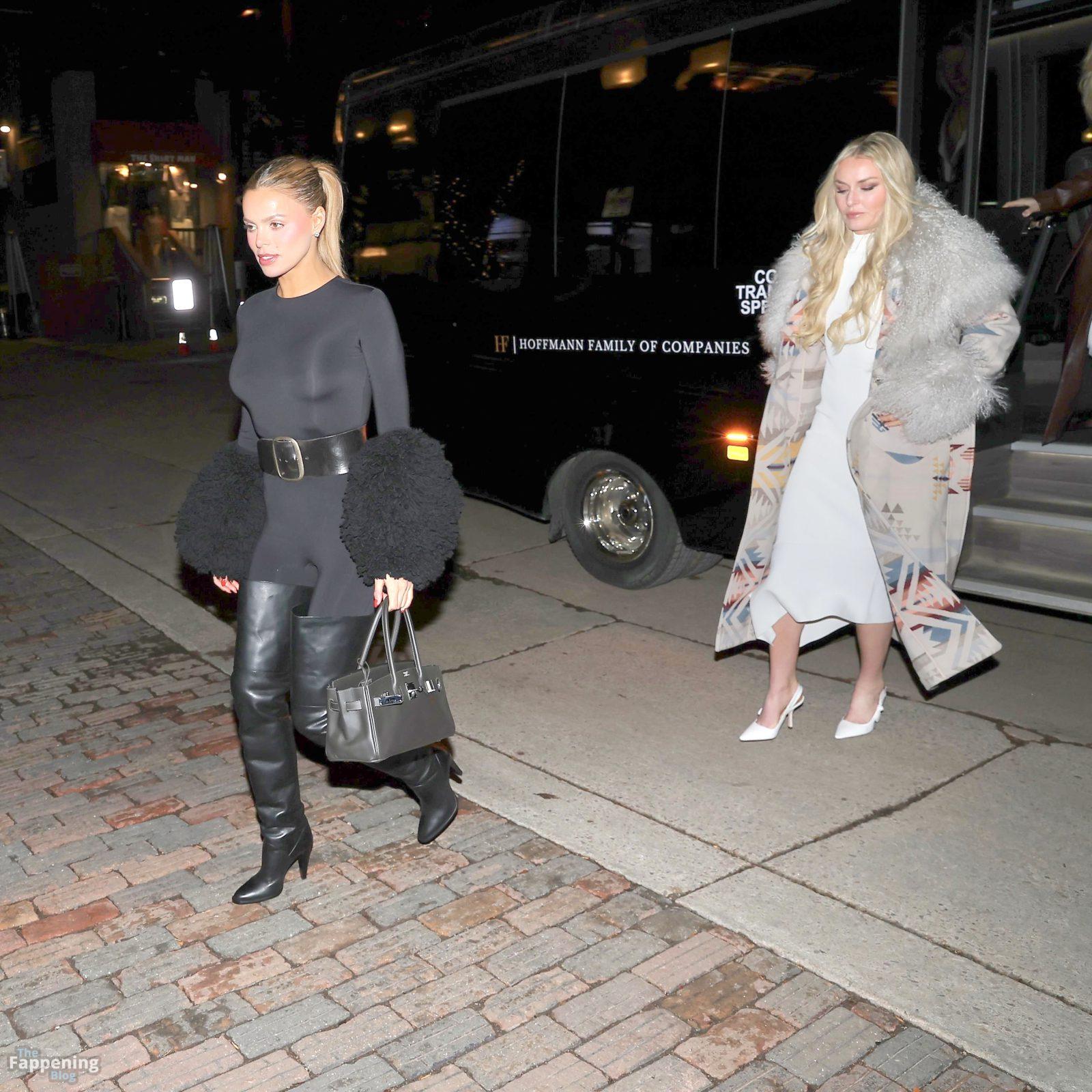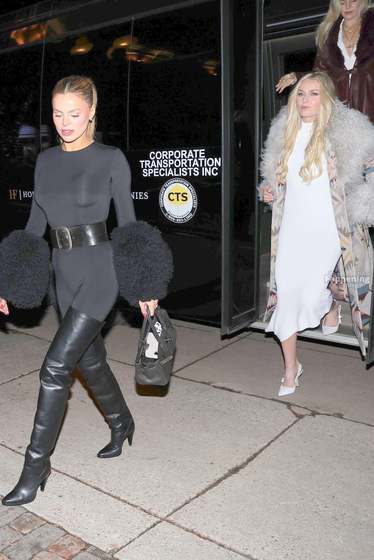 Brooks Nader e sua irmã saíram com estilo sexy para um jantar festivo com a amiga Lindsey Vonn na Casa Tua em Aspen, arrasando com seus looks glamourosos de inverno.