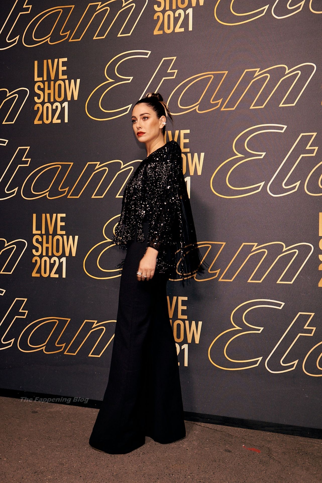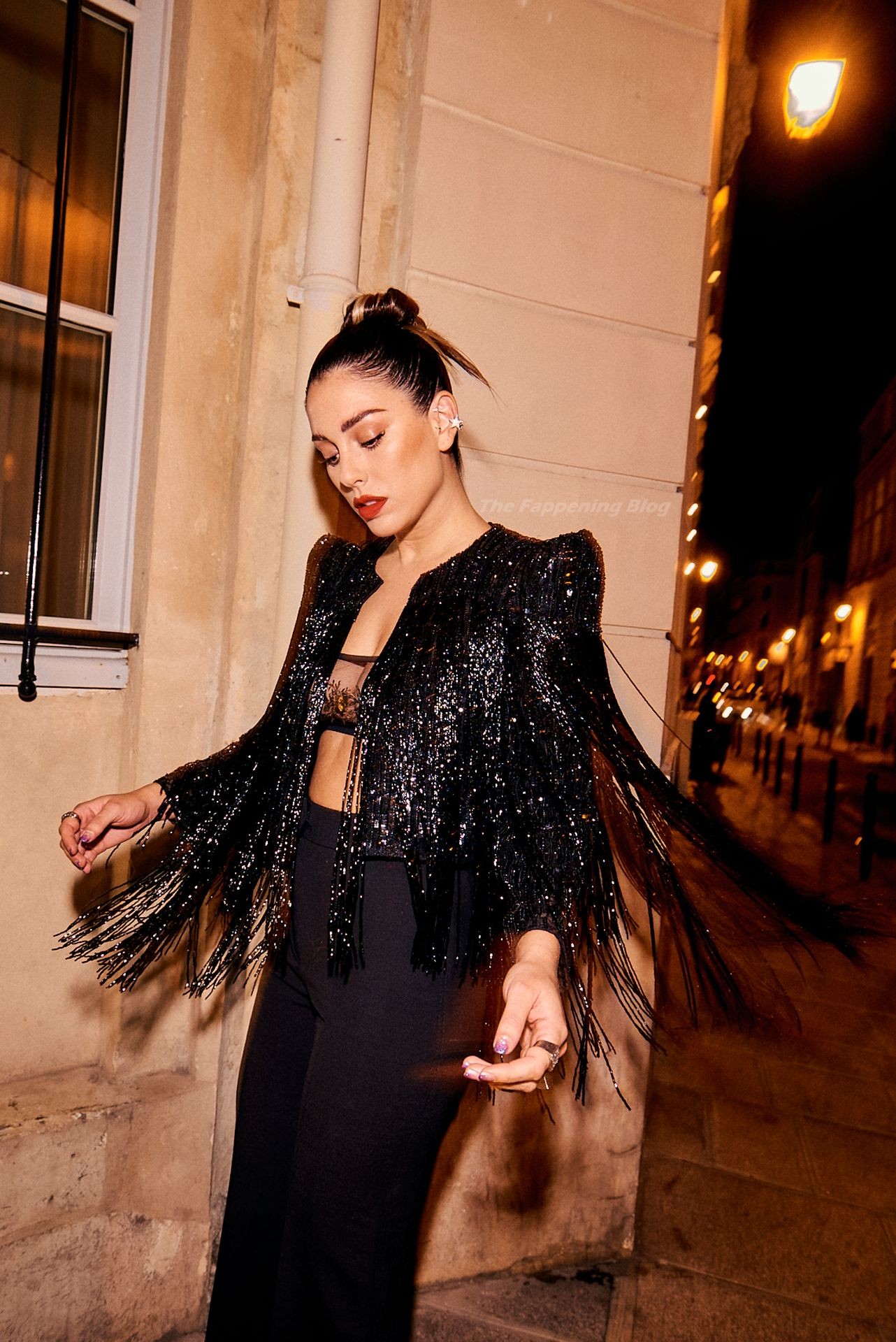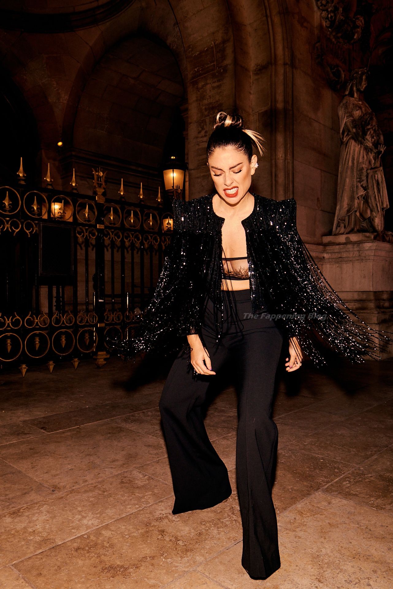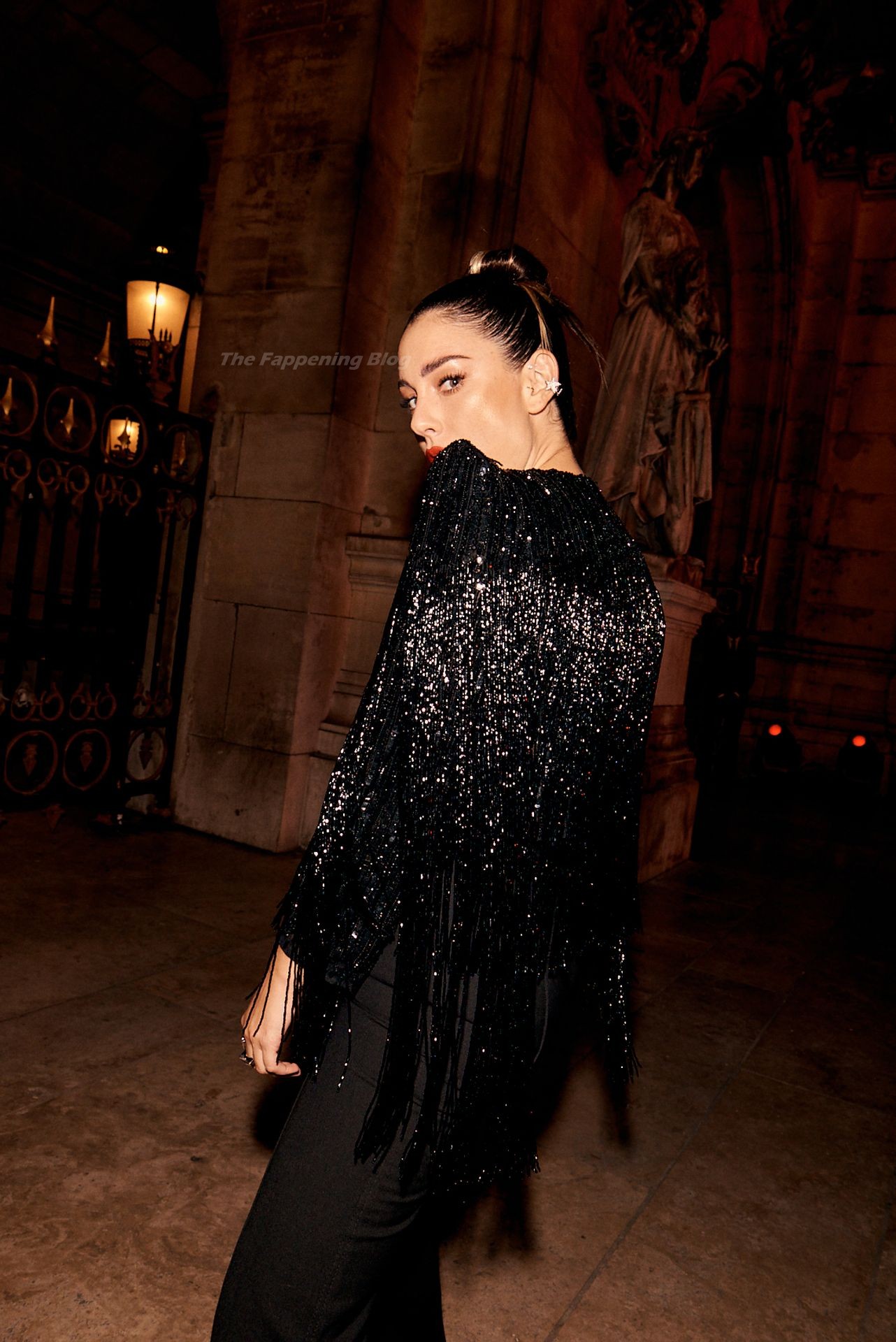 A atriz espanhola Blanca Suarez posa no desfile de moda da marca de lingerie Etam em Paris, exibindo seus seios nus, 10/06/2021.