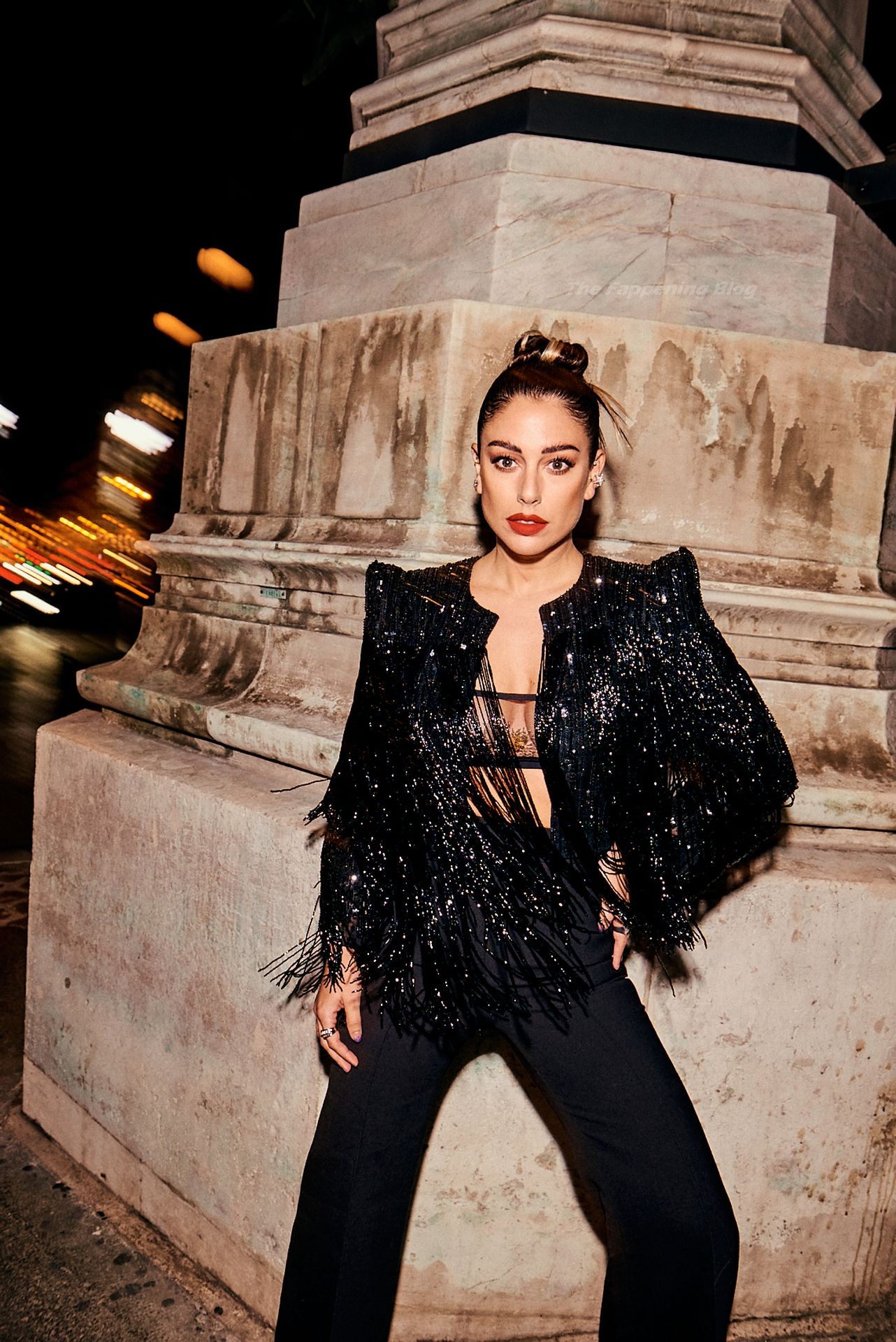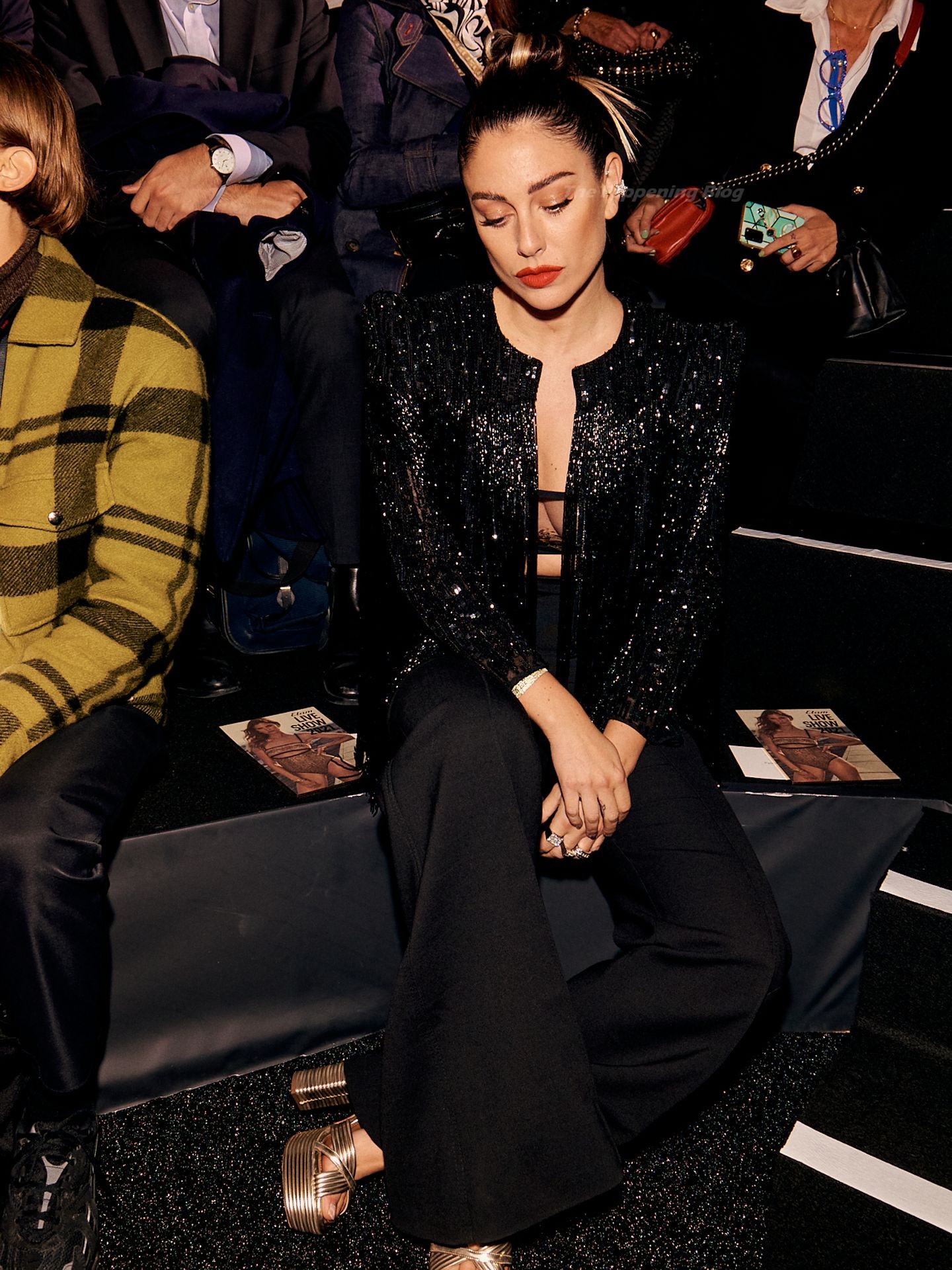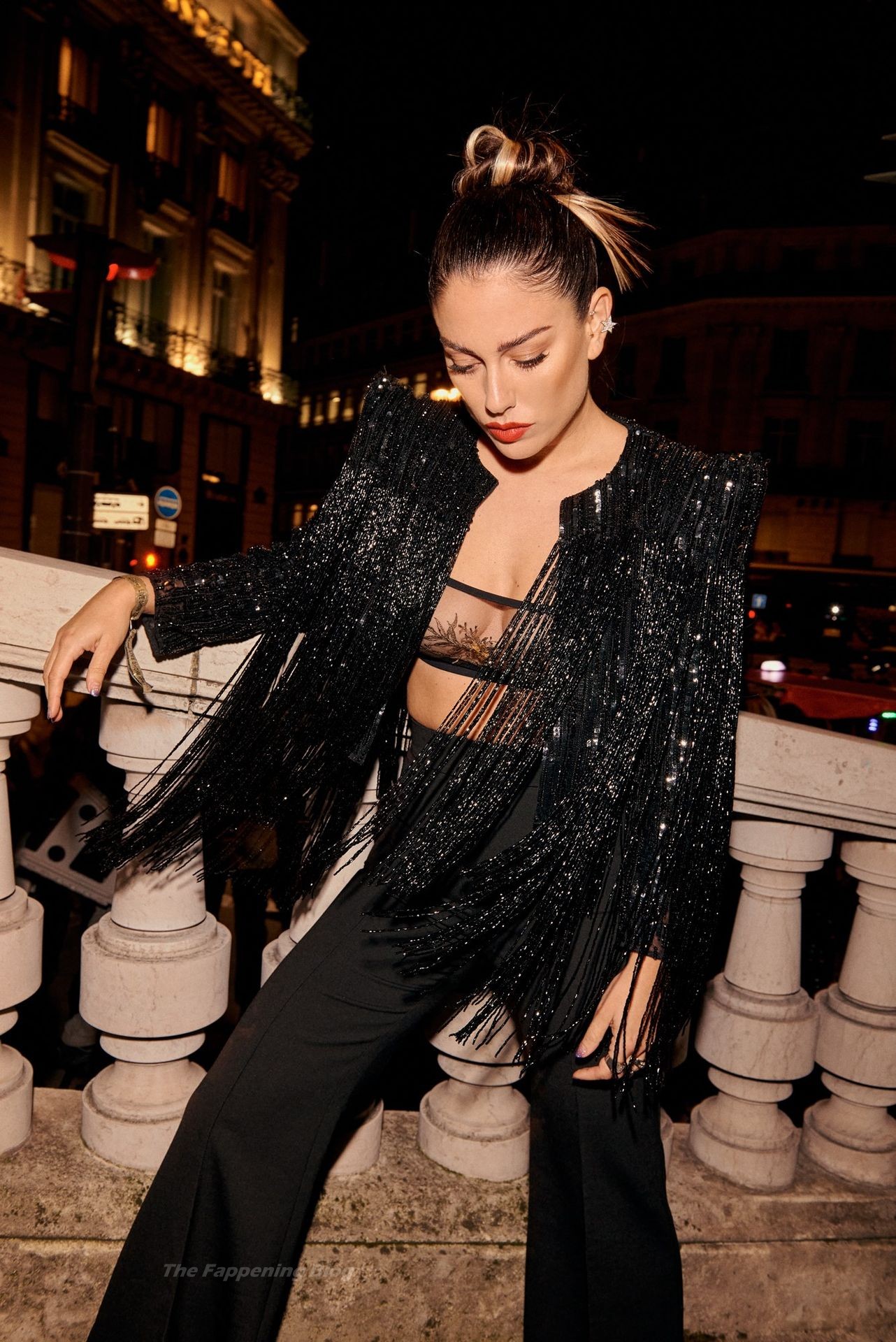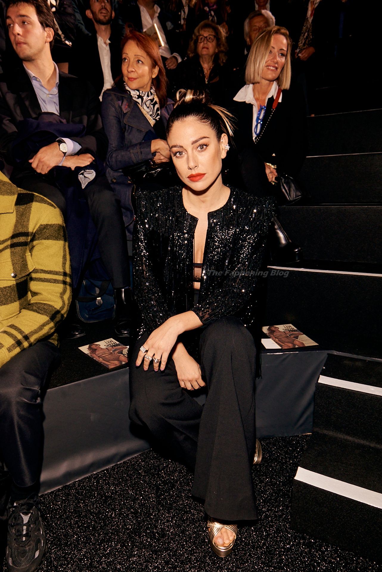 A atriz espanhola Blanca Suarez posa no desfile de moda da marca de lingerie Etam em Paris, exibindo seus seios nus, 10/06/2021.