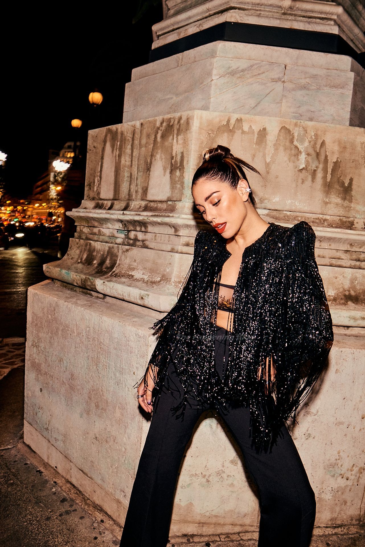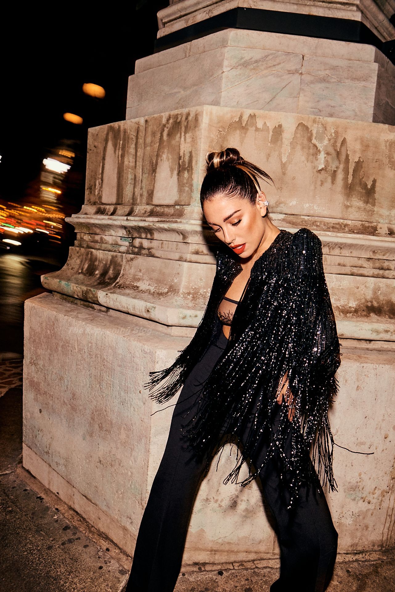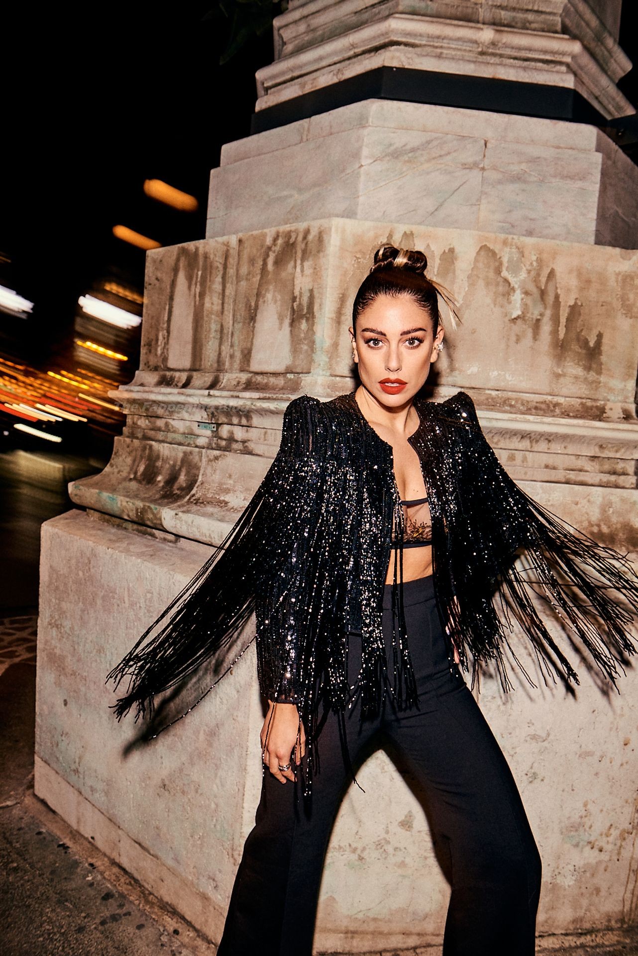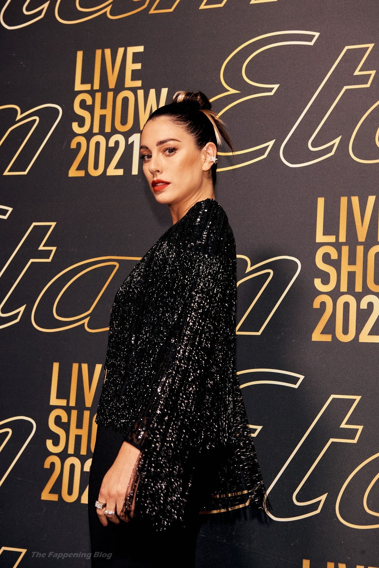 A atriz espanhola Blanca Suarez posa no desfile de moda da marca de lingerie Etam em Paris, exibindo seus seios nus, 10/06/2021.