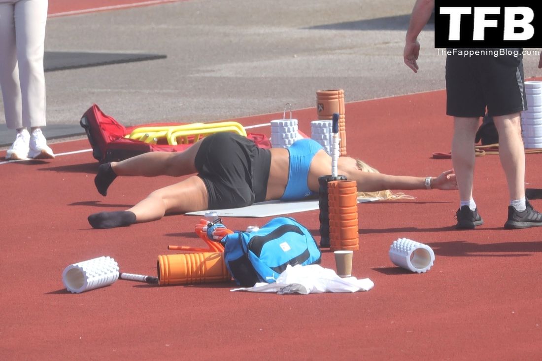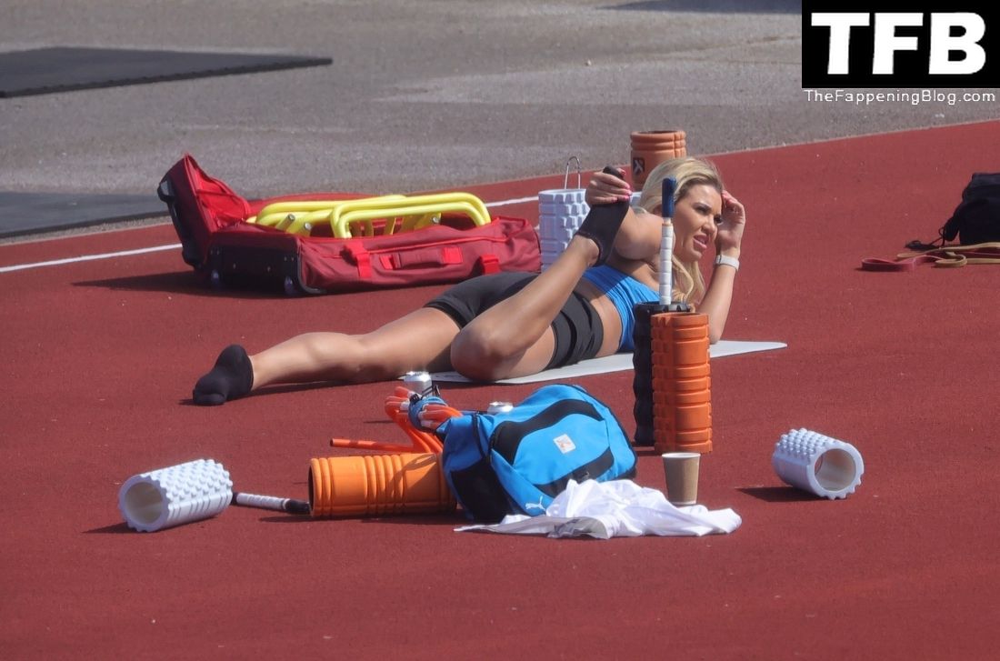 Christine McGuinness Exibe Extensas Contusões nos Braços e Está Sexy com Top Azul (25 Fotos)