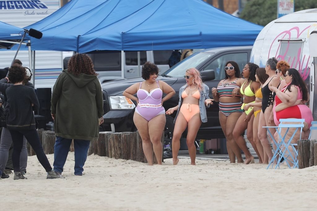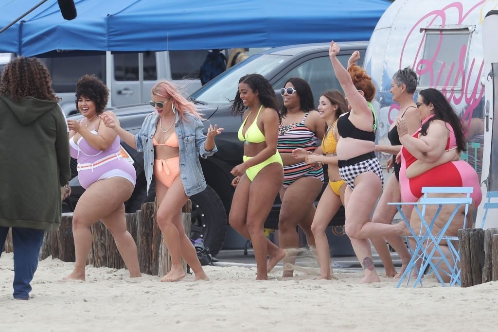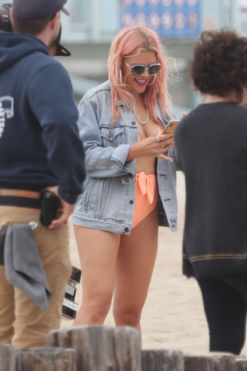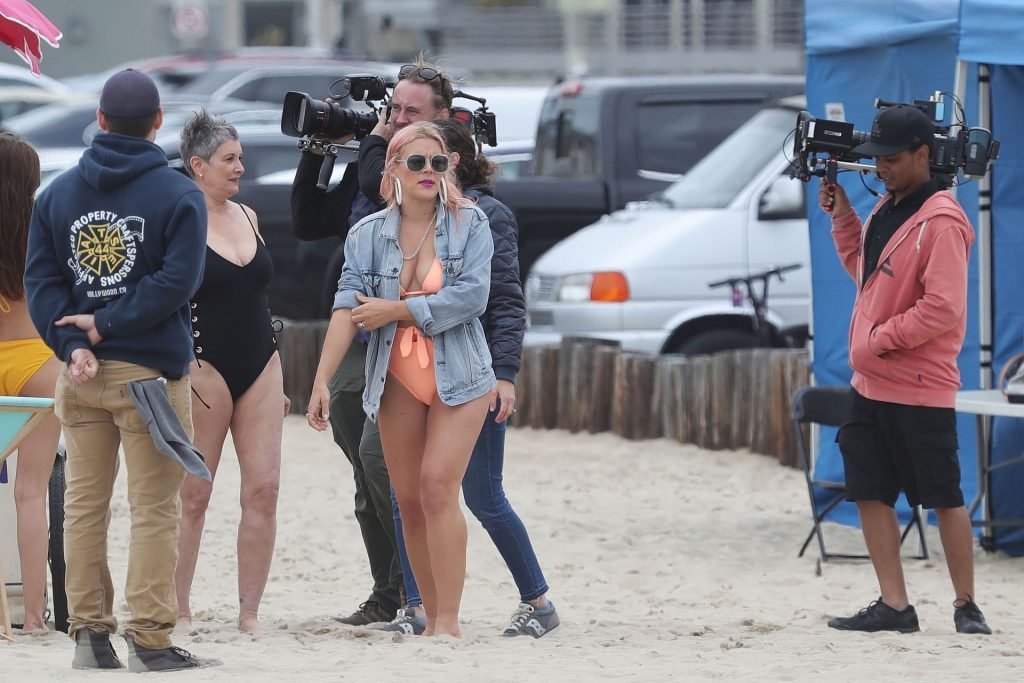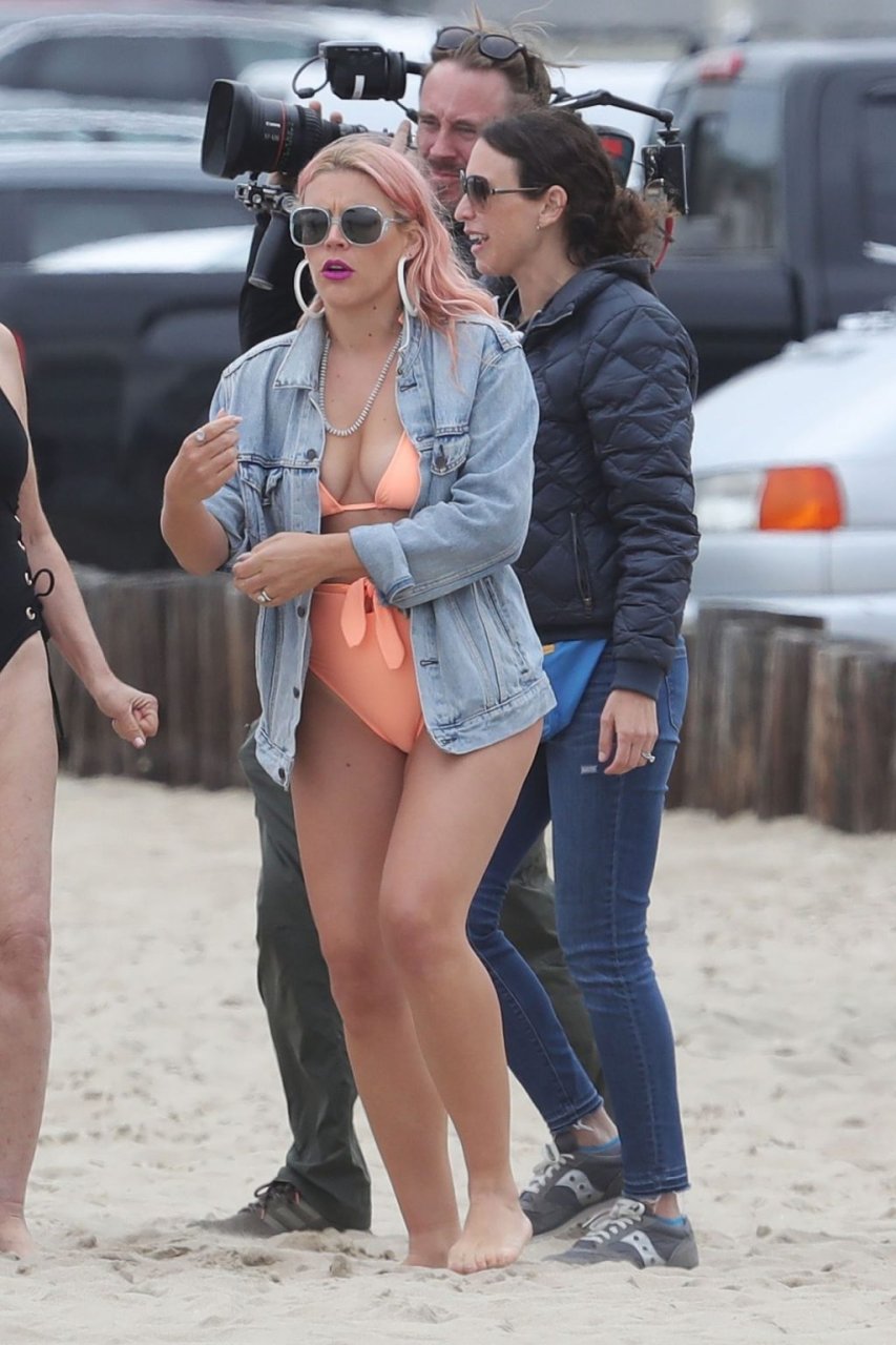 Busy Philipps grava um episódio para seu novo programa na E! Entertainment ‘Busy Tonight!’, 29/04/2019. Busy e amigos vestem maiôs coloridos na Venice Beach e fazem uma verdadeira festa para as câmeras.