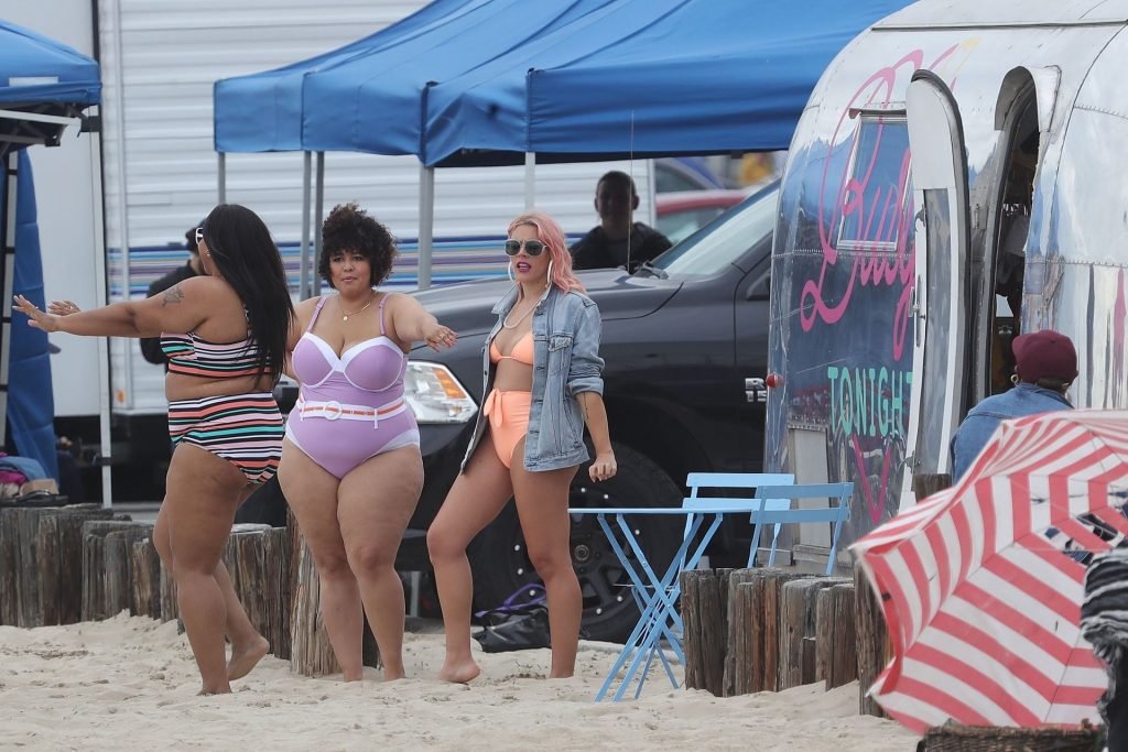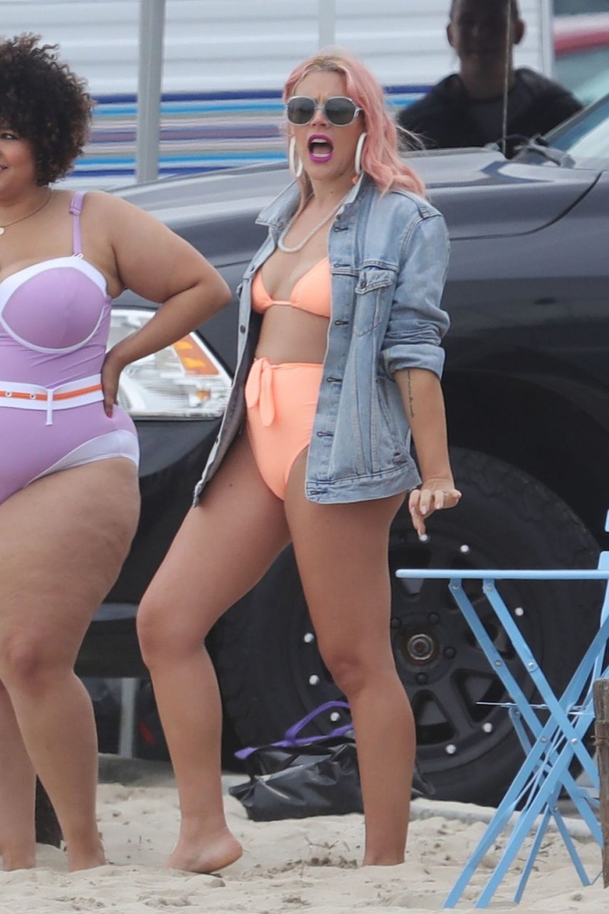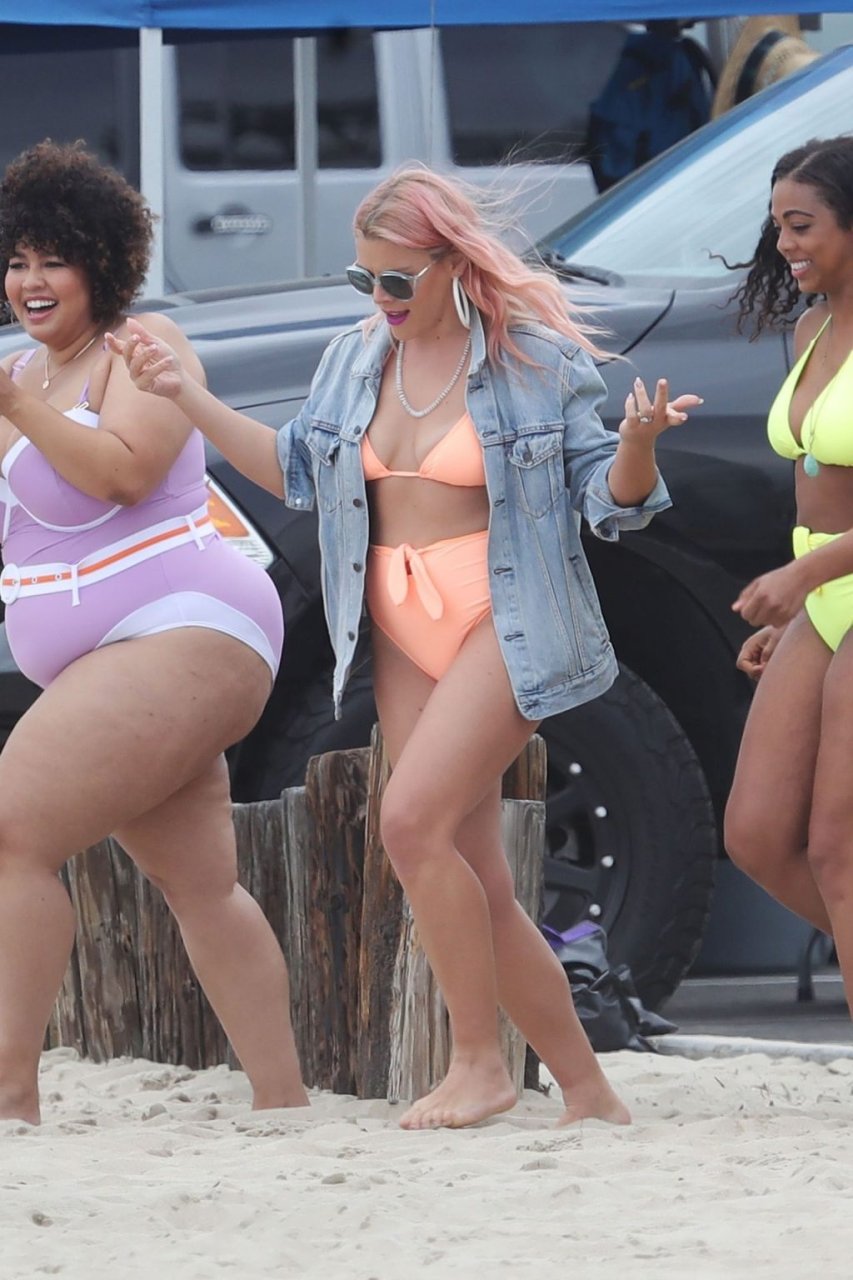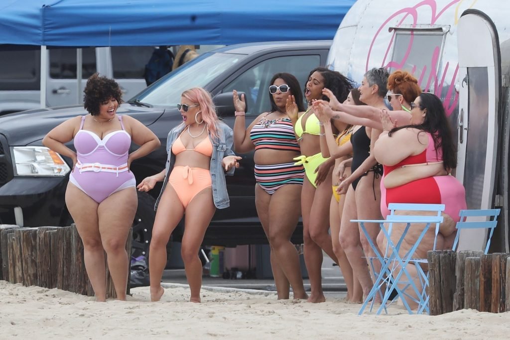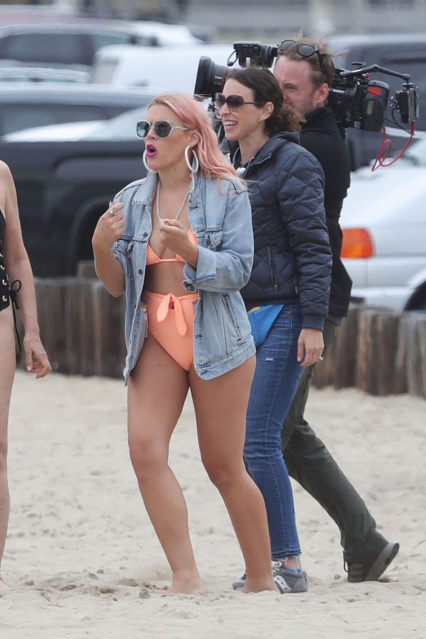 Busy Philipps grava um episódio para seu novo programa na E! Entertainment ‘Busy Tonight!’, 29/04/2019. Busy e amigos vestem maiôs coloridos na Venice Beach e fazem uma verdadeira festa para as câmeras.
