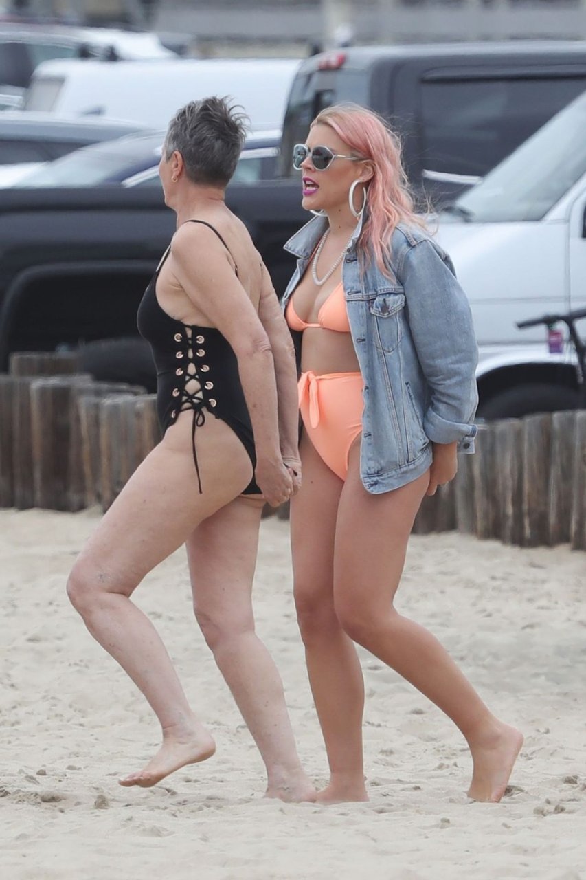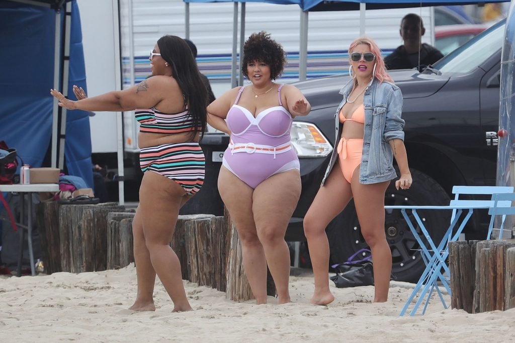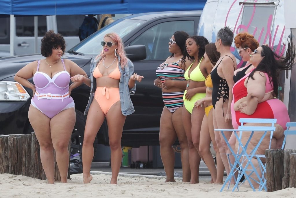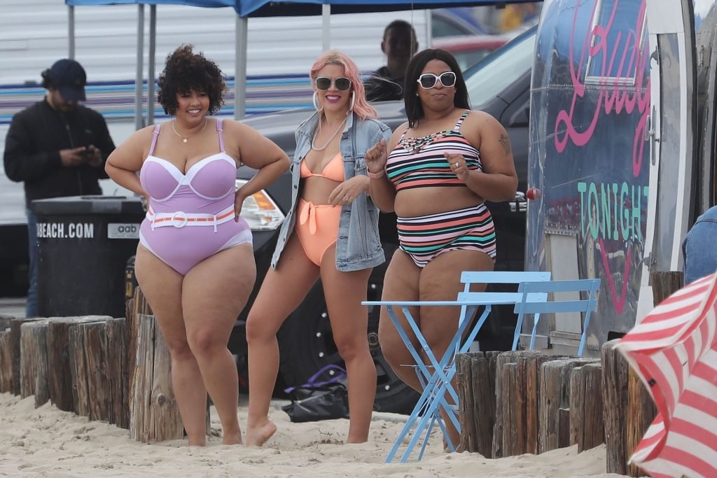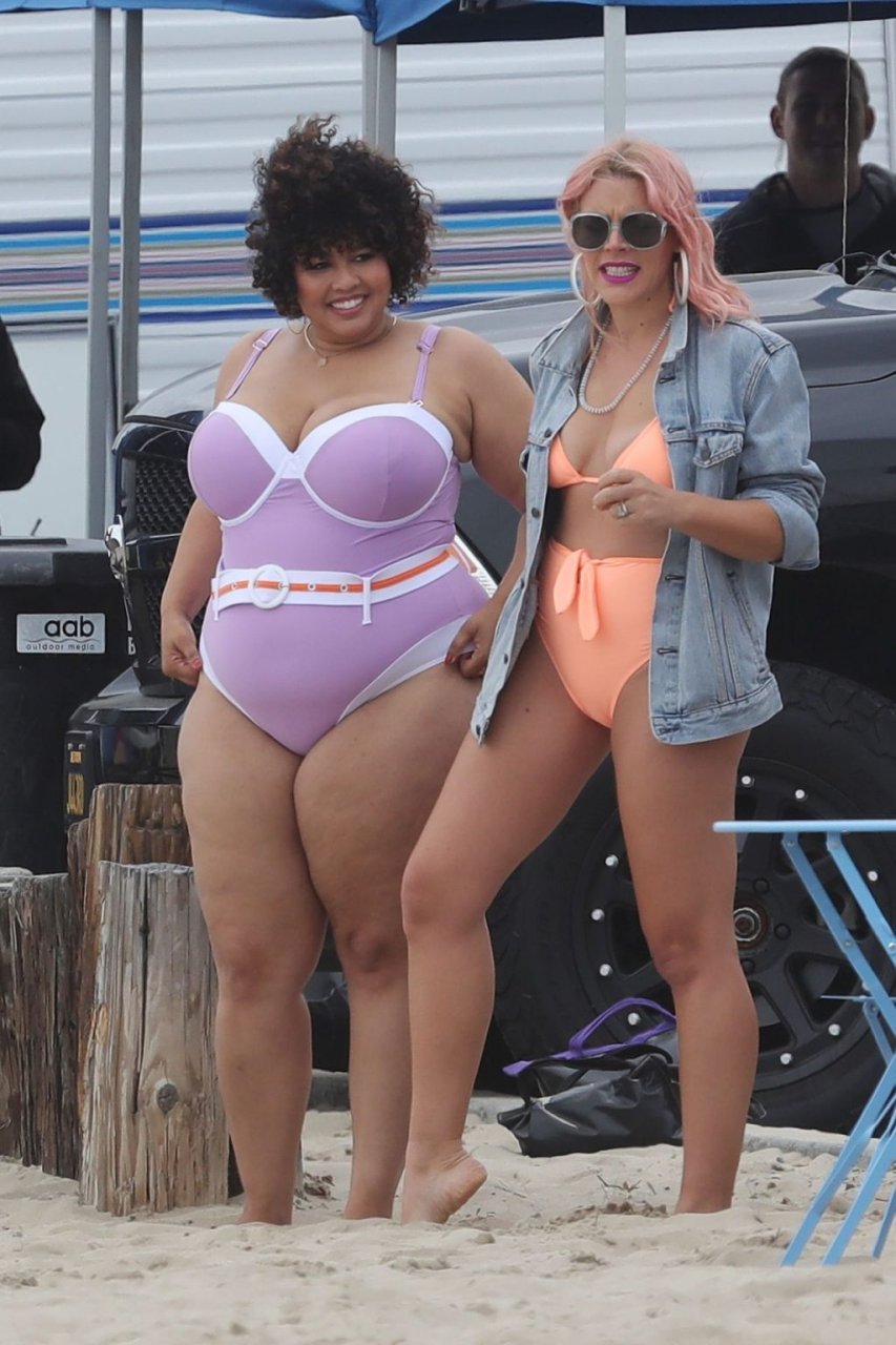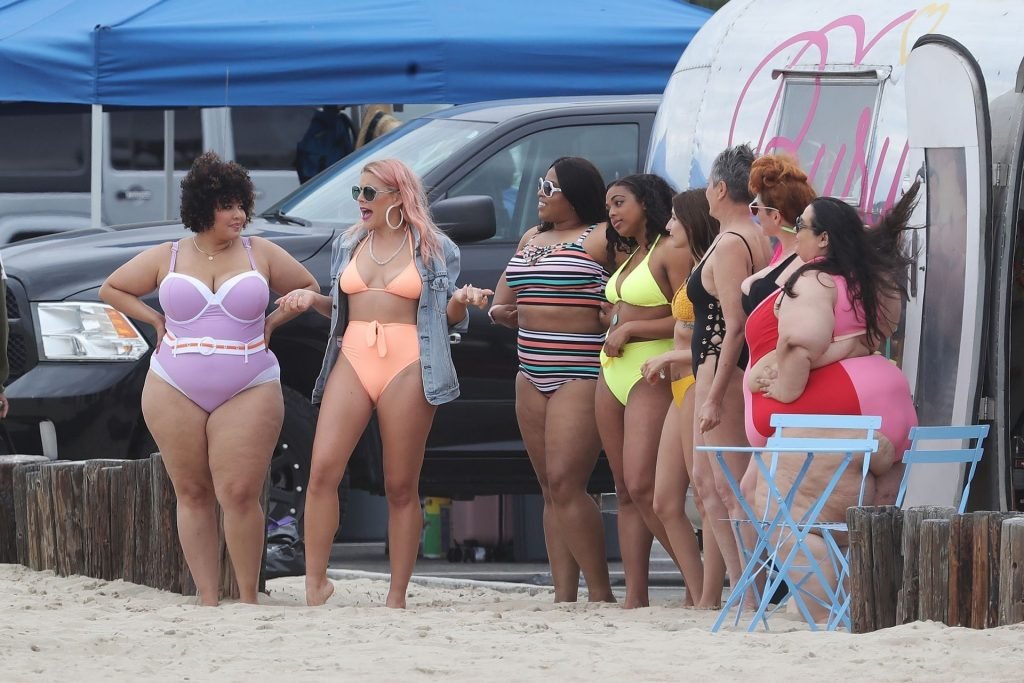 Busy Philipps grava um episódio para seu novo programa na E! Entertainment ‘Busy Tonight!’, 29/04/2019. Busy e amigos vestem maiôs coloridos na Venice Beach e fazem uma verdadeira festa para as câmeras.