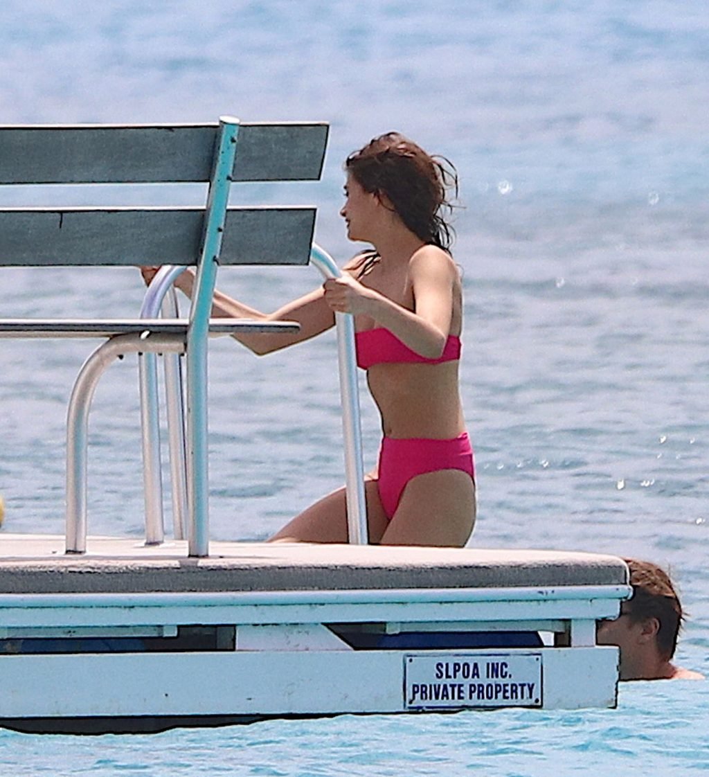 Ex de Liam Payne, Cairo Dwek, arrasa em um biquíni rosa de duas peças quase inexistente enquanto se diverte na praia em uma viagem a Bridgetown, Barbados com o namorado, 18/03/2019.