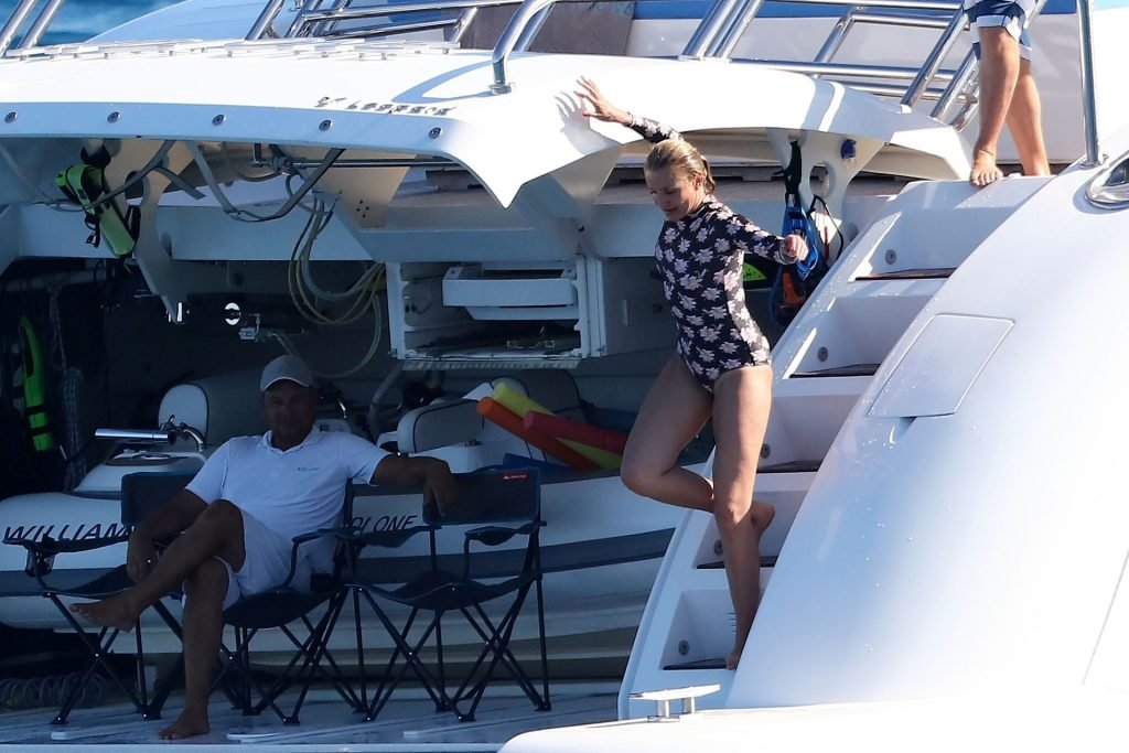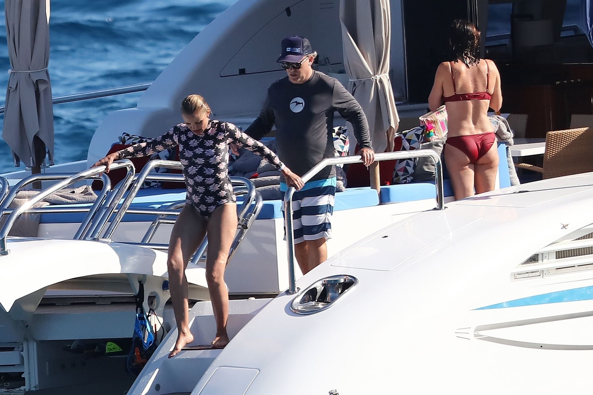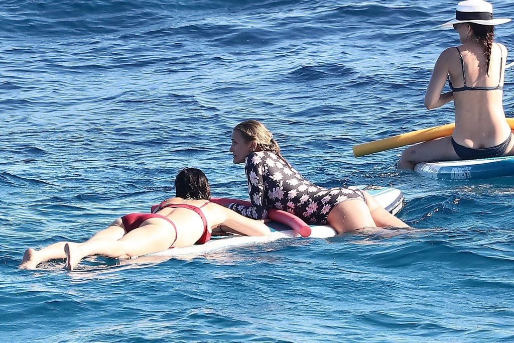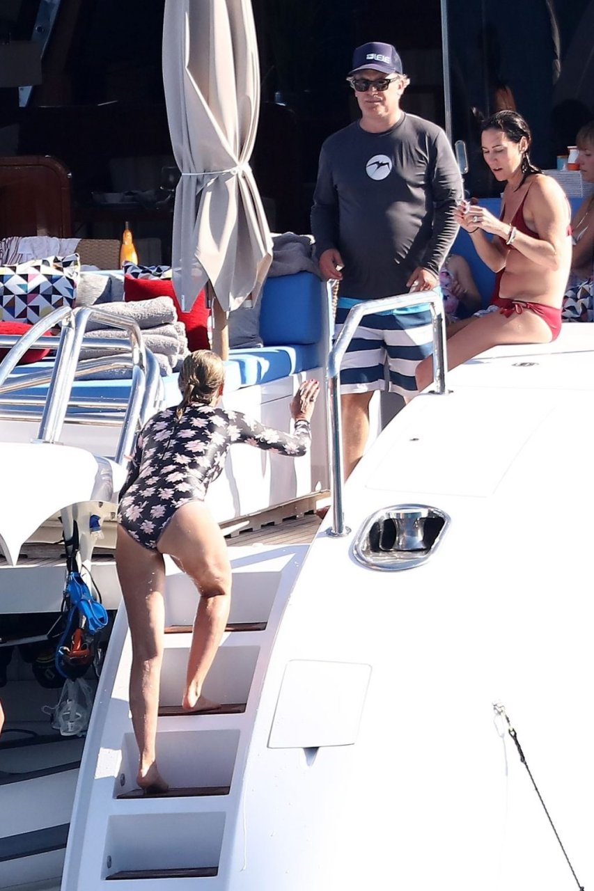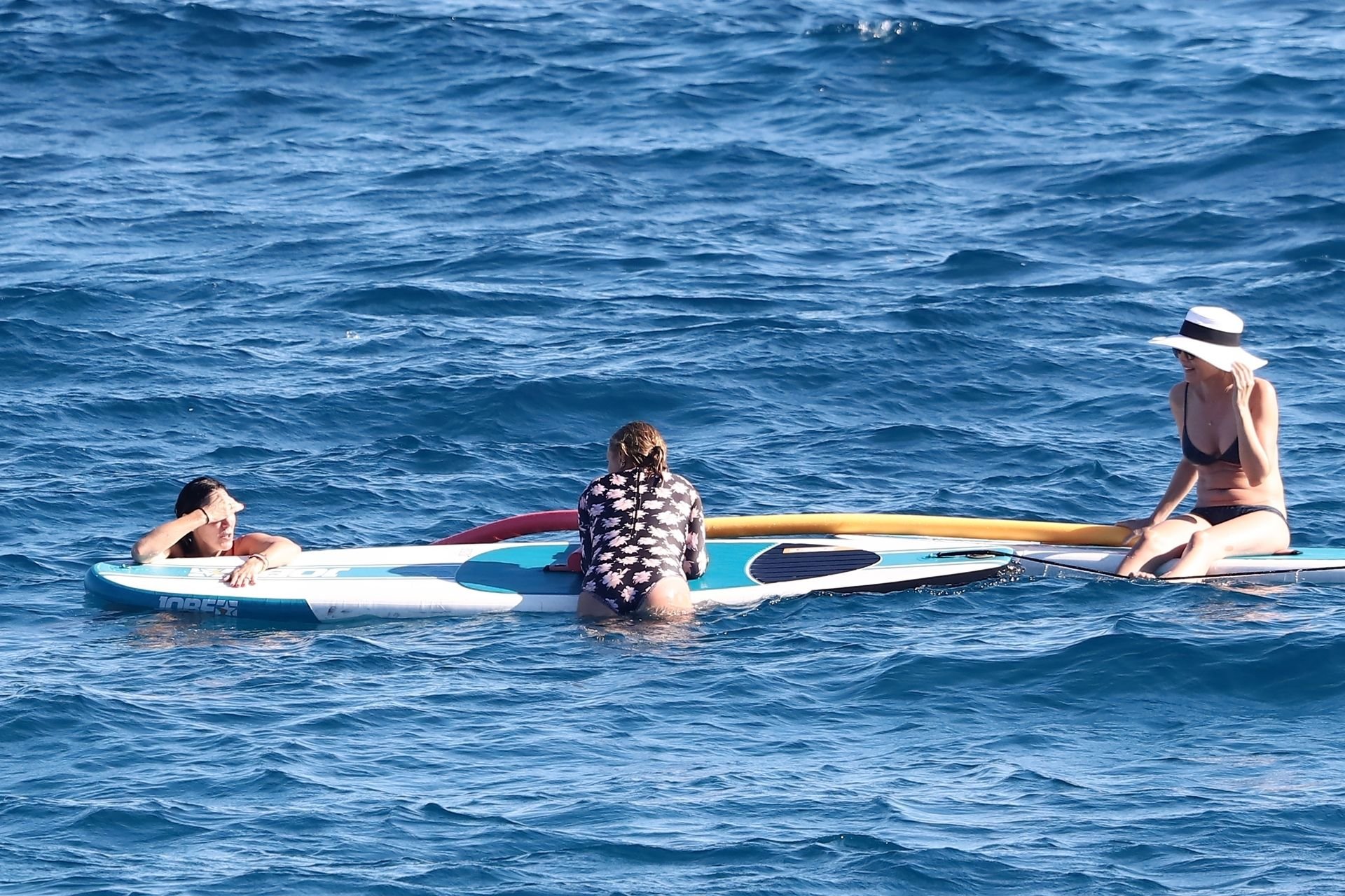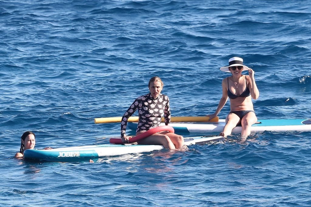 Cameron, que completa 47 anos este mês, não conseguiu conter a alegria ao ser vista andando em uma prancha motorizada com Benji pelo mar e rindo com amigos em pranchas de surfe durante o passeio.