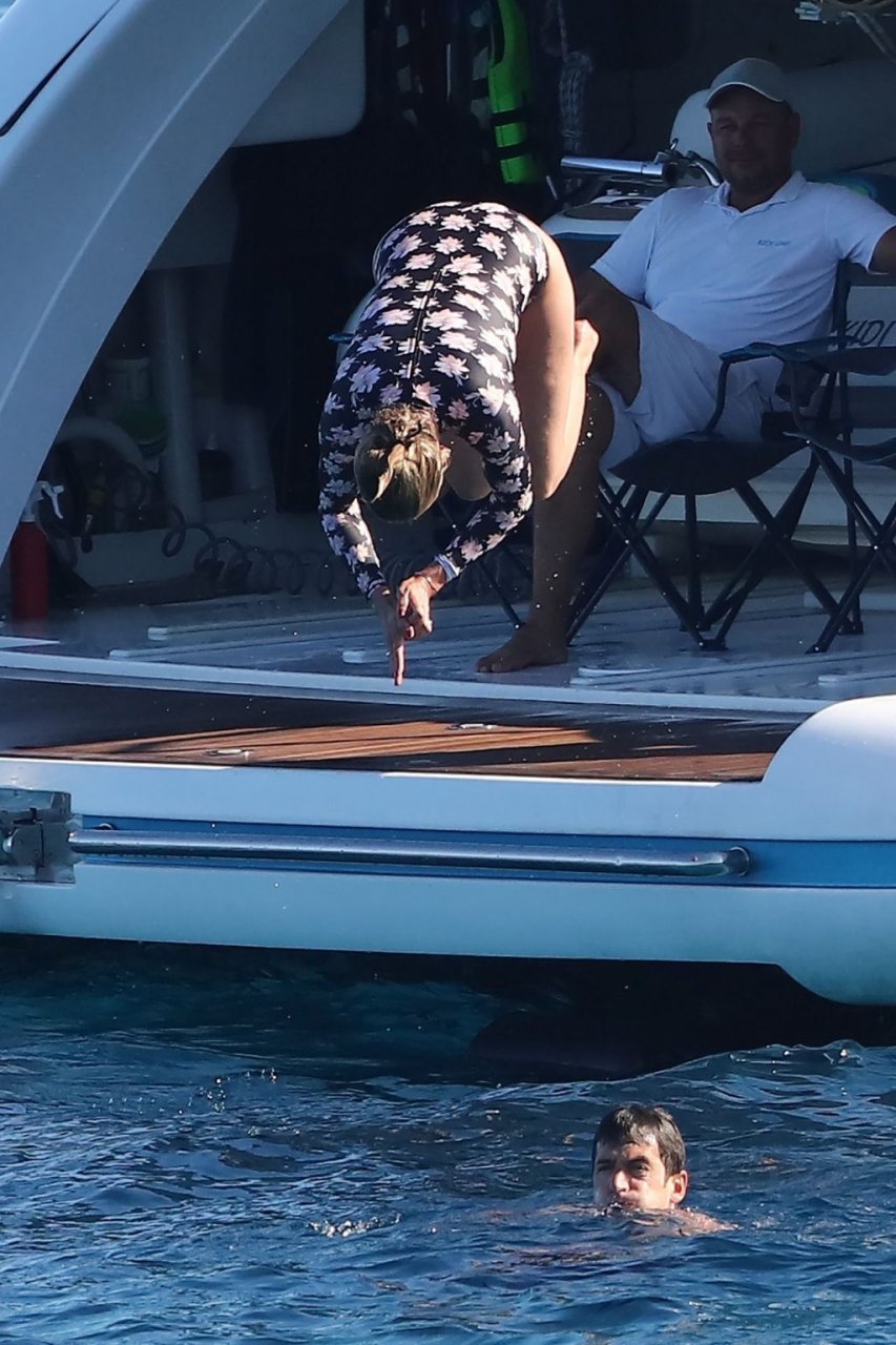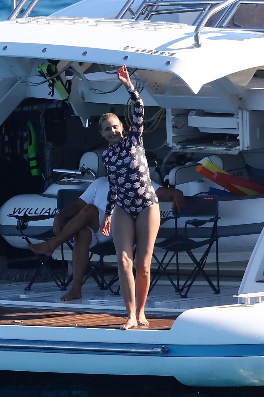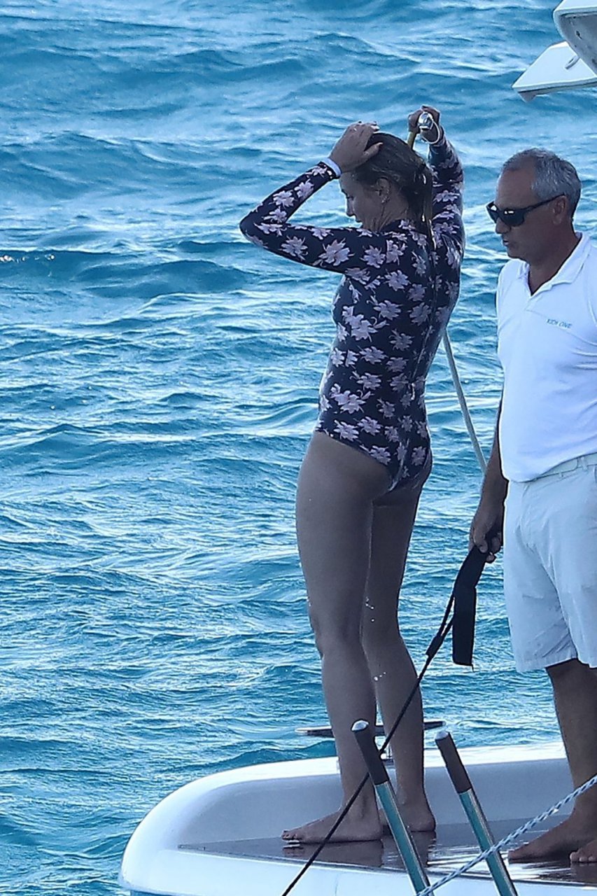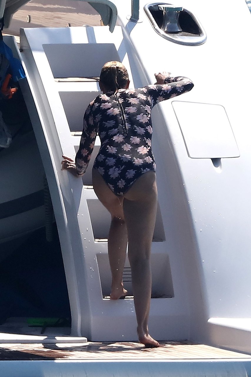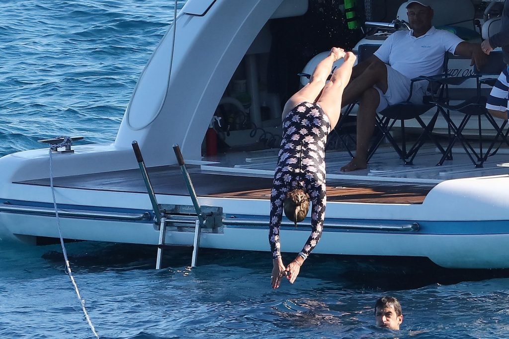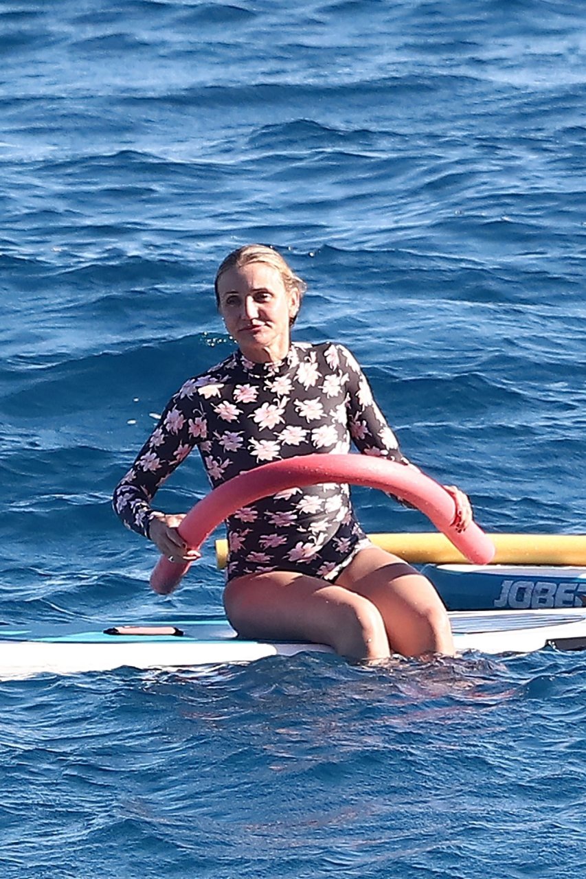 Cameron Diaz e o marido Benji Madden estão aproveitando ao máximo suas férias em Saint Tropez, 08/08/2019. A estrela de Charlie’s Angels foi vista mergulhando no Mediterrâneo com um maiô floral que mostrava seu corpo fantástico.