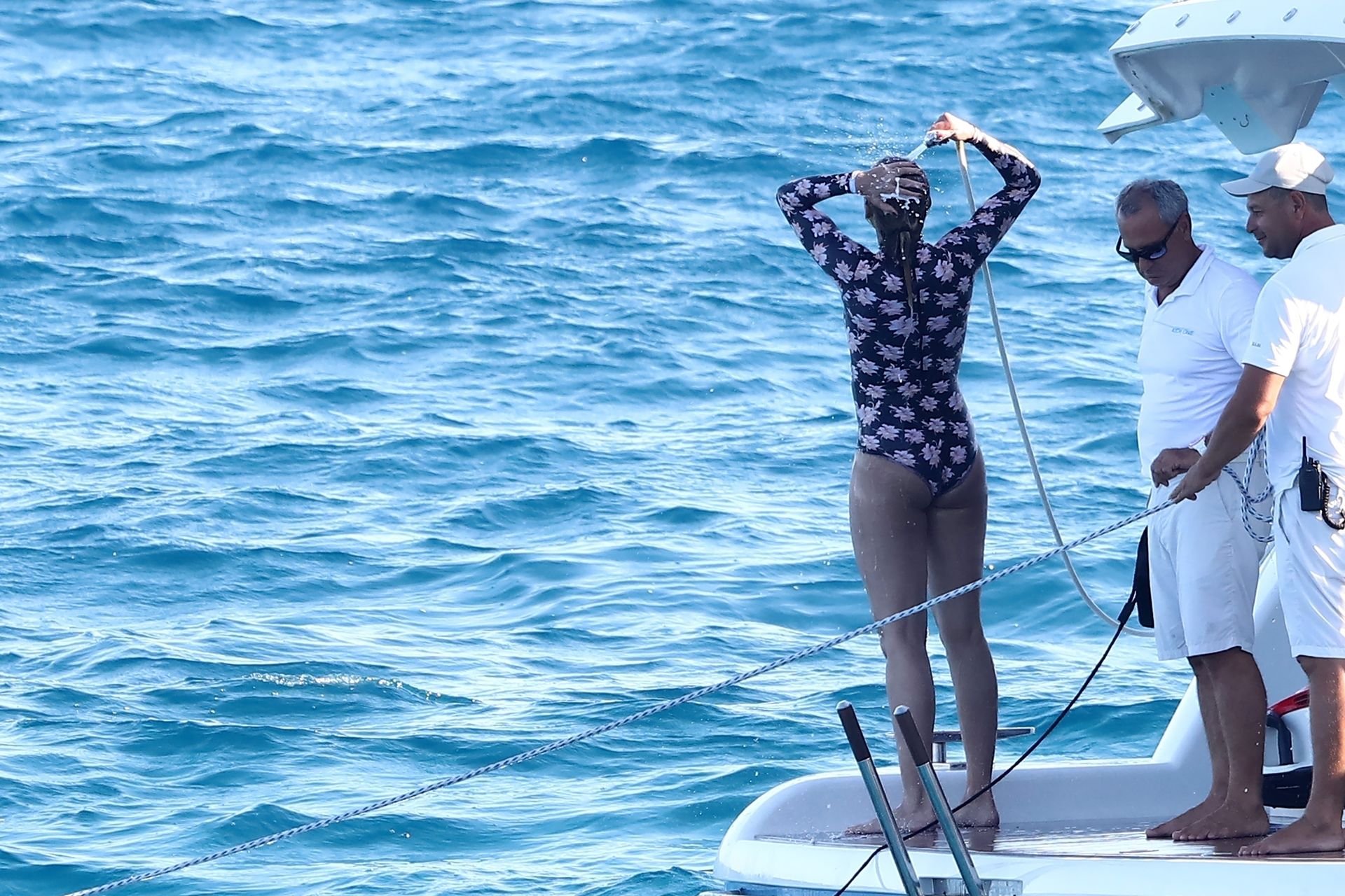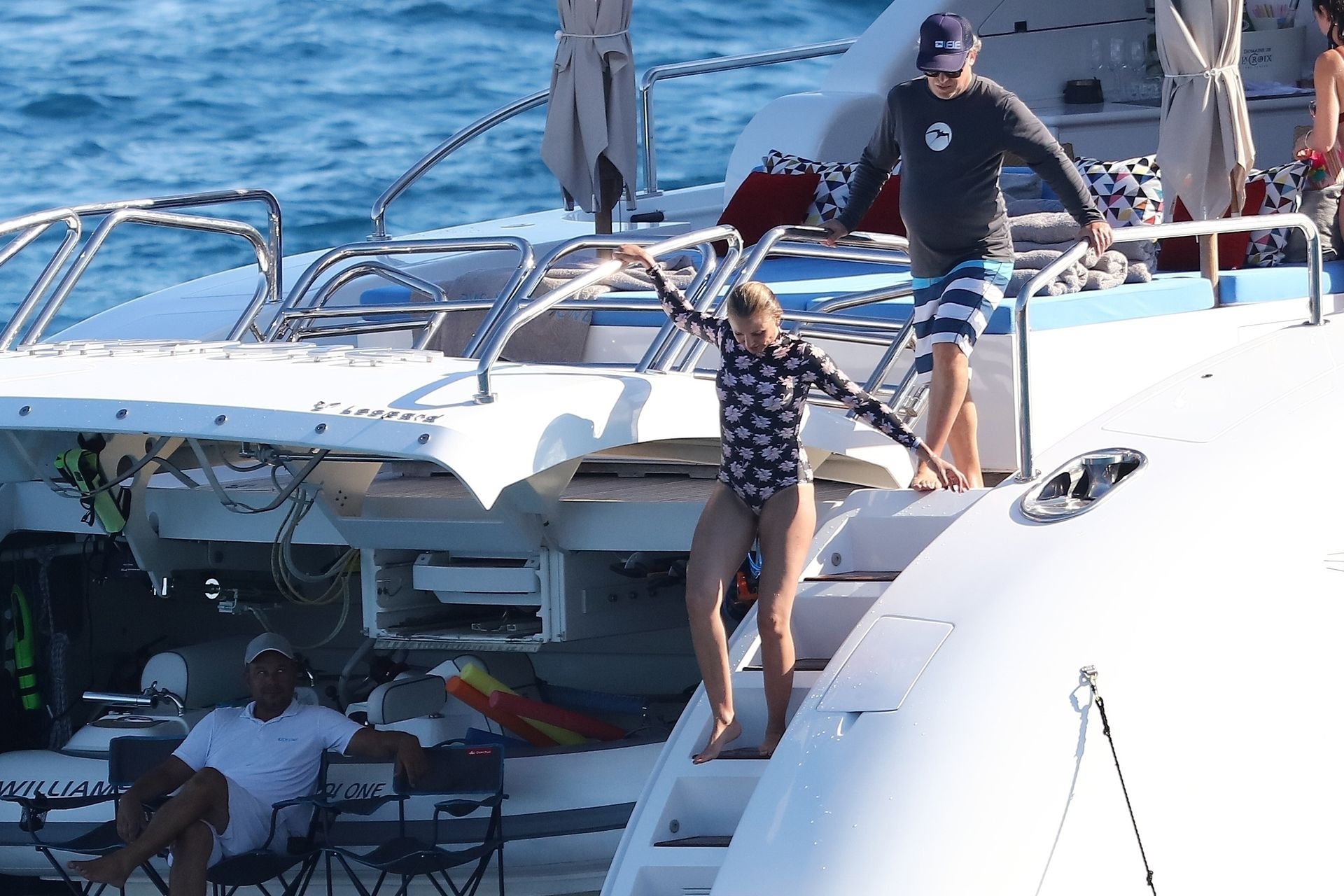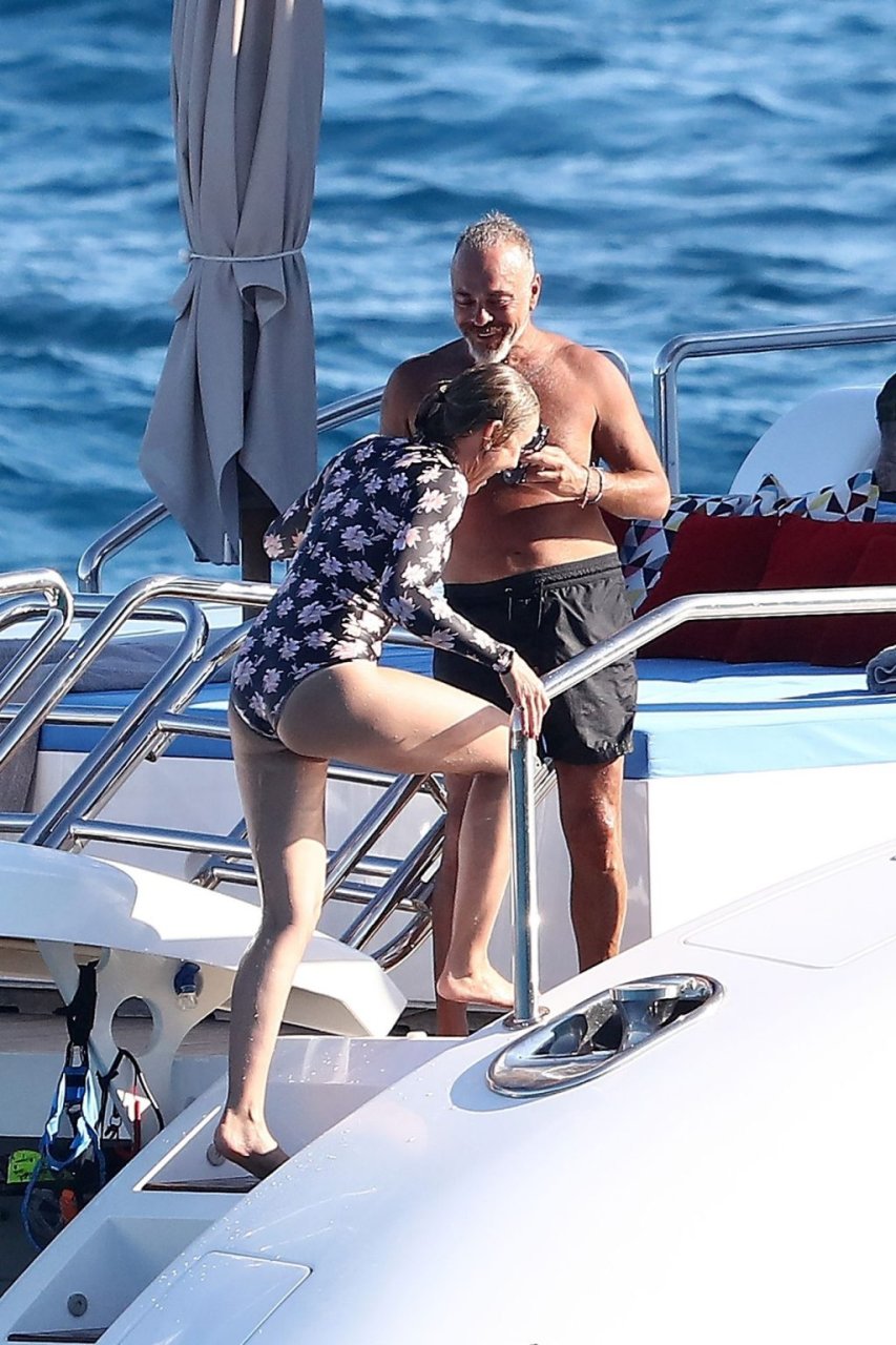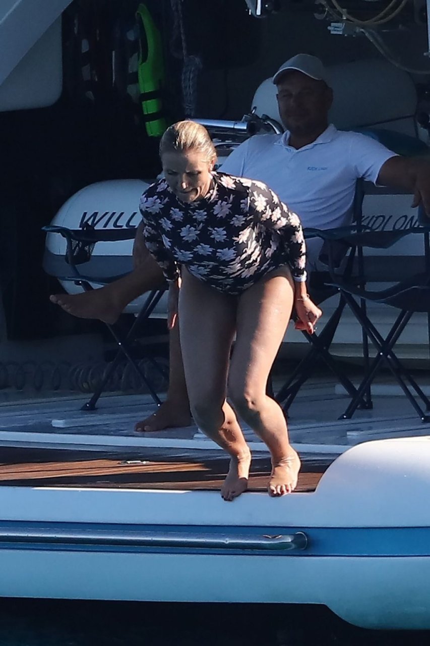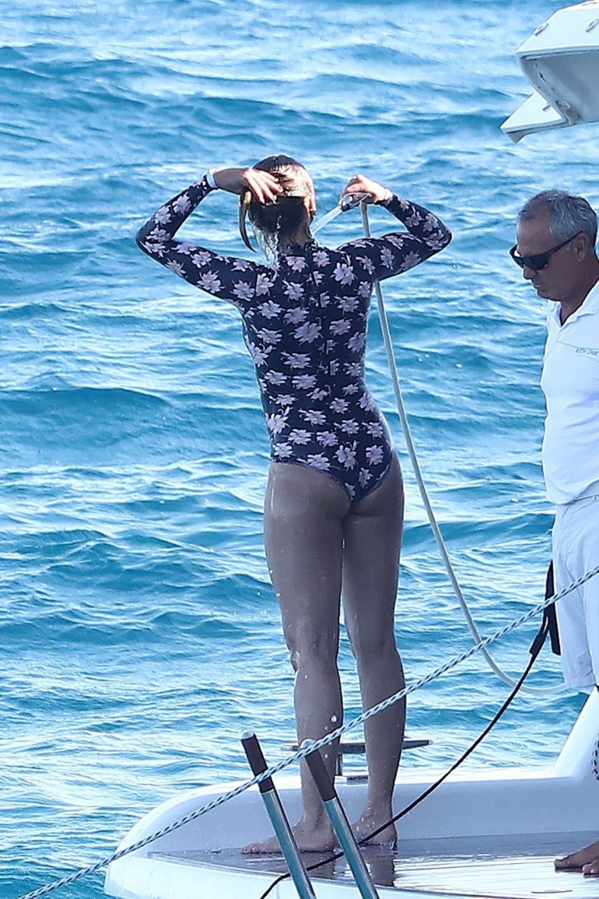 Cameron Diaz e o marido Benji Madden estão aproveitando ao máximo suas férias em Saint Tropez, 08/08/2019. A estrela de Charlie’s Angels foi vista mergulhando no Mediterrâneo com um maiô floral que mostrava seu corpo fantástico.