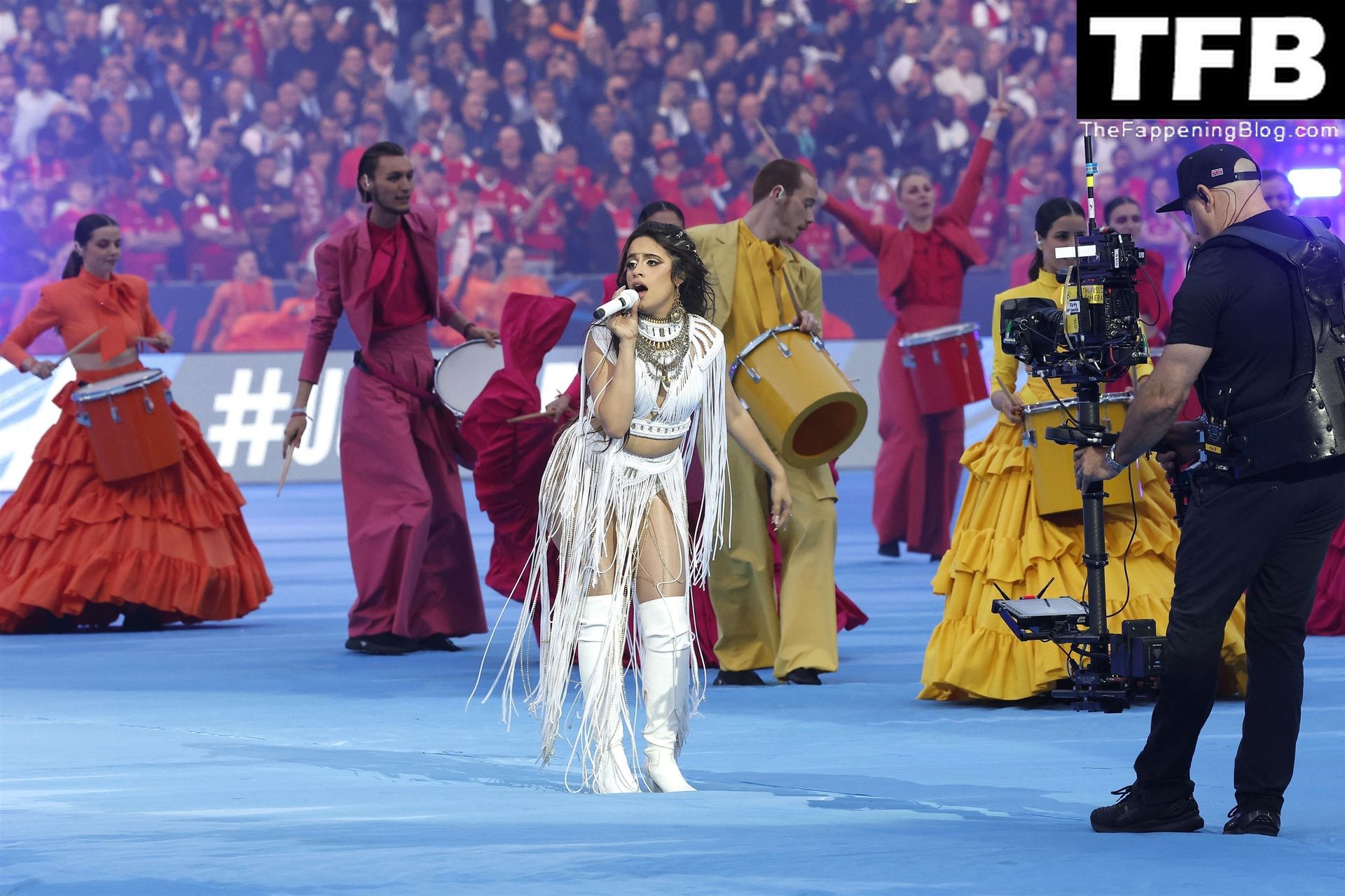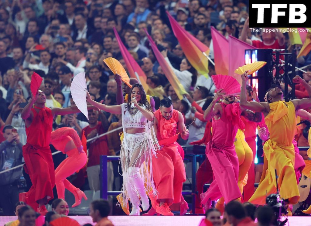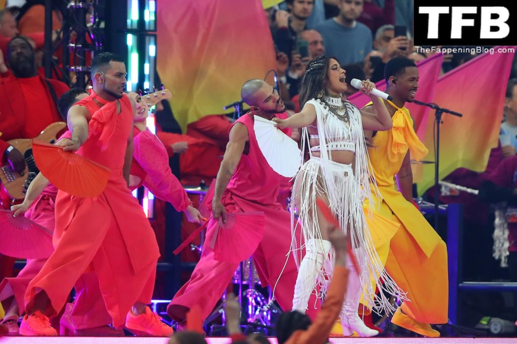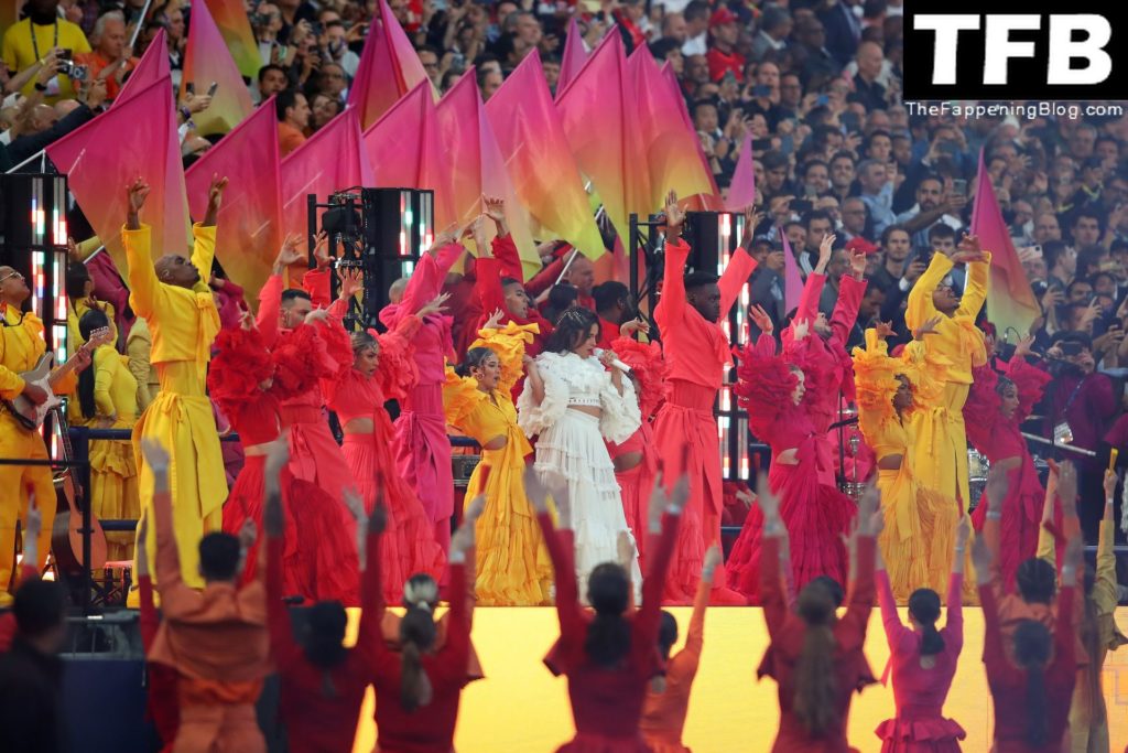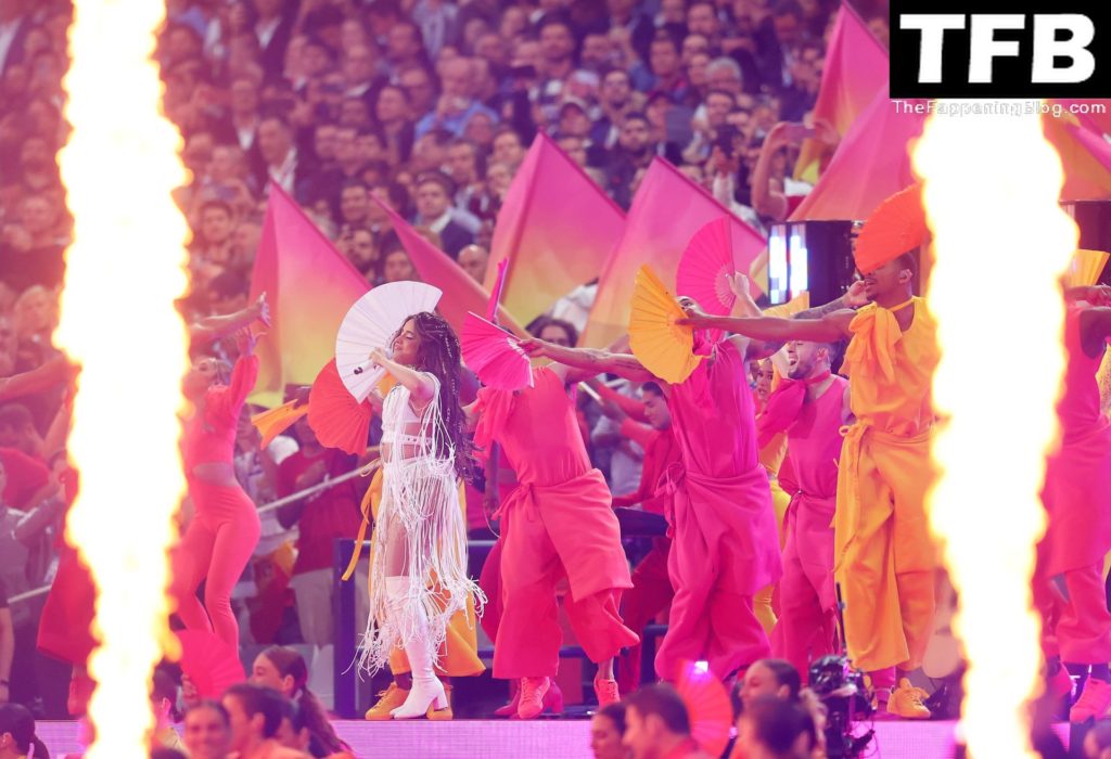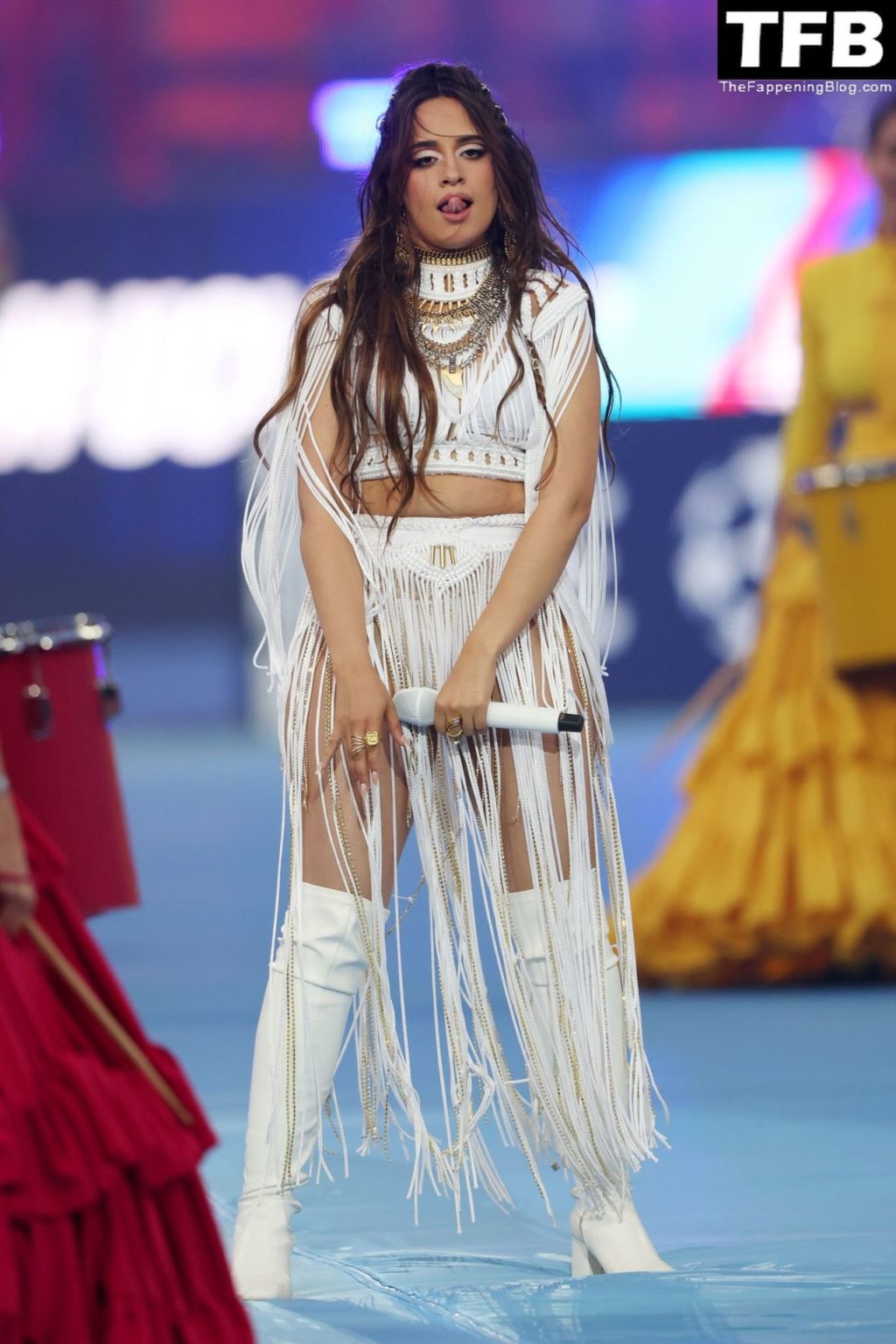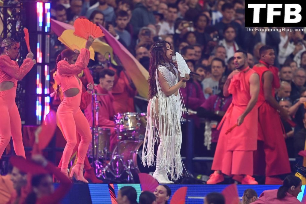Camila Cabello se apresenta na final da Liga dos Campeões entre Liverpool e Real Madrid no Stade de France em Saint-Denis, 28/05/2022.