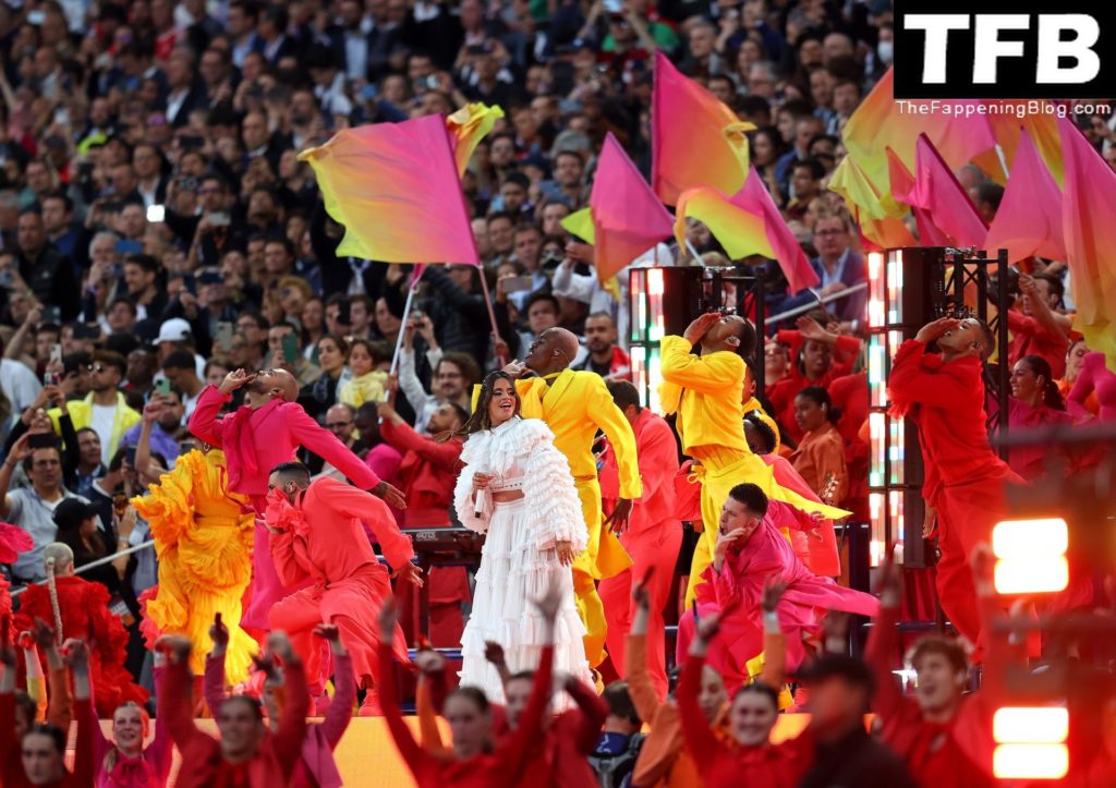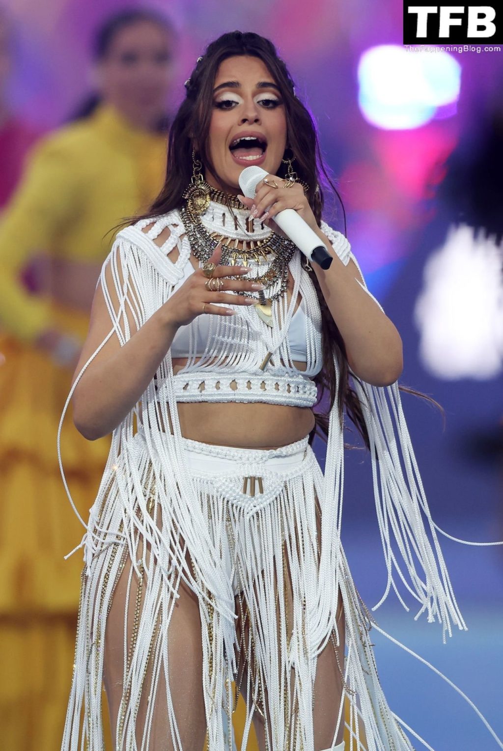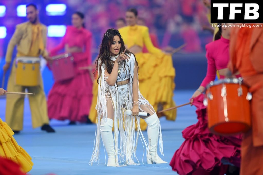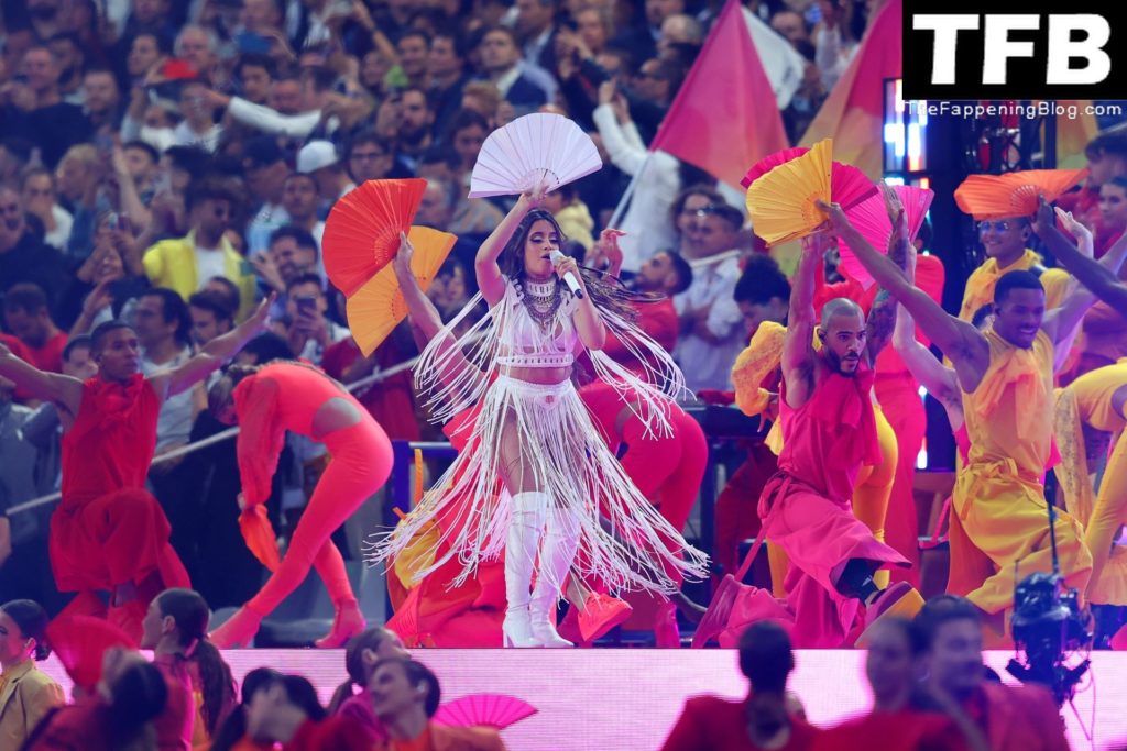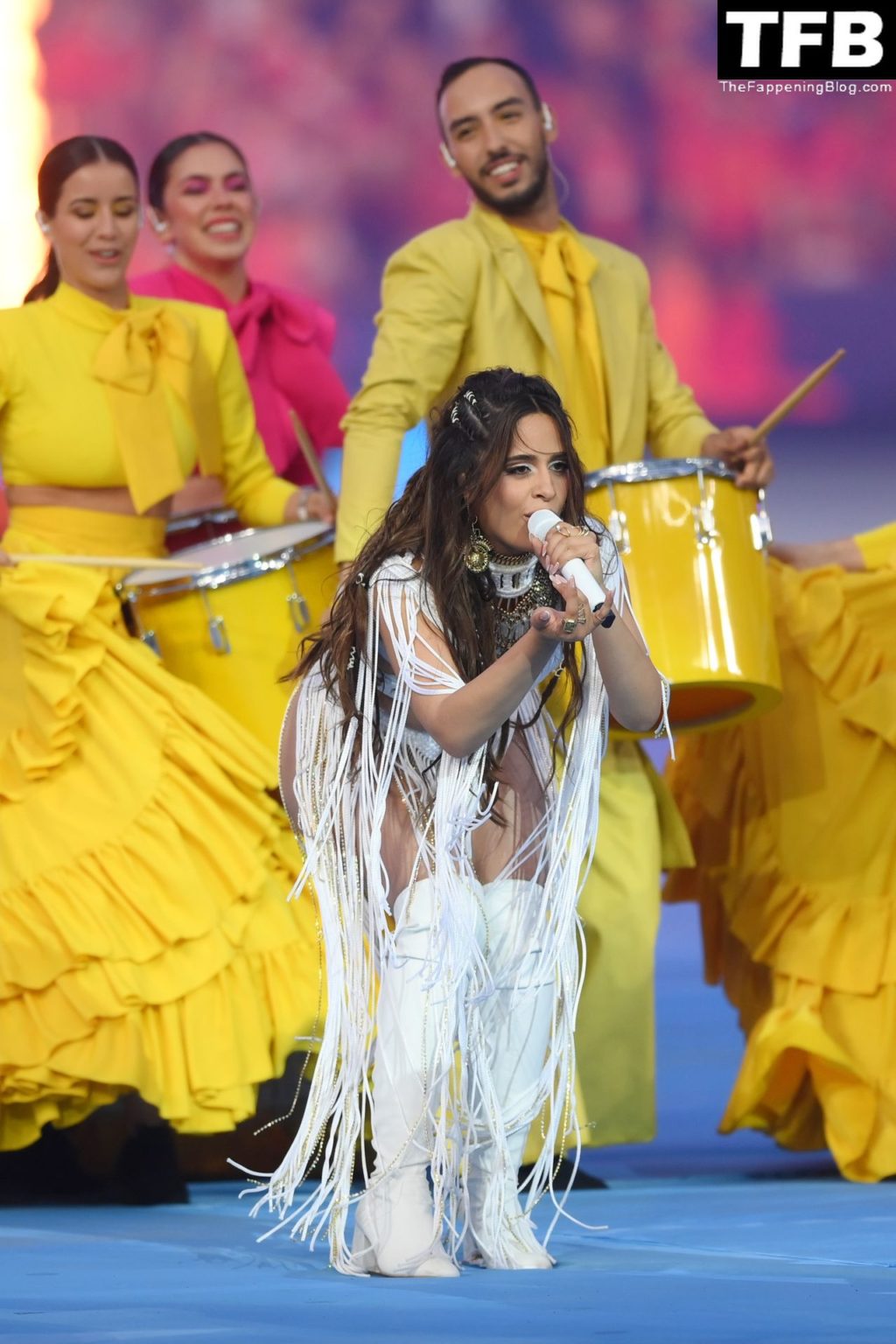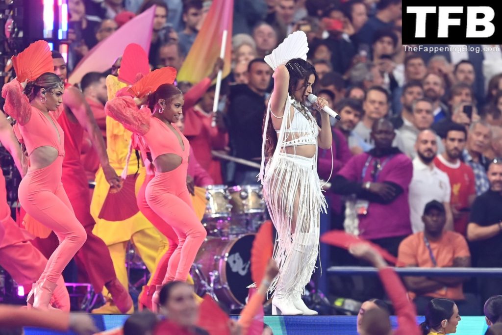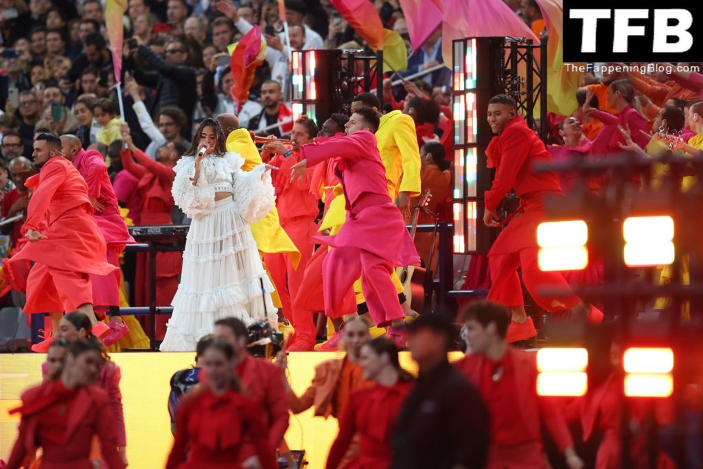 Camila Cabello se apresenta na final da Liga dos Campeões entre Liverpool e Real Madrid no Stade de France em Saint-Denis, 28/05/2022.