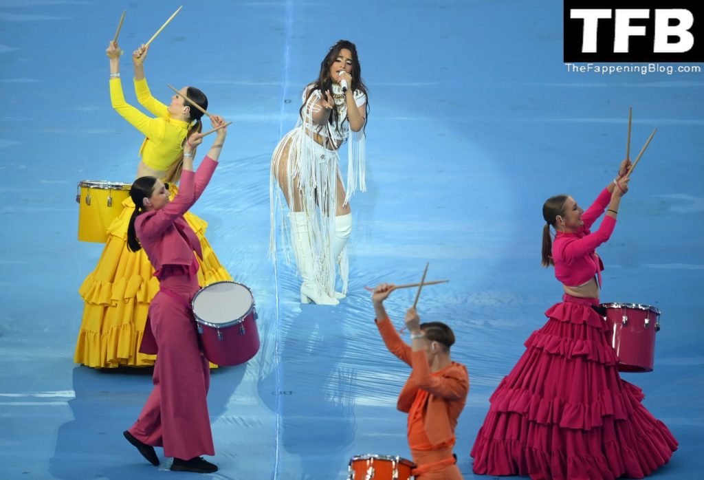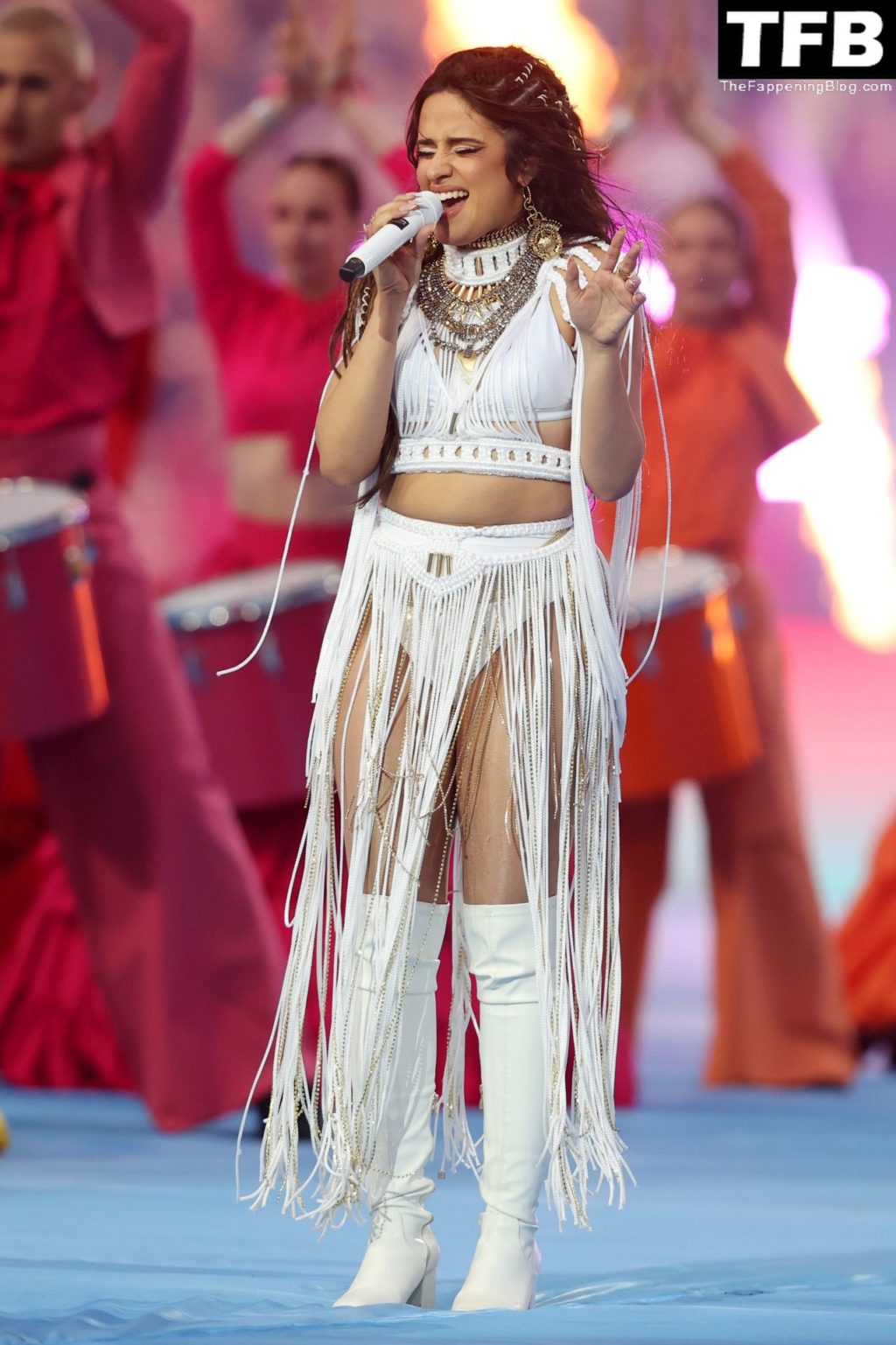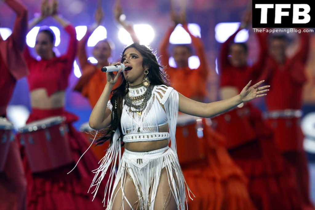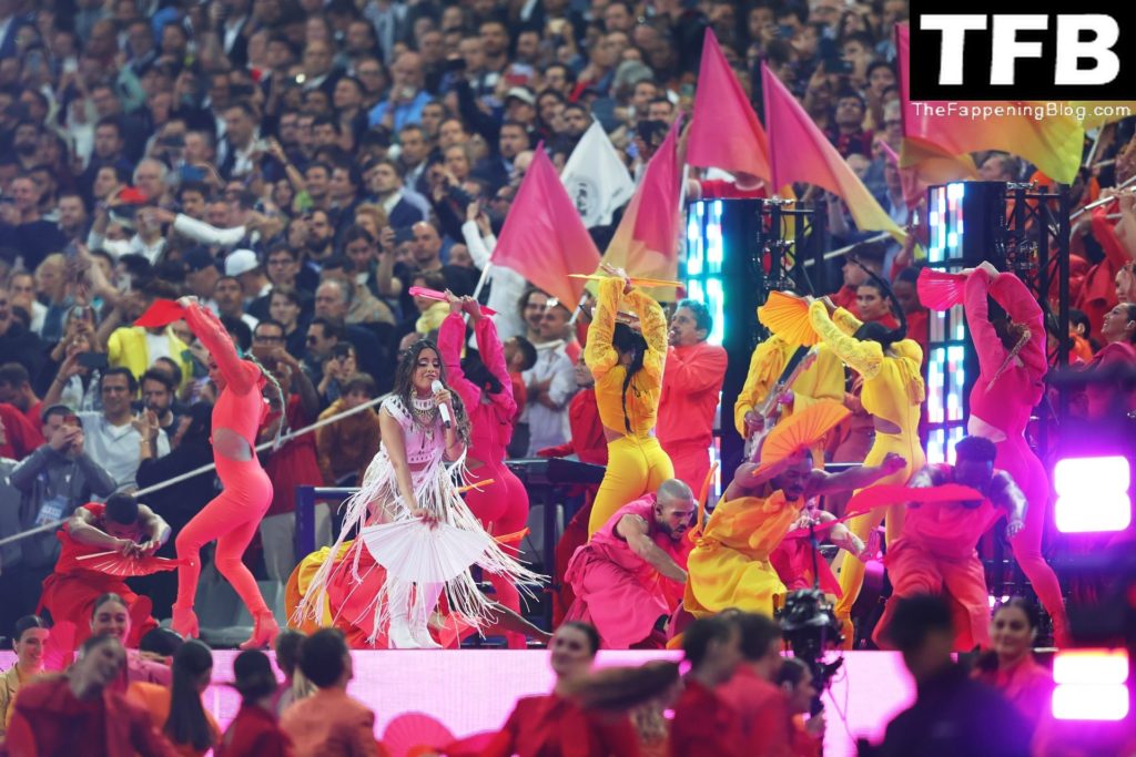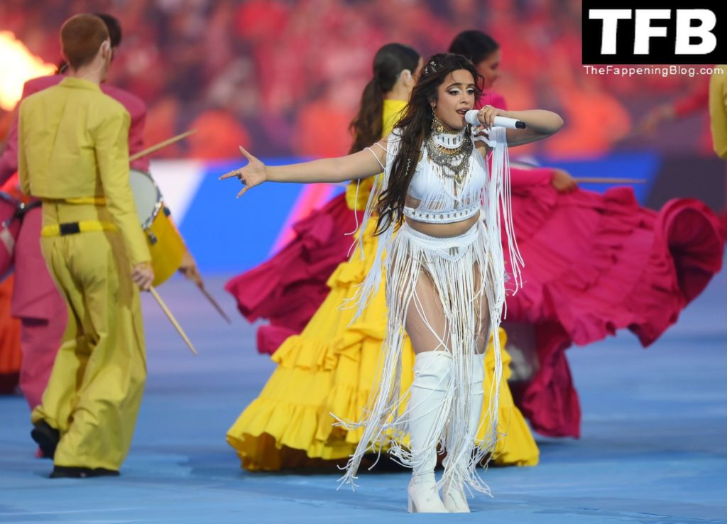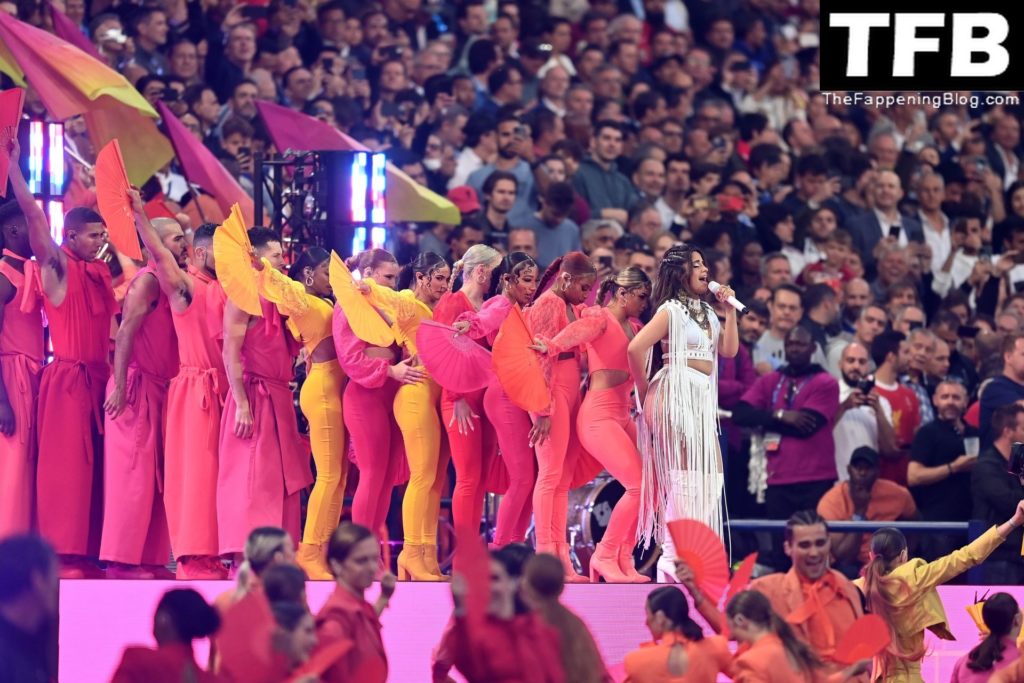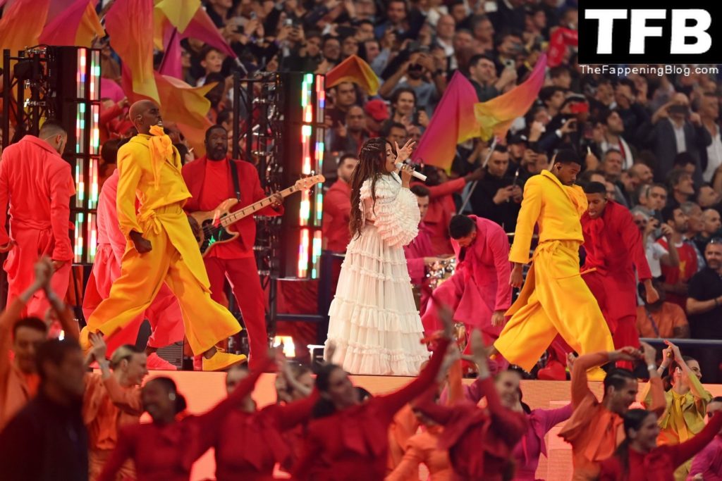 Camila Cabello se apresenta na final da Liga dos Campeões entre Liverpool e Real Madrid no Stade de France em Saint-Denis, 28/05/2022.
