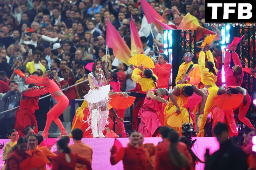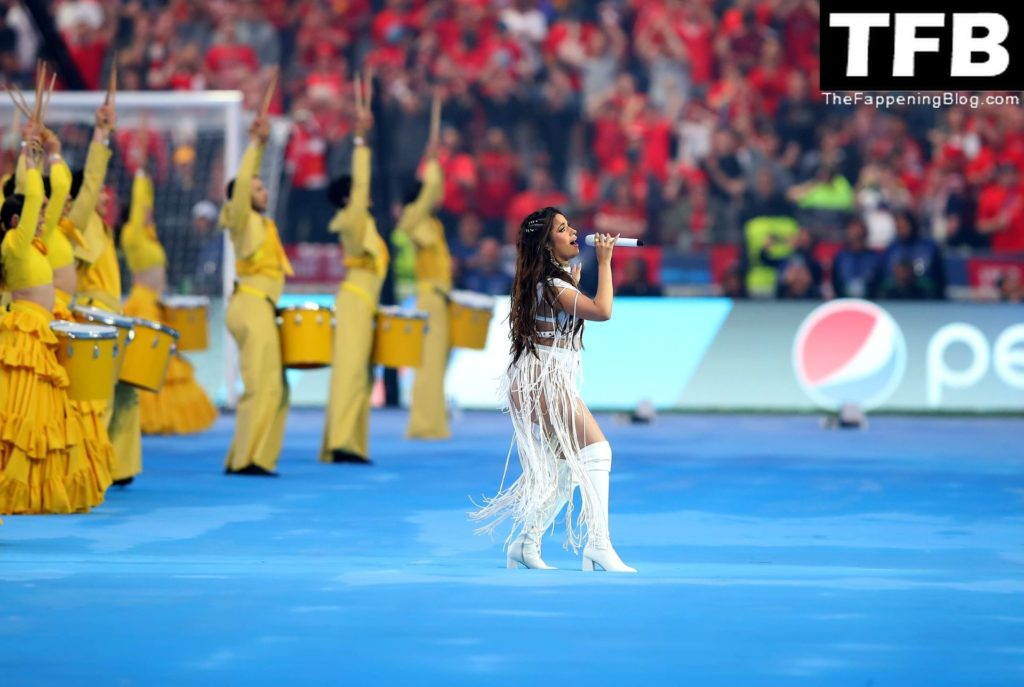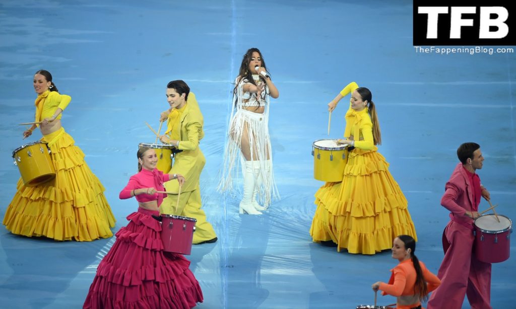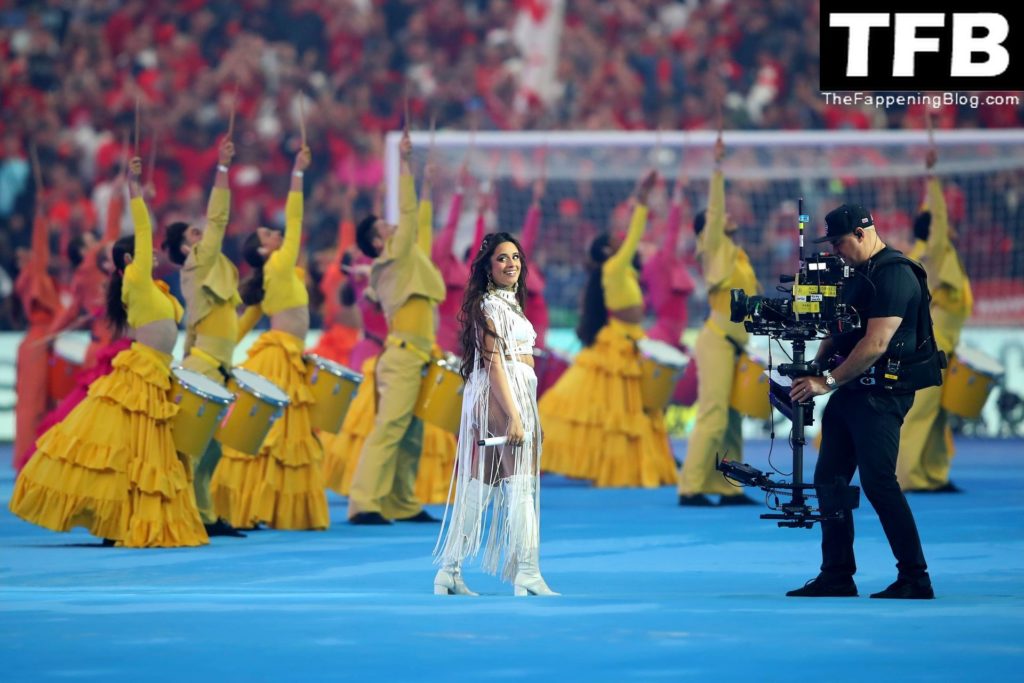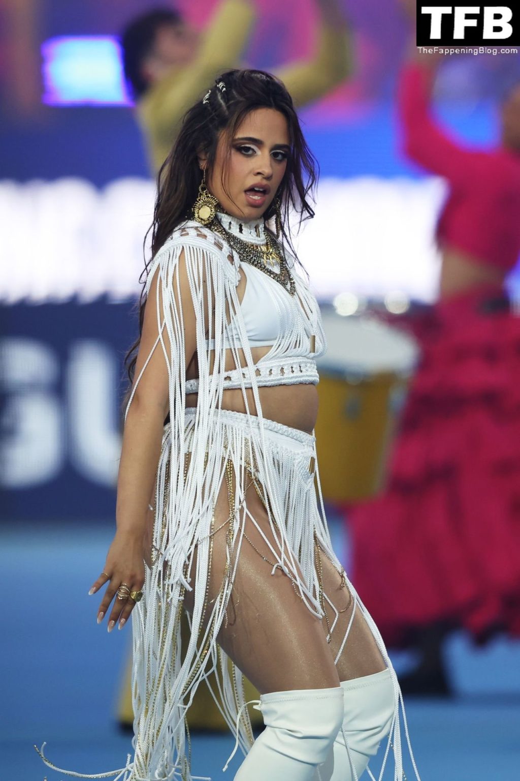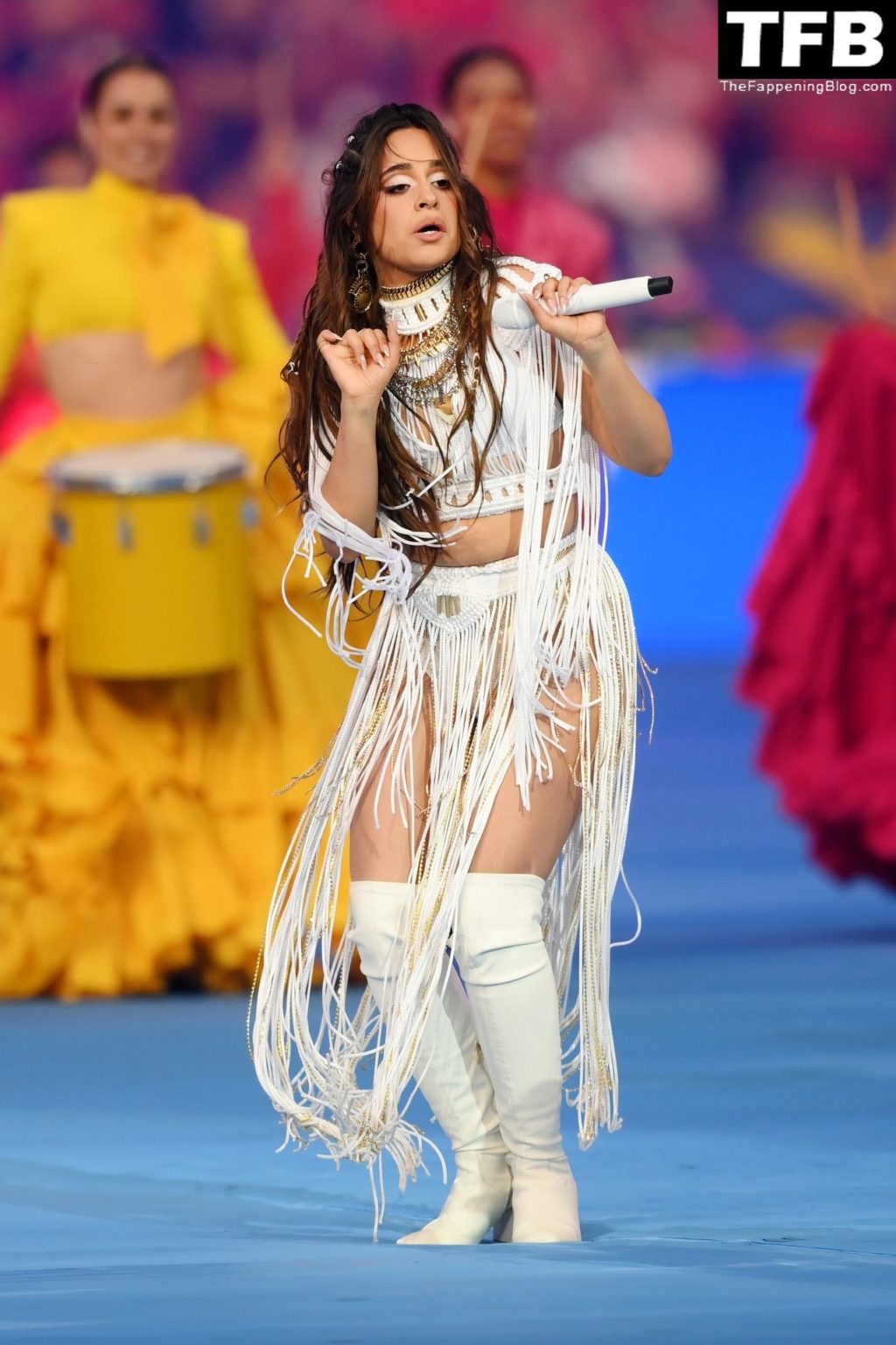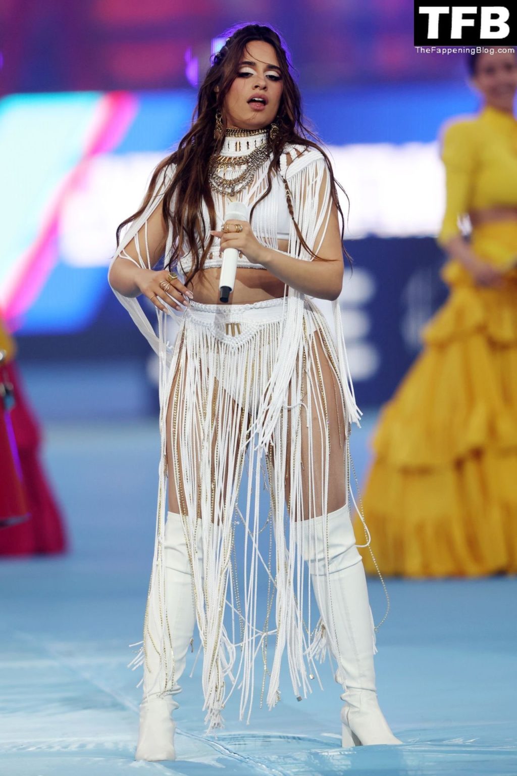 Camila Cabello se apresenta na final da Liga dos Campeões entre Liverpool e Real Madrid no Stade de France em Saint-Denis, 28/05/2022.