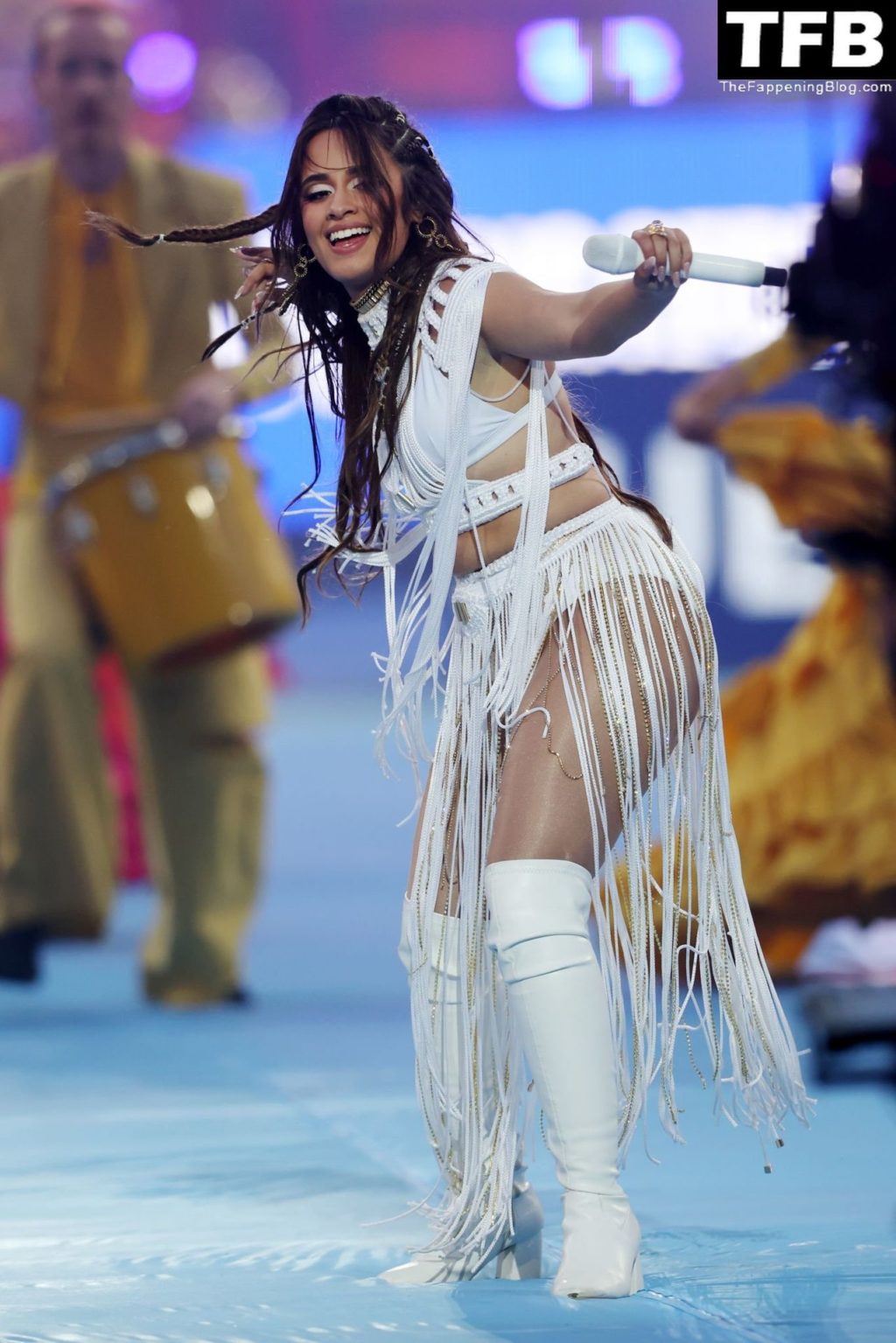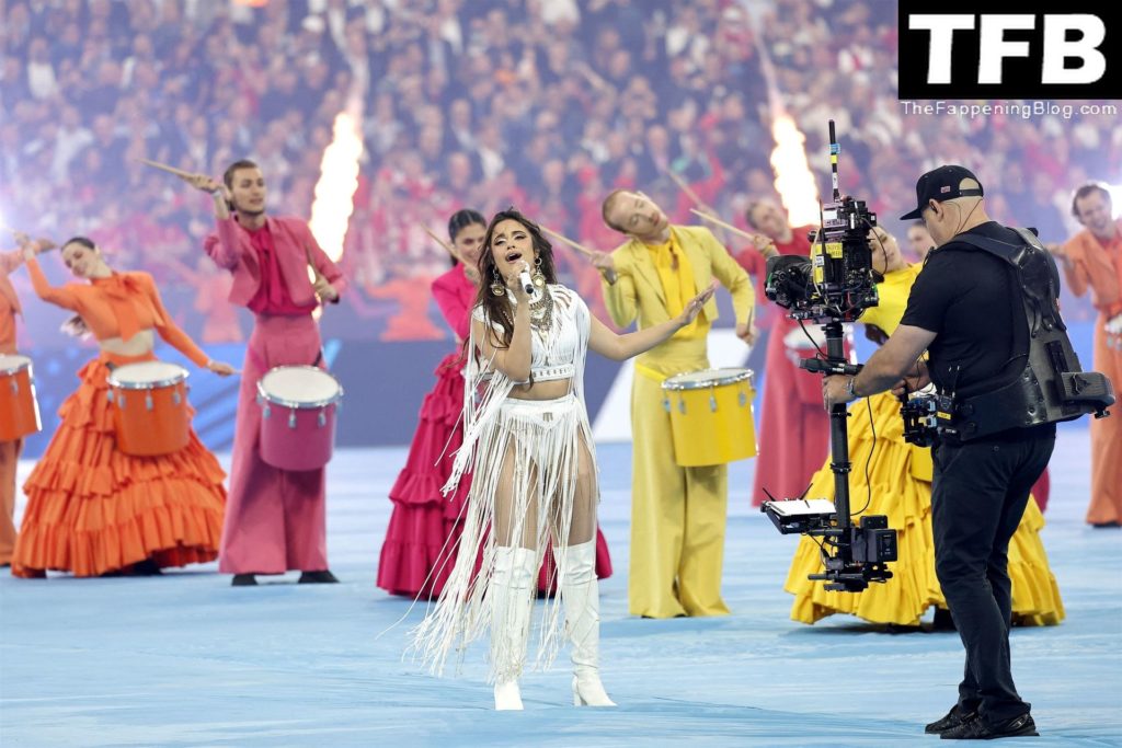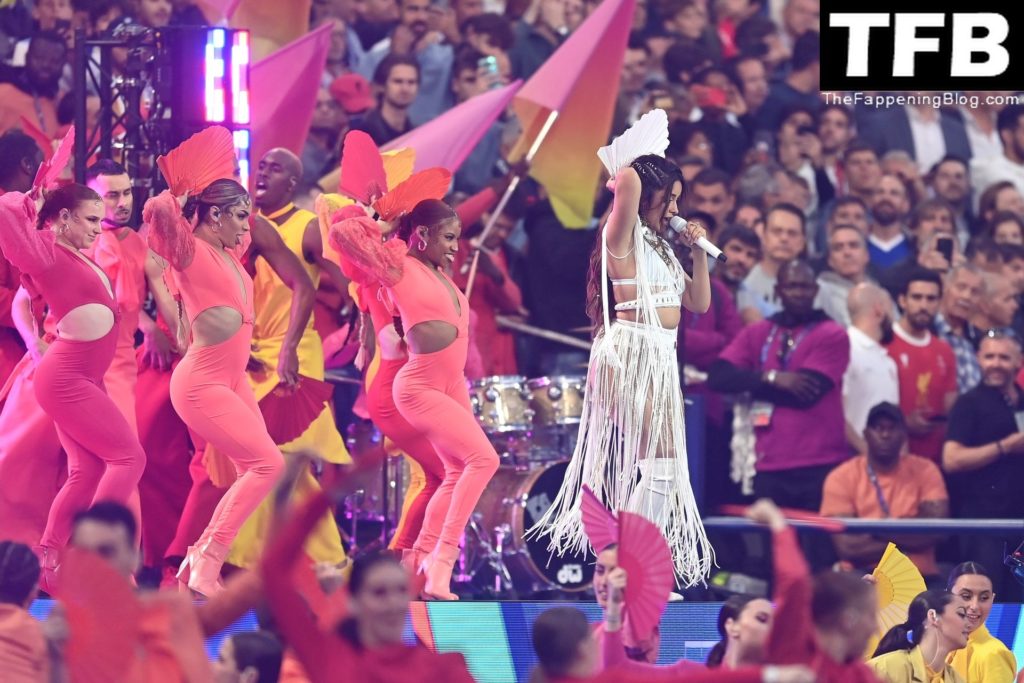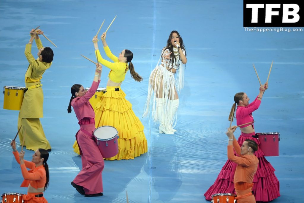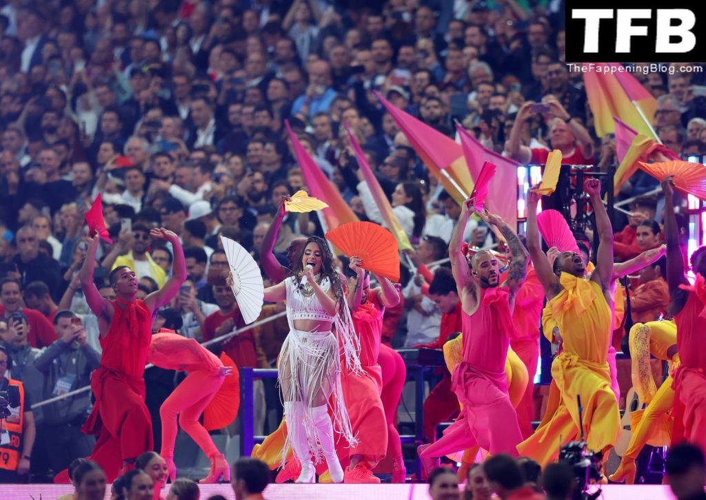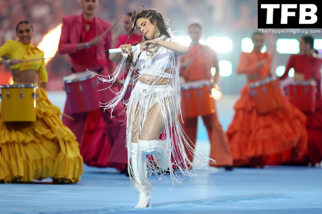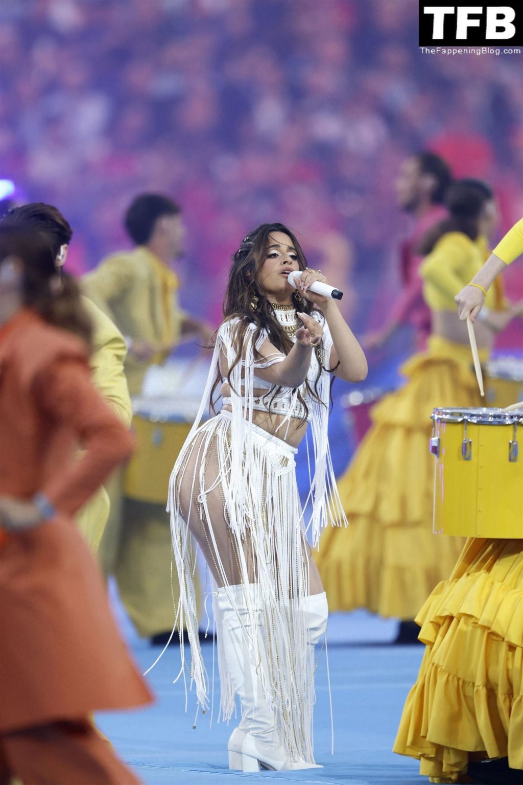 Camila Cabello se apresenta na final da Liga dos Campeões entre Liverpool e Real Madrid no Stade de France em Saint-Denis, 28/05/2022.