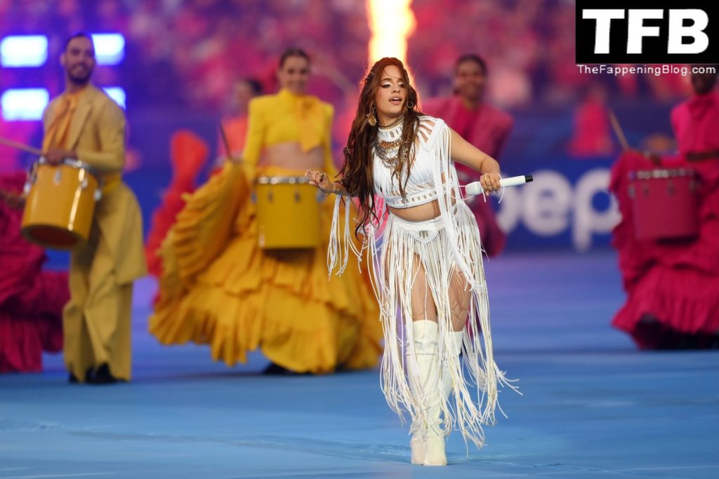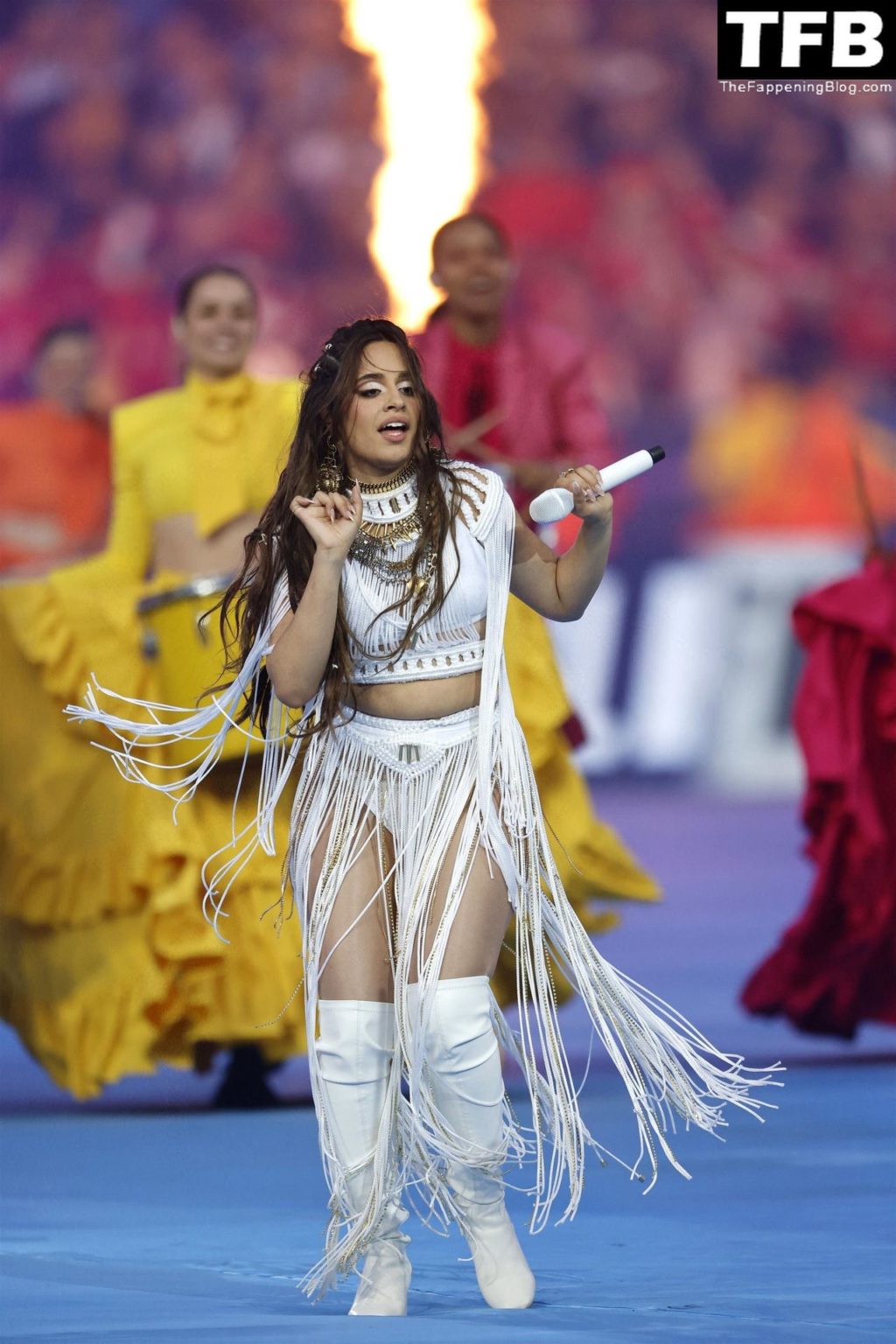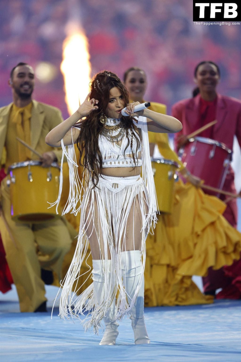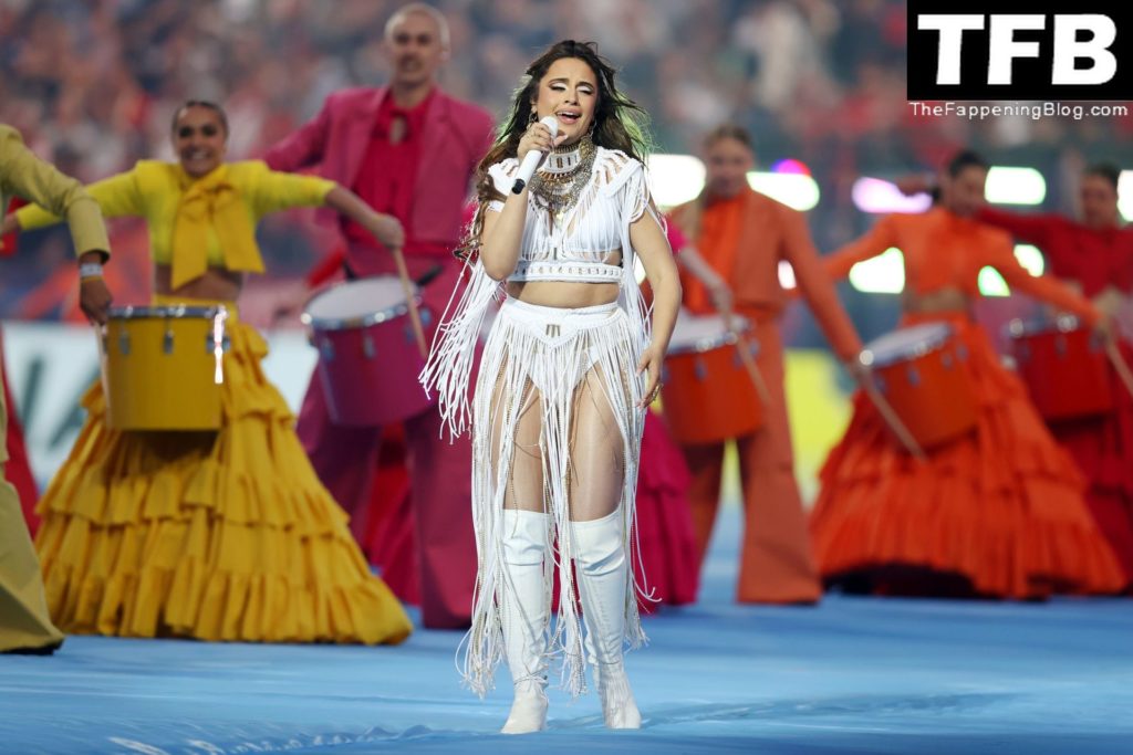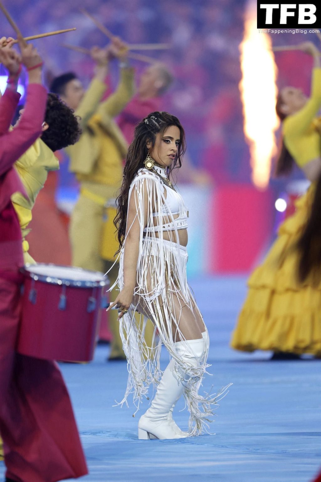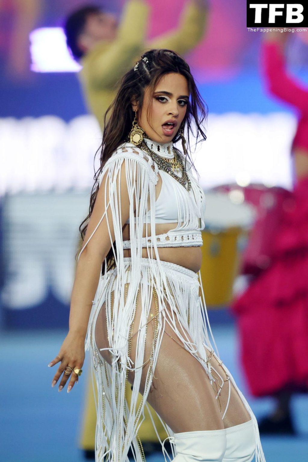 Camila Cabello se apresenta na final da Liga dos Campeões entre Liverpool e Real Madrid no Stade de France em Saint-Denis, 28/05/2022.