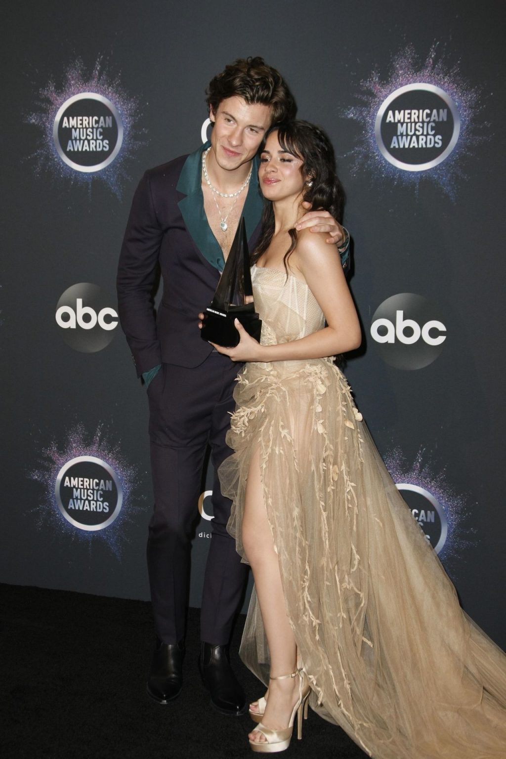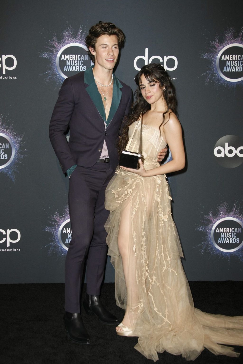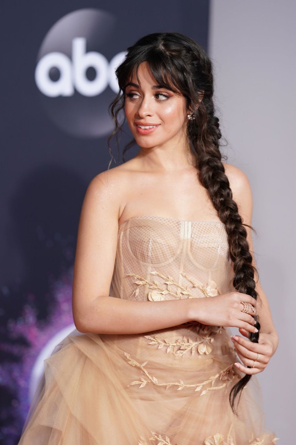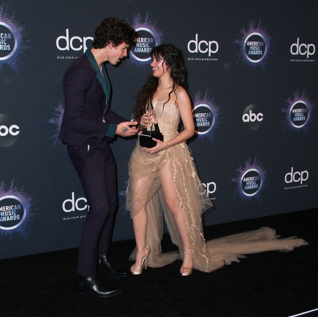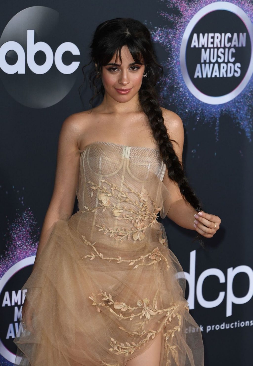 Camila Cabello chega para o American Music Awards 2019 no Microsoft Theater em Los Angeles, 24/11/2019. A cantora escolheu um vestido na cor nude para o evento, mostrando suas pernas sexy no tapete vermelho enquanto era fotografada sozinha e com Shawn Mendes.