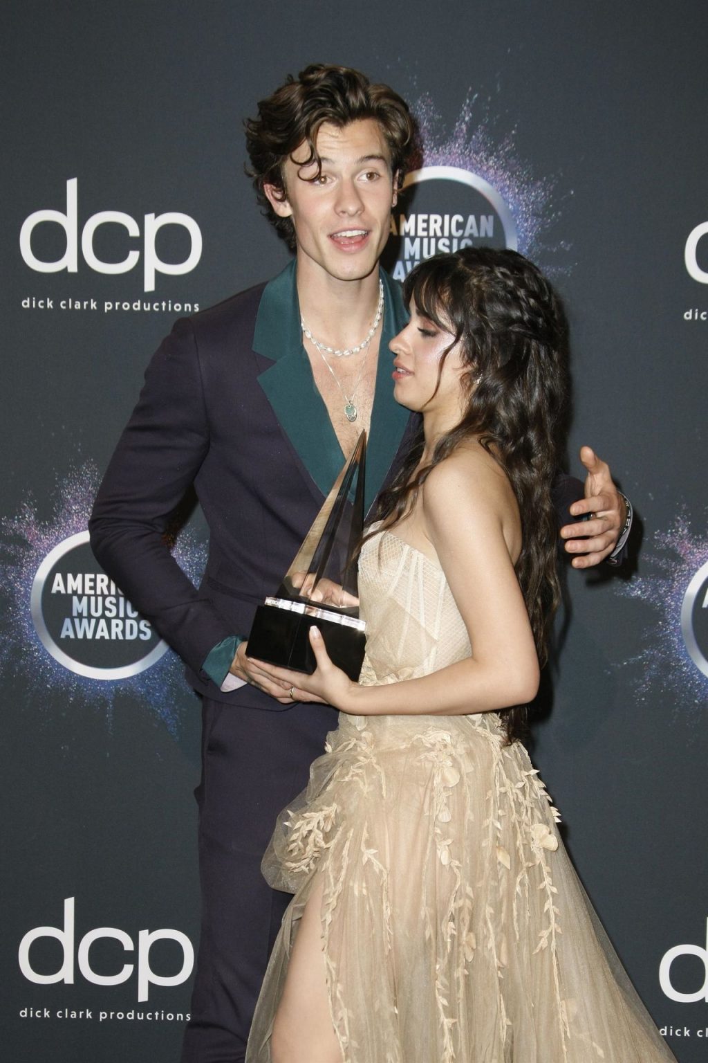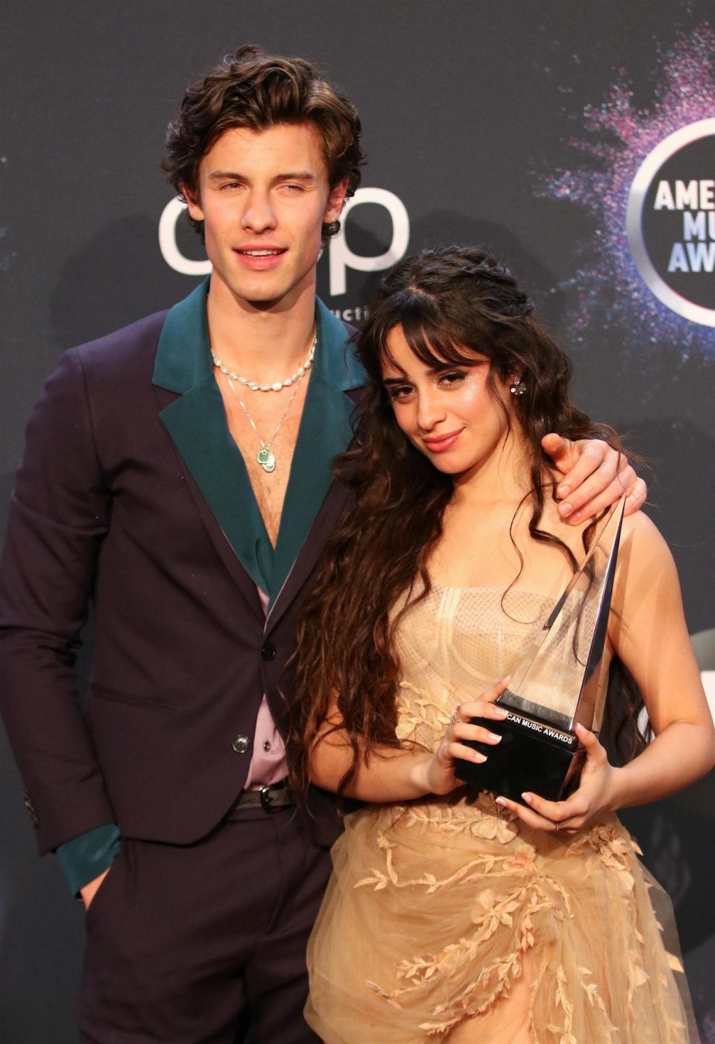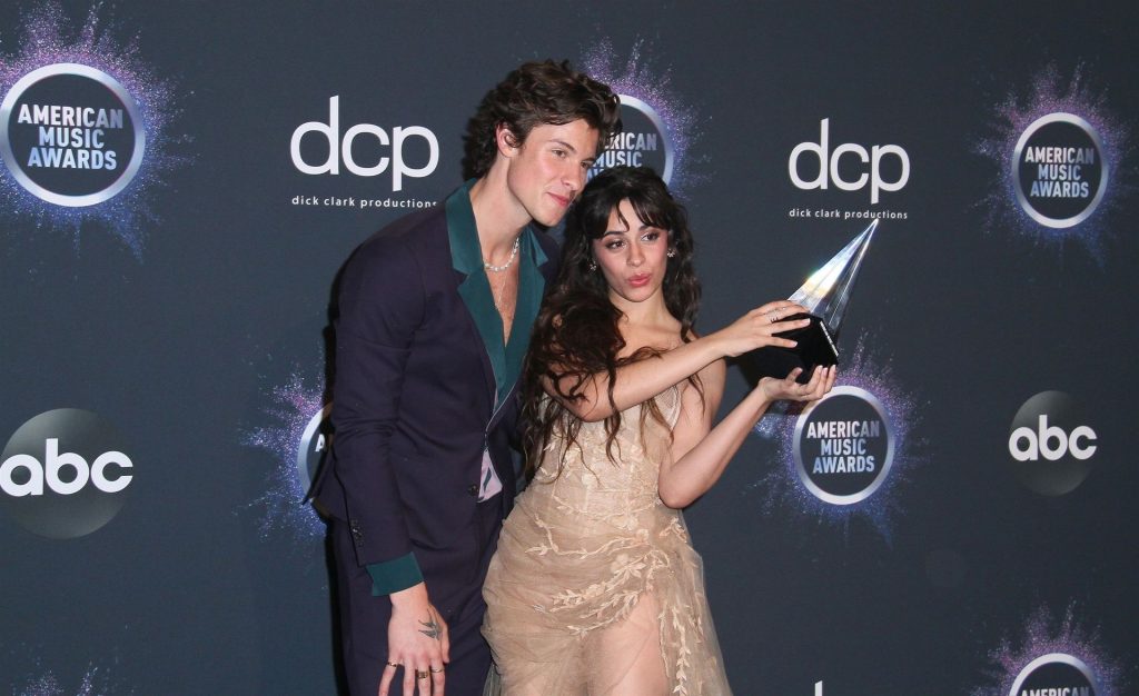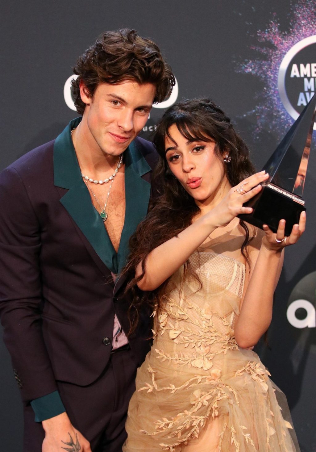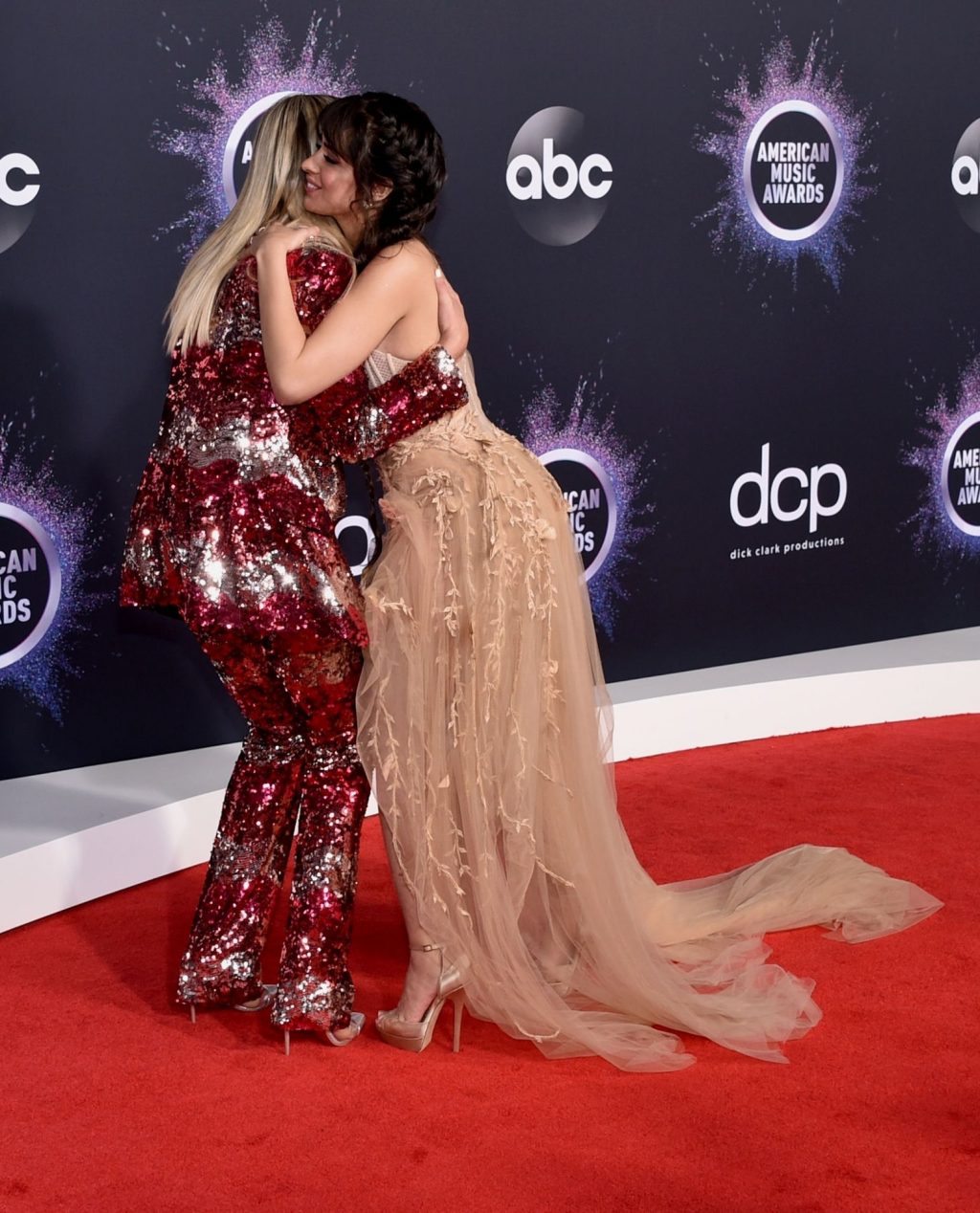 Camila Cabello chega para o American Music Awards 2019 no Microsoft Theater em Los Angeles, 24/11/2019. A cantora escolheu um vestido na cor nude para o evento, mostrando suas pernas sexy no tapete vermelho enquanto era fotografada sozinha e com Shawn Mendes.