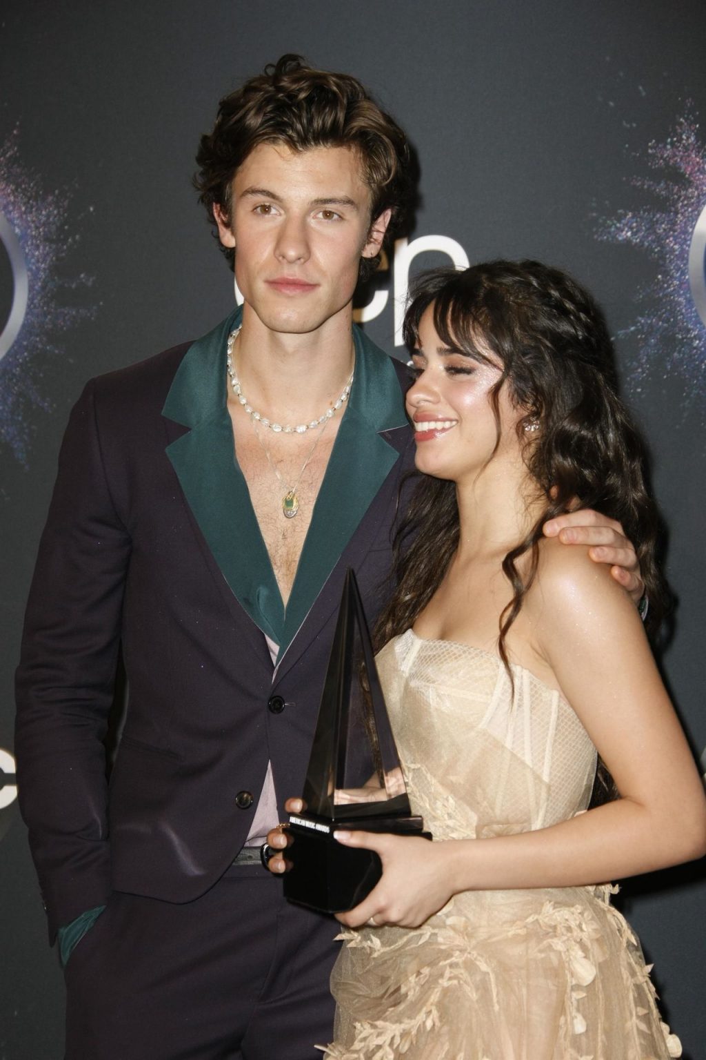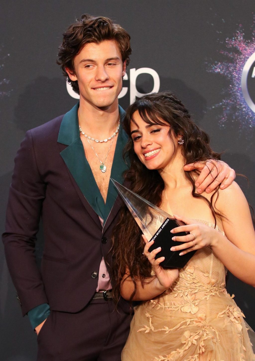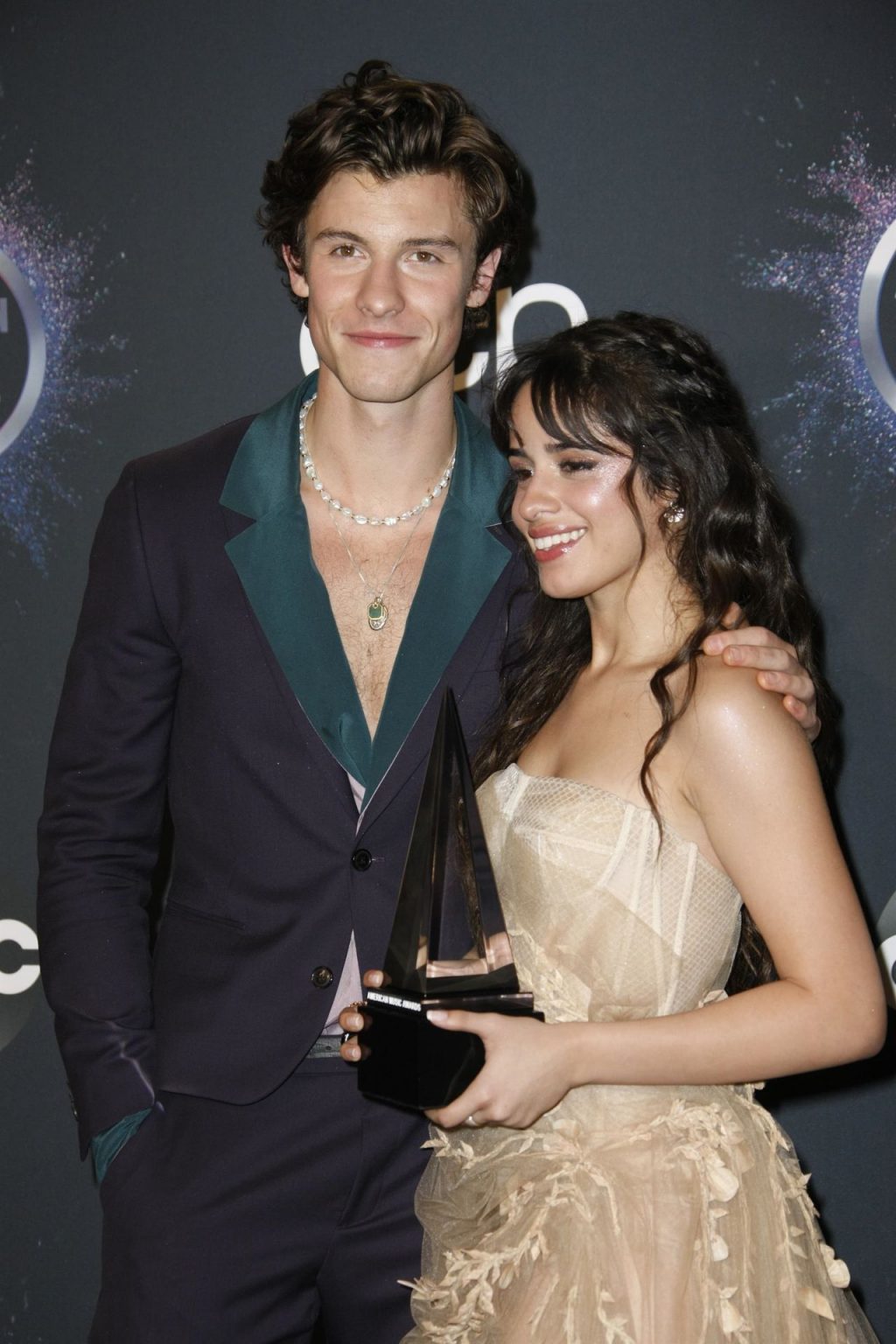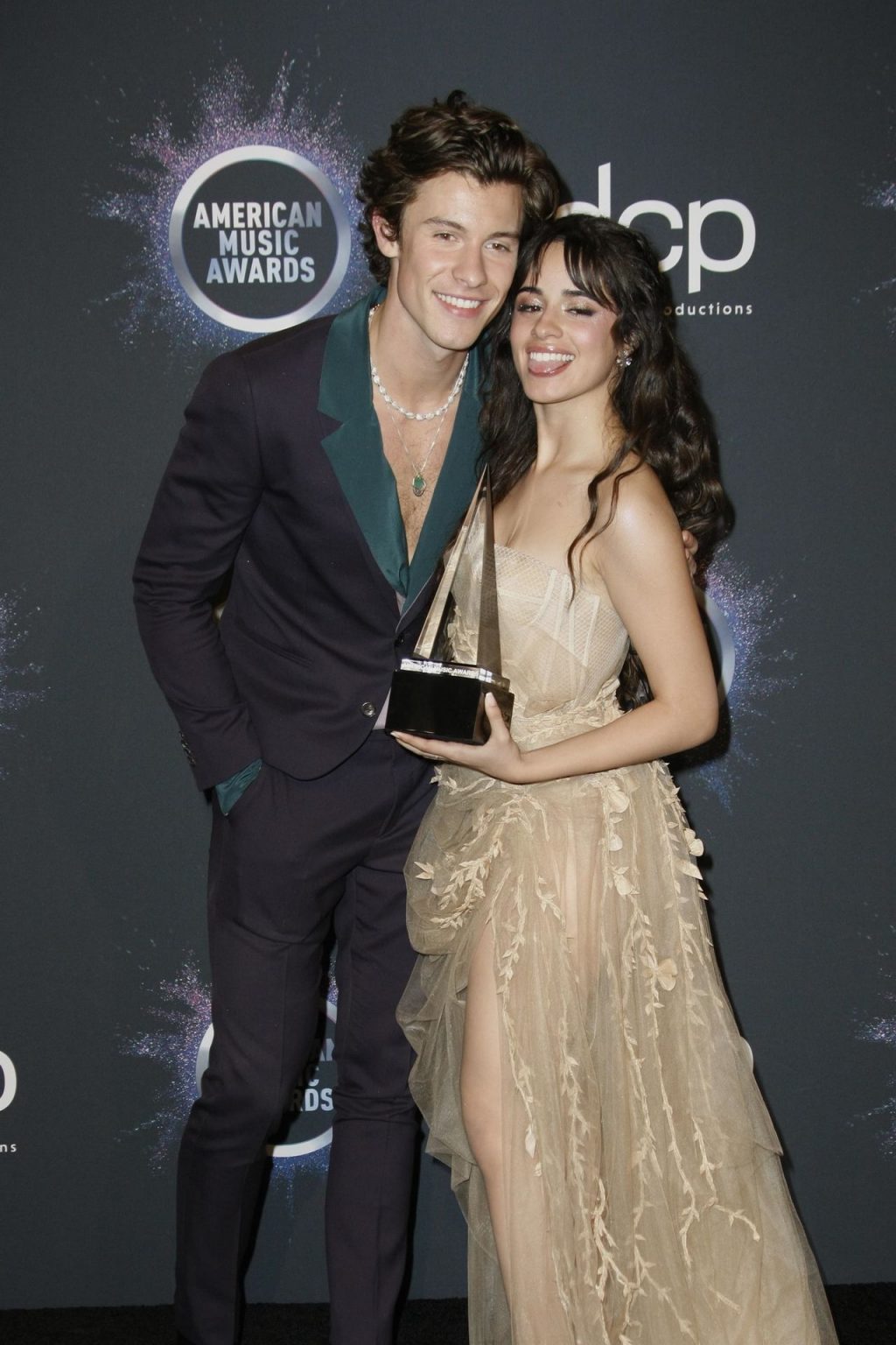 Camila Cabello chega para o American Music Awards 2019 no Microsoft Theater em Los Angeles, 24/11/2019. A cantora escolheu um vestido na cor nude para o evento, mostrando suas pernas sexy no tapete vermelho enquanto era fotografada sozinha e com Shawn Mendes.