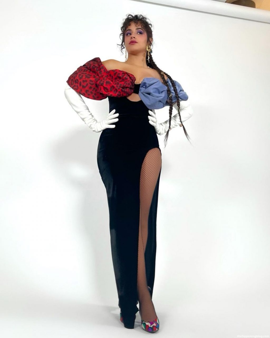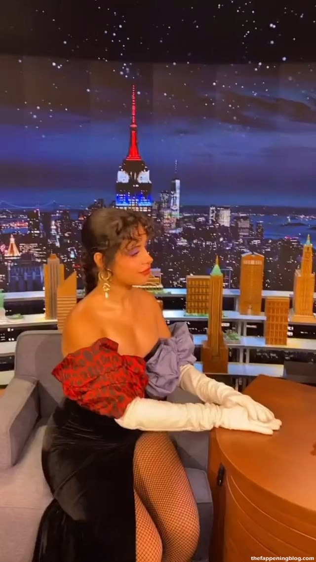 A cantora Camila Cabello exibe um belo decote enquanto posa com um top tomara que caia em um ensaio fotográfico para o The Tonight Show Starring Jimmy Fallon – Instagram, 23/07/2021.