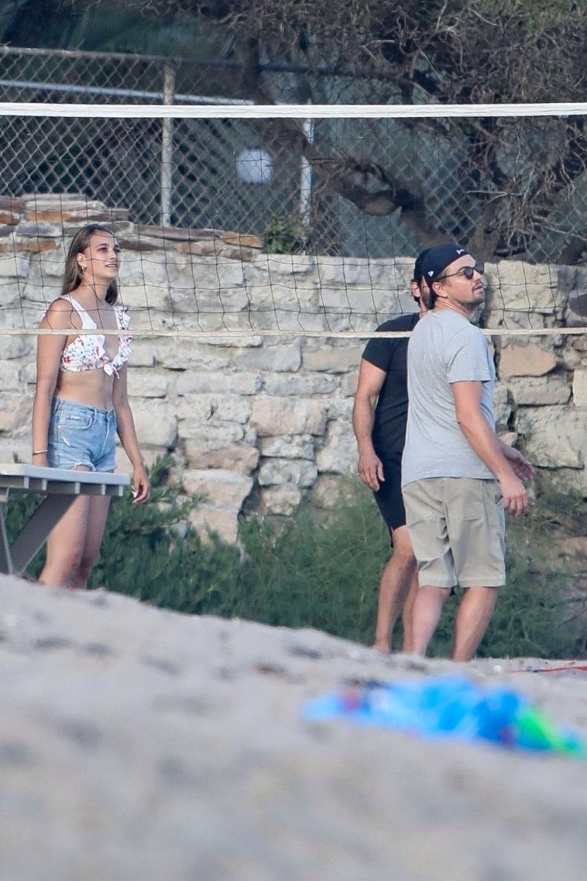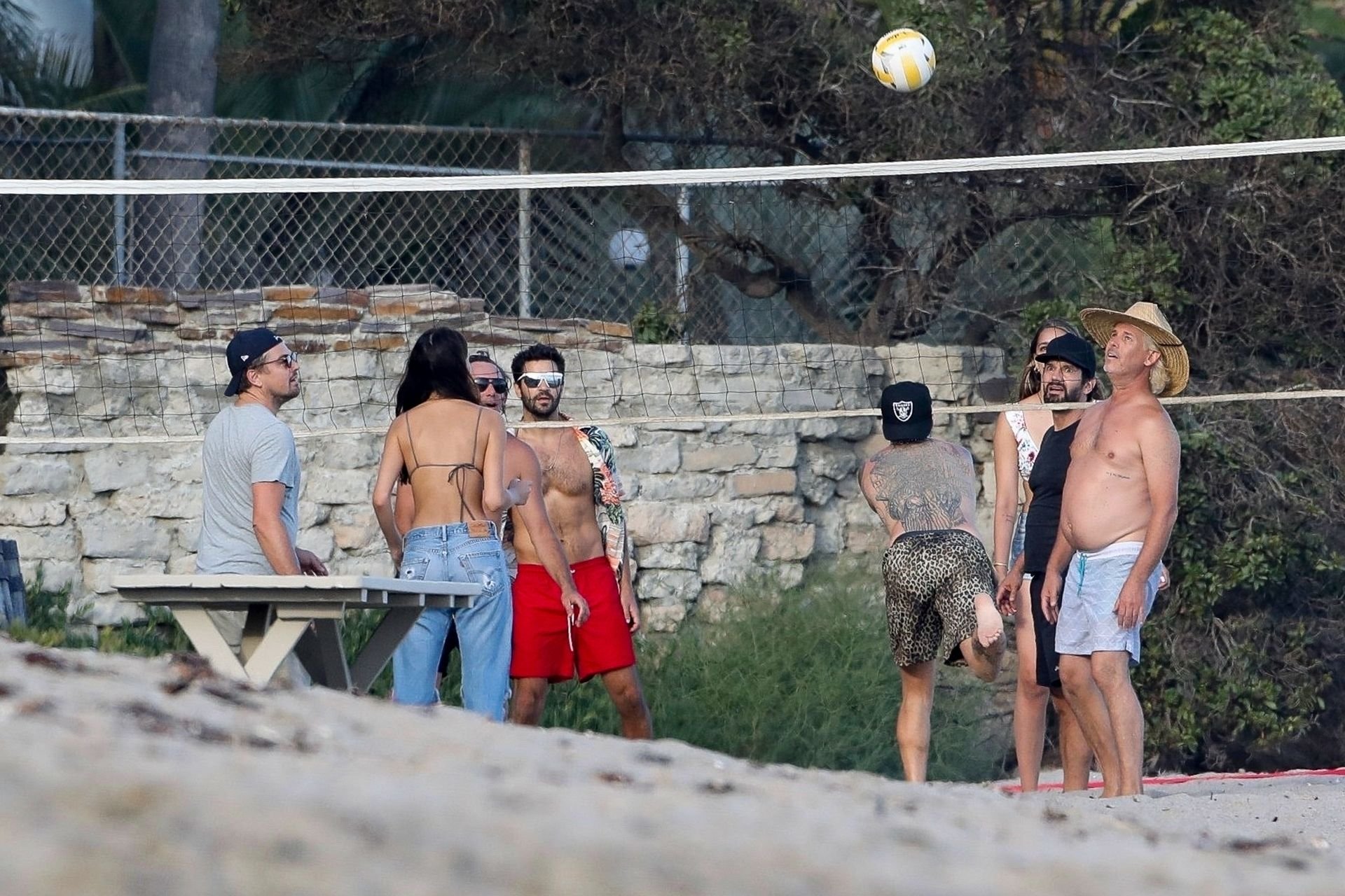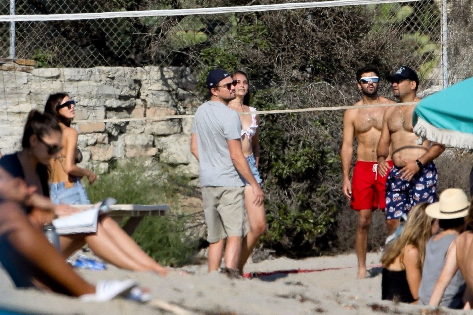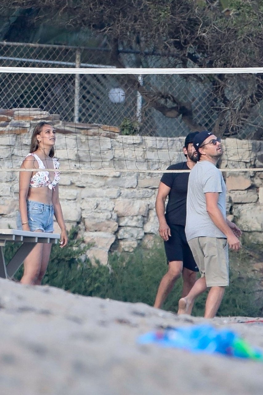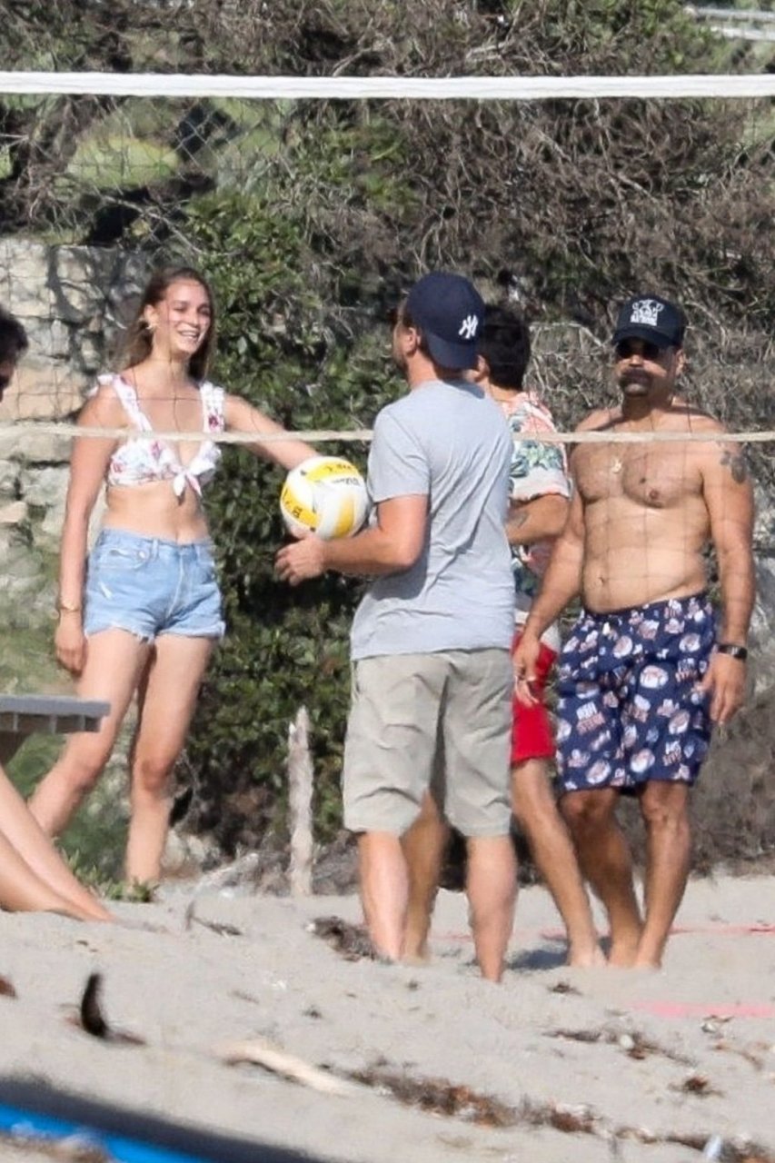 Leonardo DiCaprio e Camila Morrone estão aproveitando o fim de semana do Dia do Trabalho, 01/09/2019. O casal foi visto jogando vôlei com April Love Geary e outros amigos na praia em Malibu.