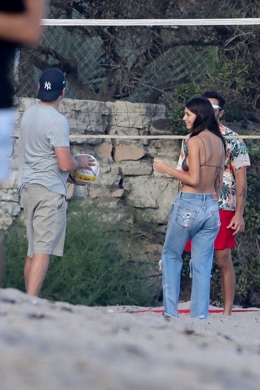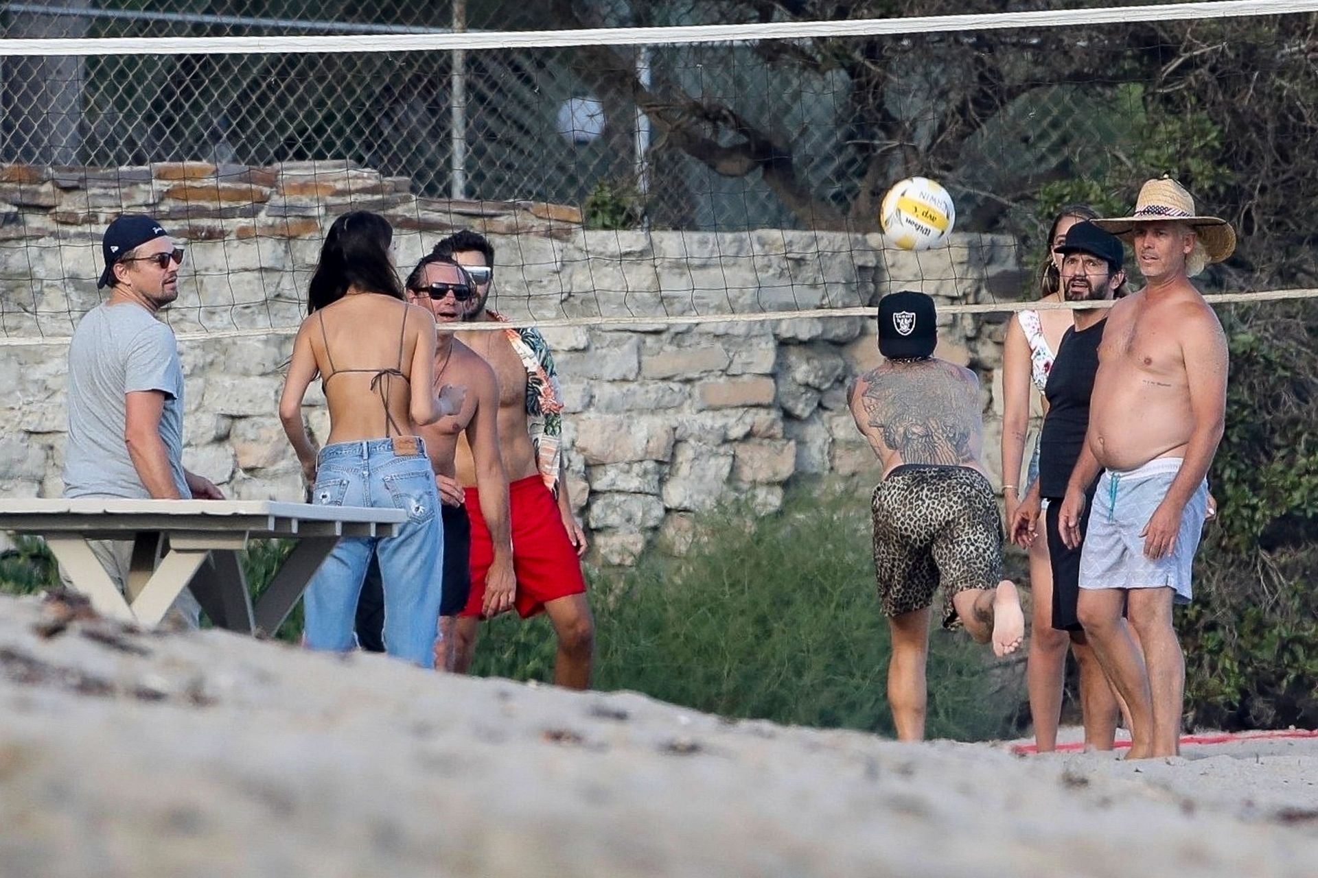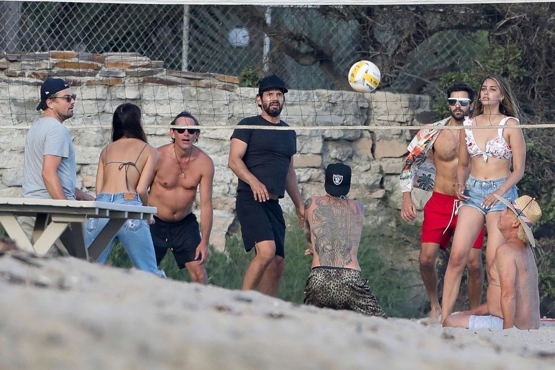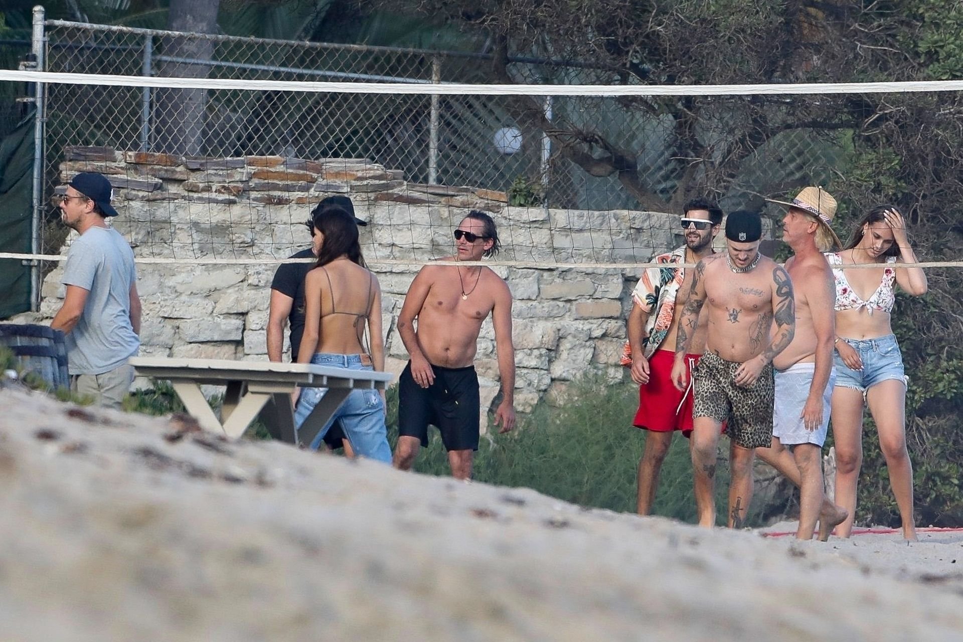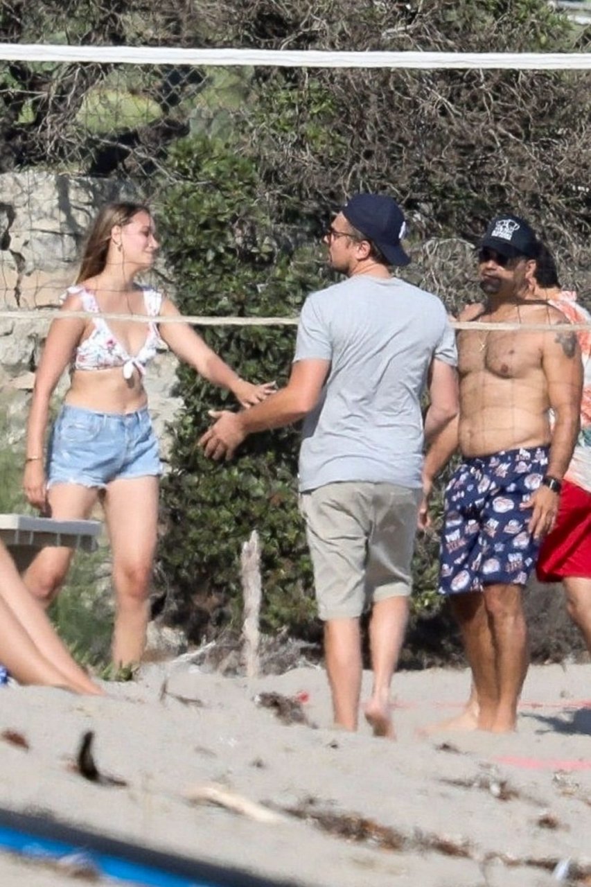 Leonardo DiCaprio e Camila Morrone estão aproveitando o fim de semana do Dia do Trabalho, 01/09/2019. O casal foi visto jogando vôlei com April Love Geary e outros amigos na praia em Malibu.