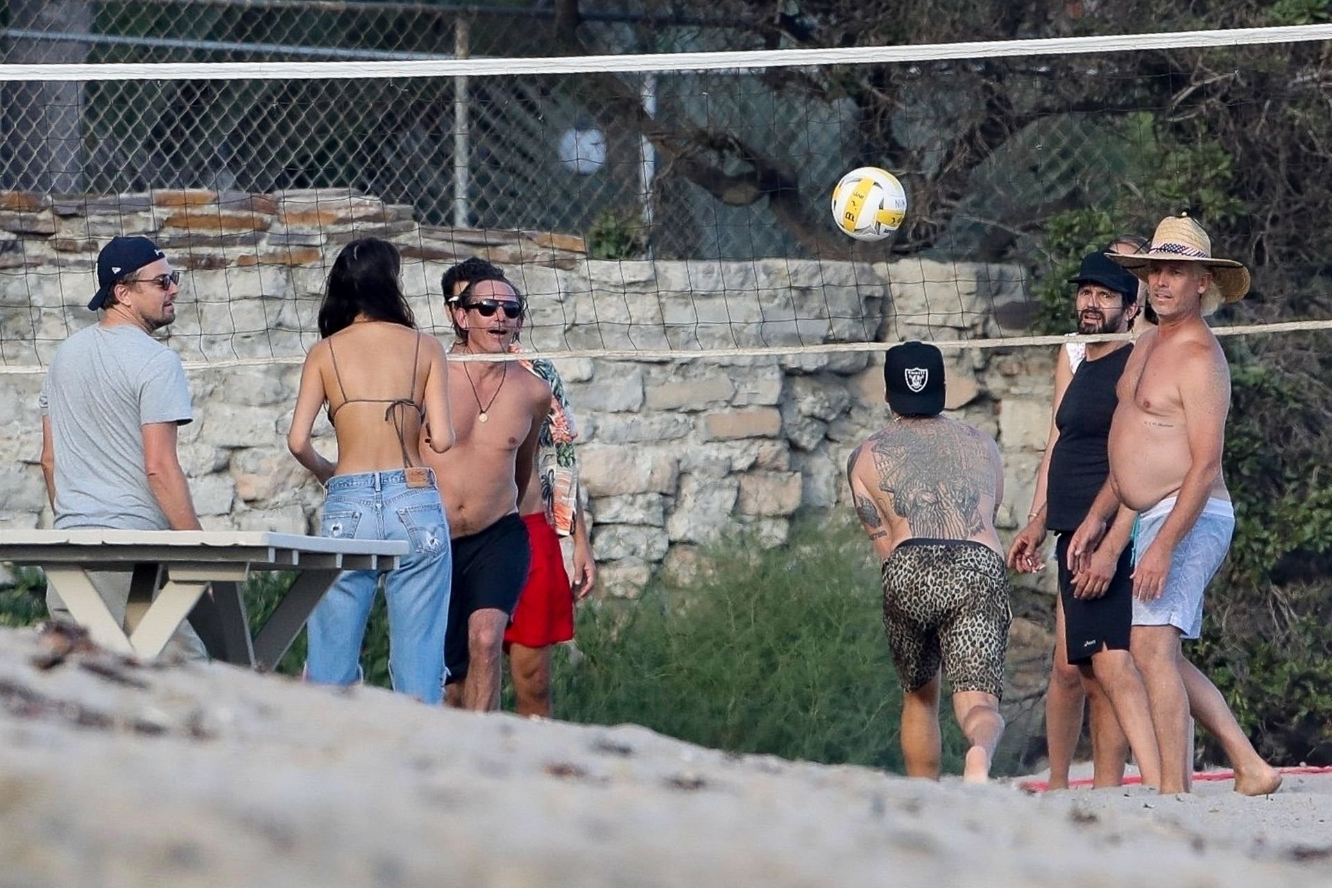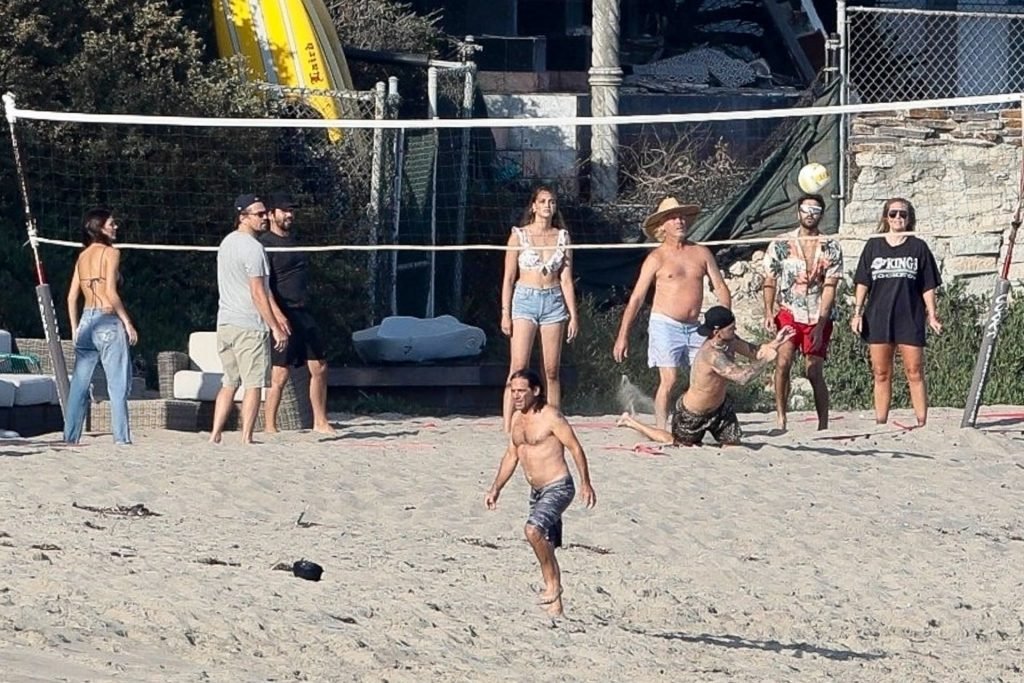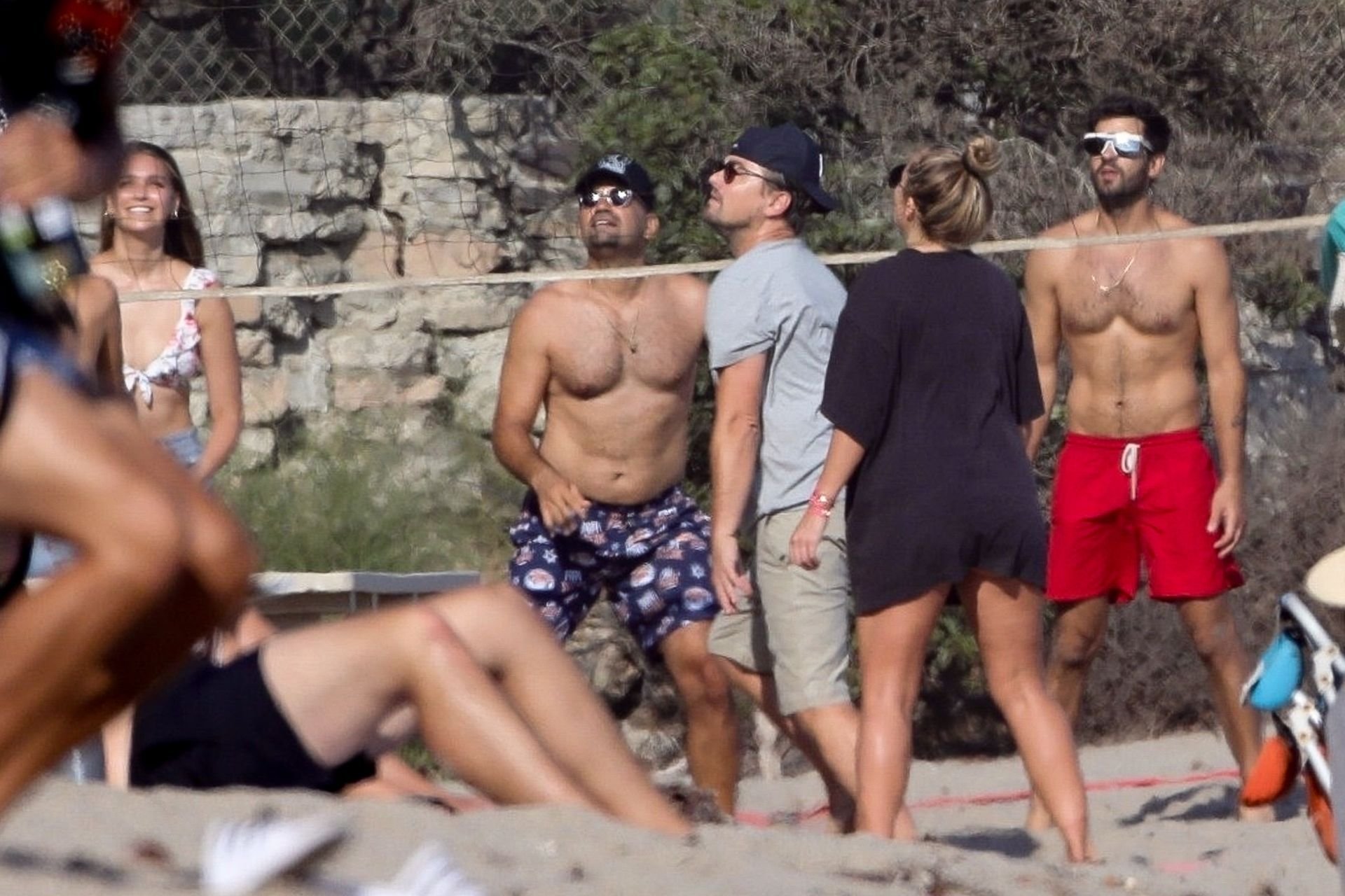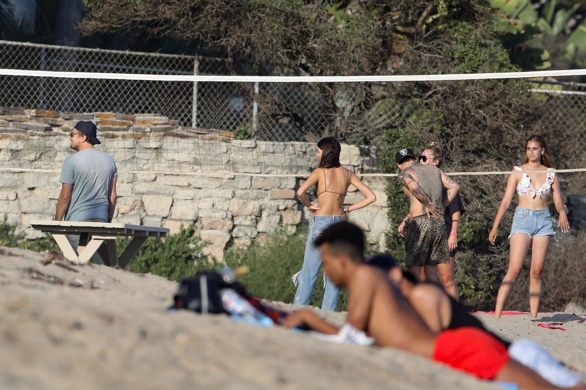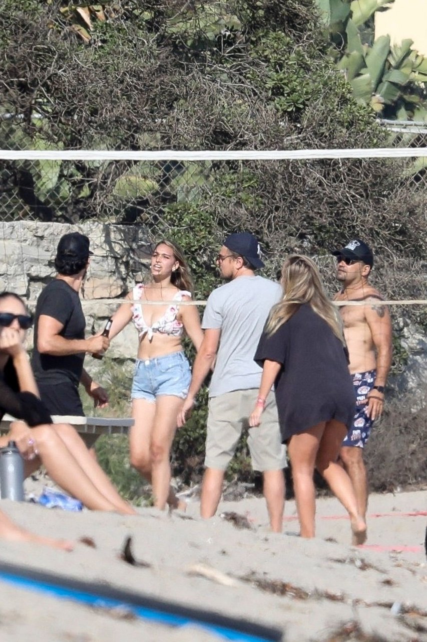 Leonardo DiCaprio e Camila Morrone estão aproveitando o fim de semana do Dia do Trabalho, 01/09/2019. O casal foi visto jogando vôlei com April Love Geary e outros amigos na praia em Malibu.