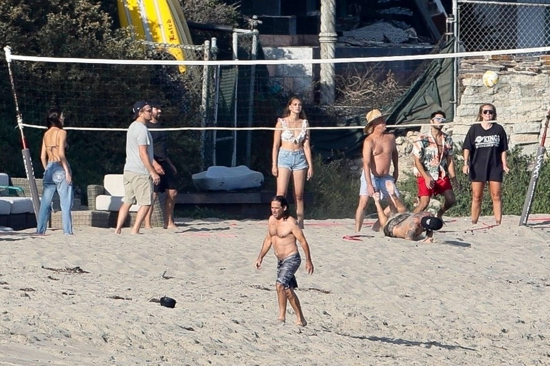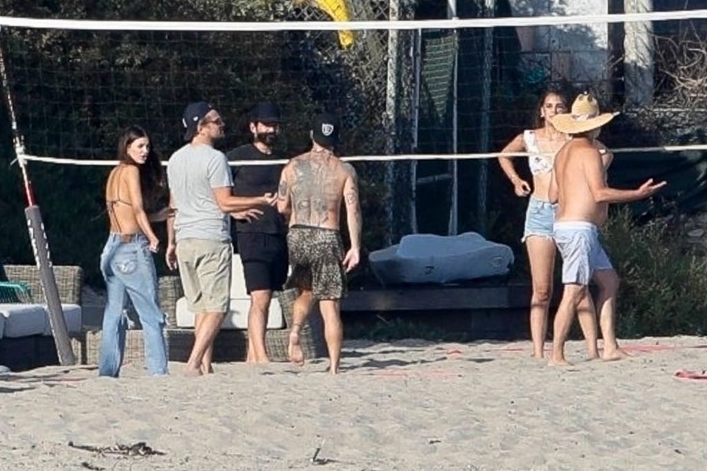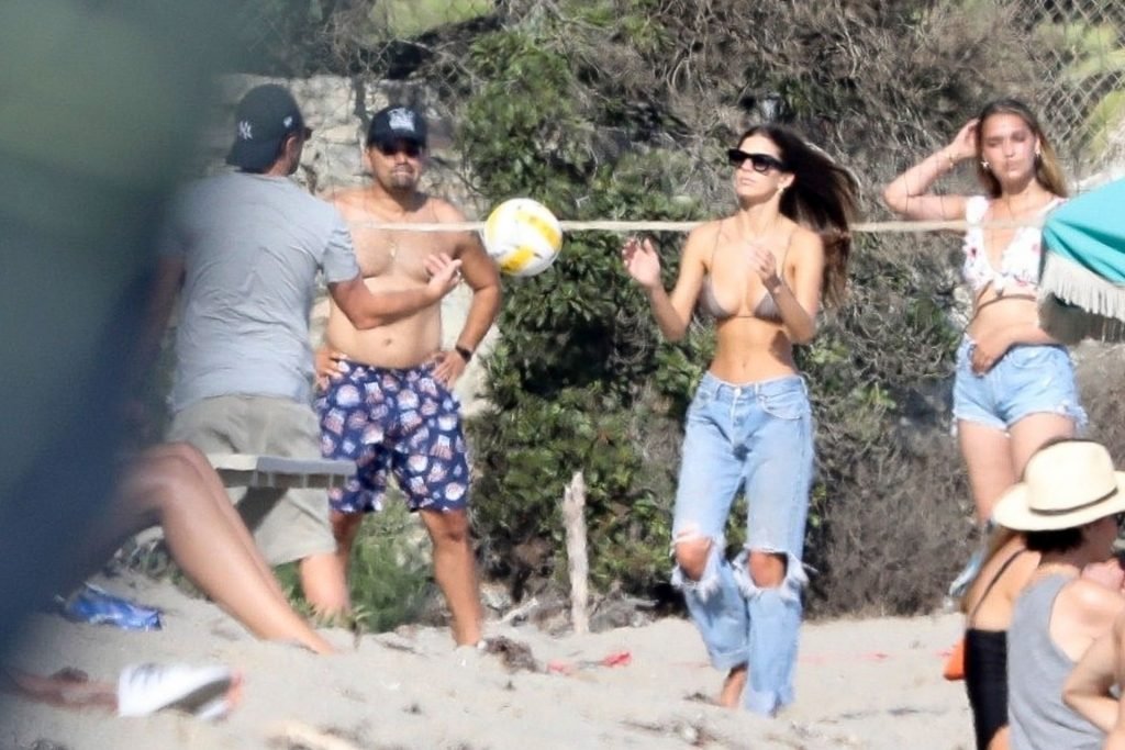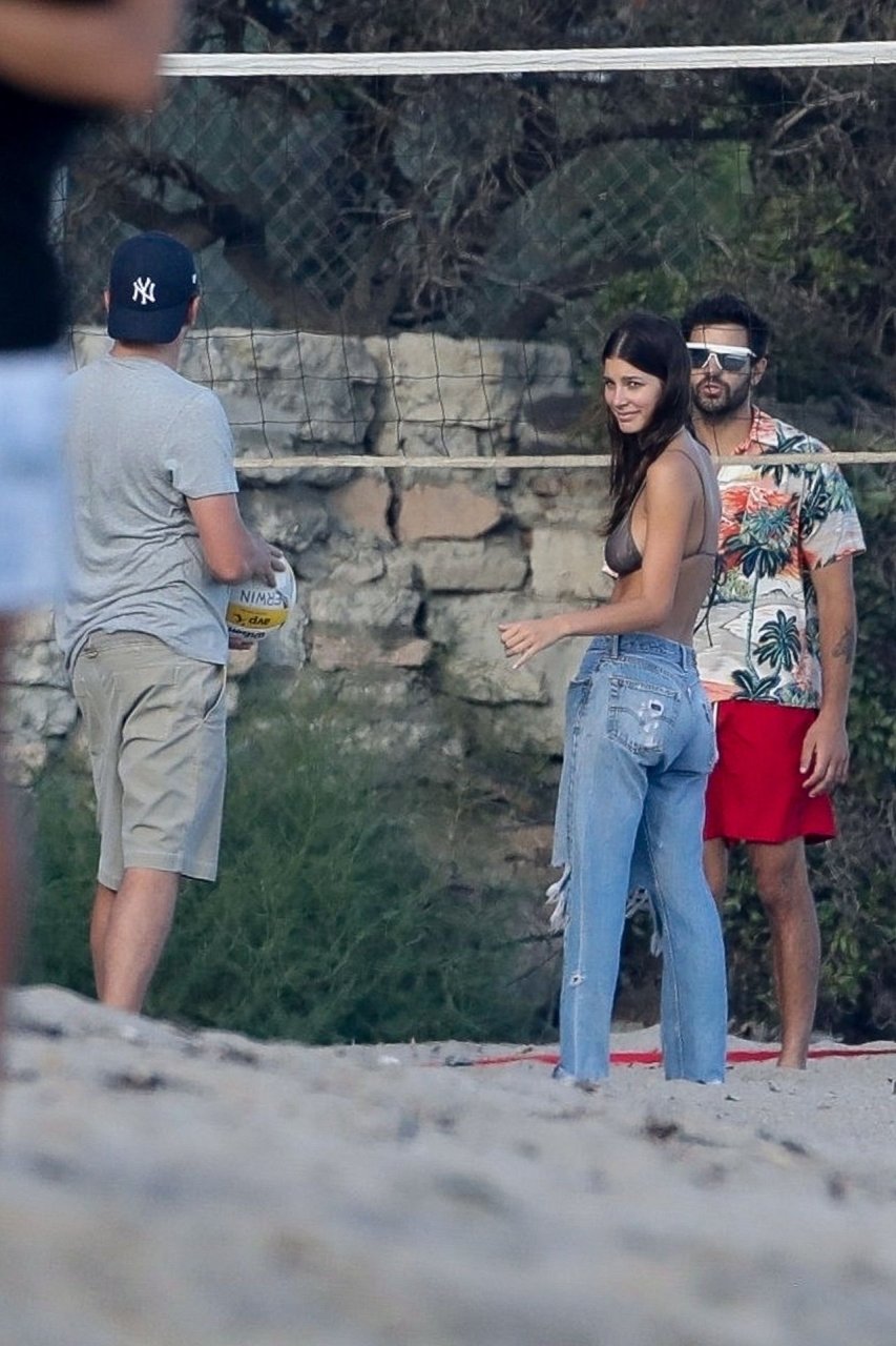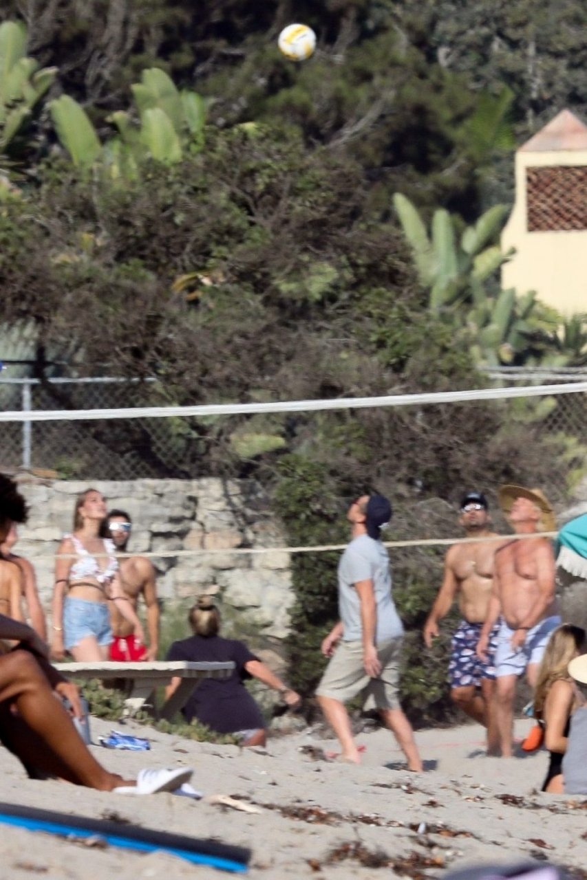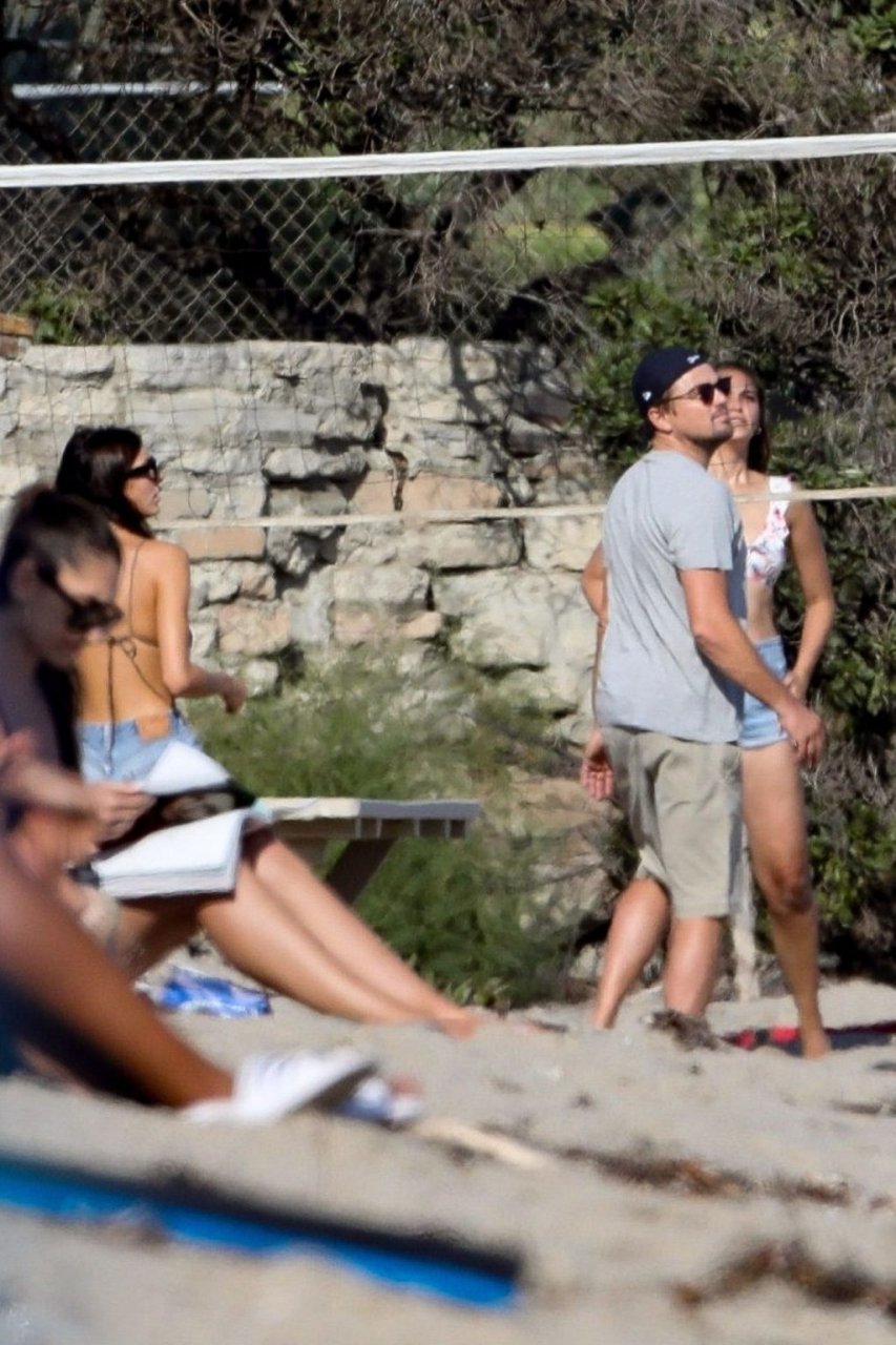 Leonardo DiCaprio e Camila Morrone estão aproveitando o fim de semana do Dia do Trabalho, 01/09/2019. O casal foi visto jogando vôlei com April Love Geary e outros amigos na praia em Malibu.