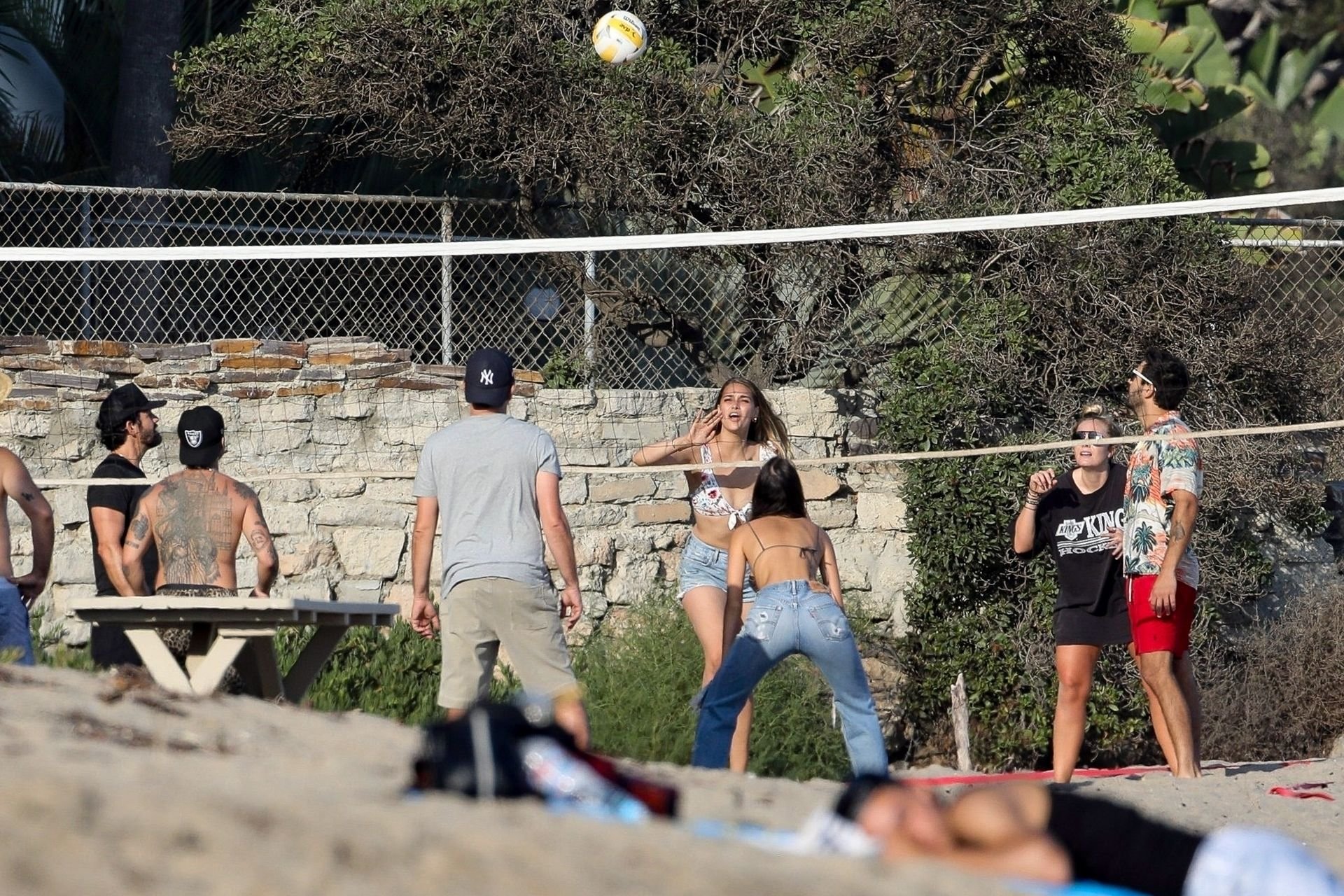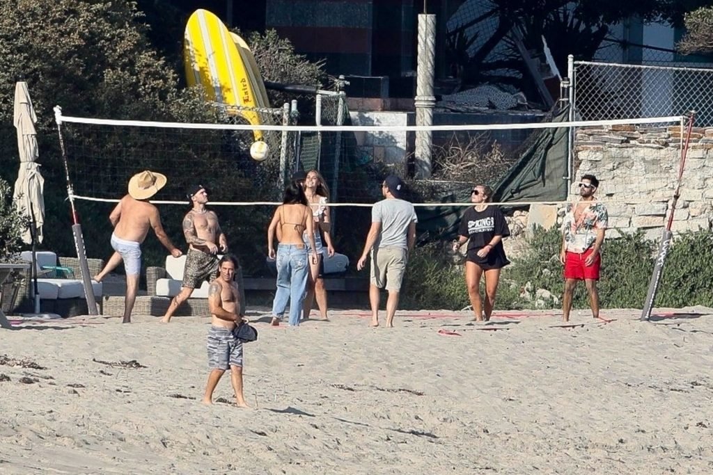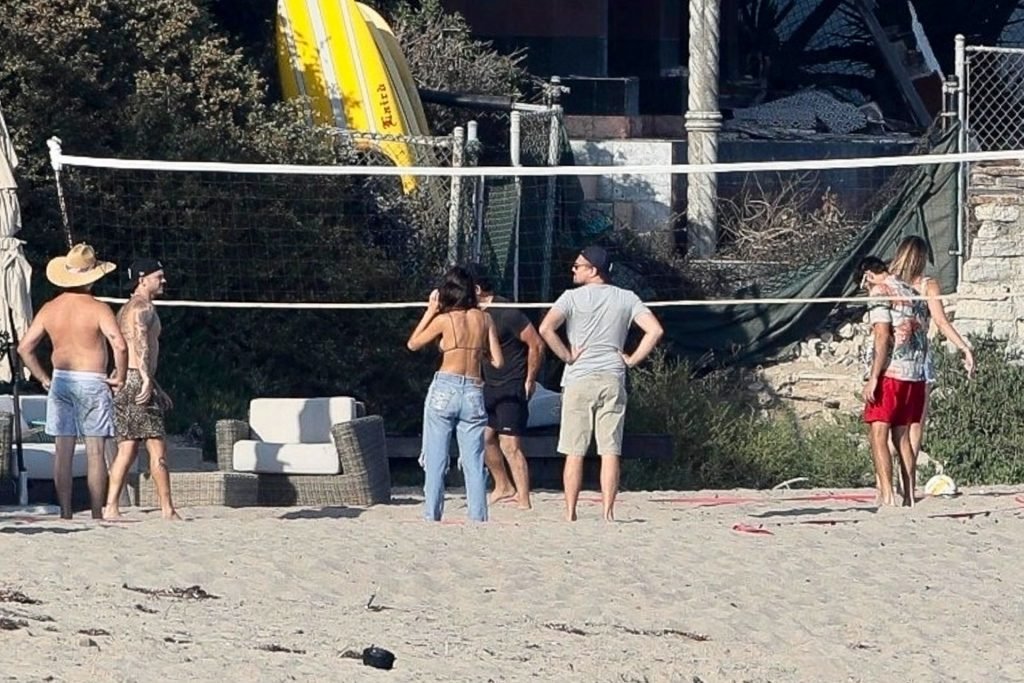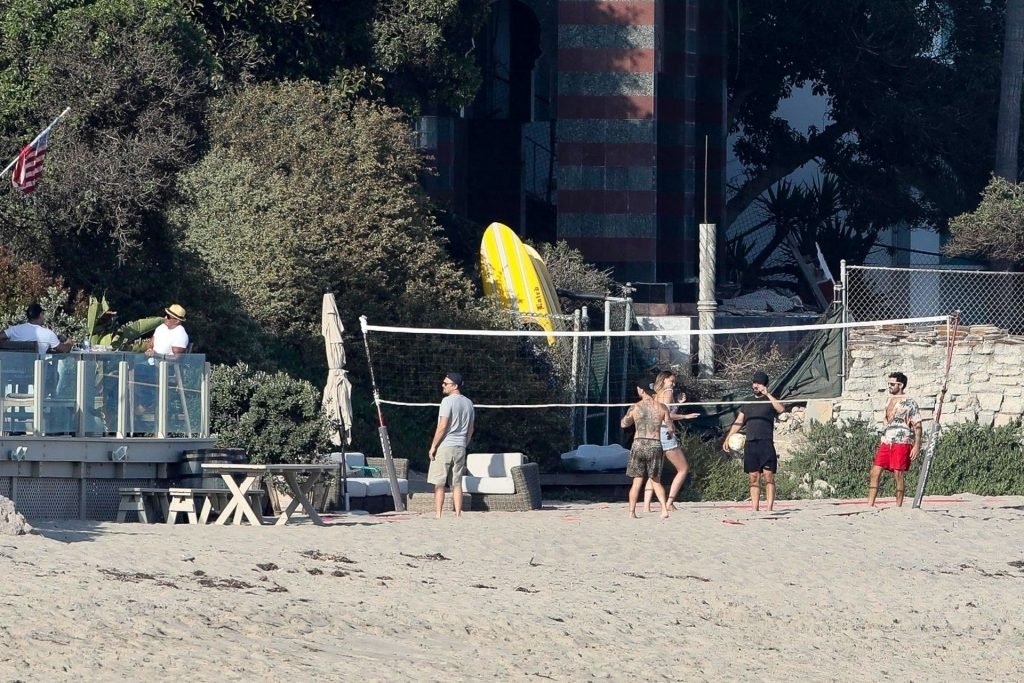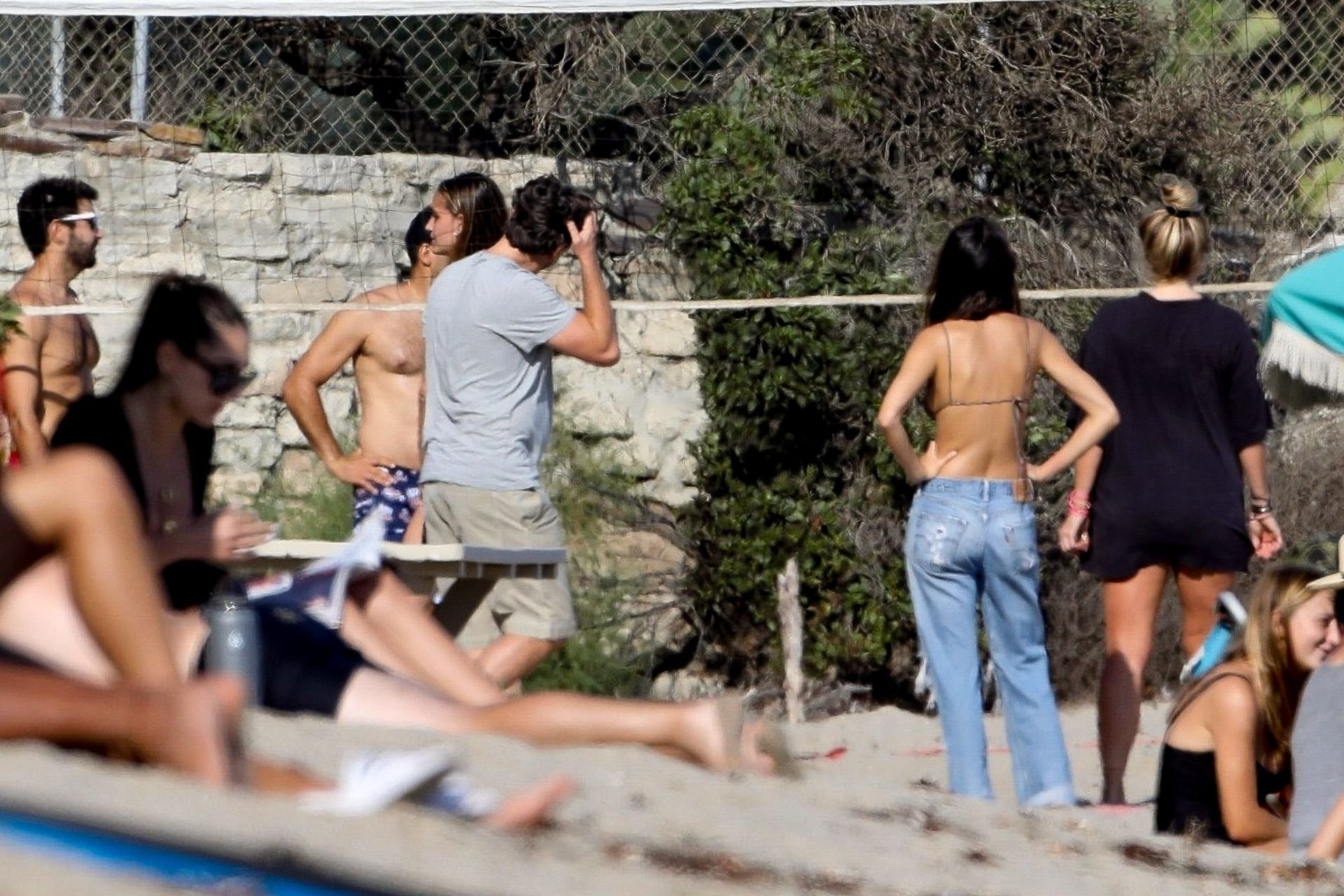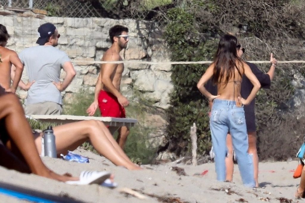 Leonardo DiCaprio e Camila Morrone estão aproveitando o fim de semana do Dia do Trabalho, 01/09/2019. O casal foi visto jogando vôlei com April Love Geary e outros amigos na praia em Malibu.