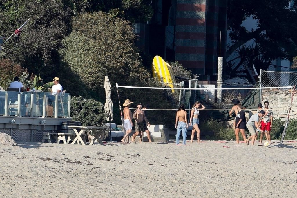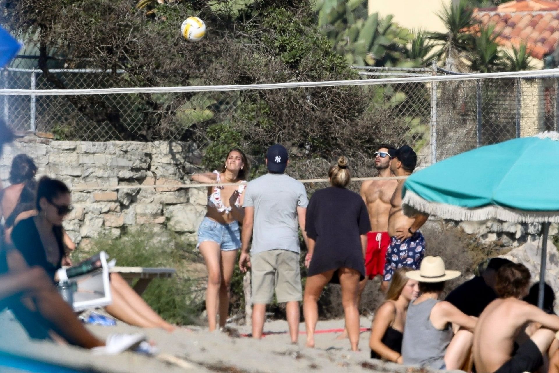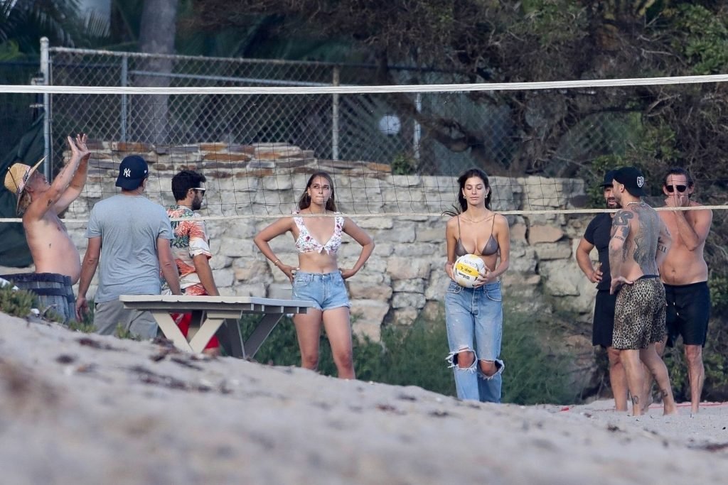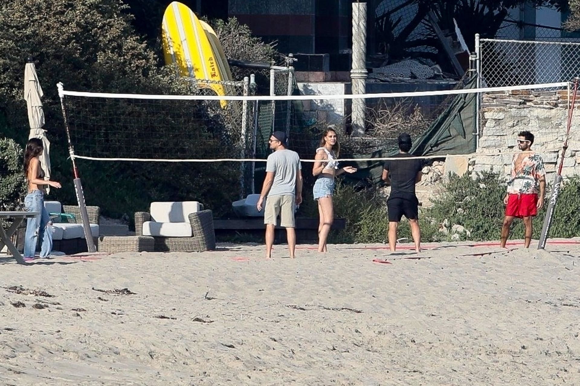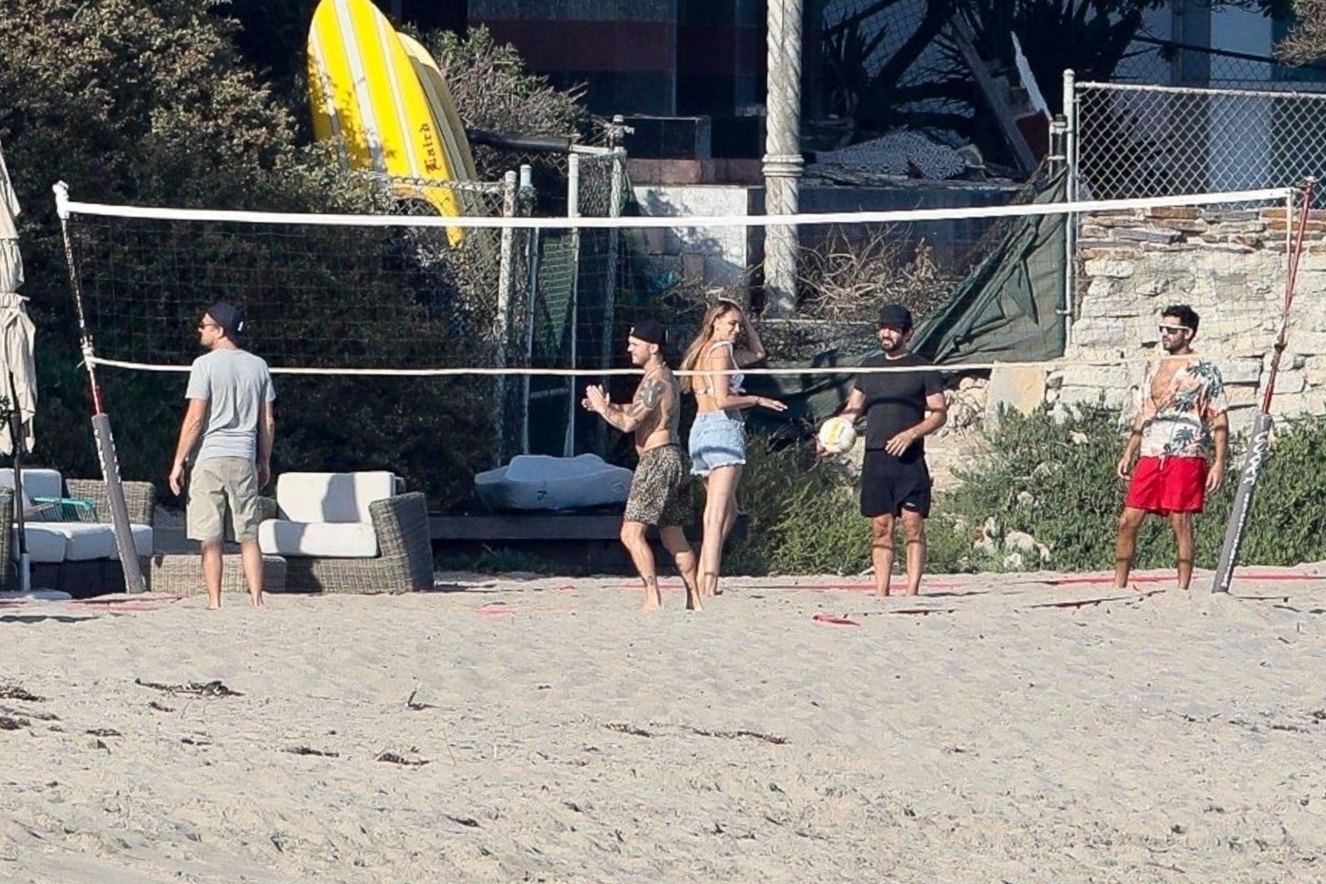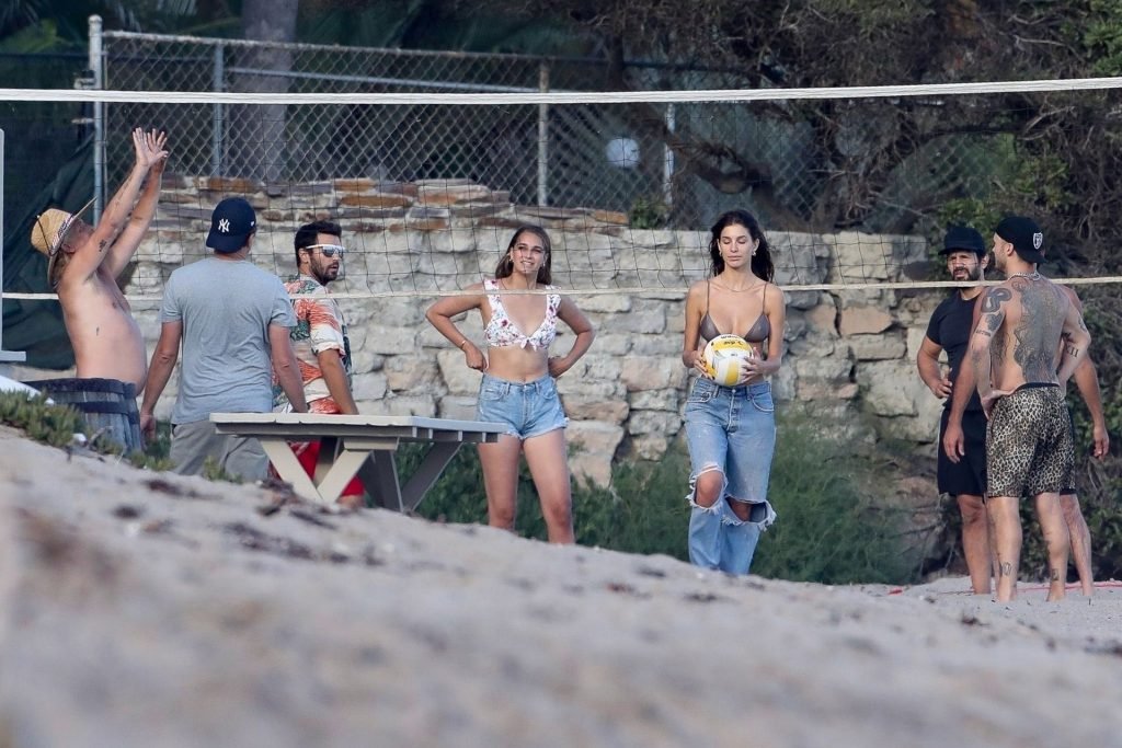 Leonardo DiCaprio e Camila Morrone estão aproveitando o fim de semana do Dia do Trabalho, 01/09/2019. O casal foi visto jogando vôlei com April Love Geary e outros amigos na praia em Malibu.