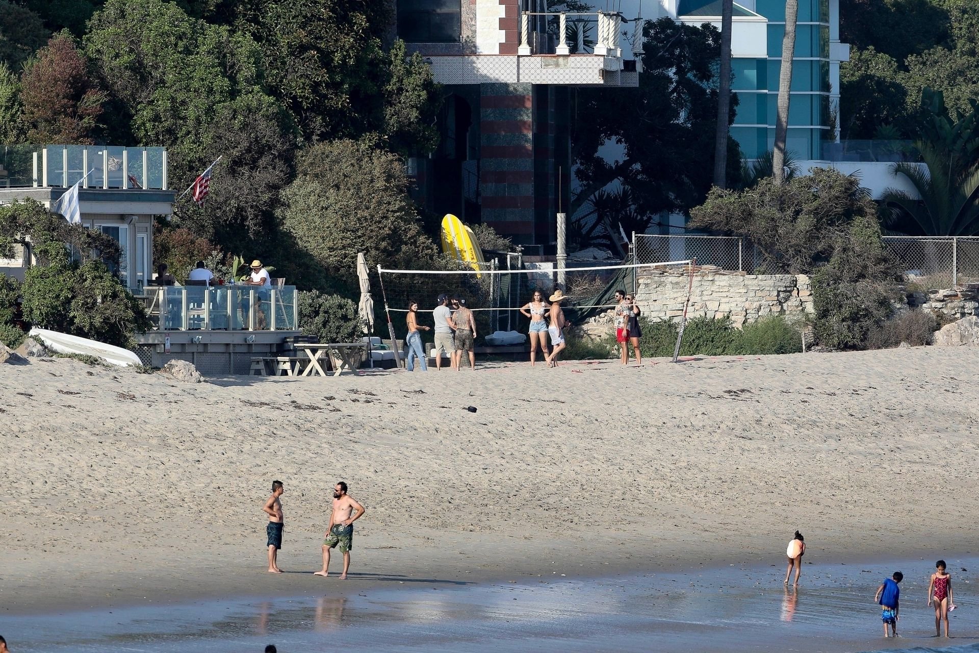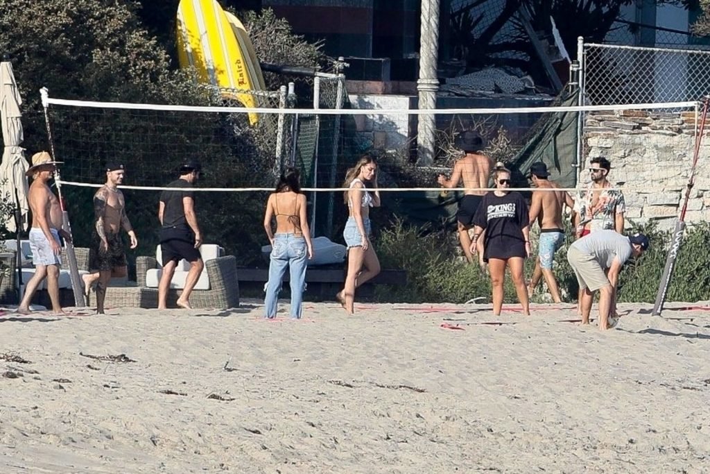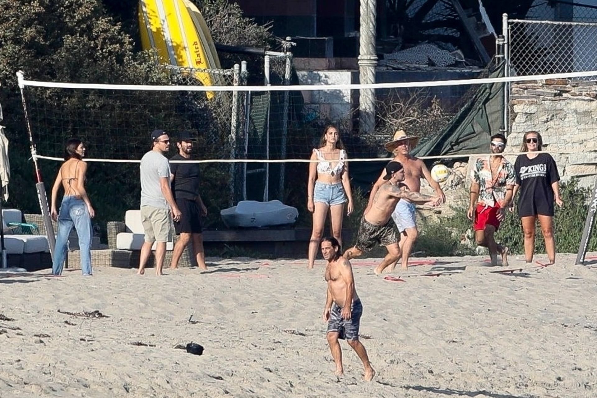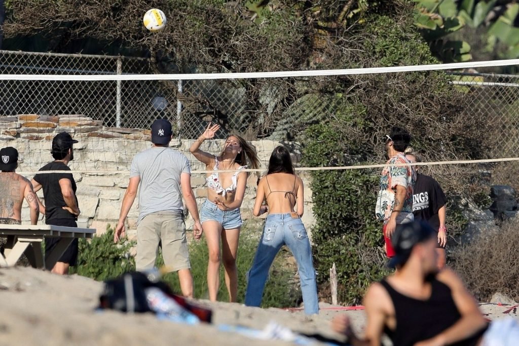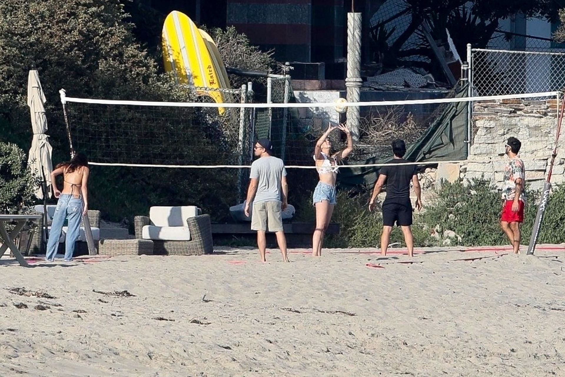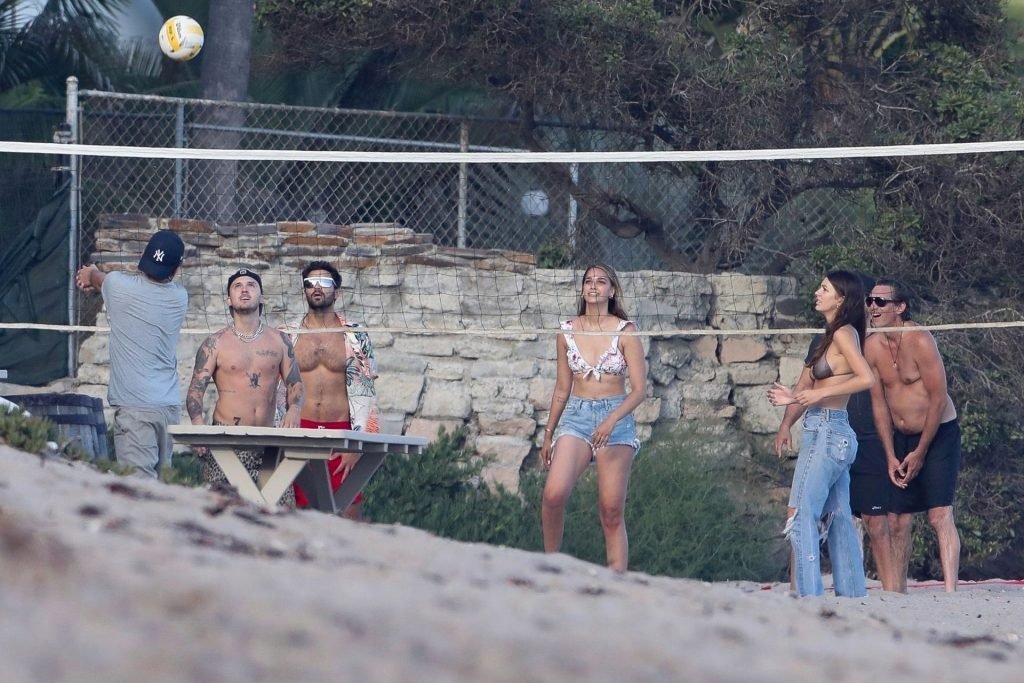 Leonardo DiCaprio e Camila Morrone estão aproveitando o fim de semana do Dia do Trabalho, 01/09/2019. O casal foi visto jogando vôlei com April Love Geary e outros amigos na praia em Malibu.
