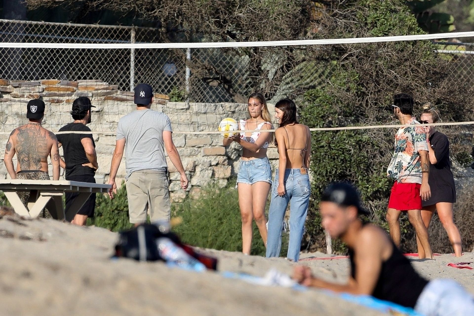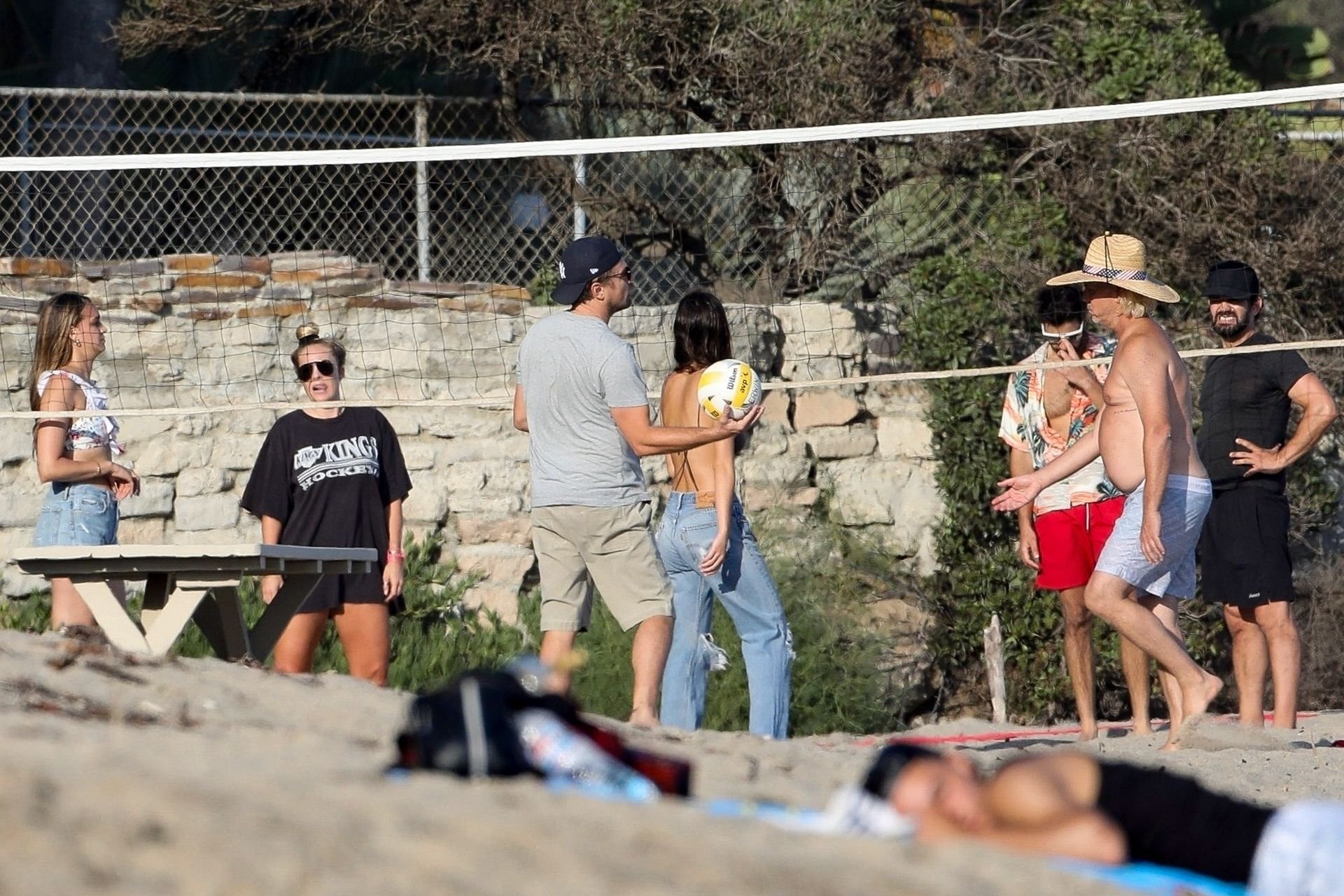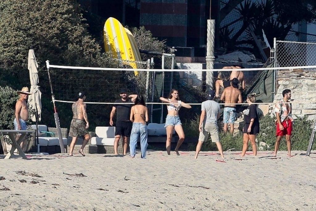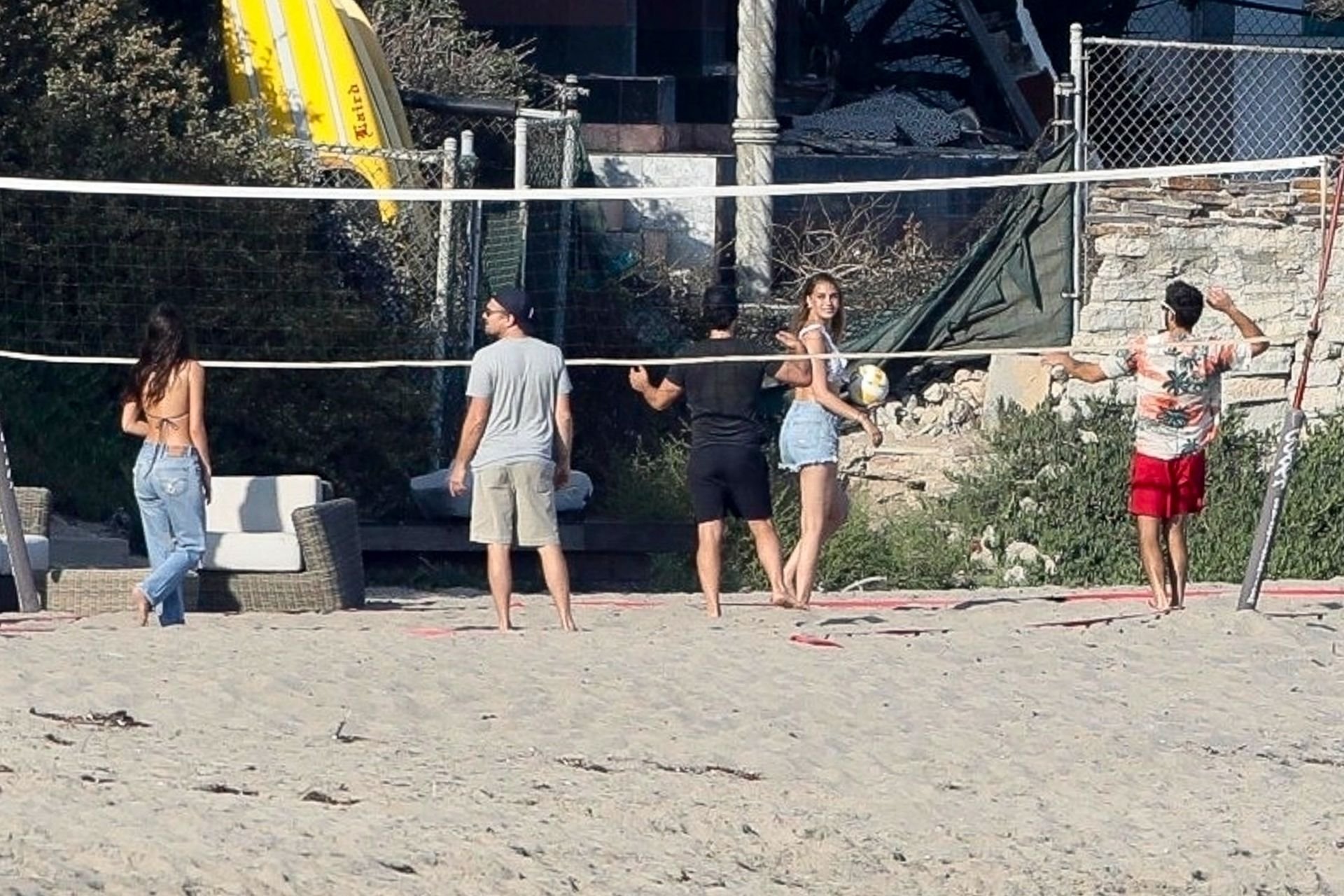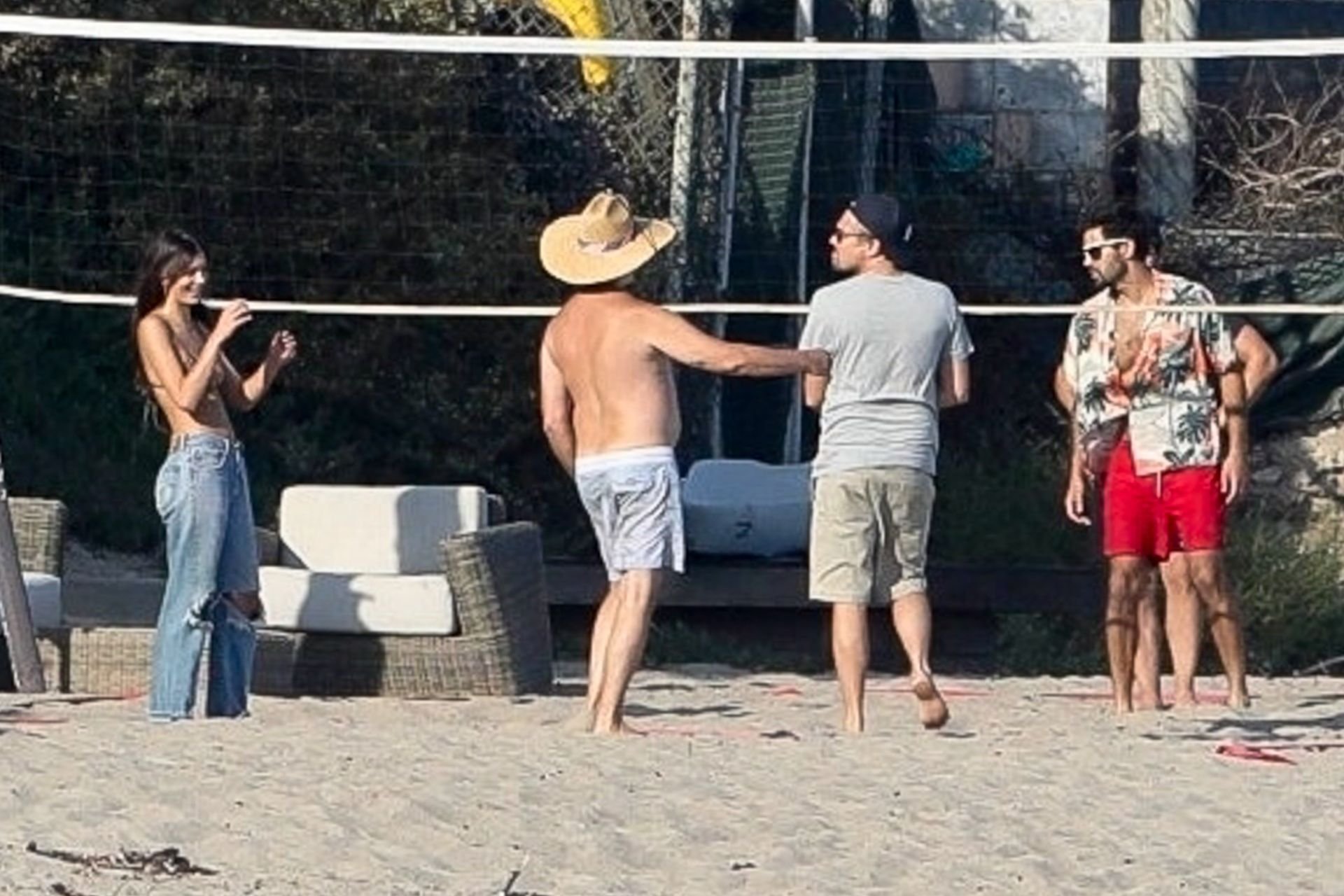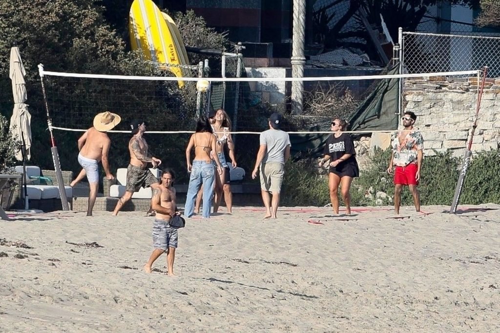 Leonardo DiCaprio e Camila Morrone estão aproveitando o fim de semana do Dia do Trabalho, 01/09/2019. O casal foi visto jogando vôlei com April Love Geary e outros amigos na praia em Malibu.