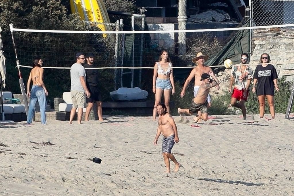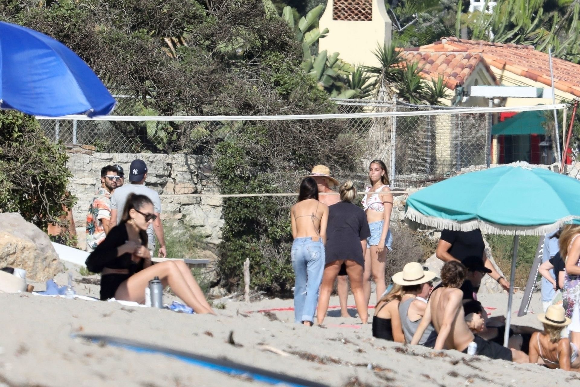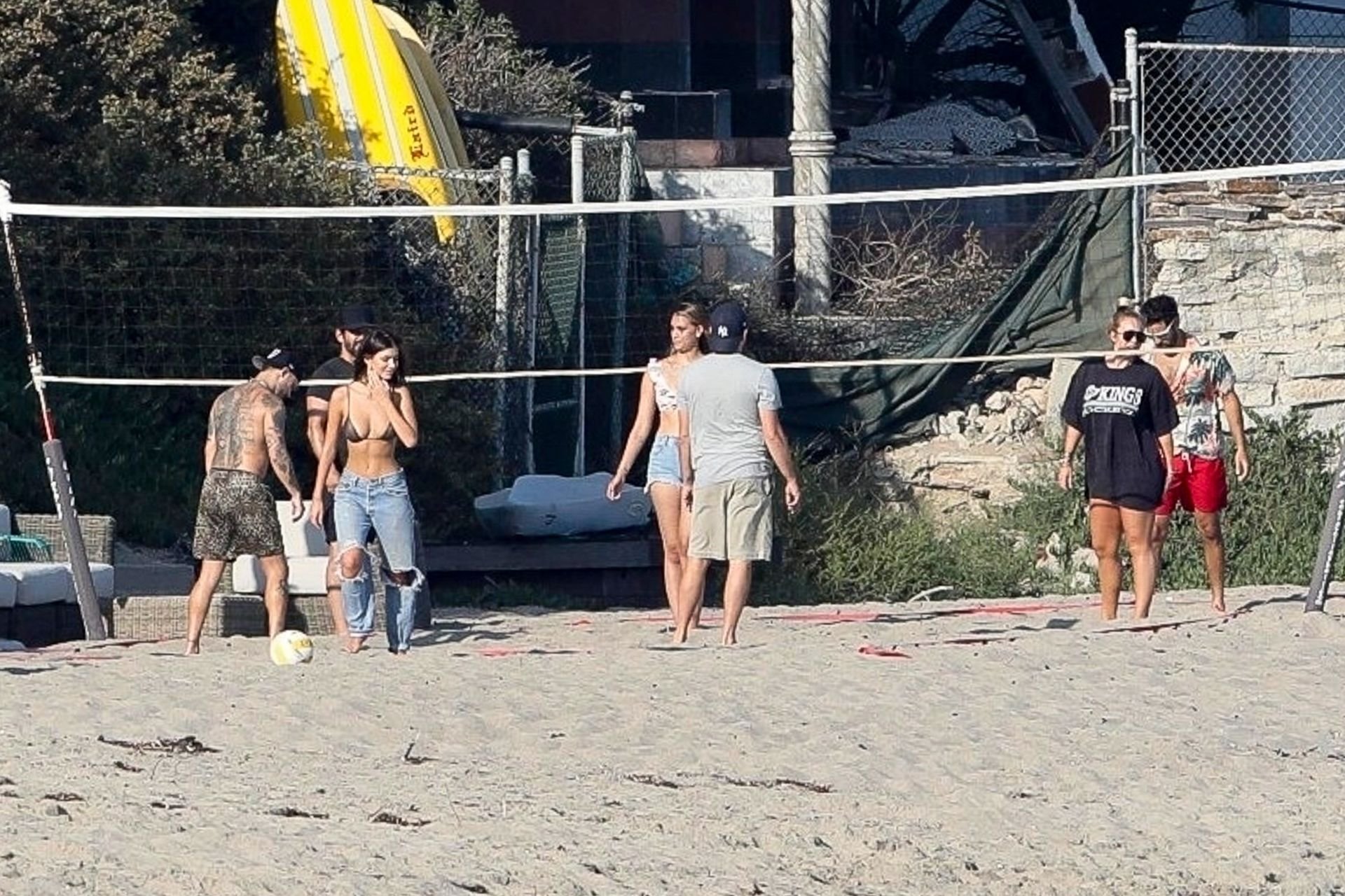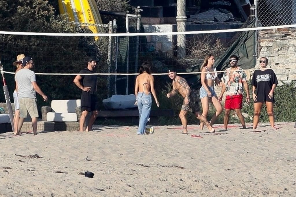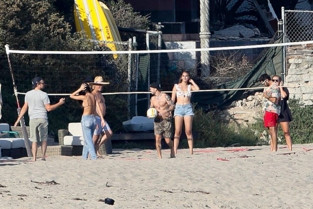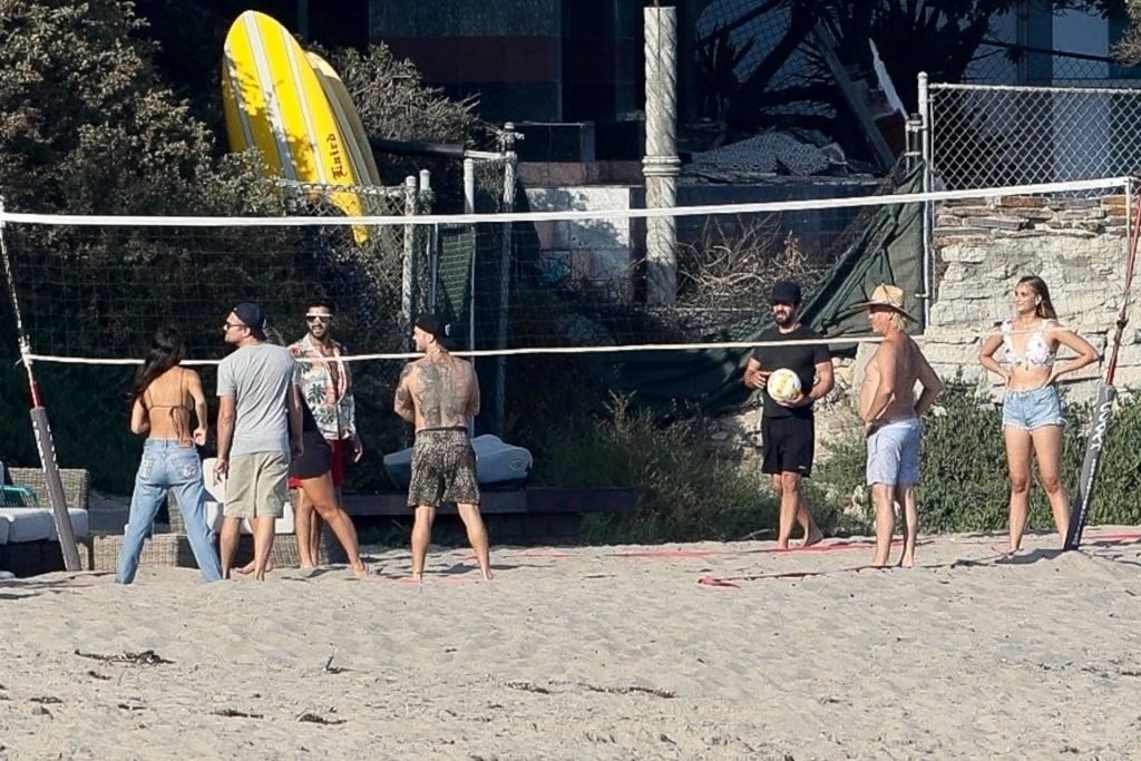 Leonardo DiCaprio e Camila Morrone estão aproveitando o fim de semana do Dia do Trabalho, 01/09/2019. O casal foi visto jogando vôlei com April Love Geary e outros amigos na praia em Malibu.